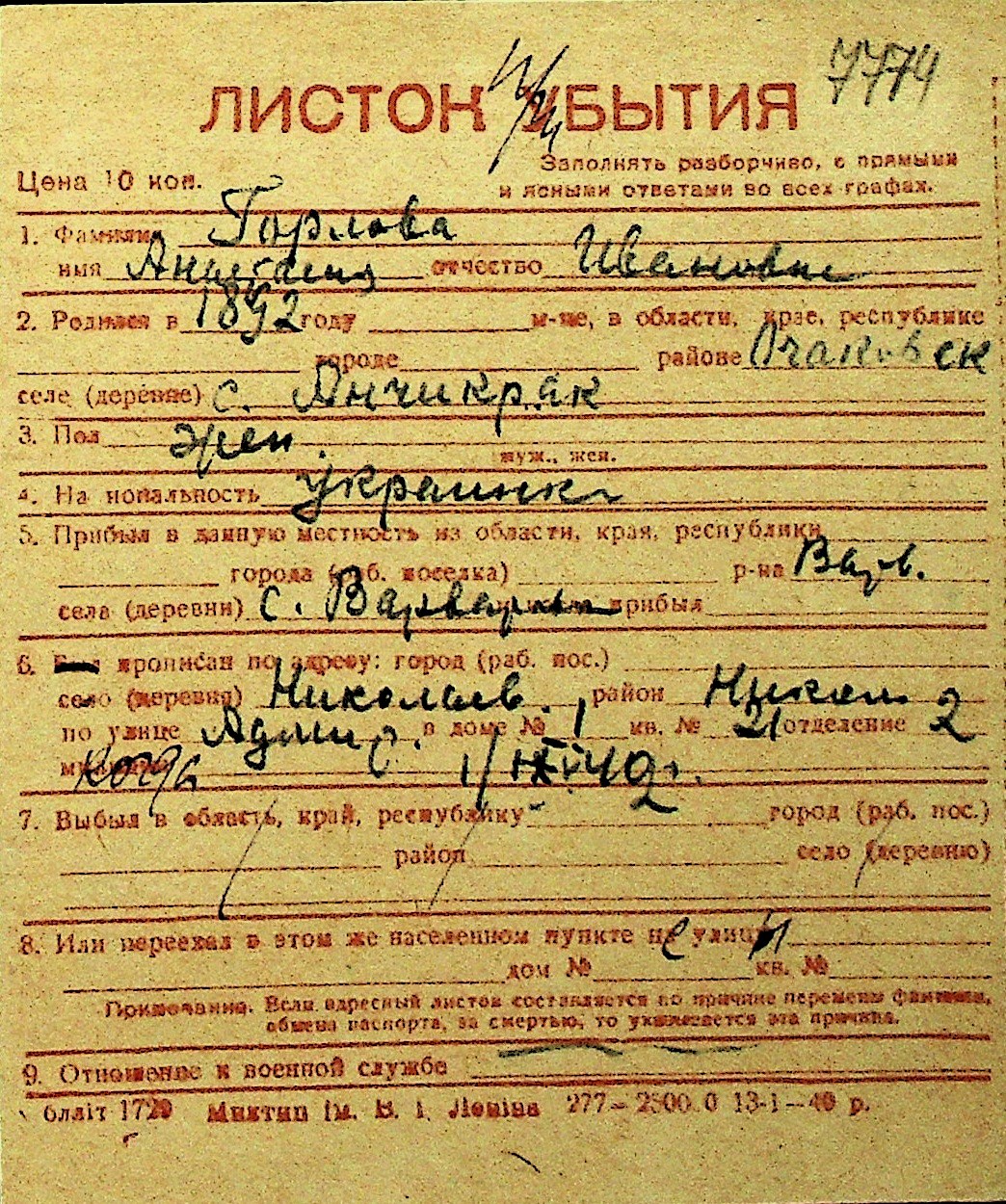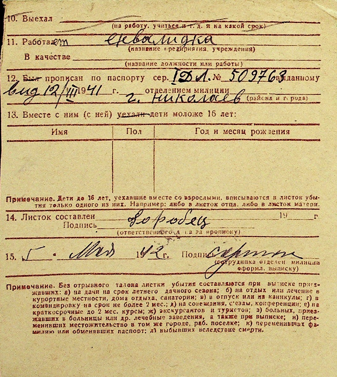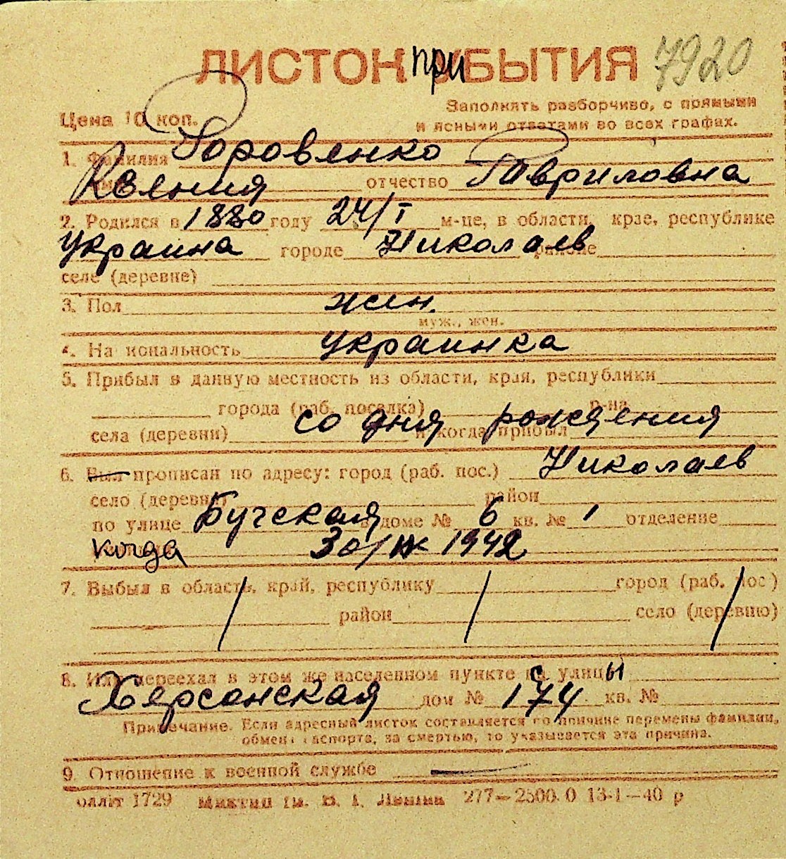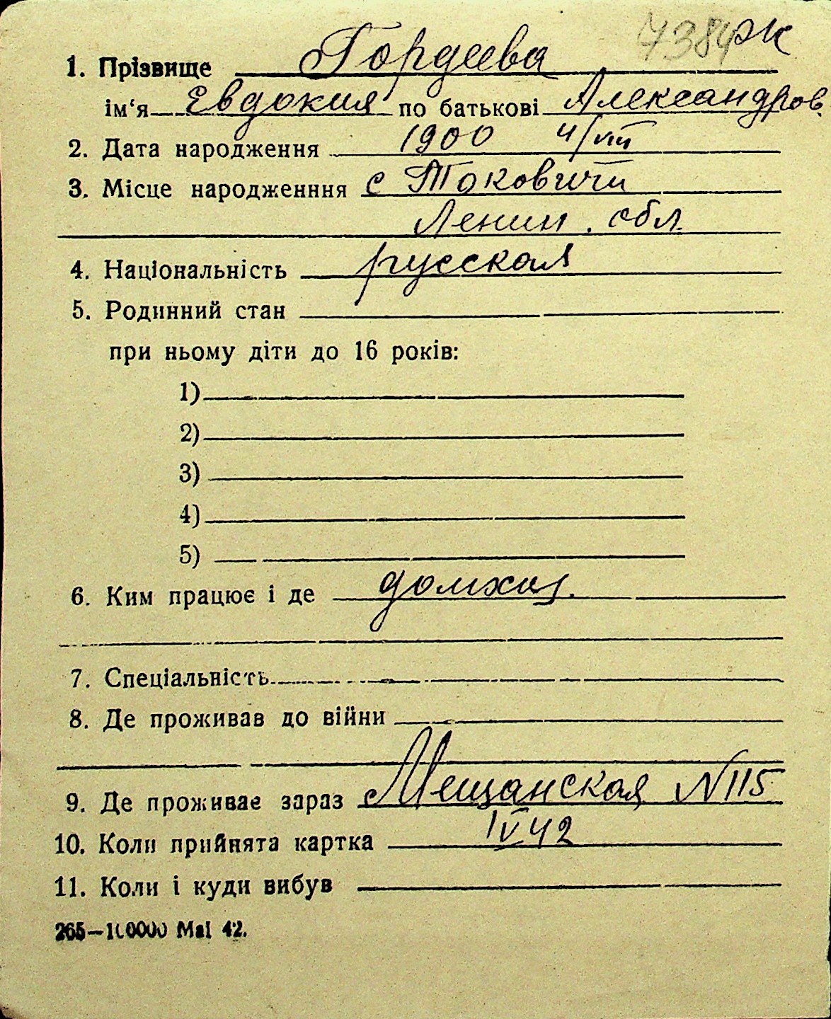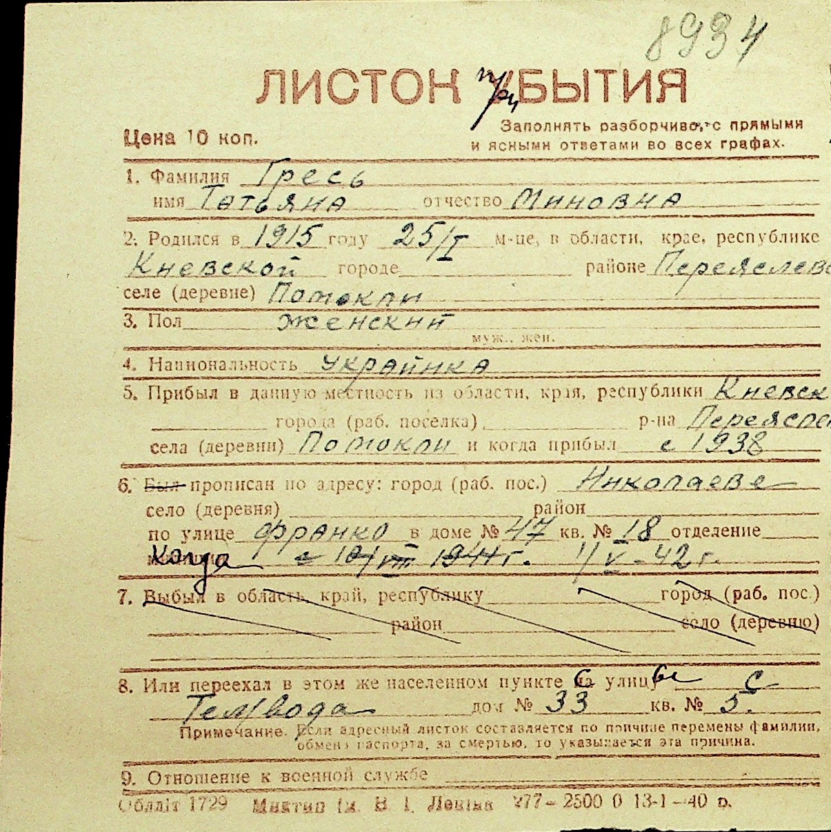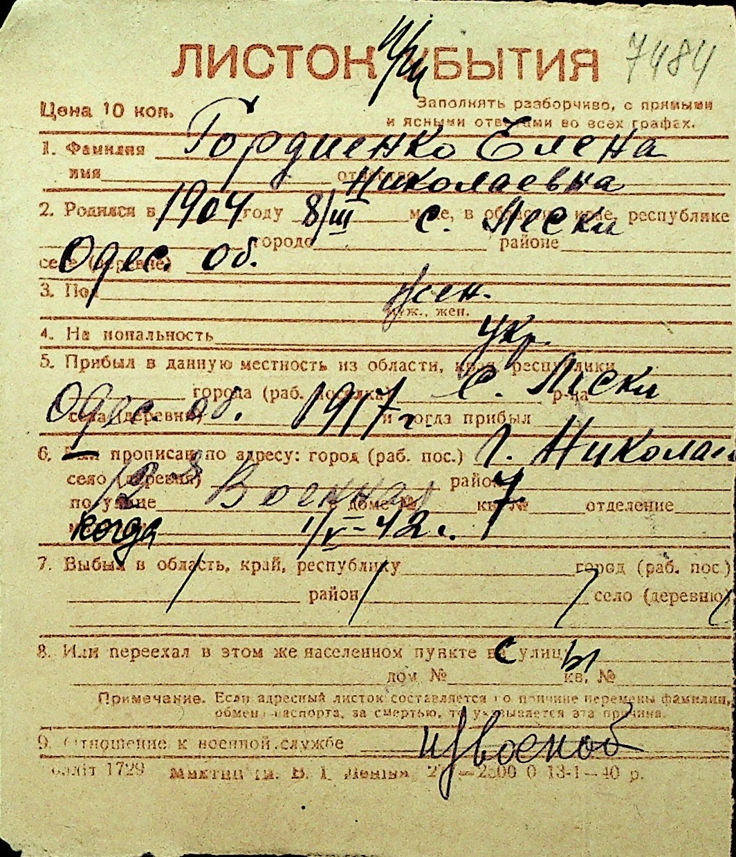 • • Перелік карток до фонду № Н-1016