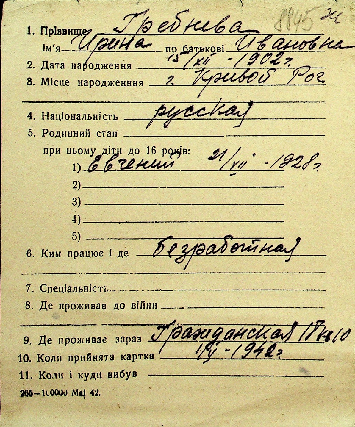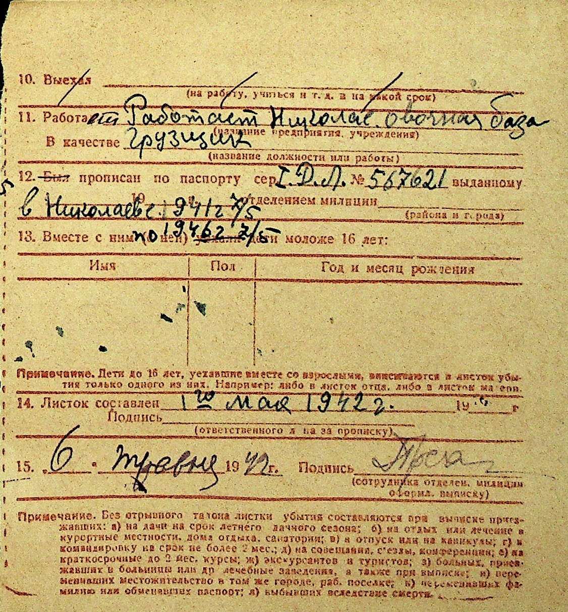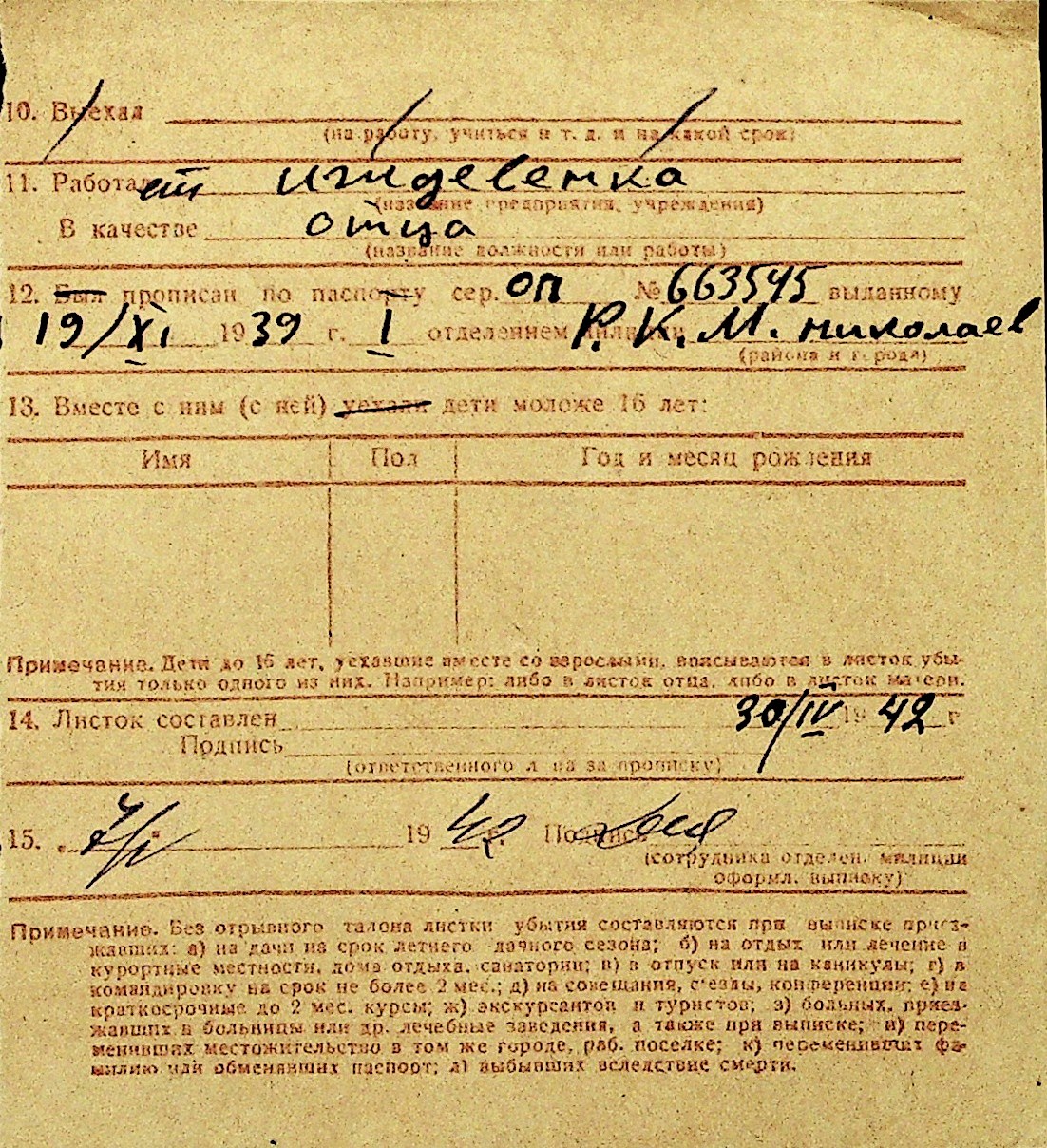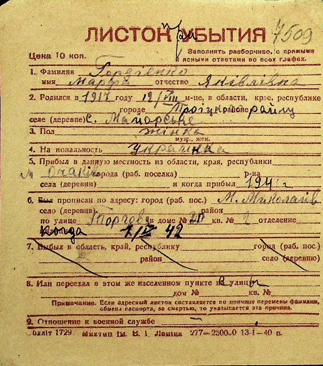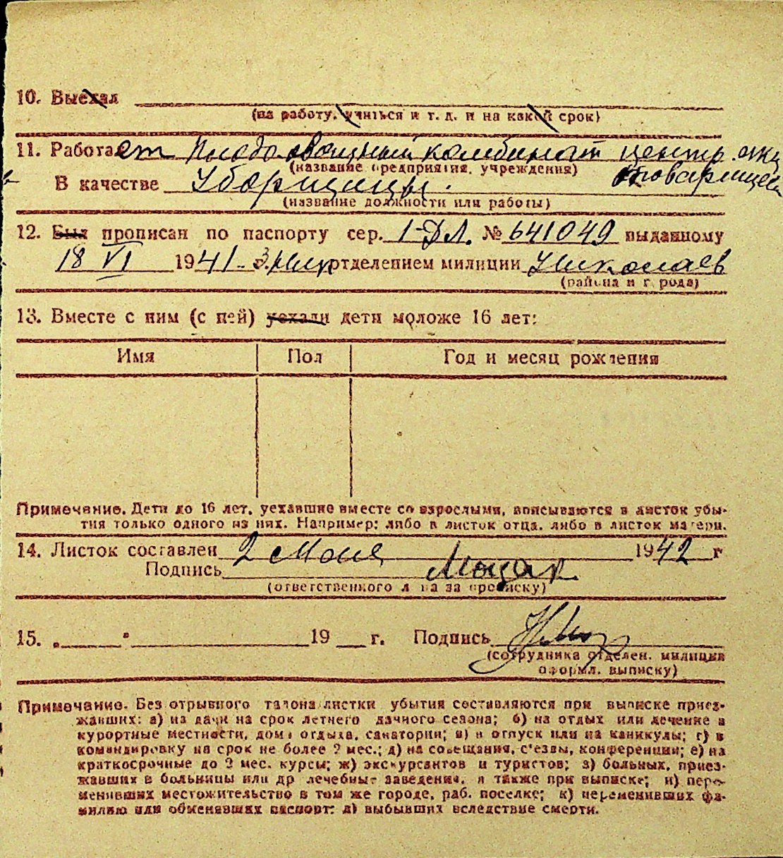 • • Перелік карток до фонду № Н-1016