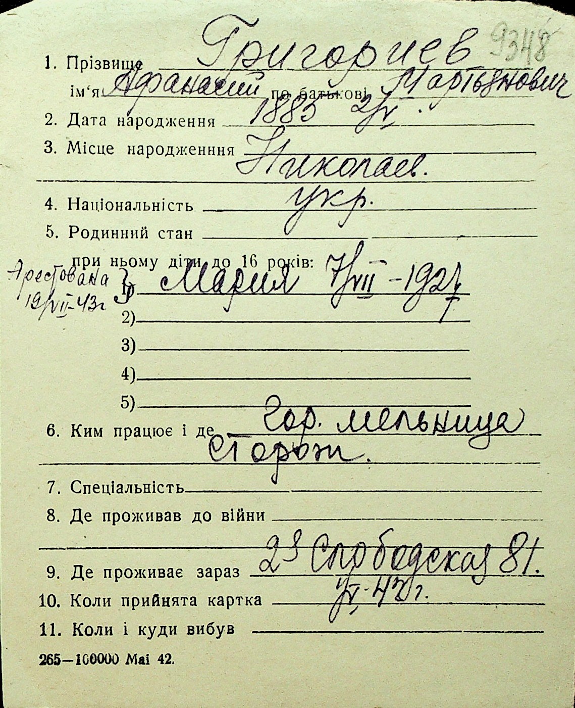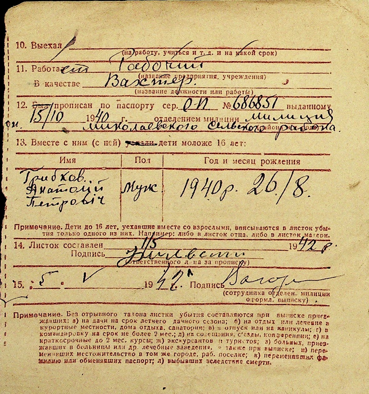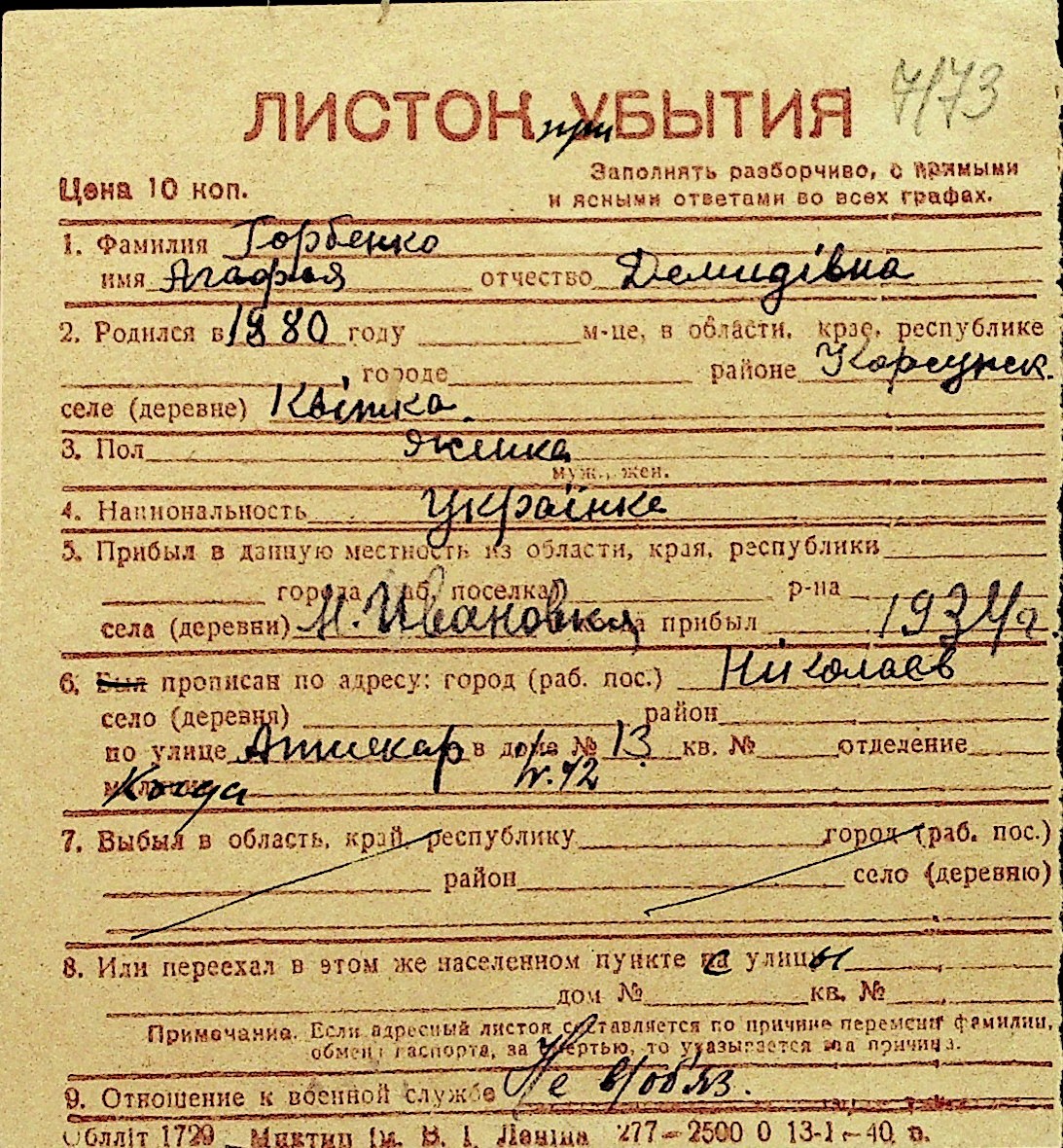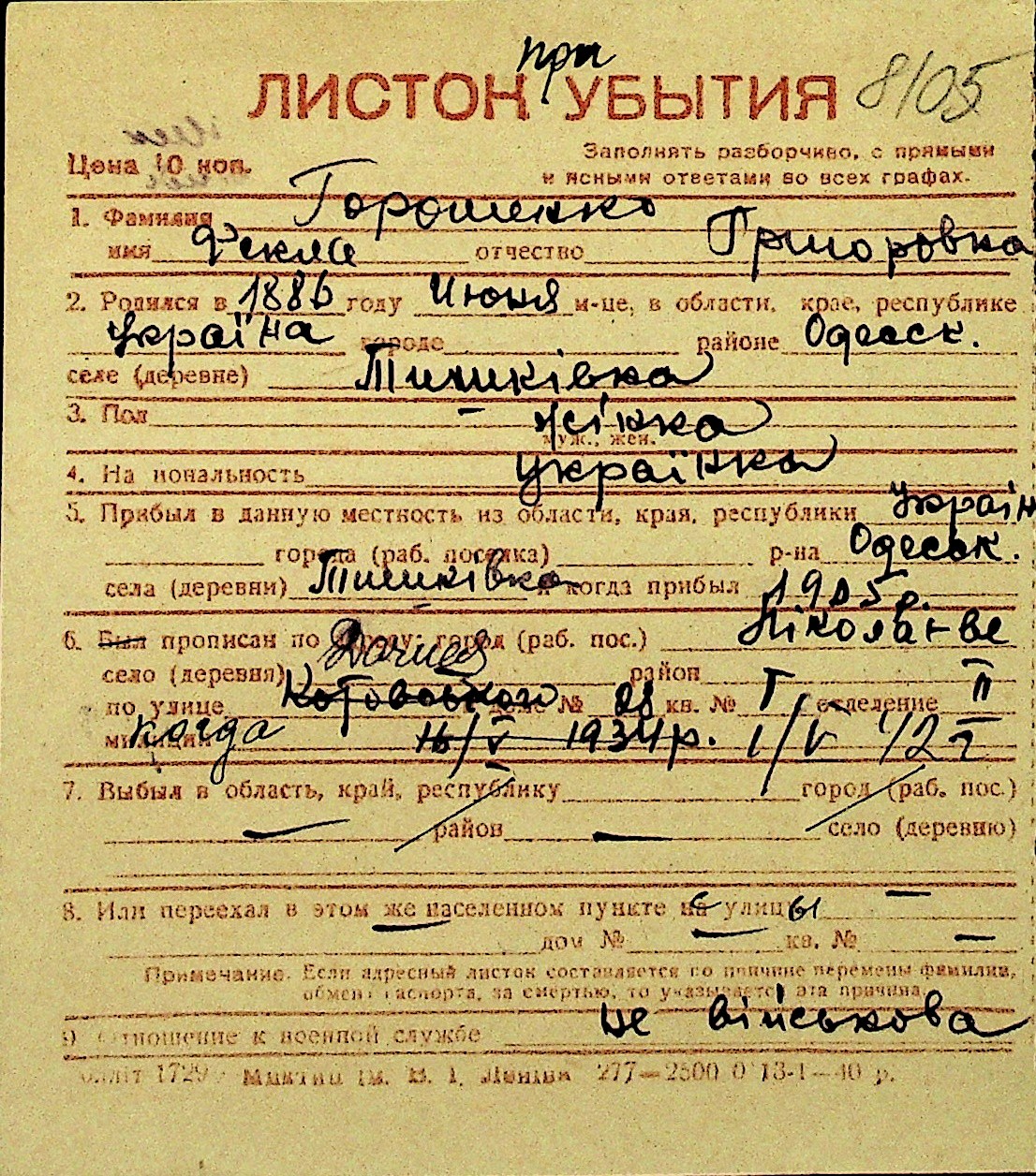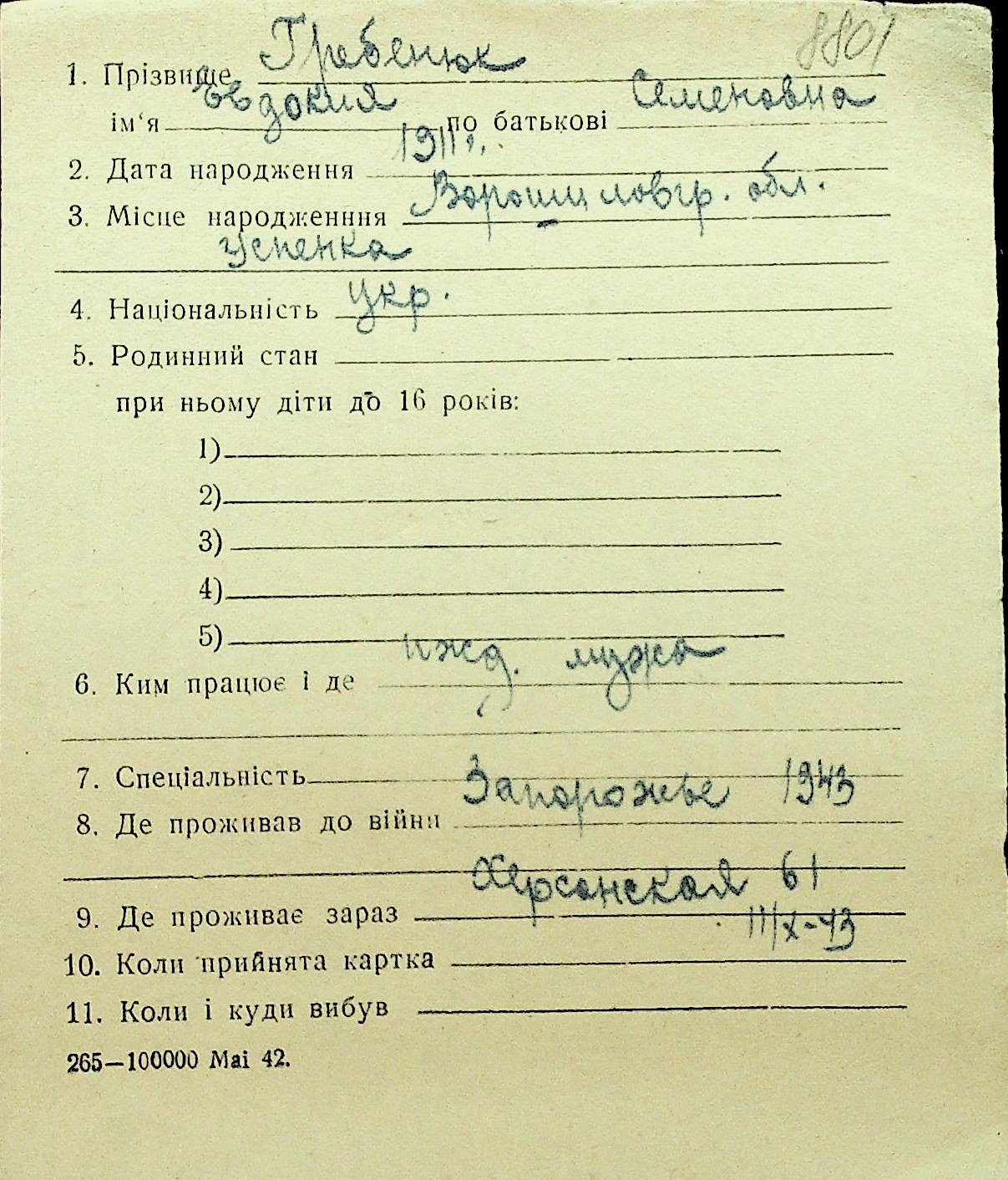 • • Перелік карток до фонду № Н-1016