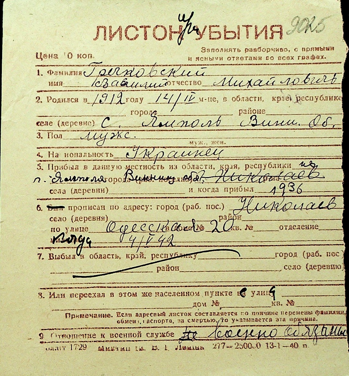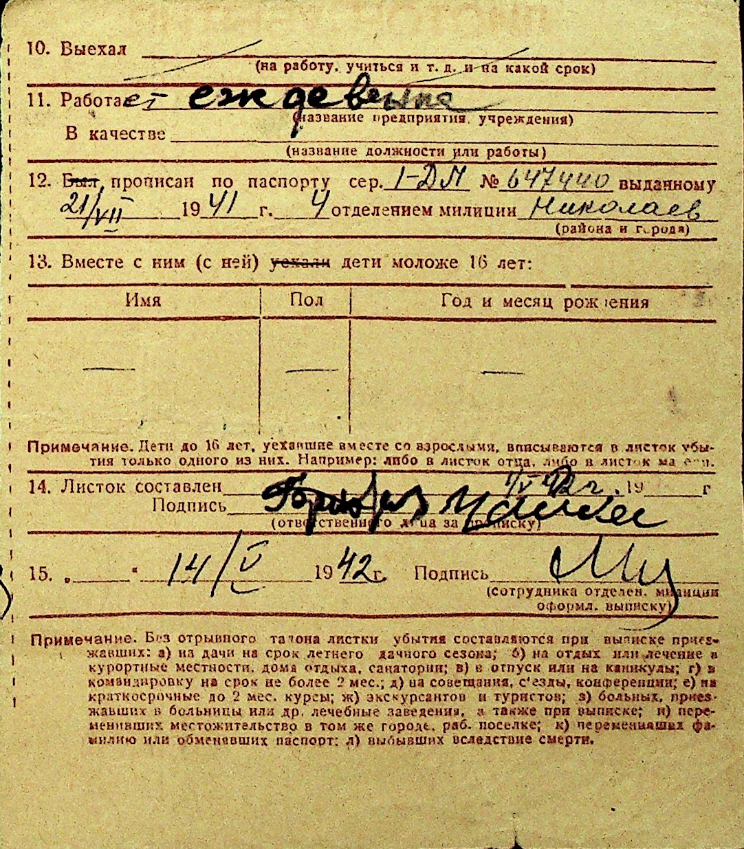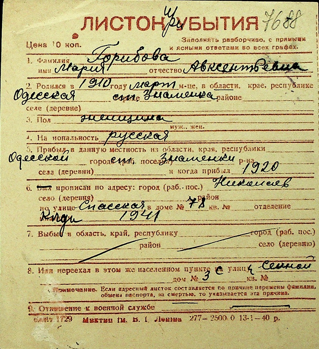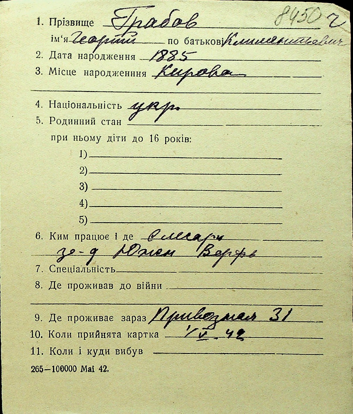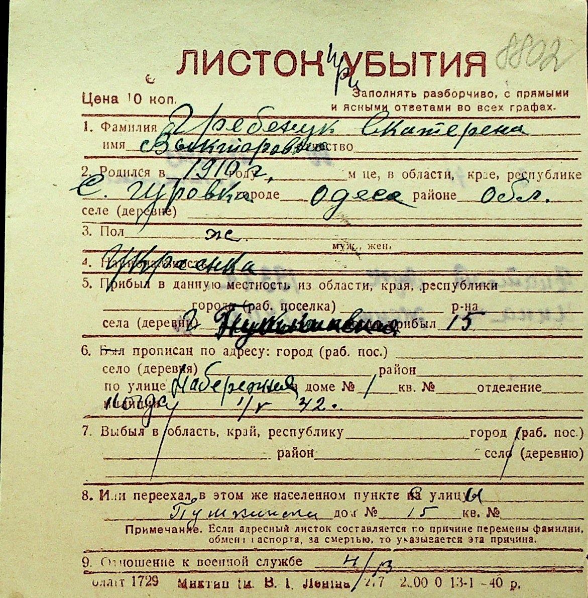 • • Перелік карток до фонду № Н-1016