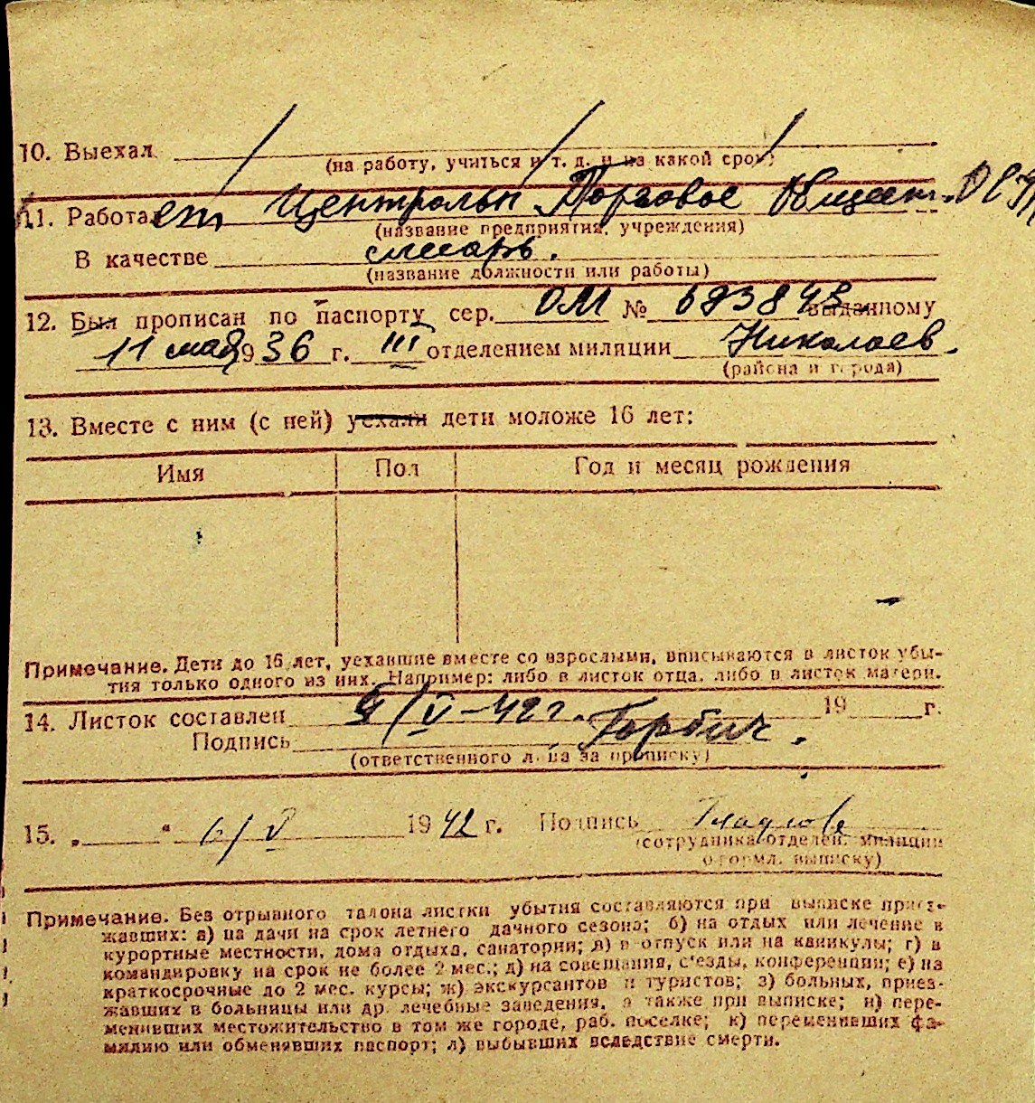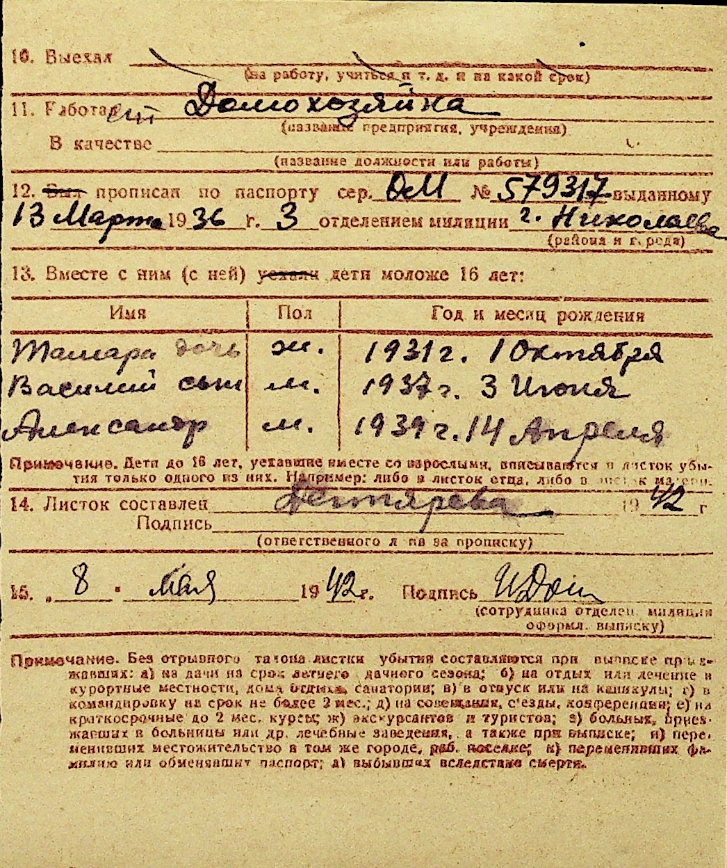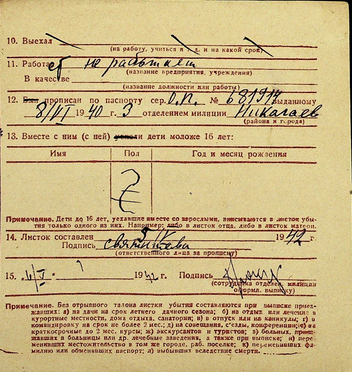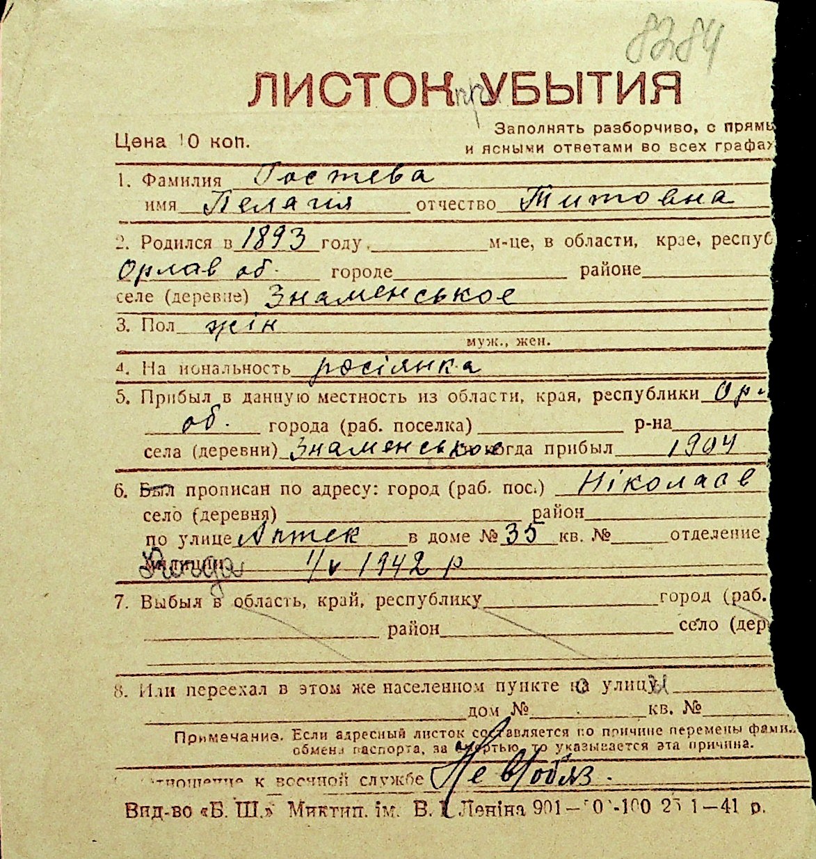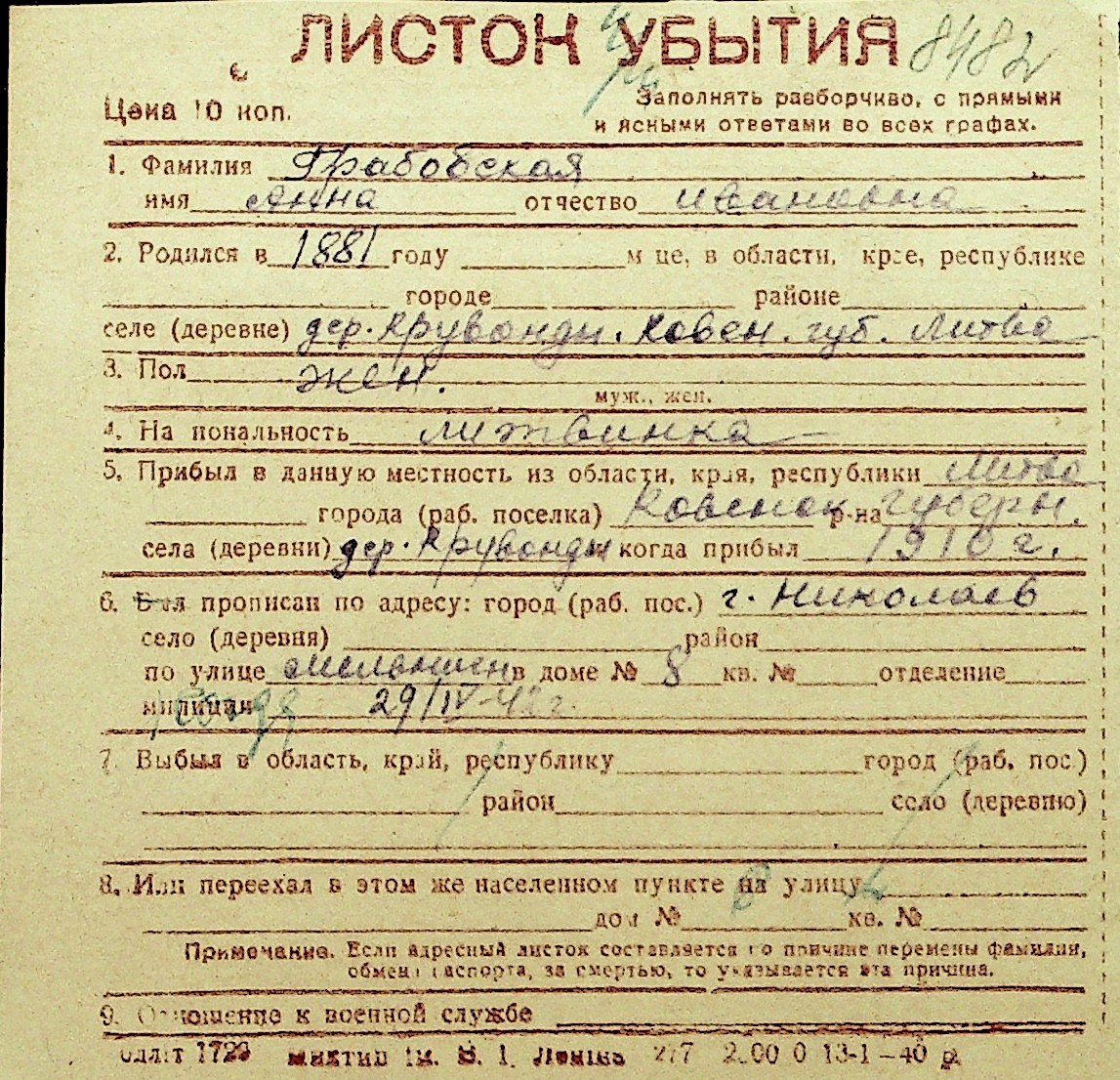 • • Перелік карток до фонду № Н-1016