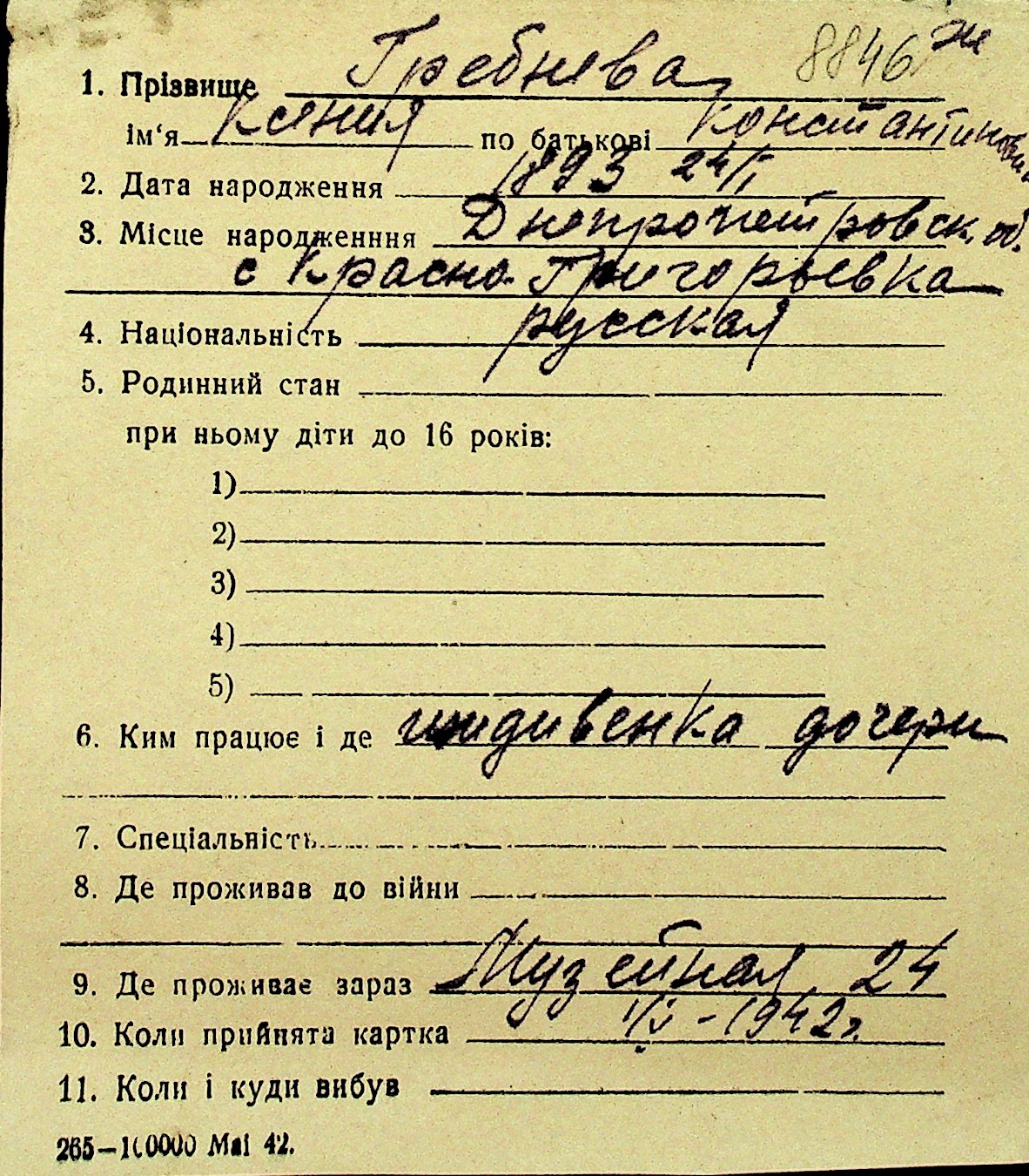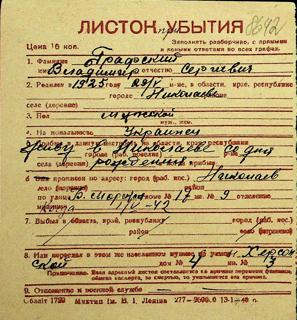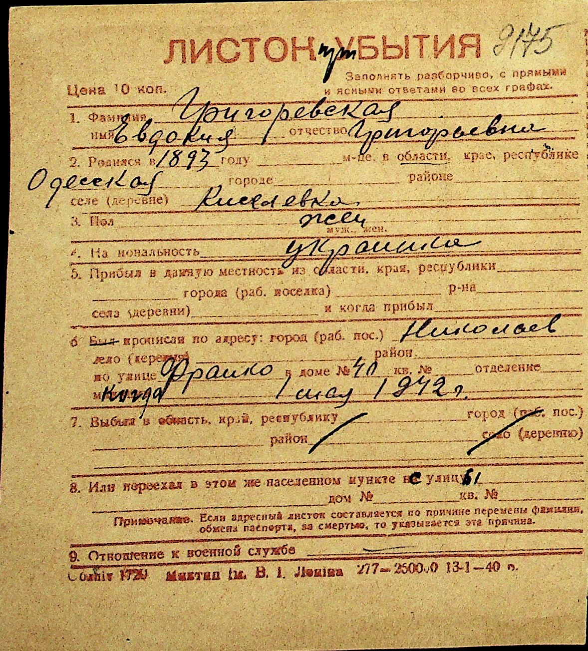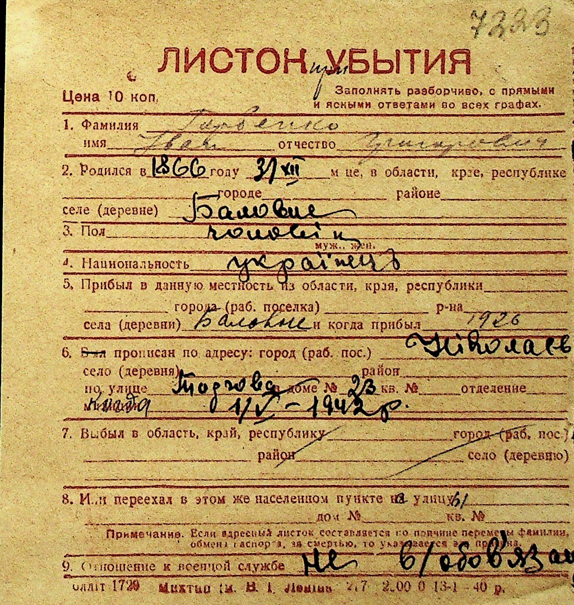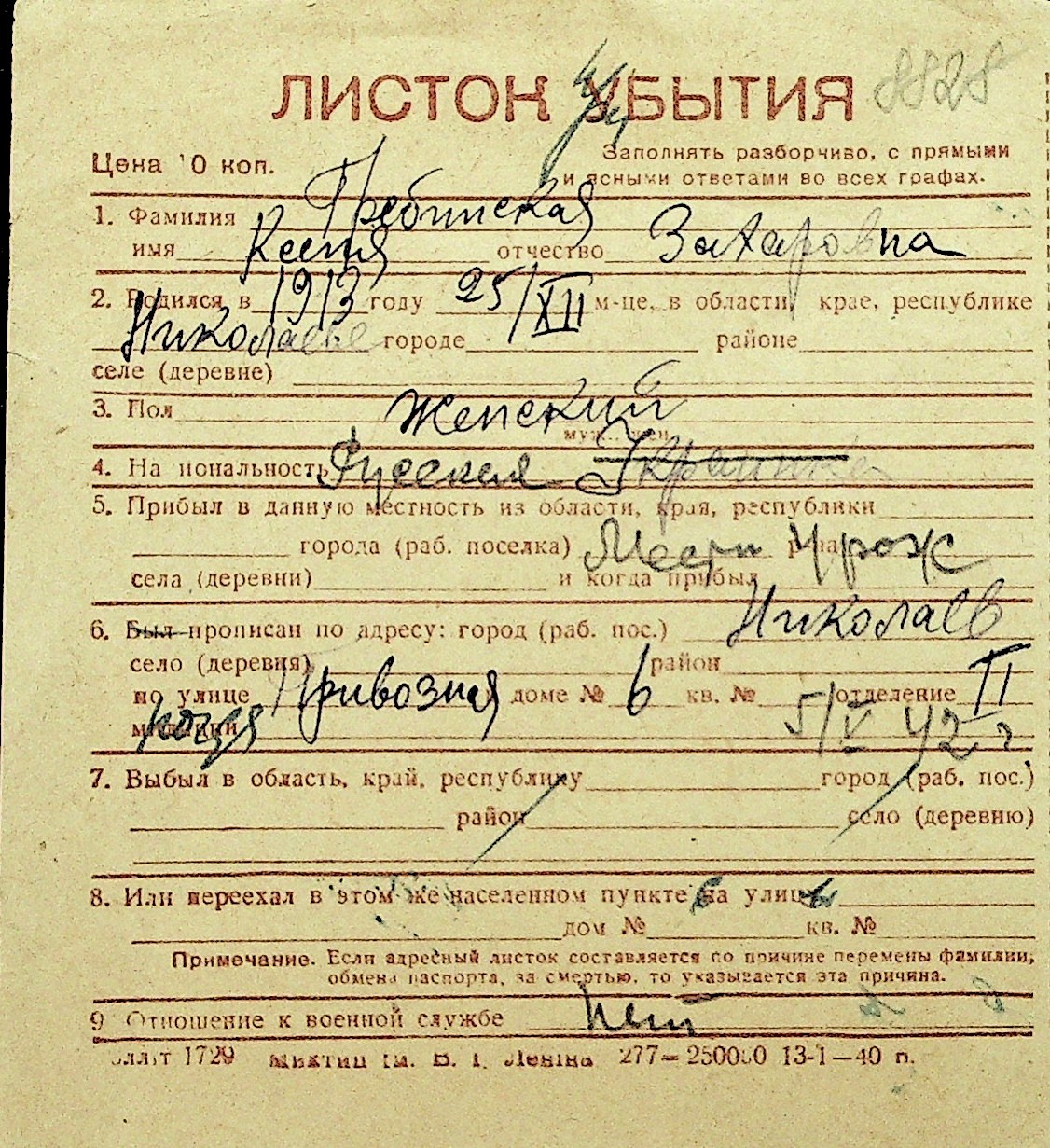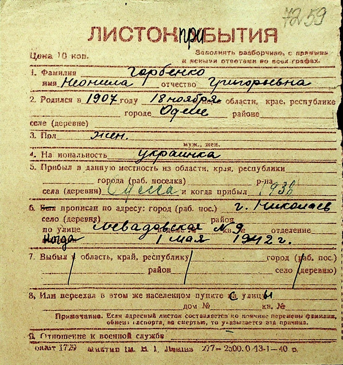 • • Перелік карток до фонду № Н-1016