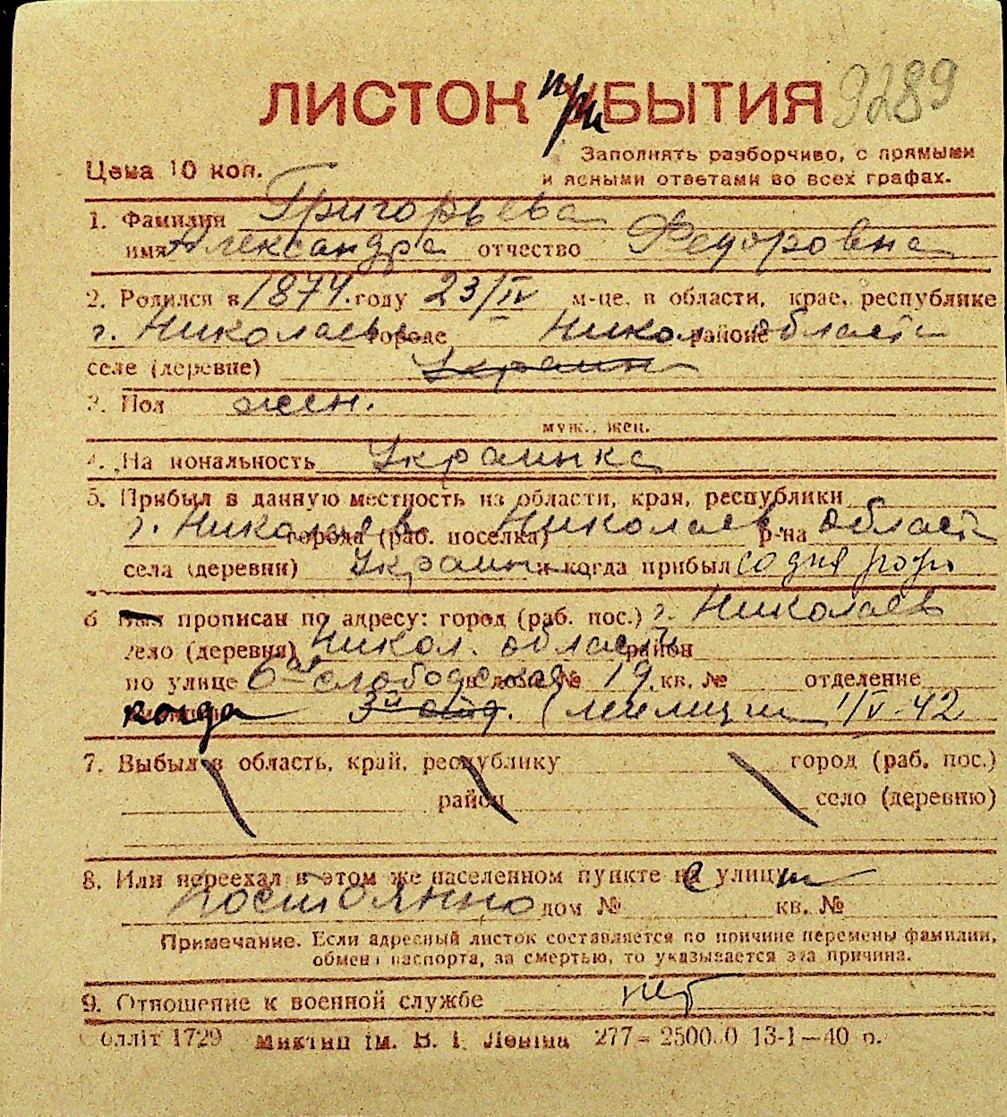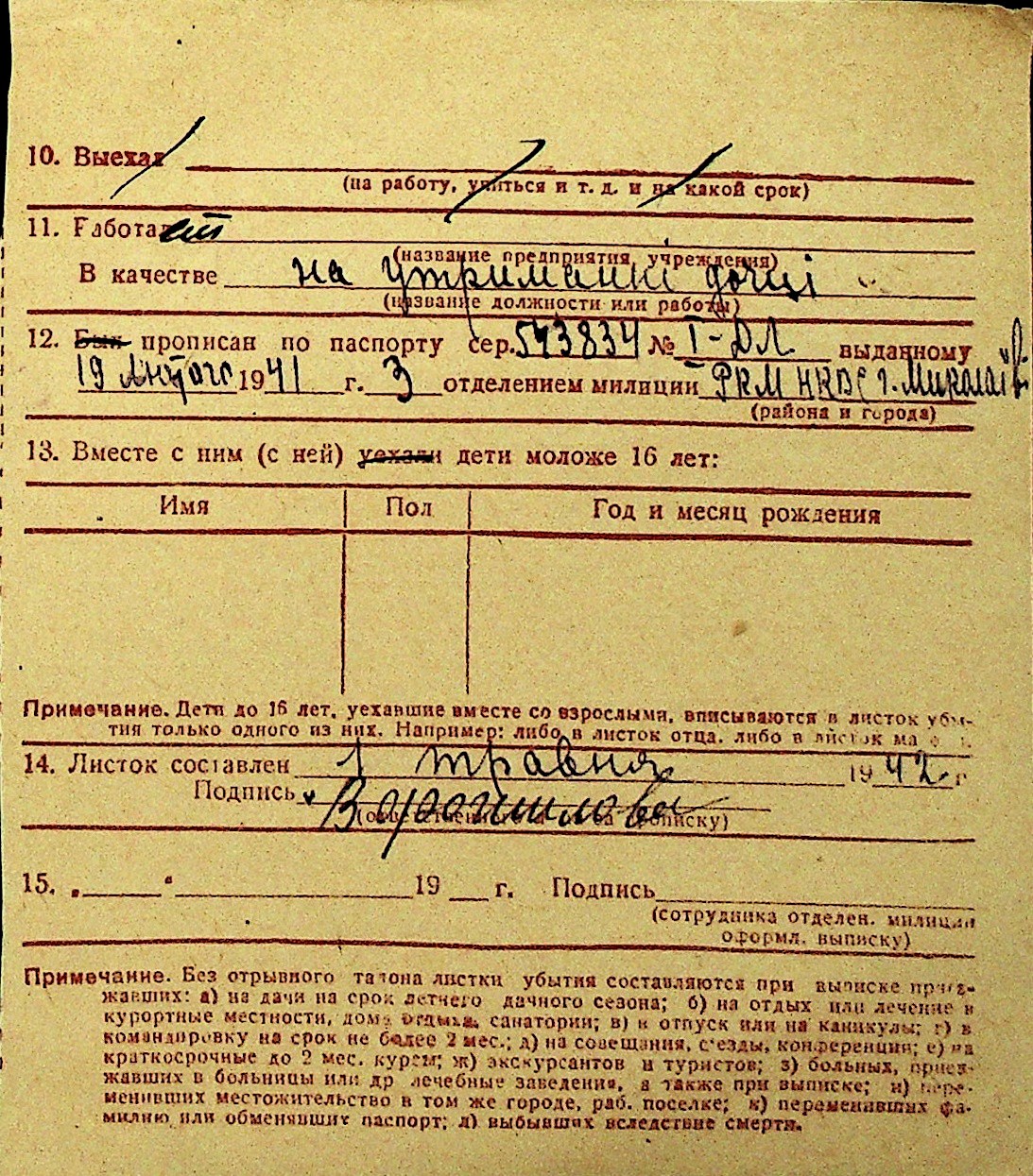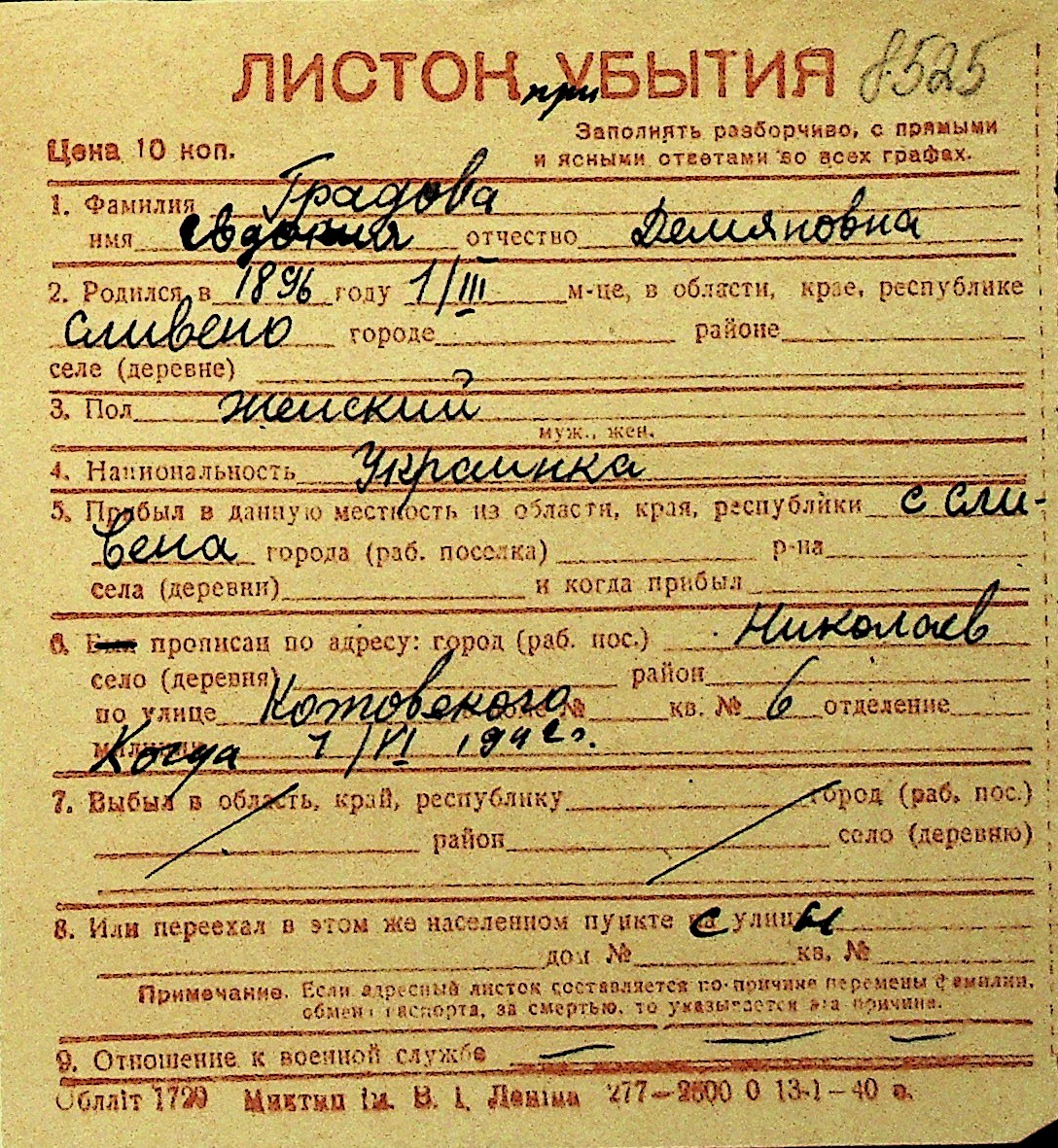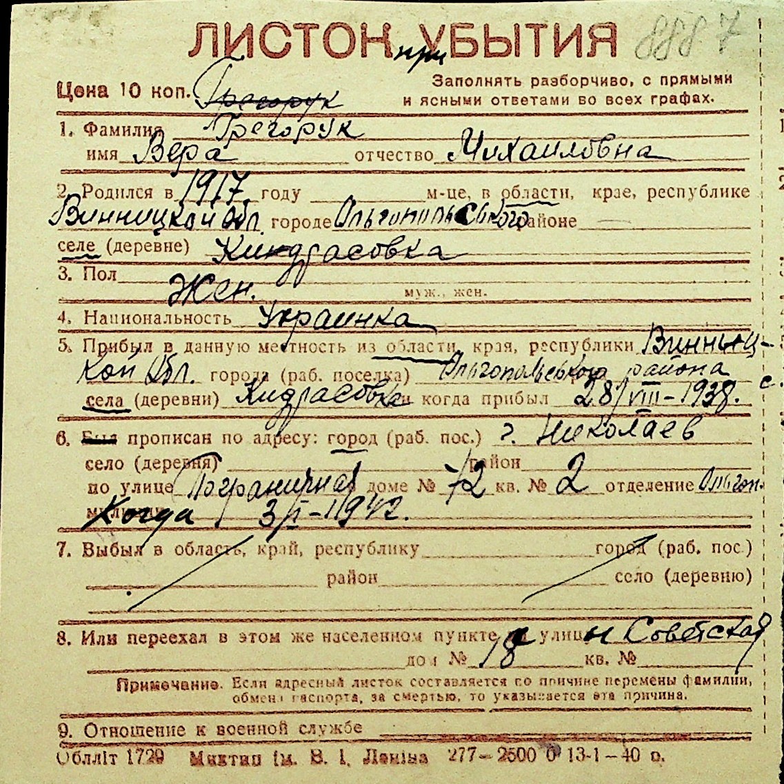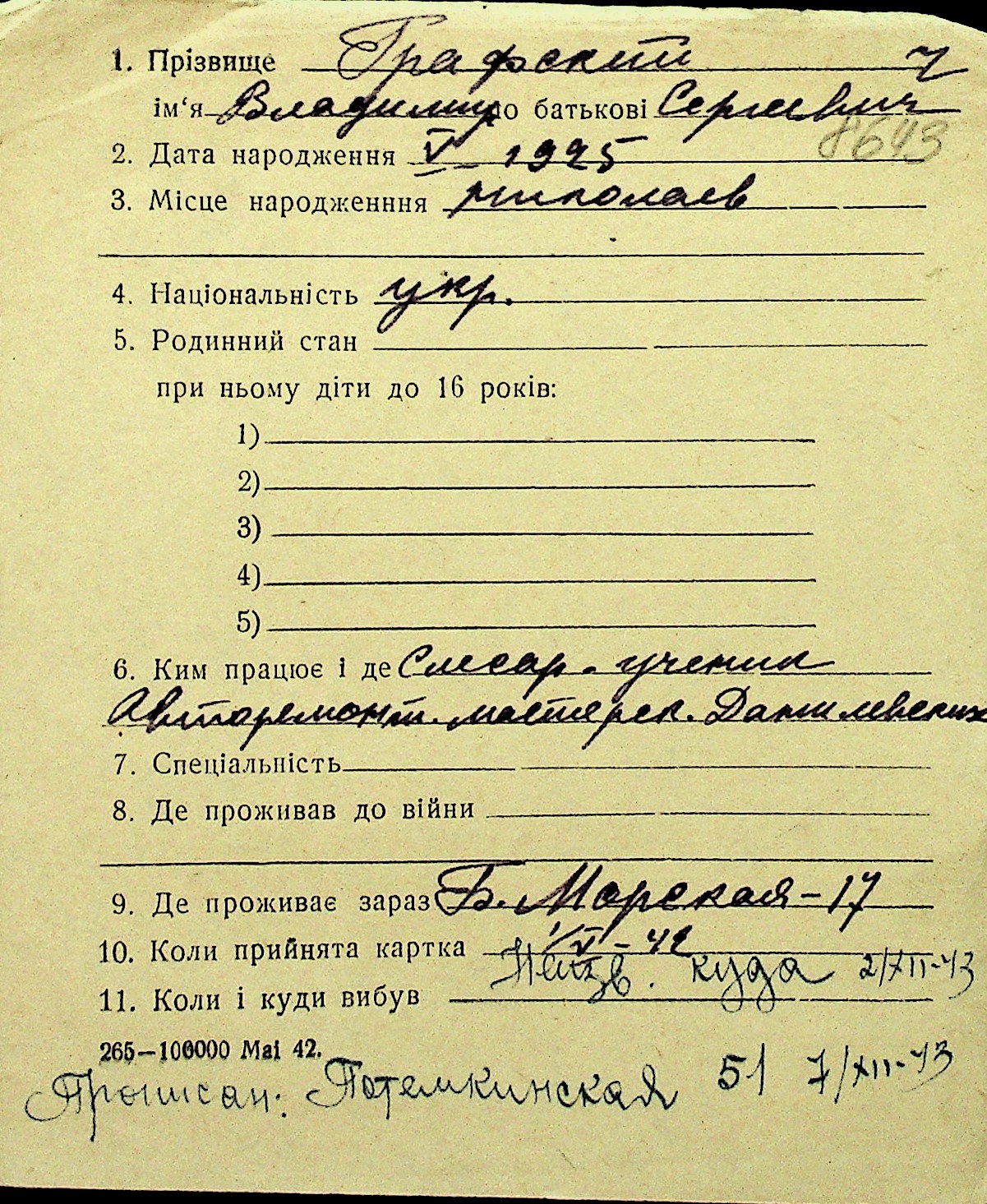 • • Перелік карток до фонду № Н-1016