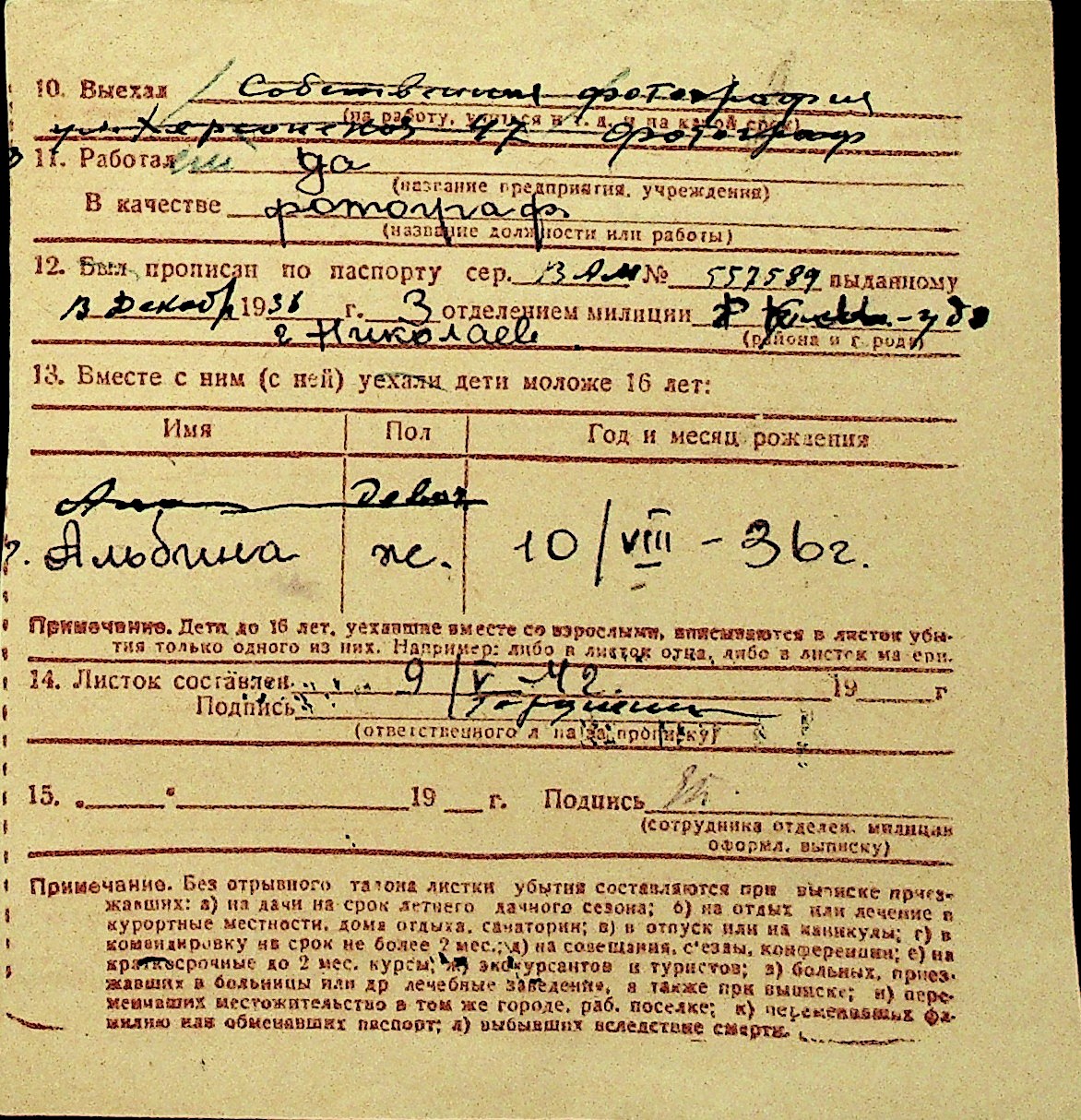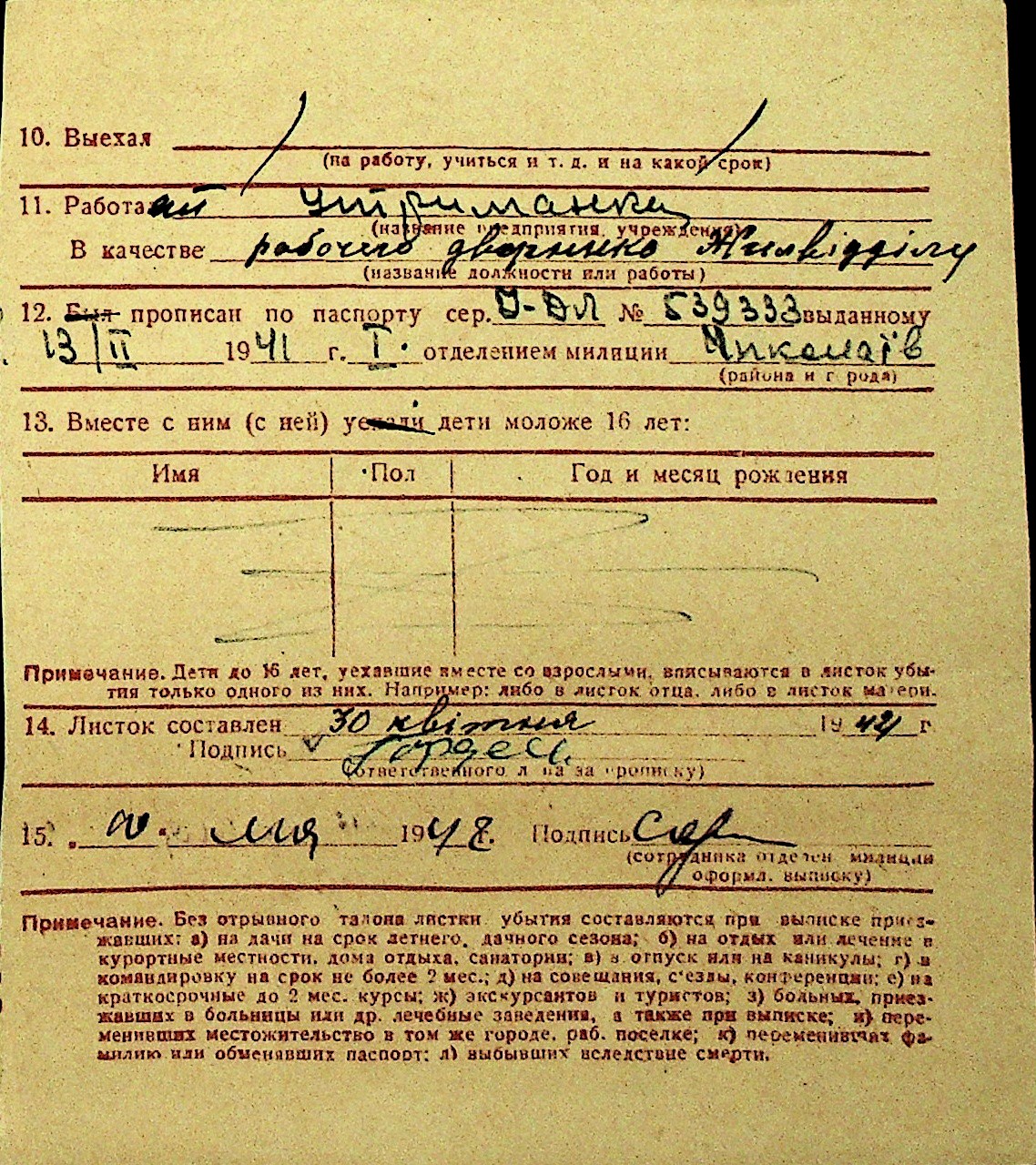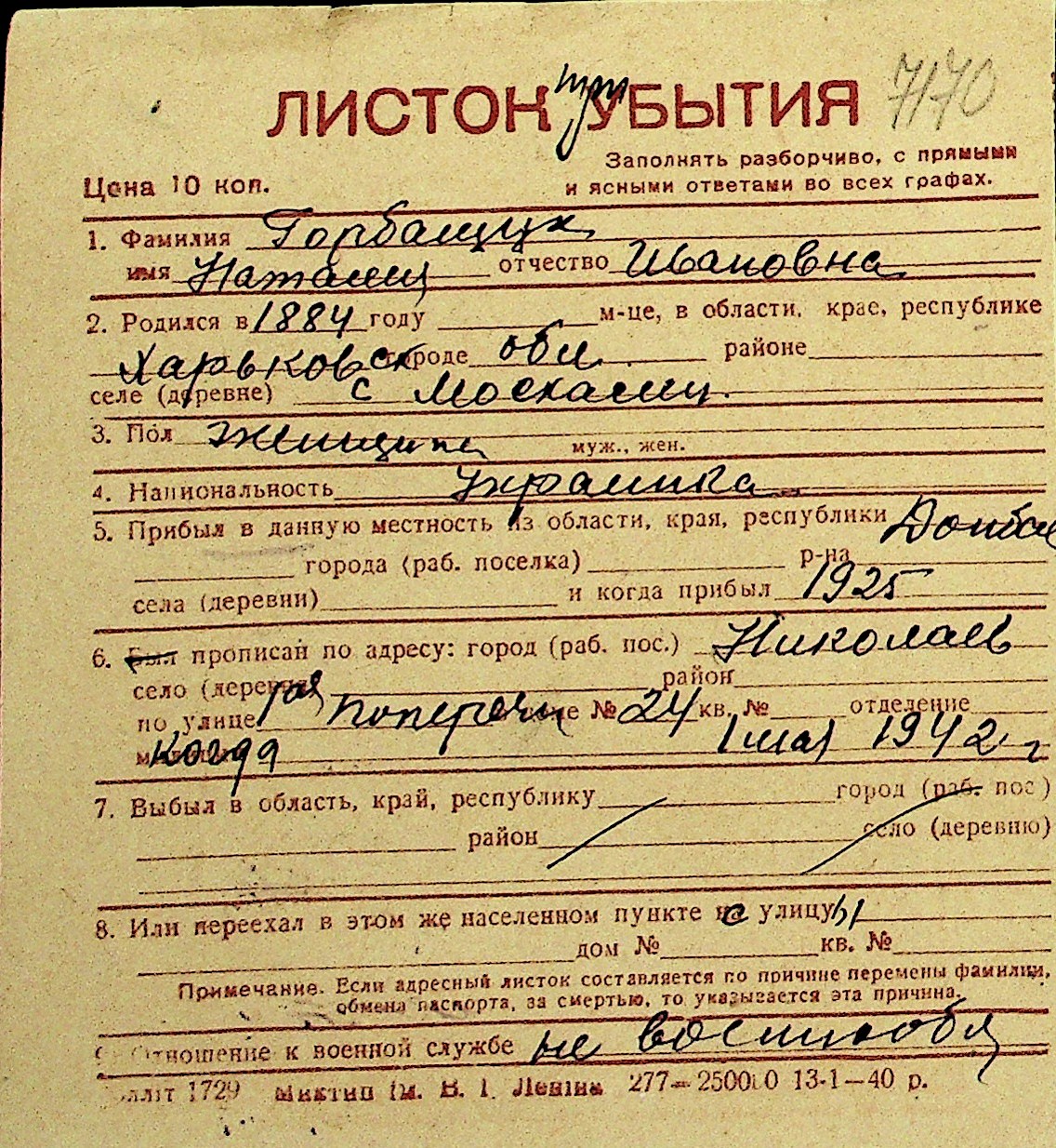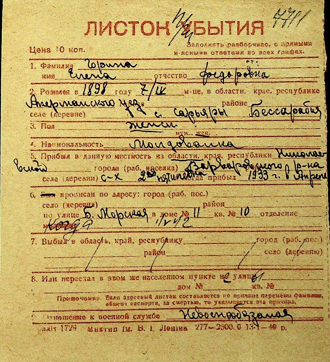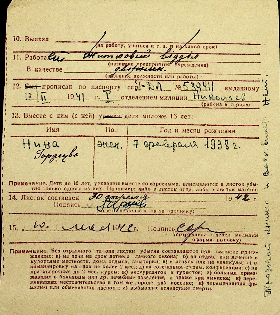 • • Перелік карток до фонду № Н-1016