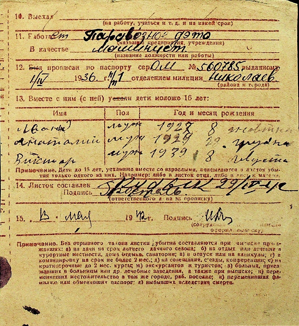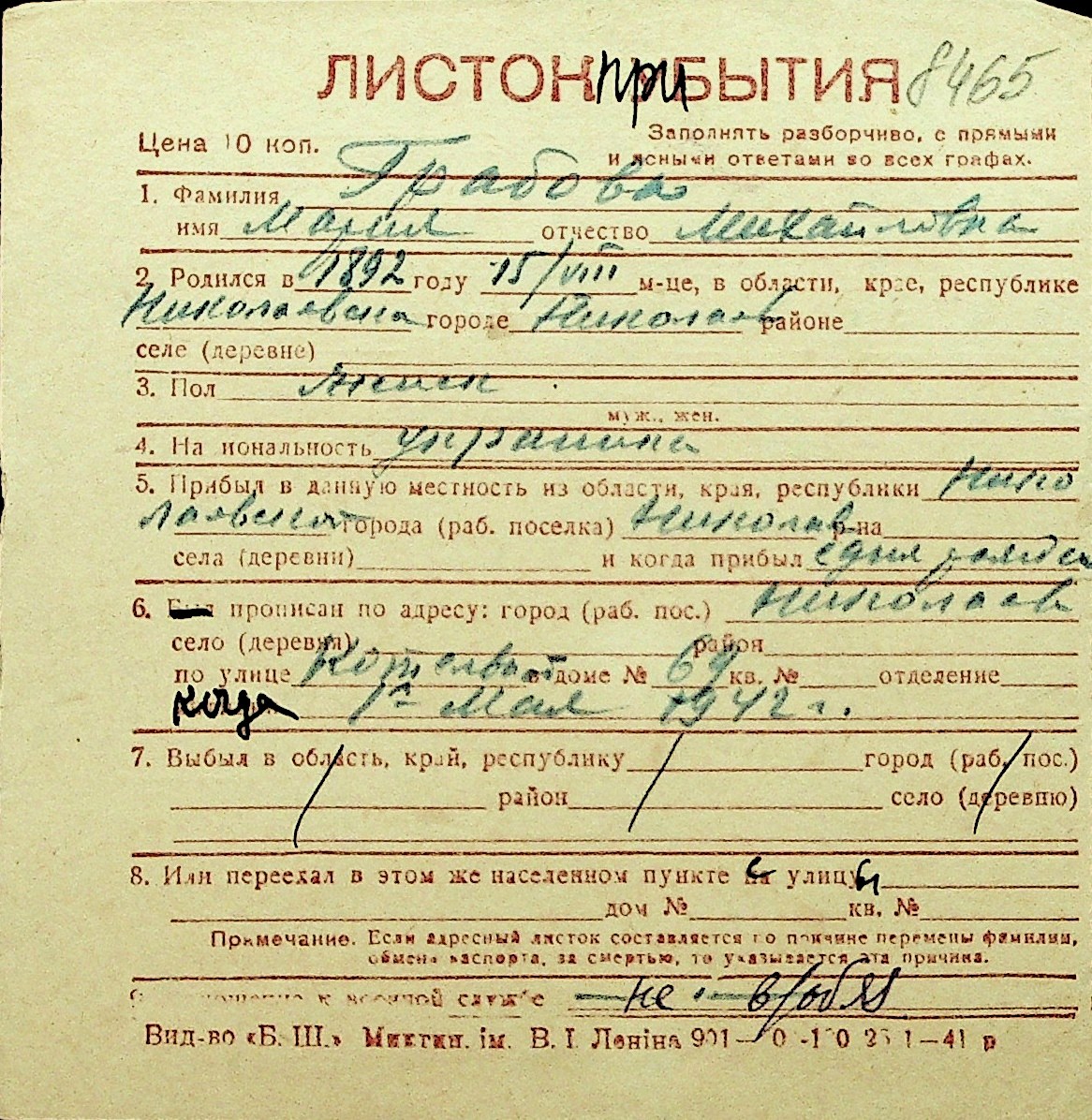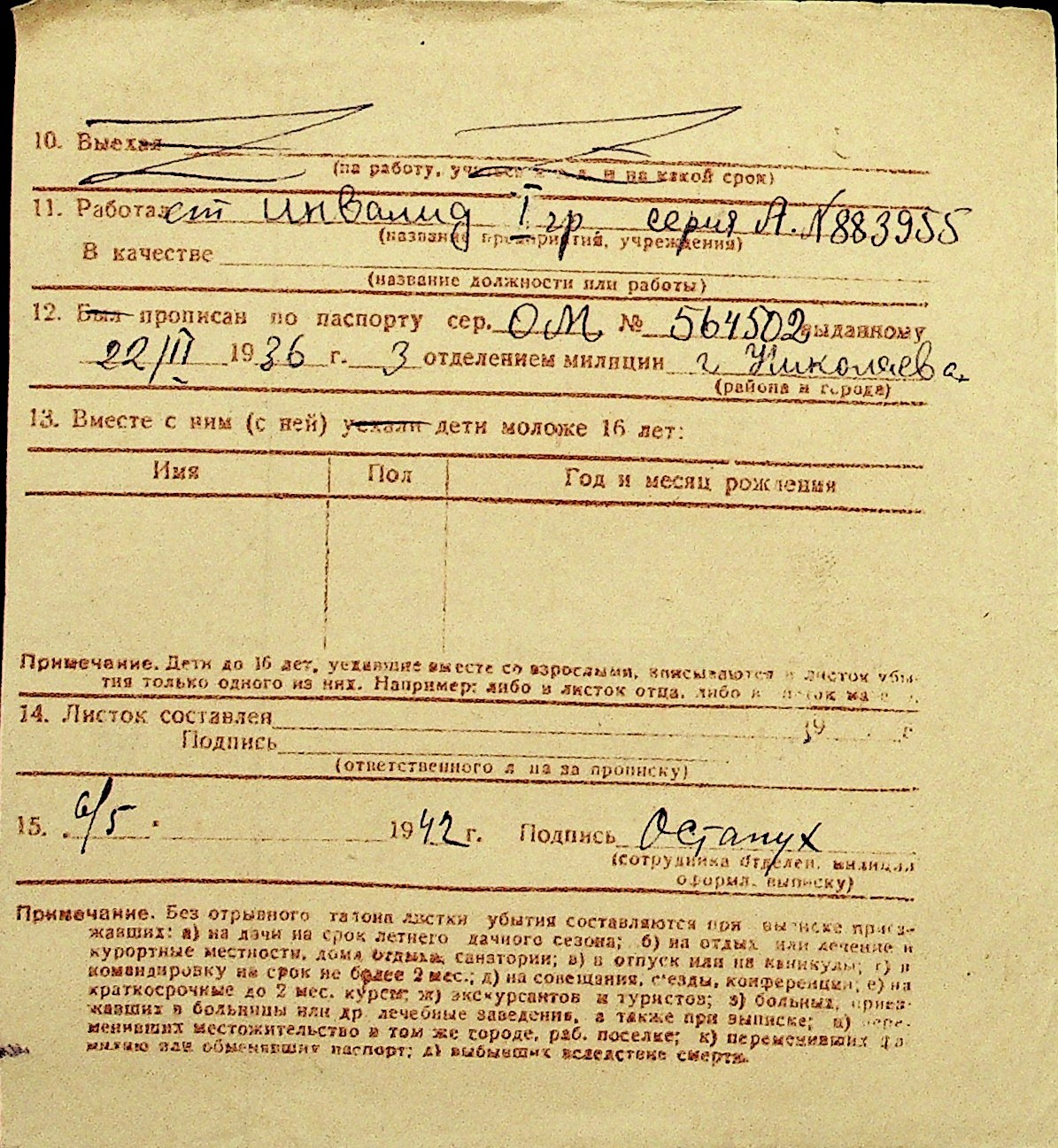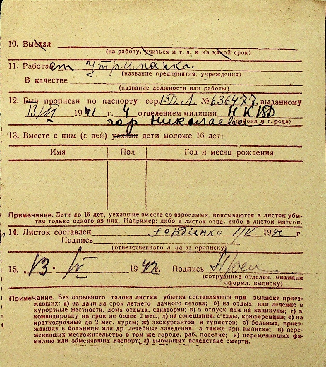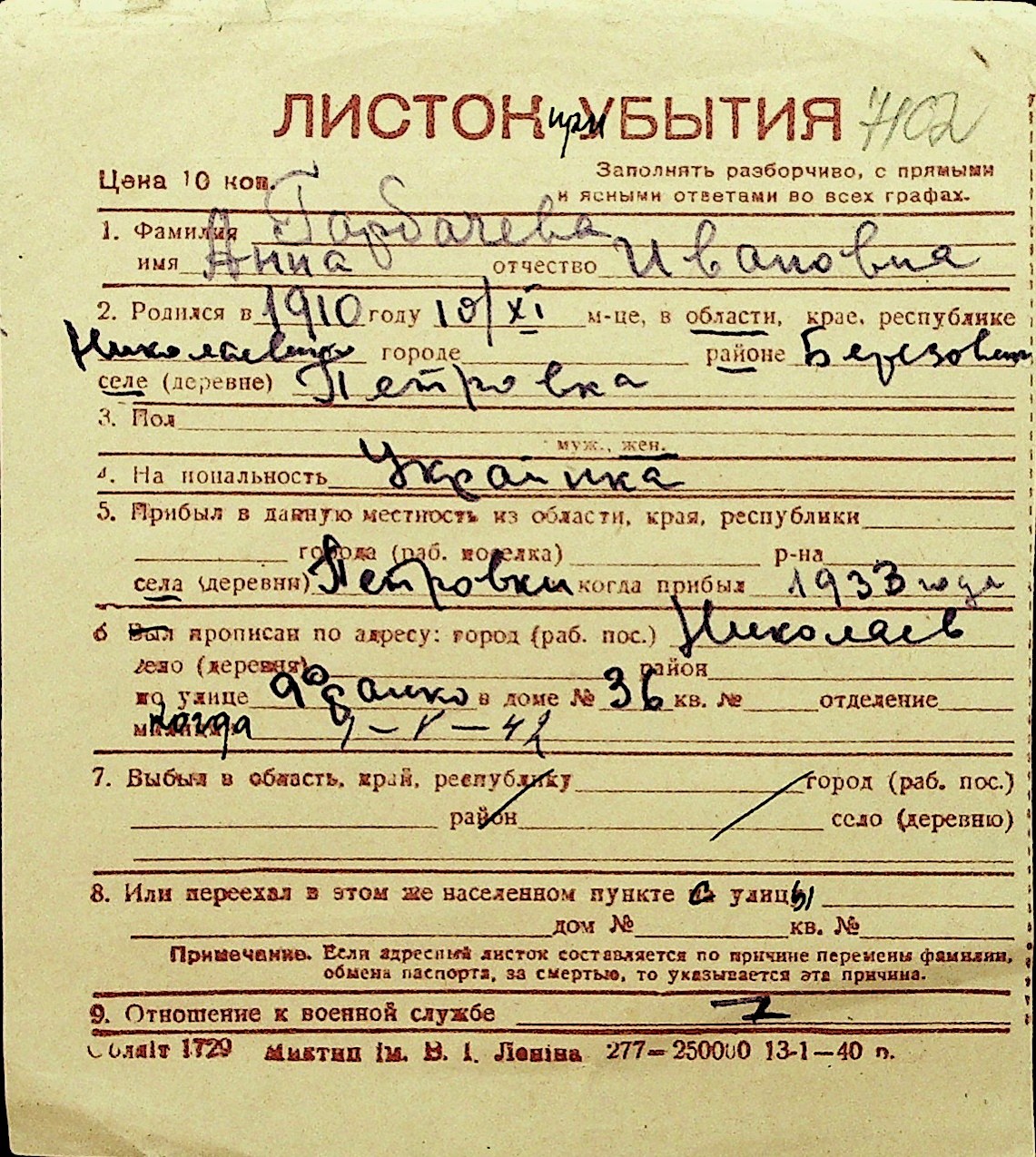 • • Перелік карток до фонду № Н-1016