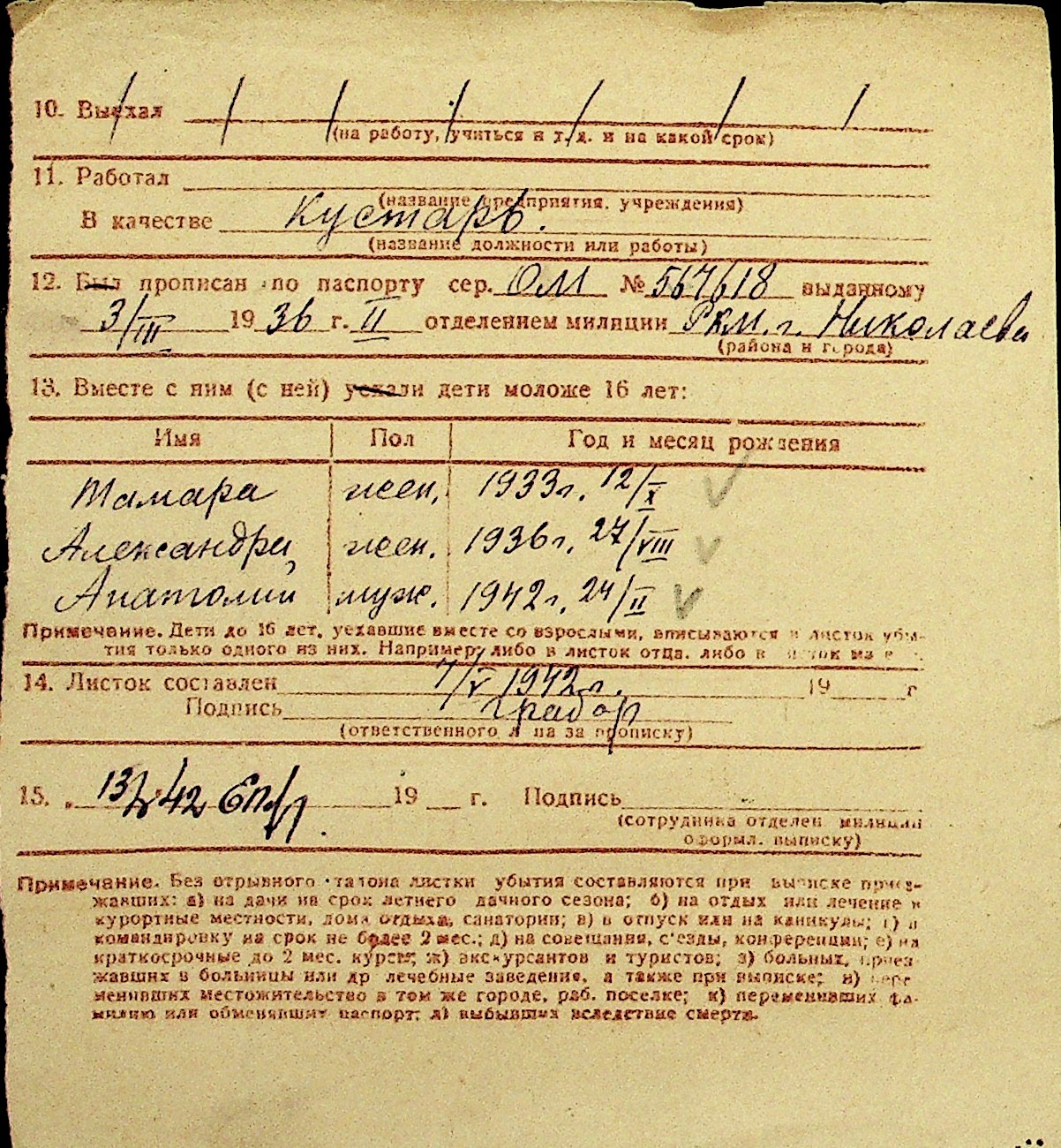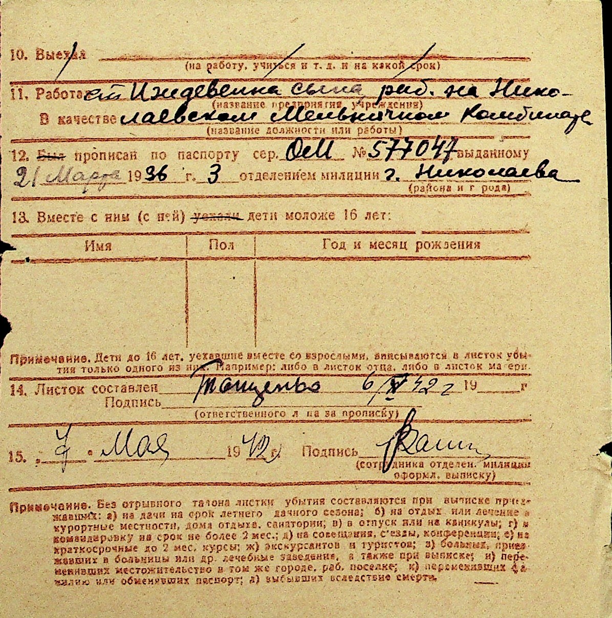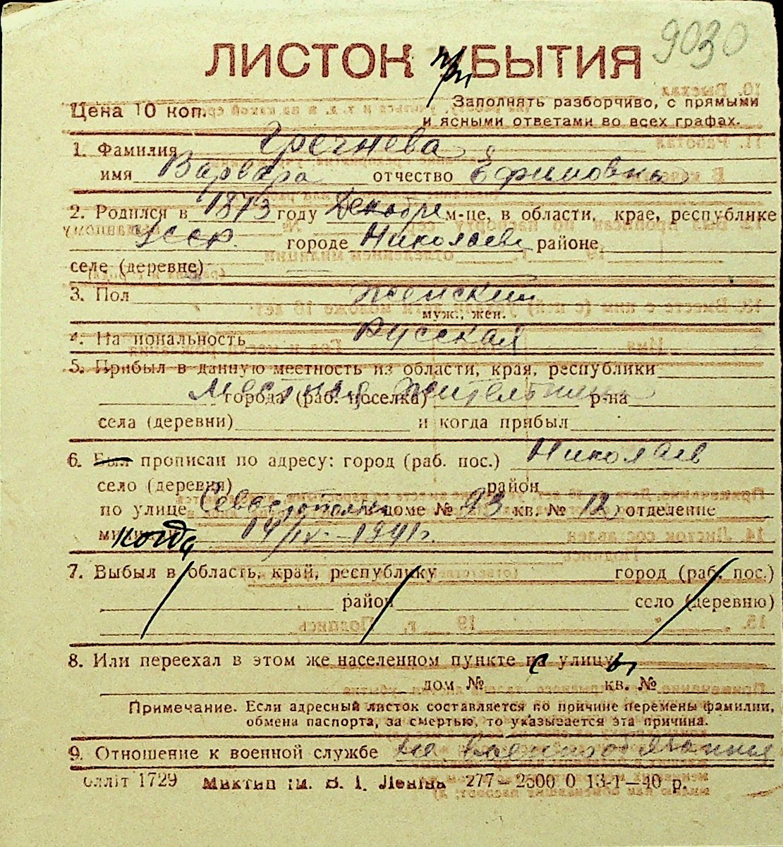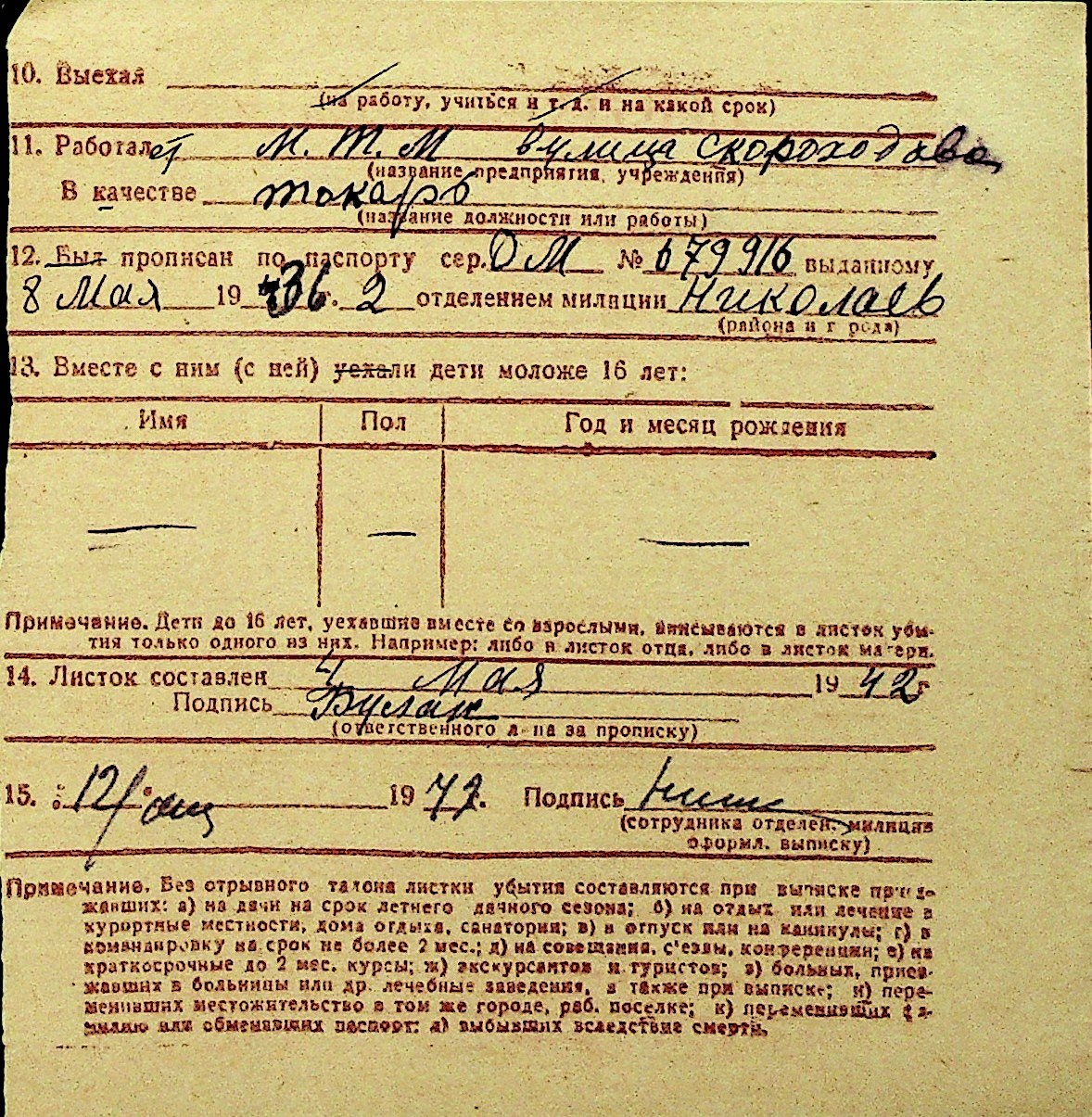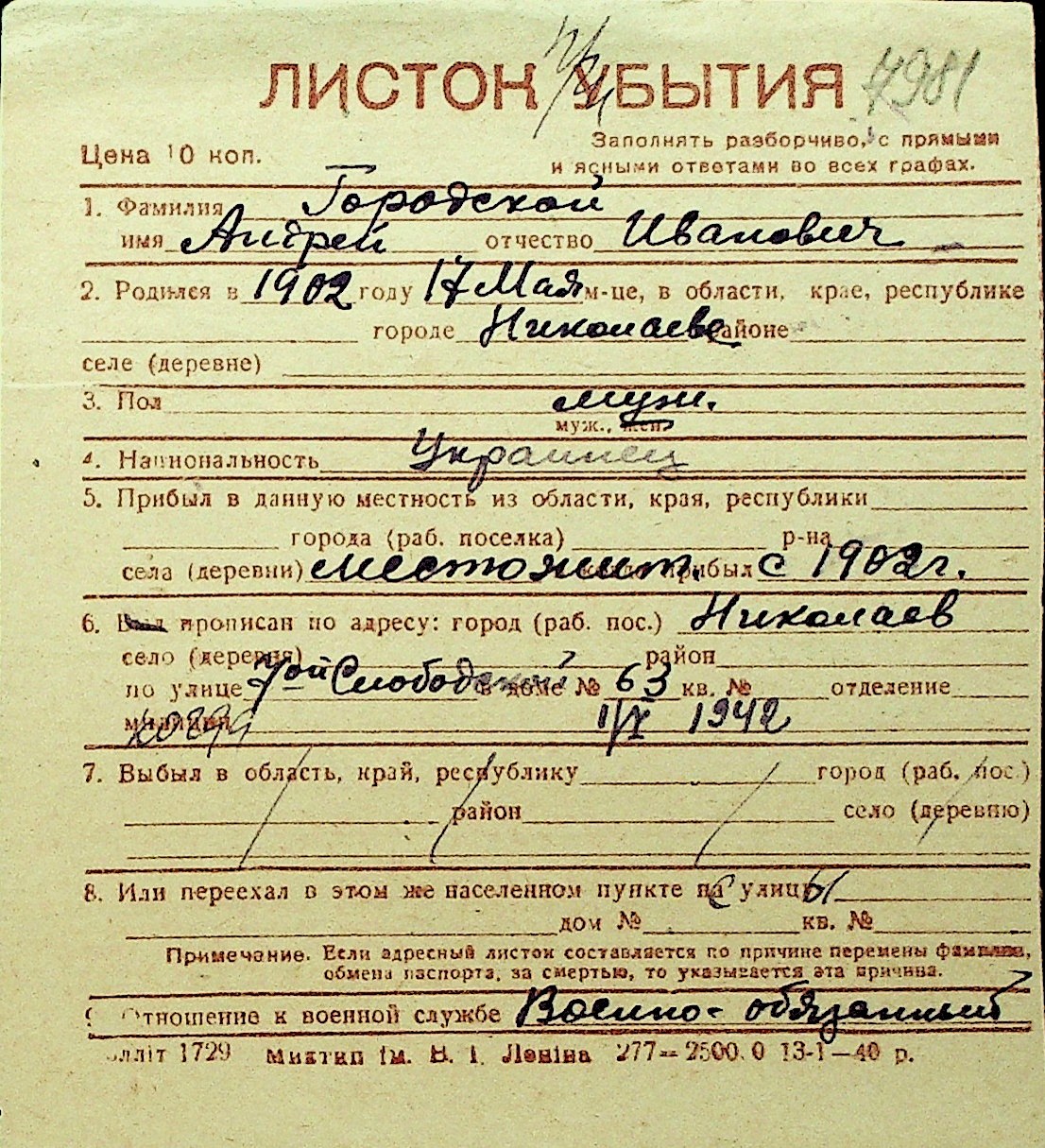 • • Перелік карток до фонду № Н-1016