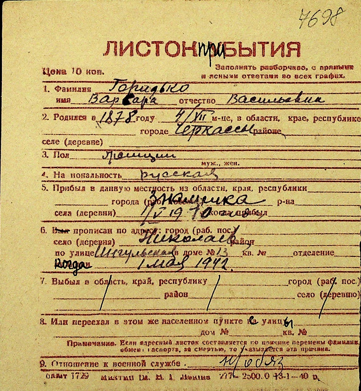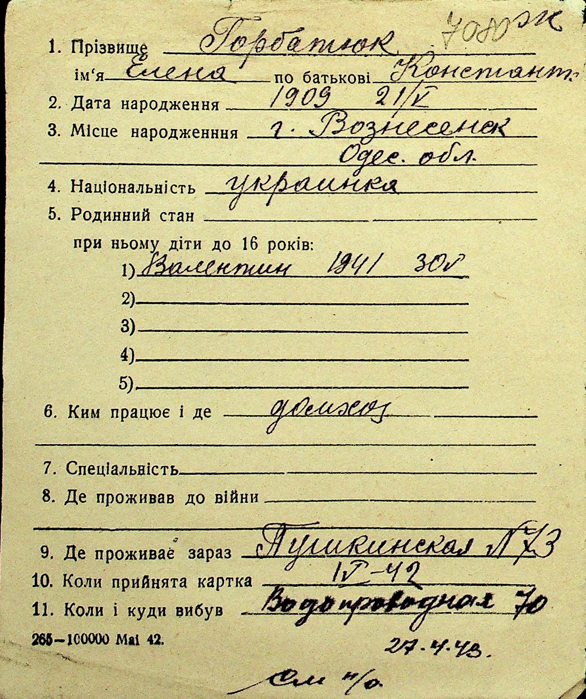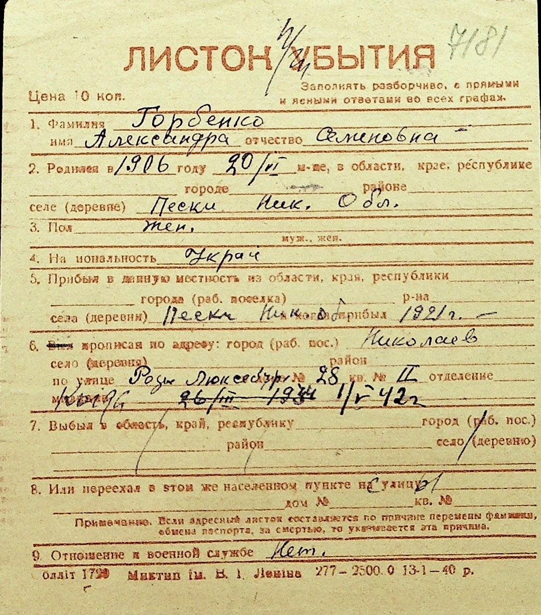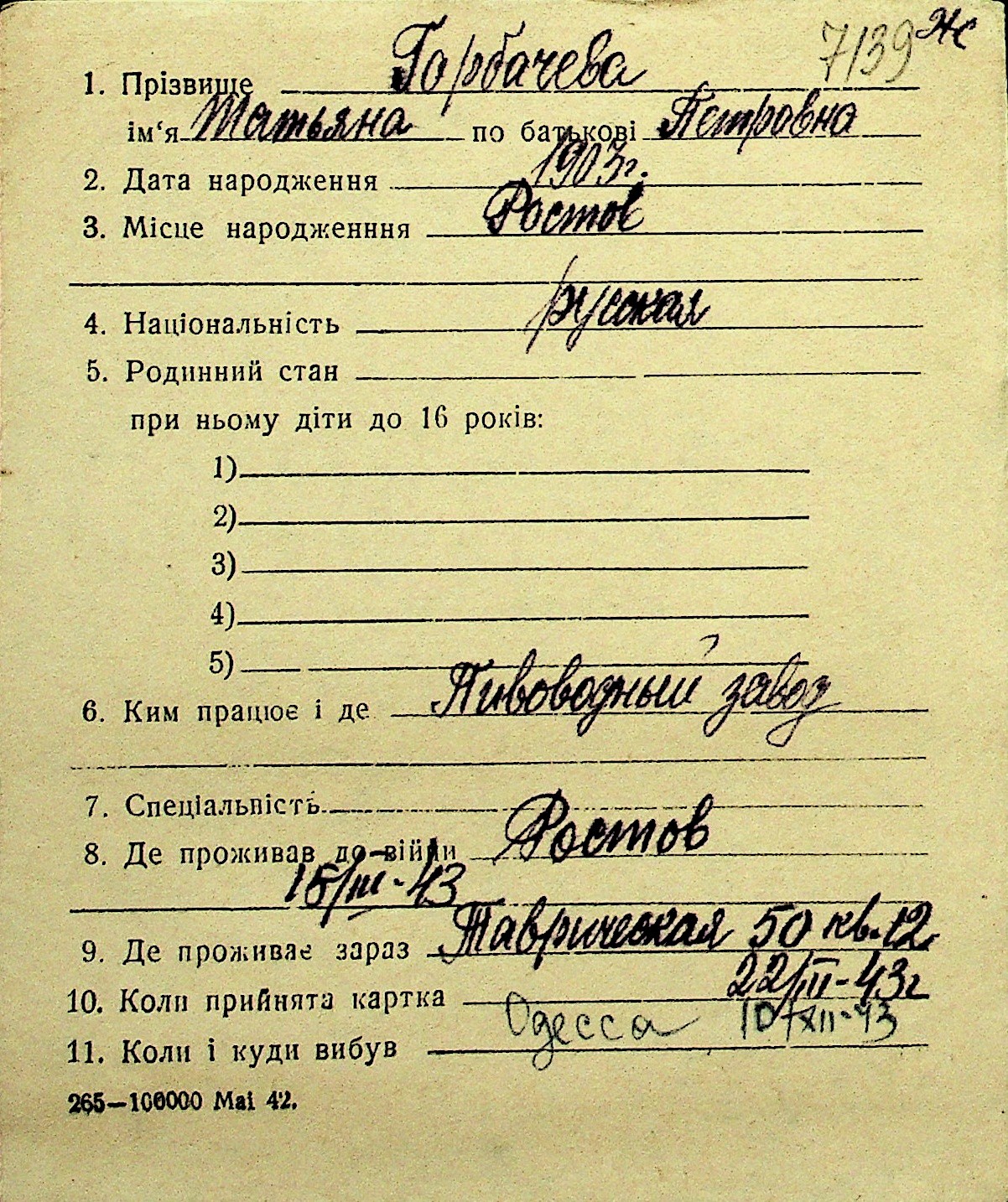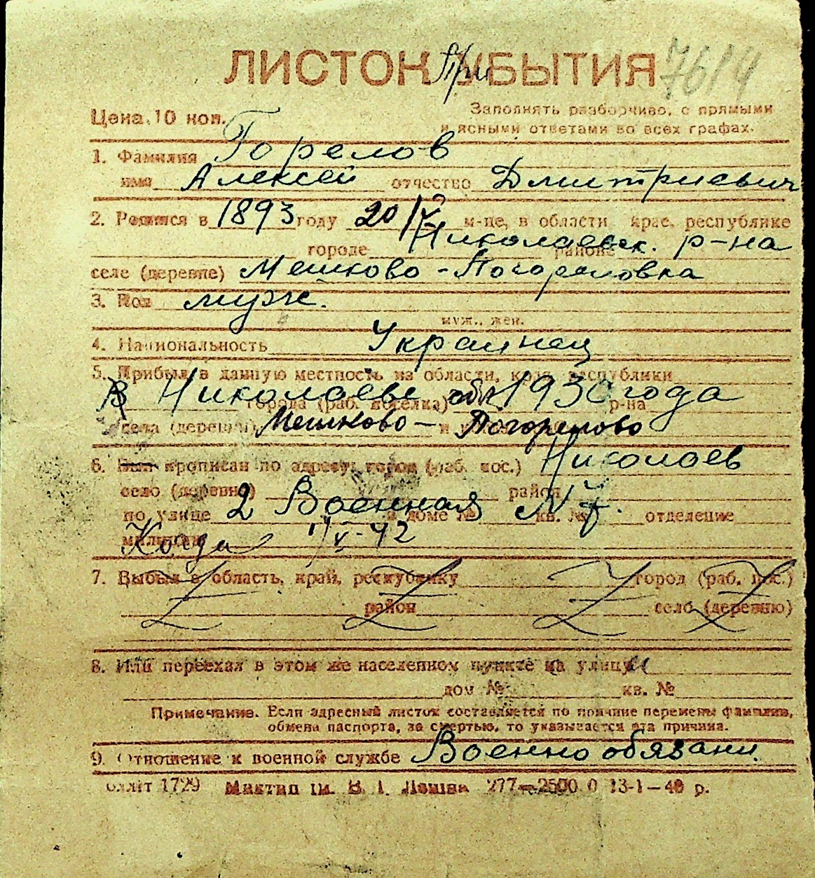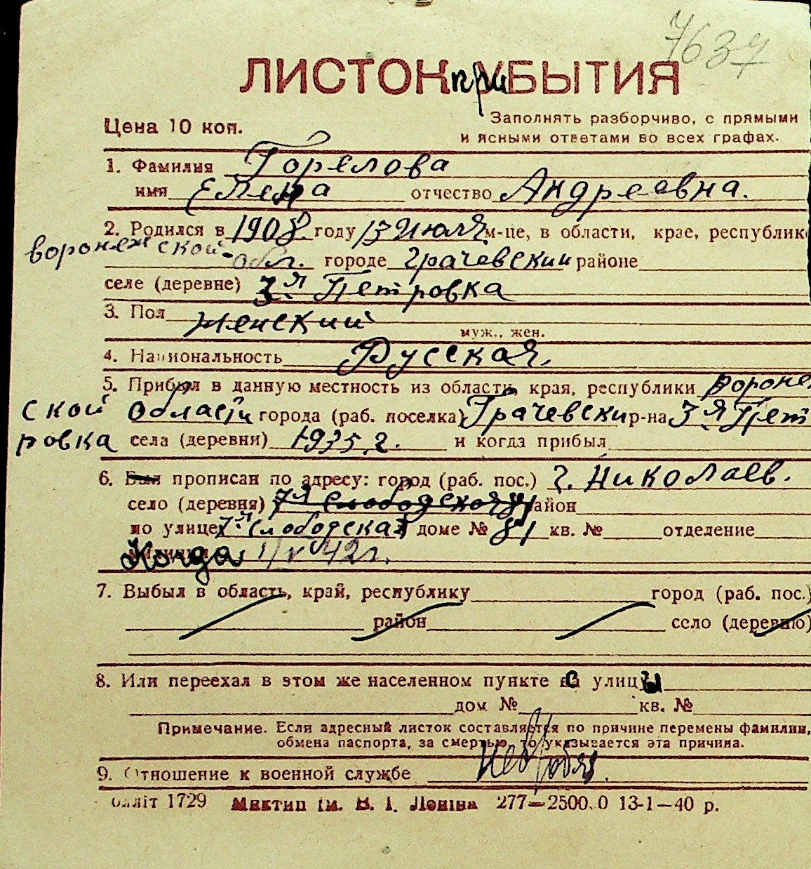 • • Перелік карток до фонду № Н-1016