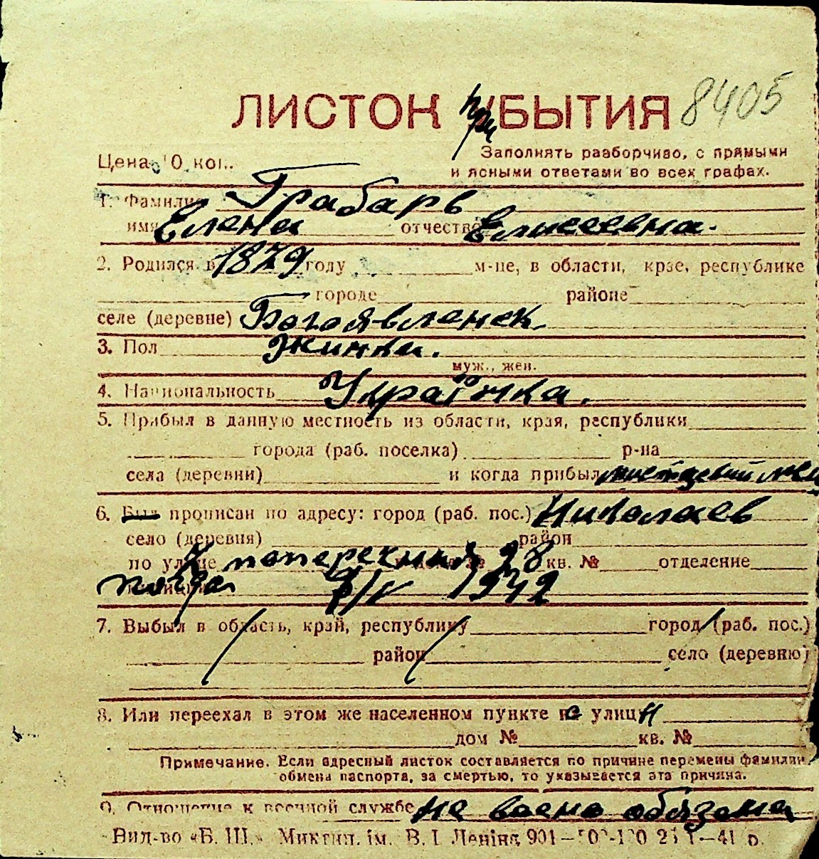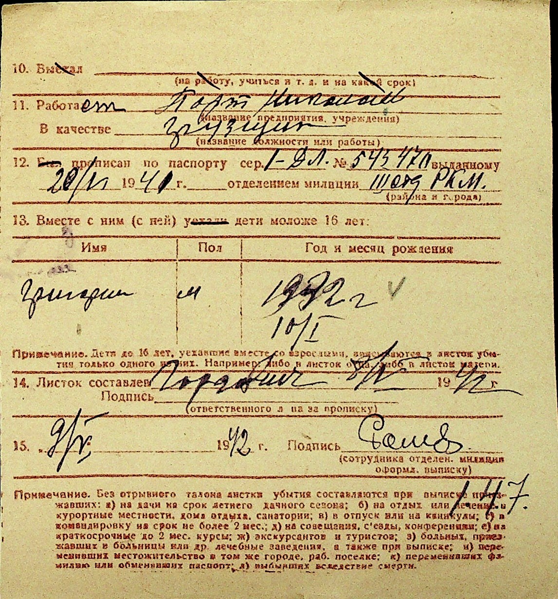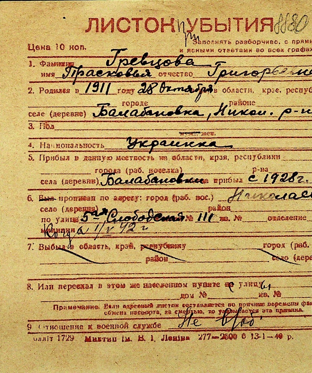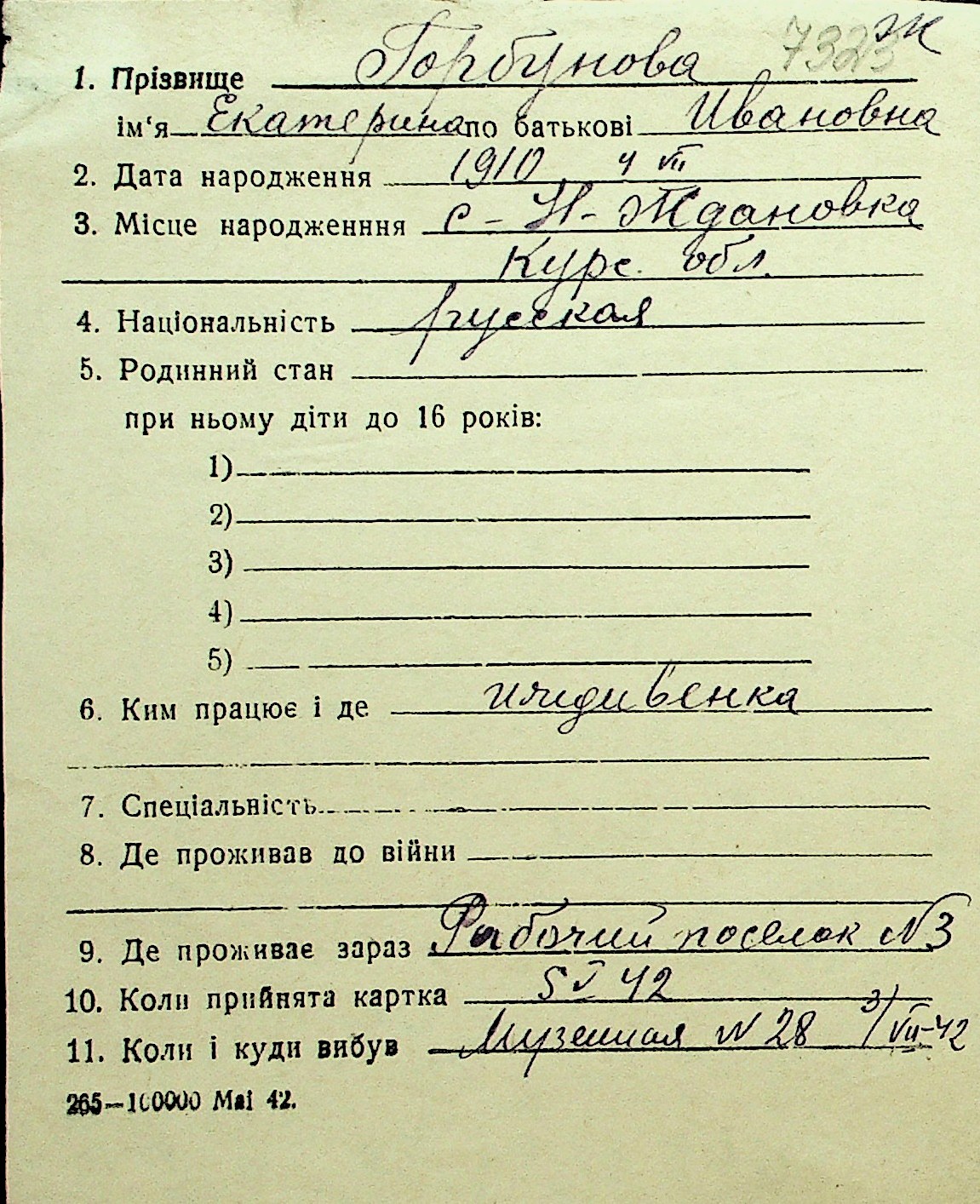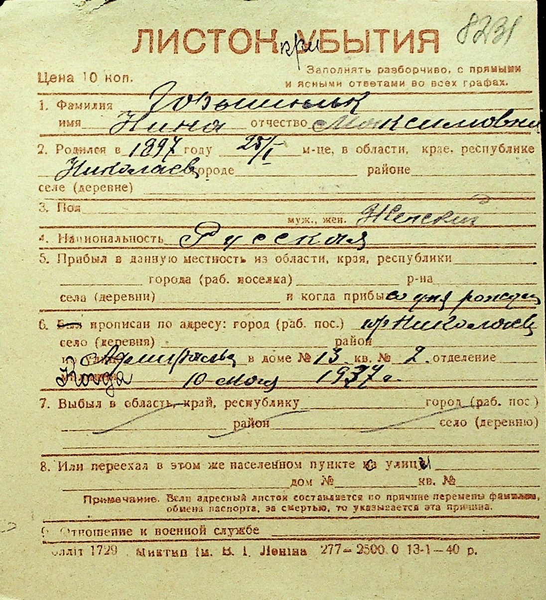 • • Перелік карток до фонду № Н-1016