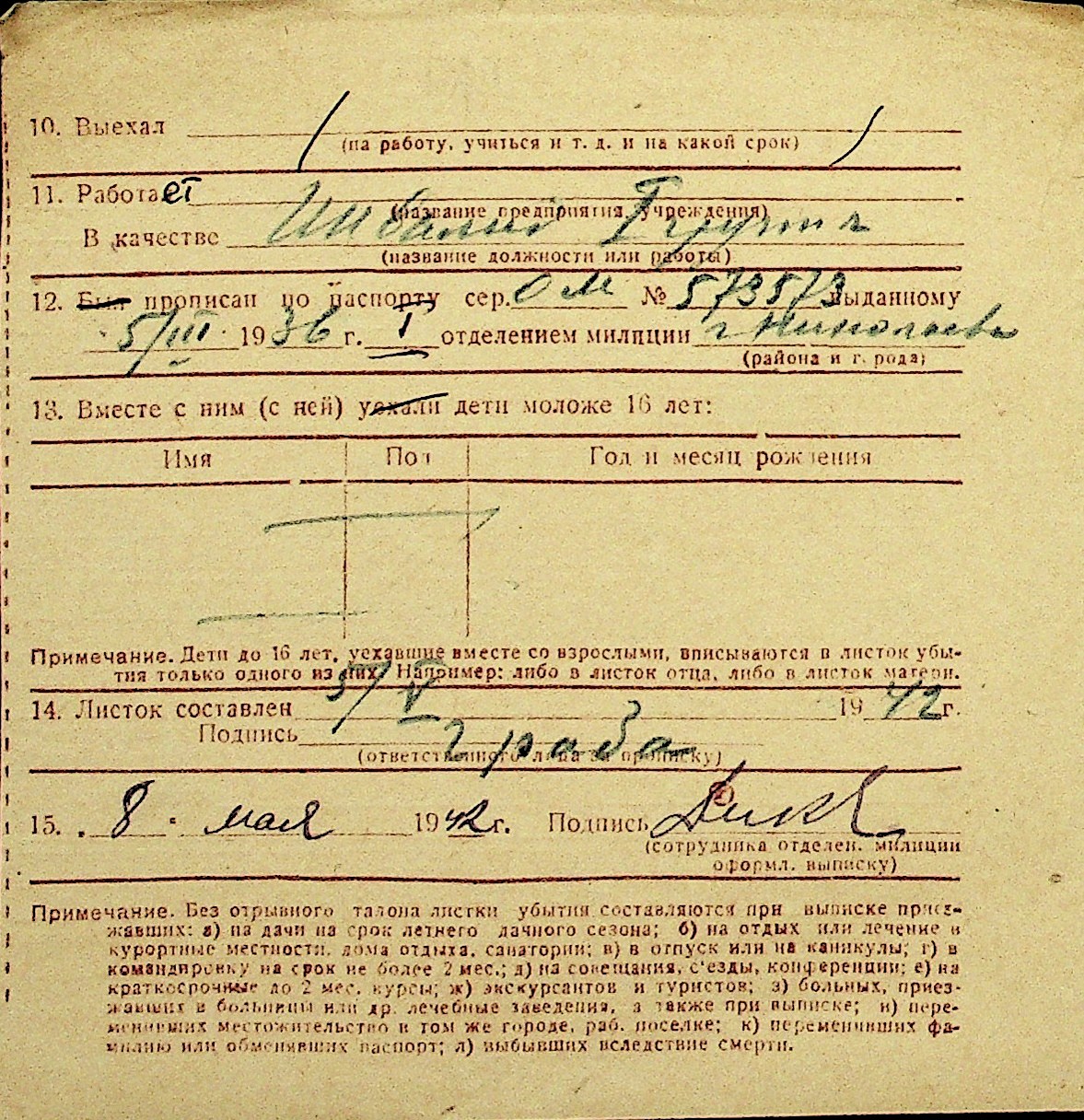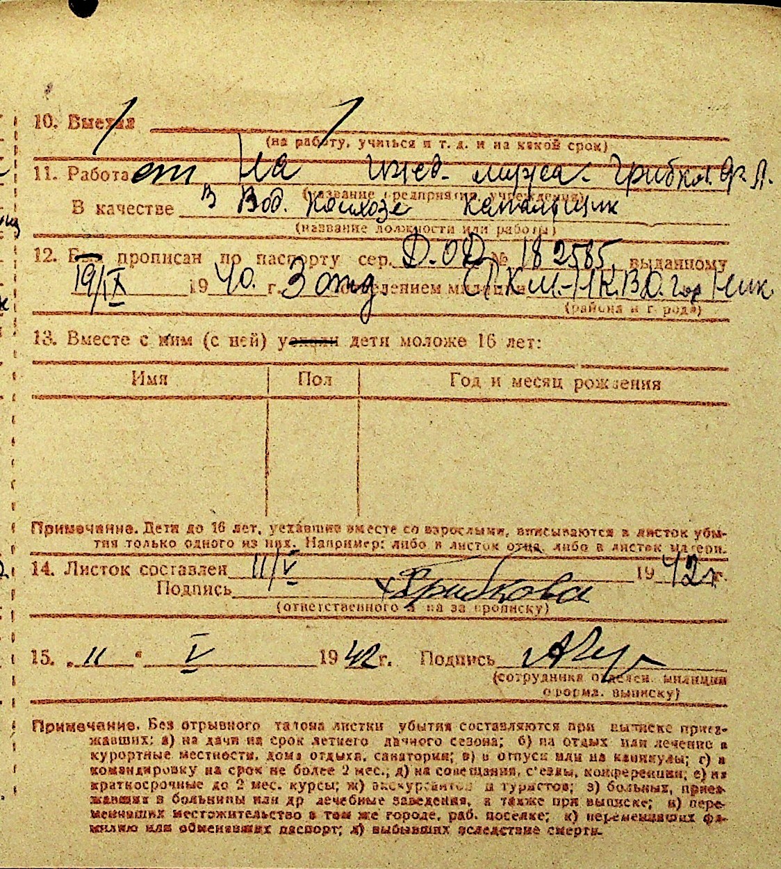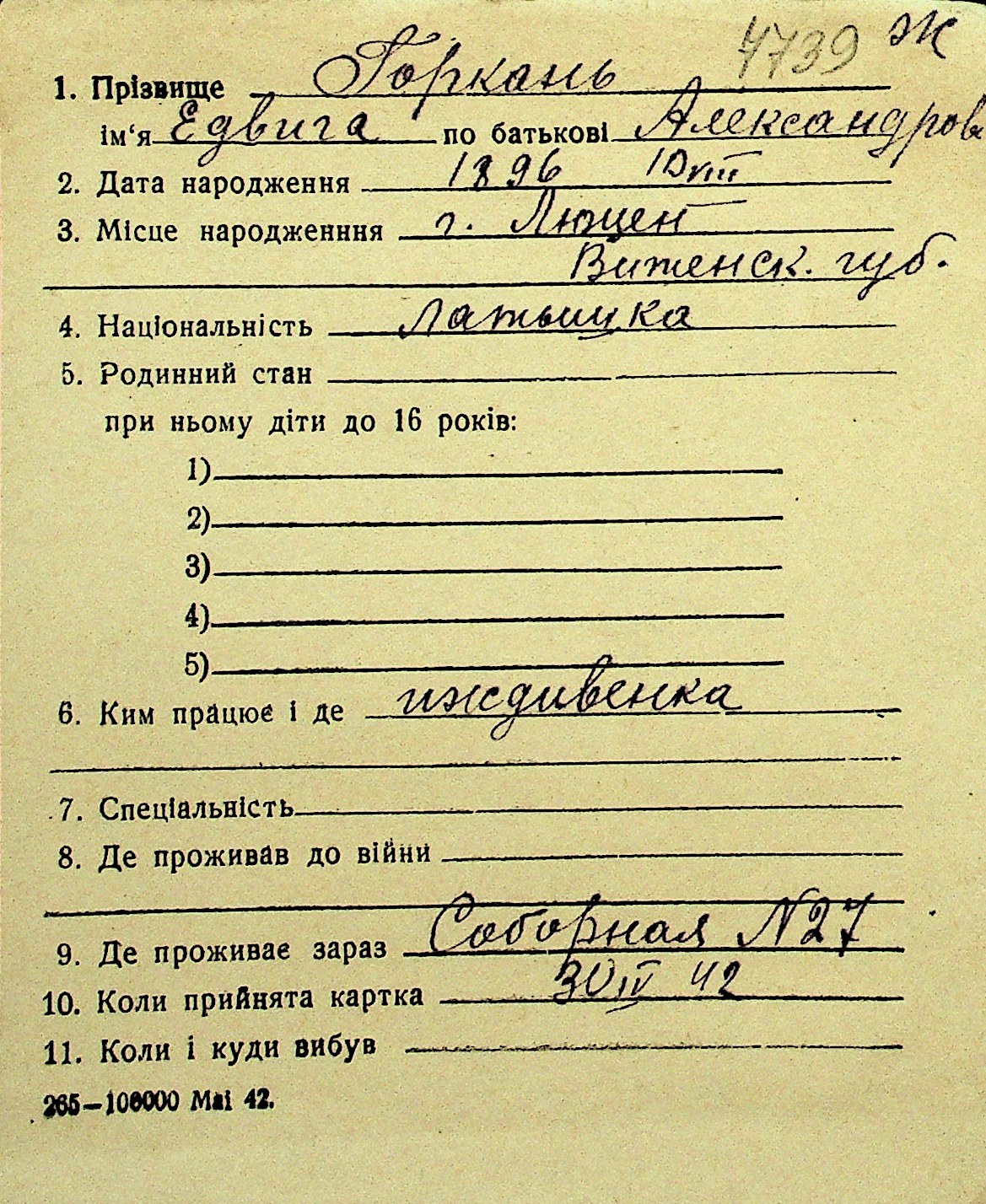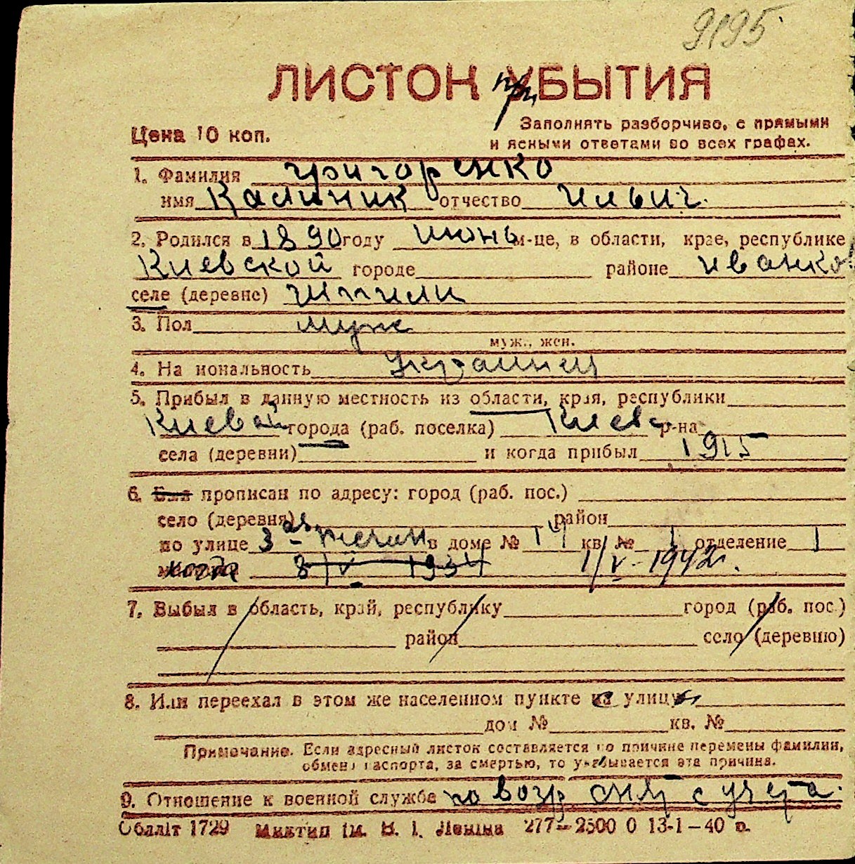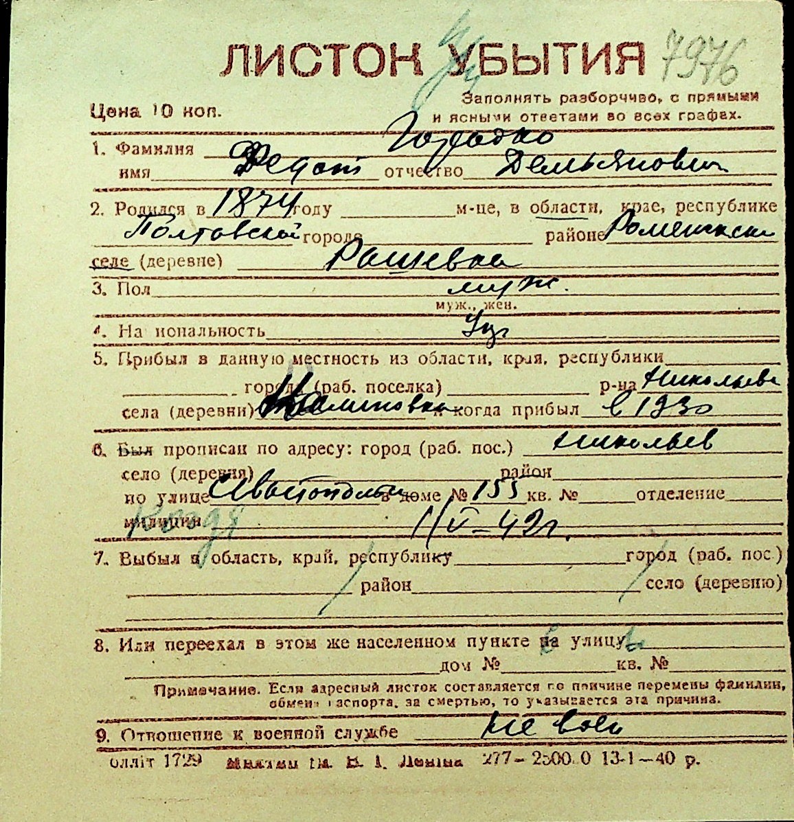 • • Перелік карток до фонду № Н-1016