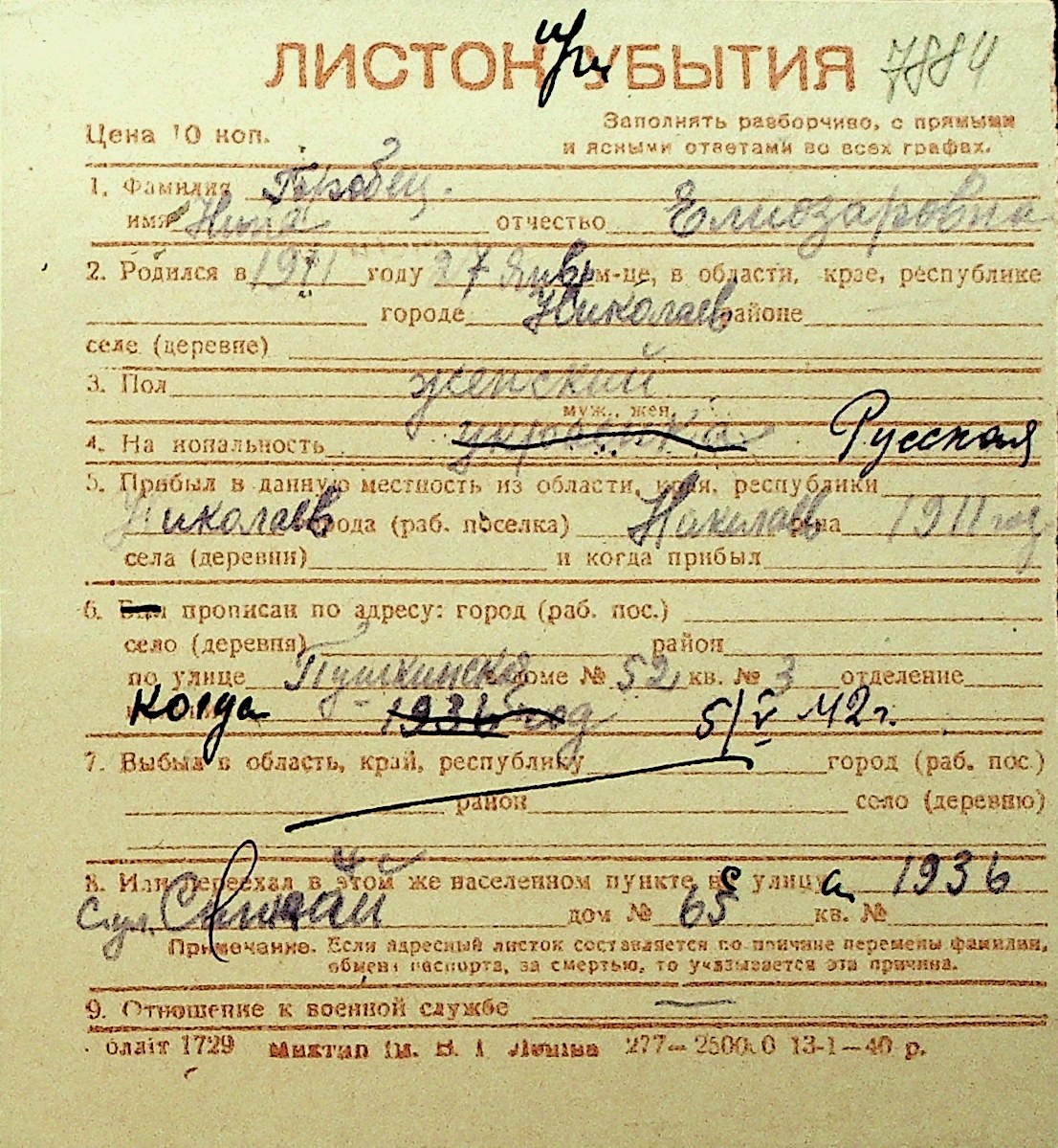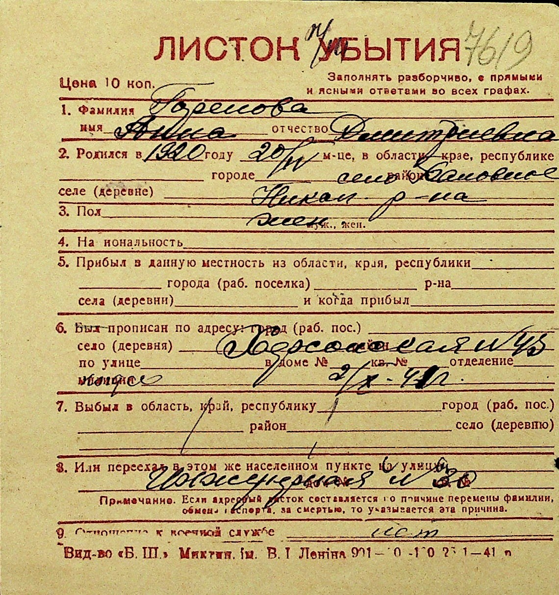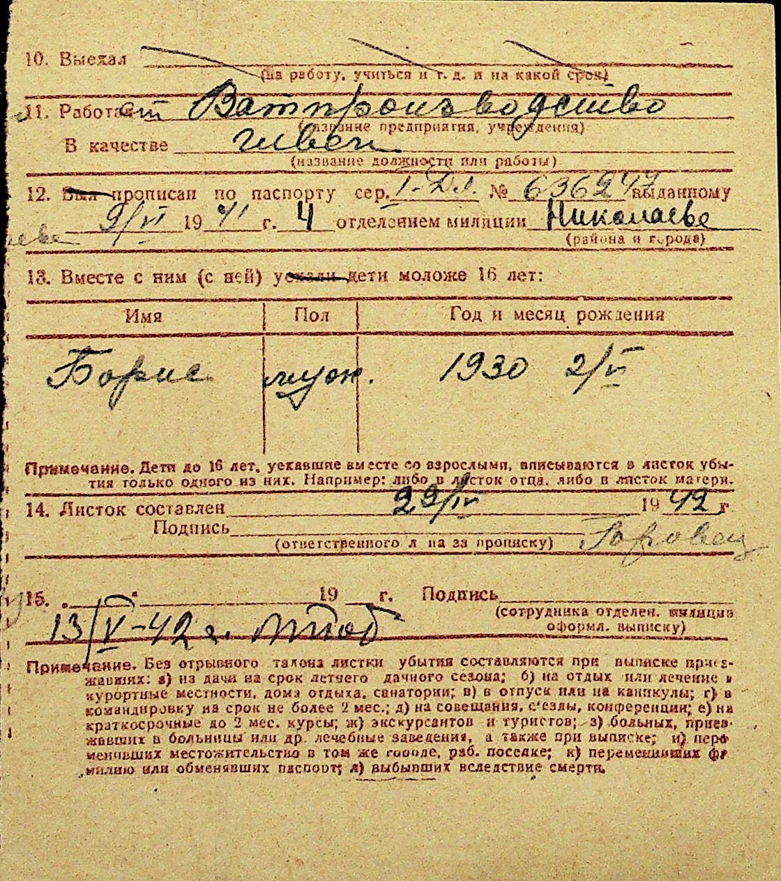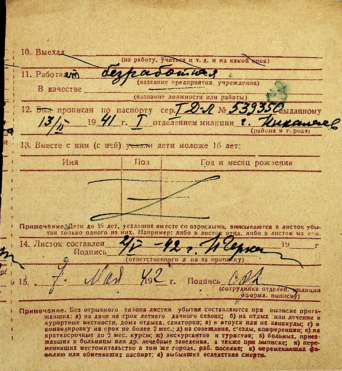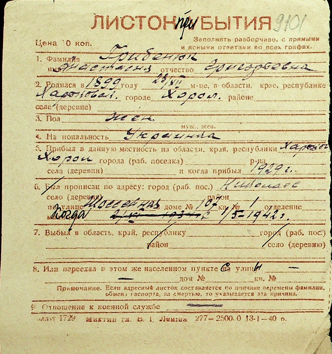 • • Перелік карток до фонду № Н-1016