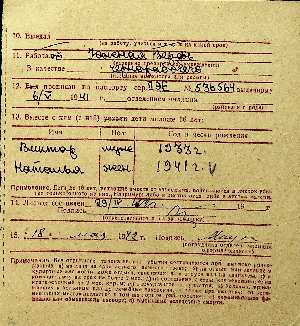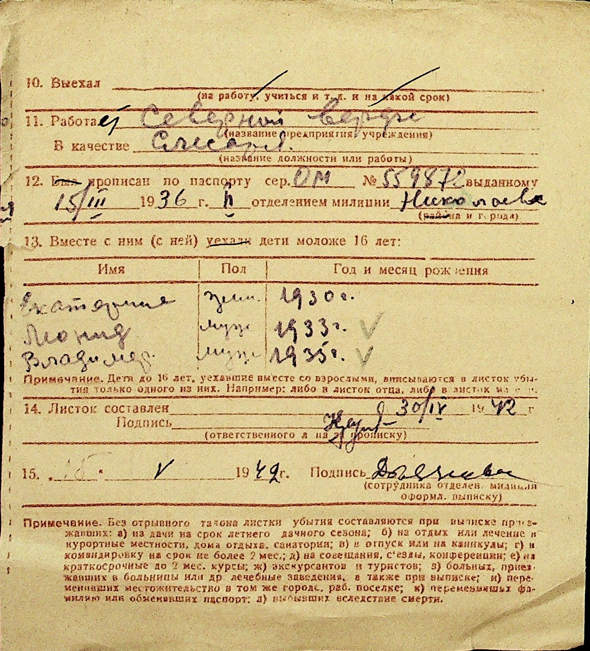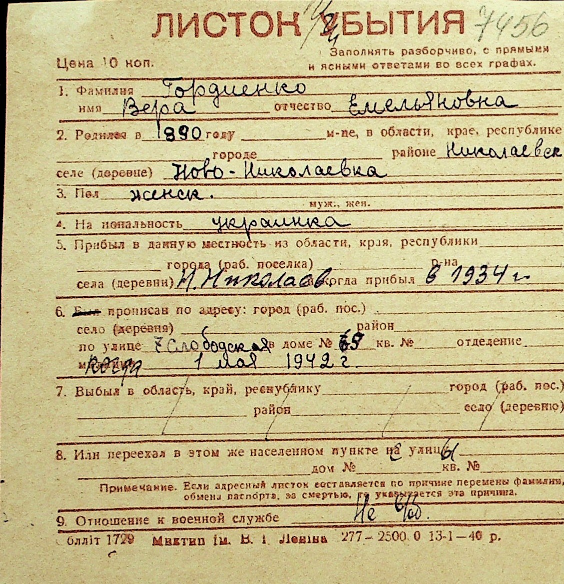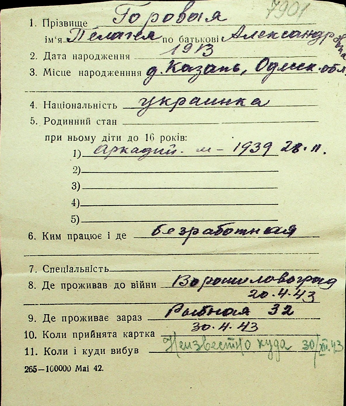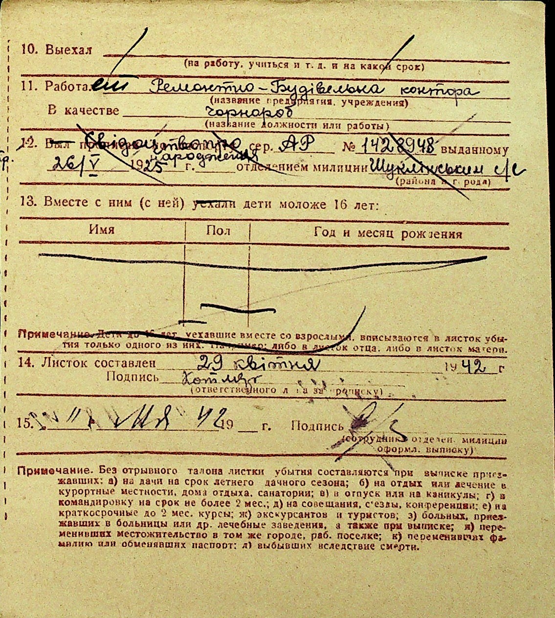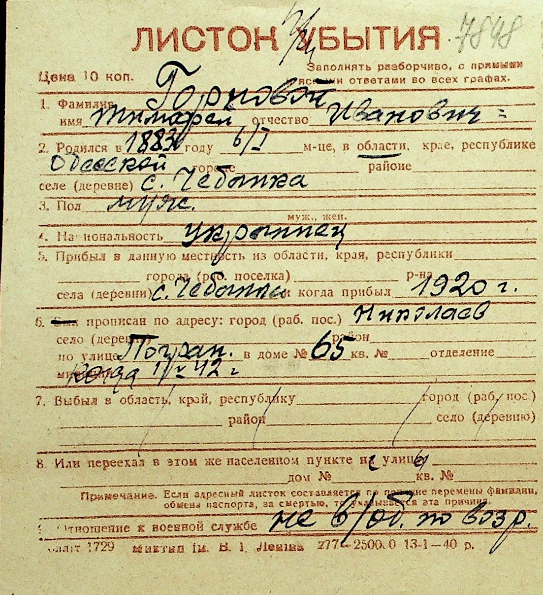 • • Перелік карток до фонду № Н-1016