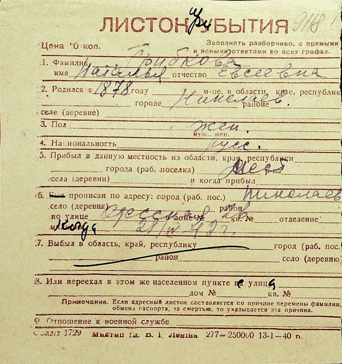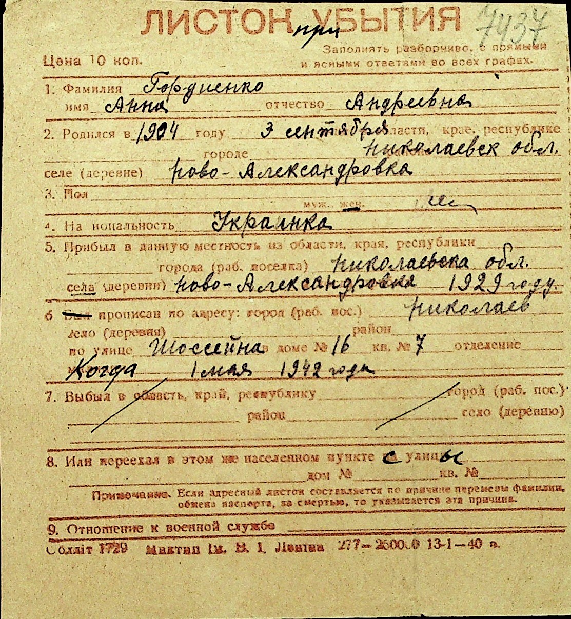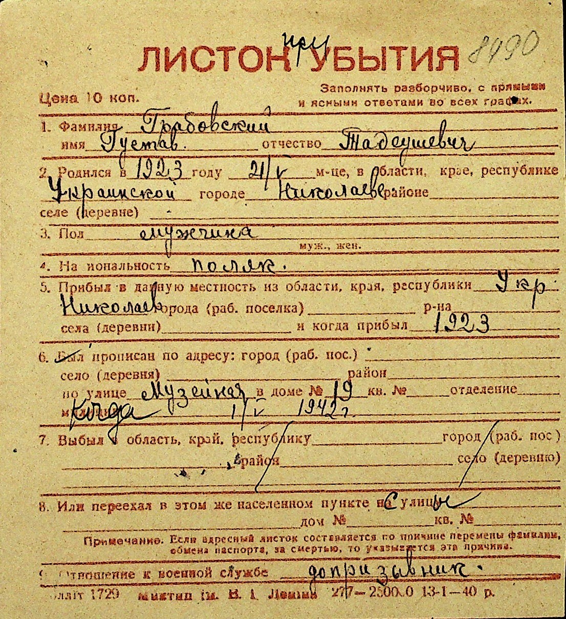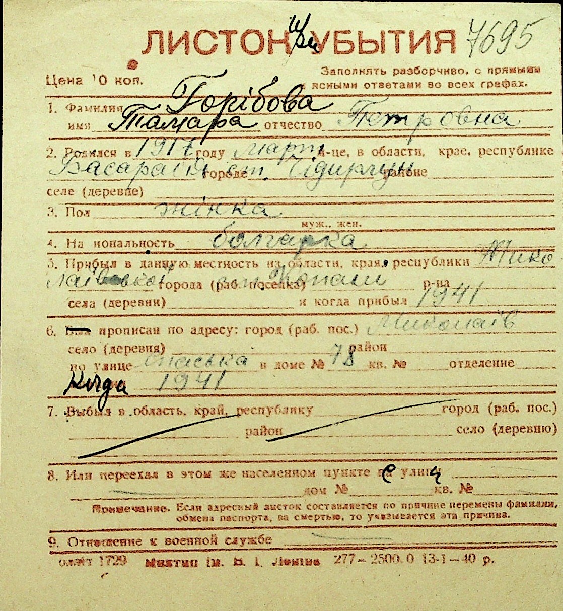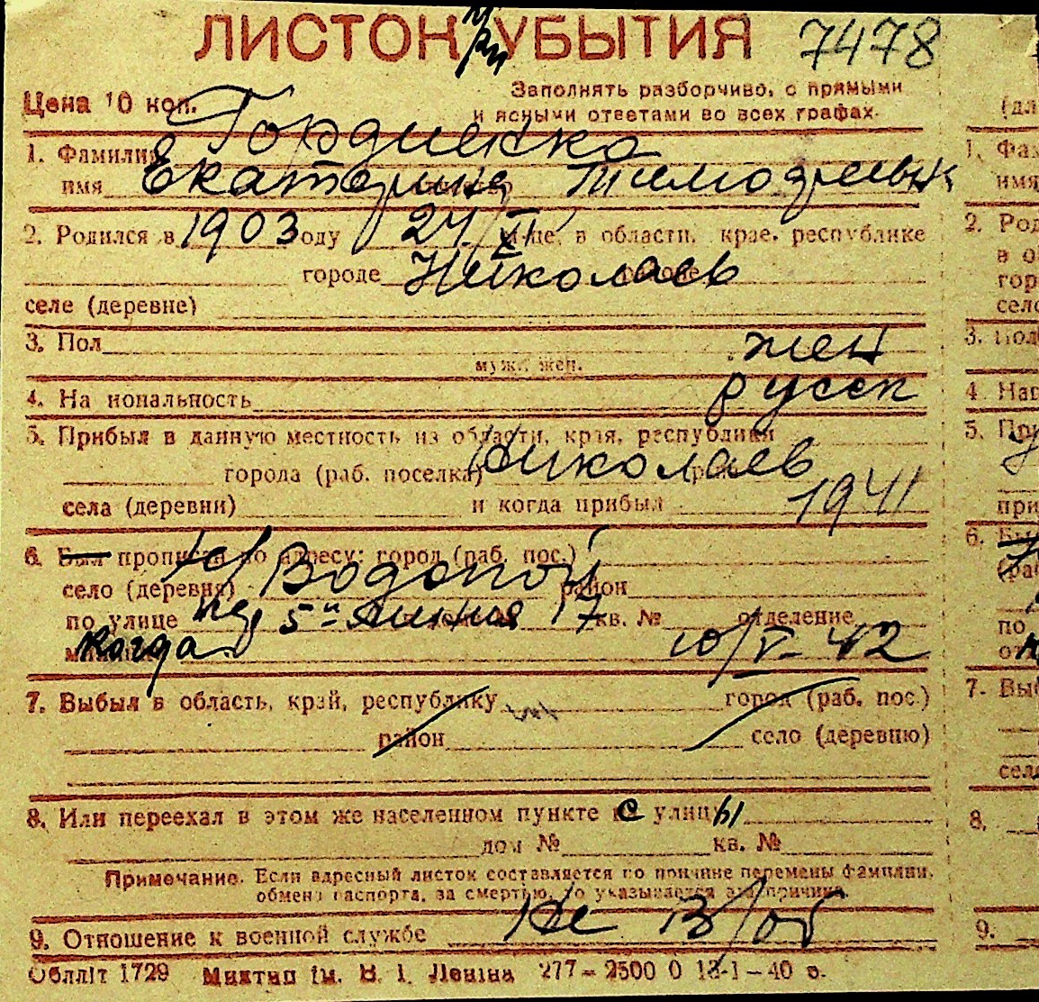• • Перелік карток до фонду № Н-1016