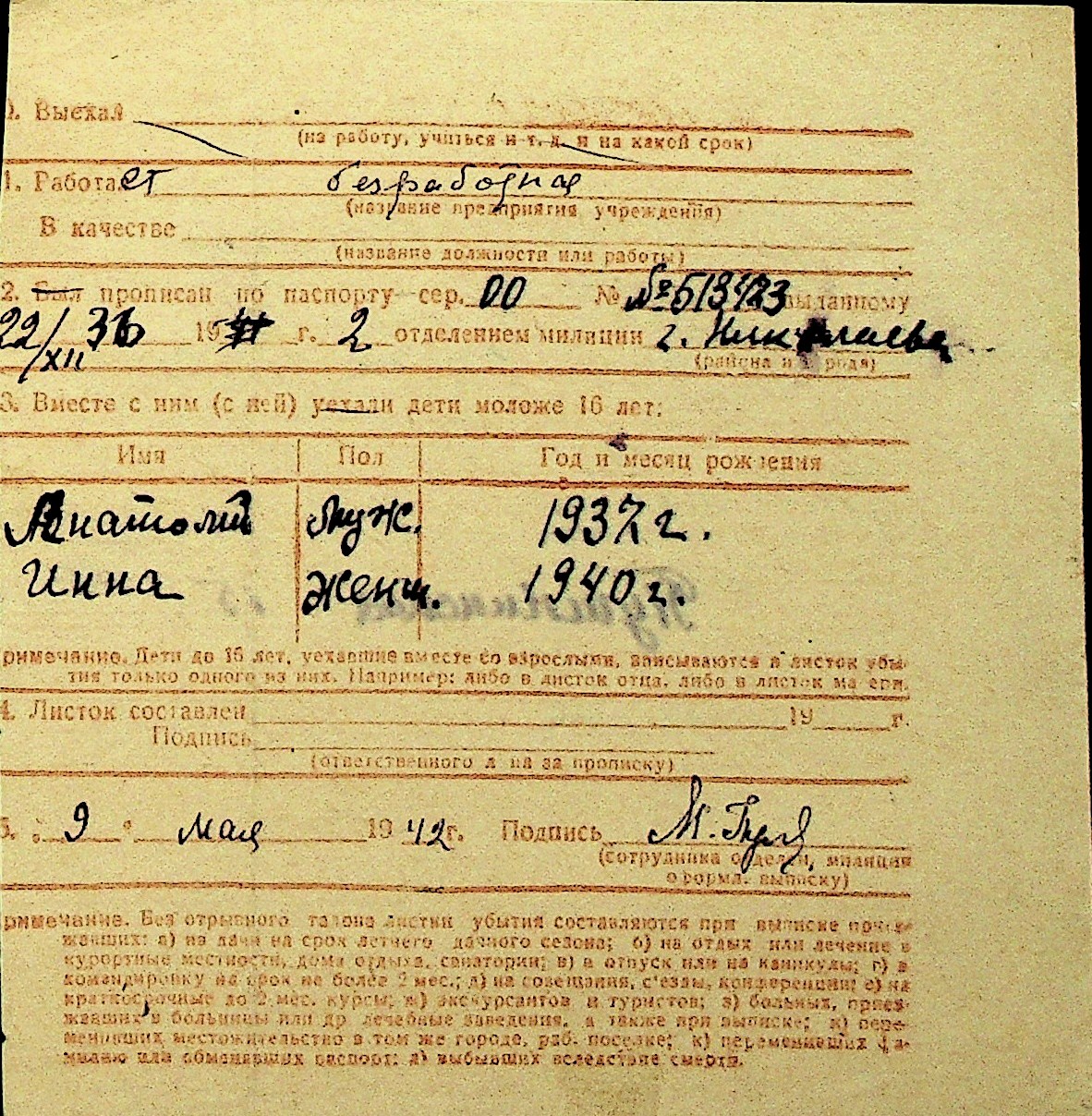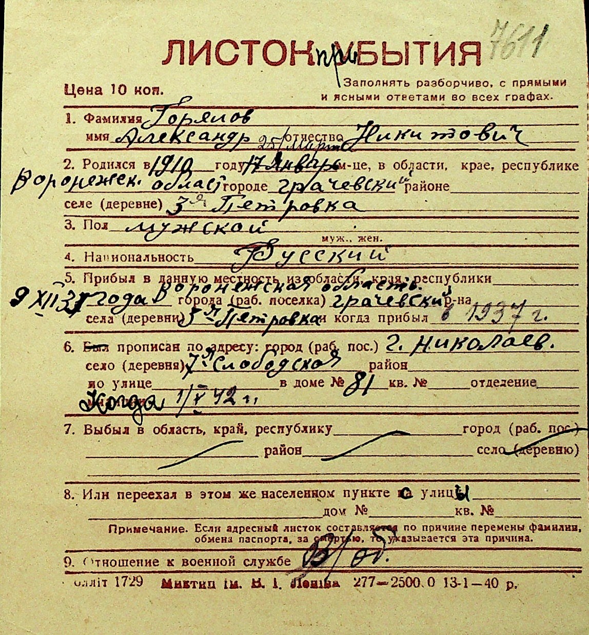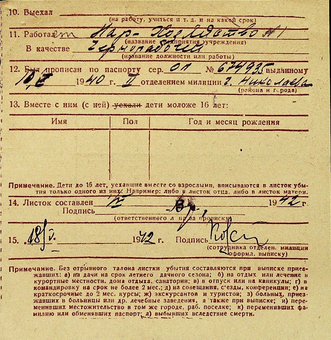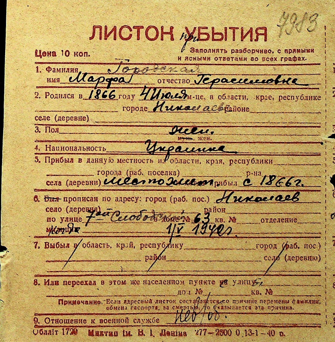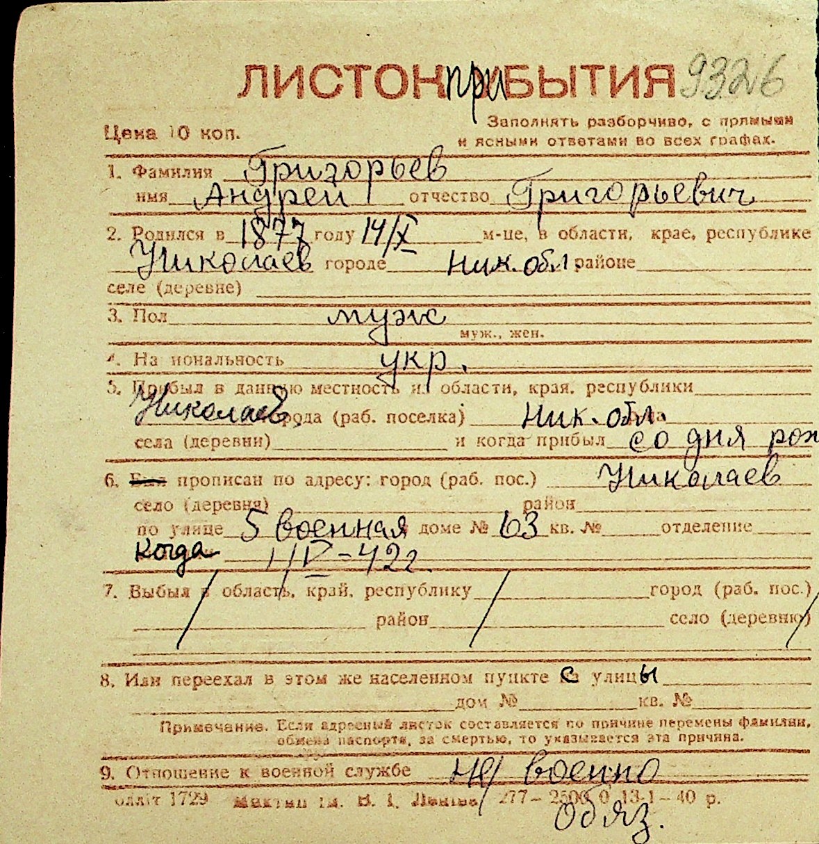 • • Перелік карток до фонду № Н-1016
