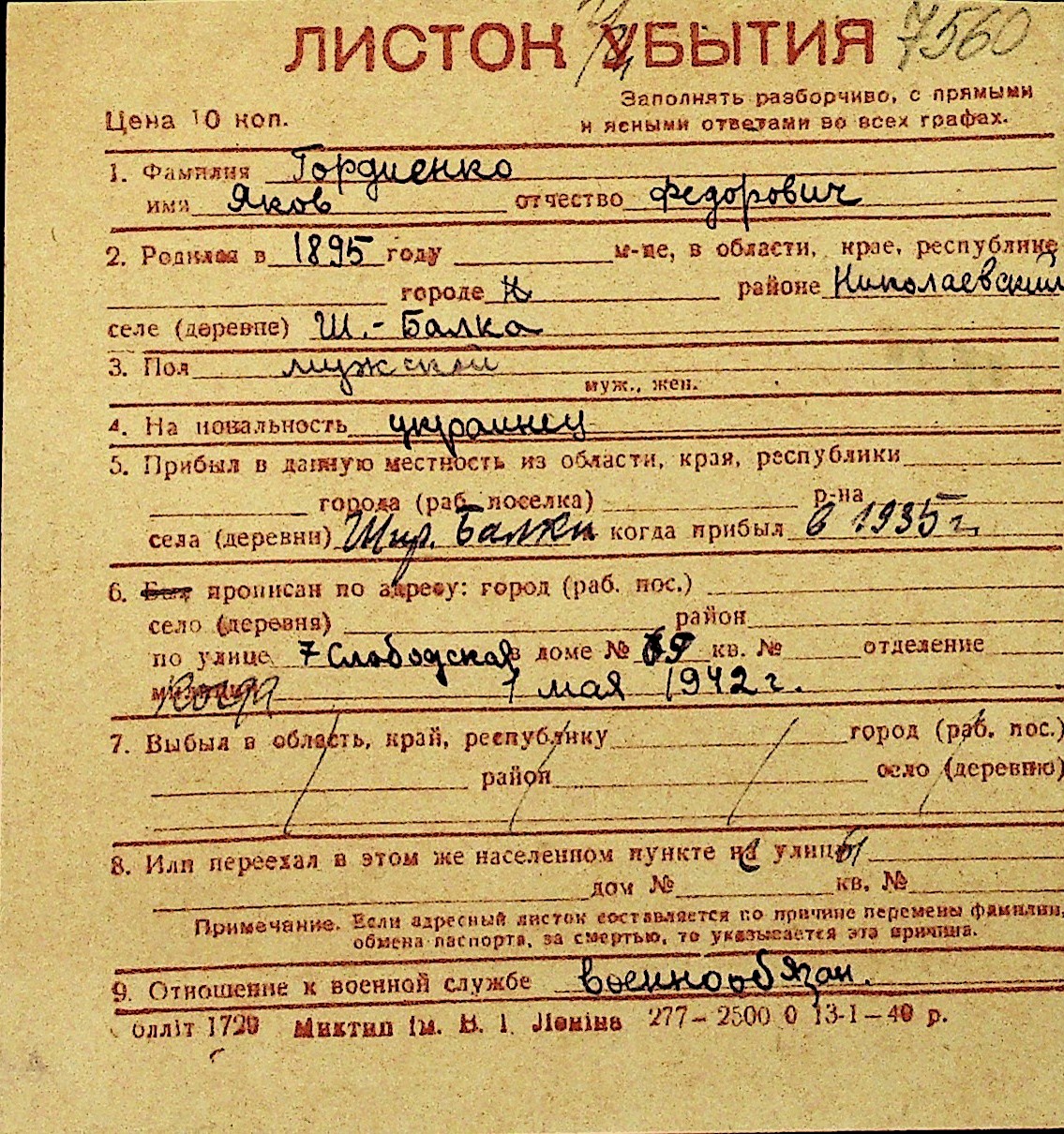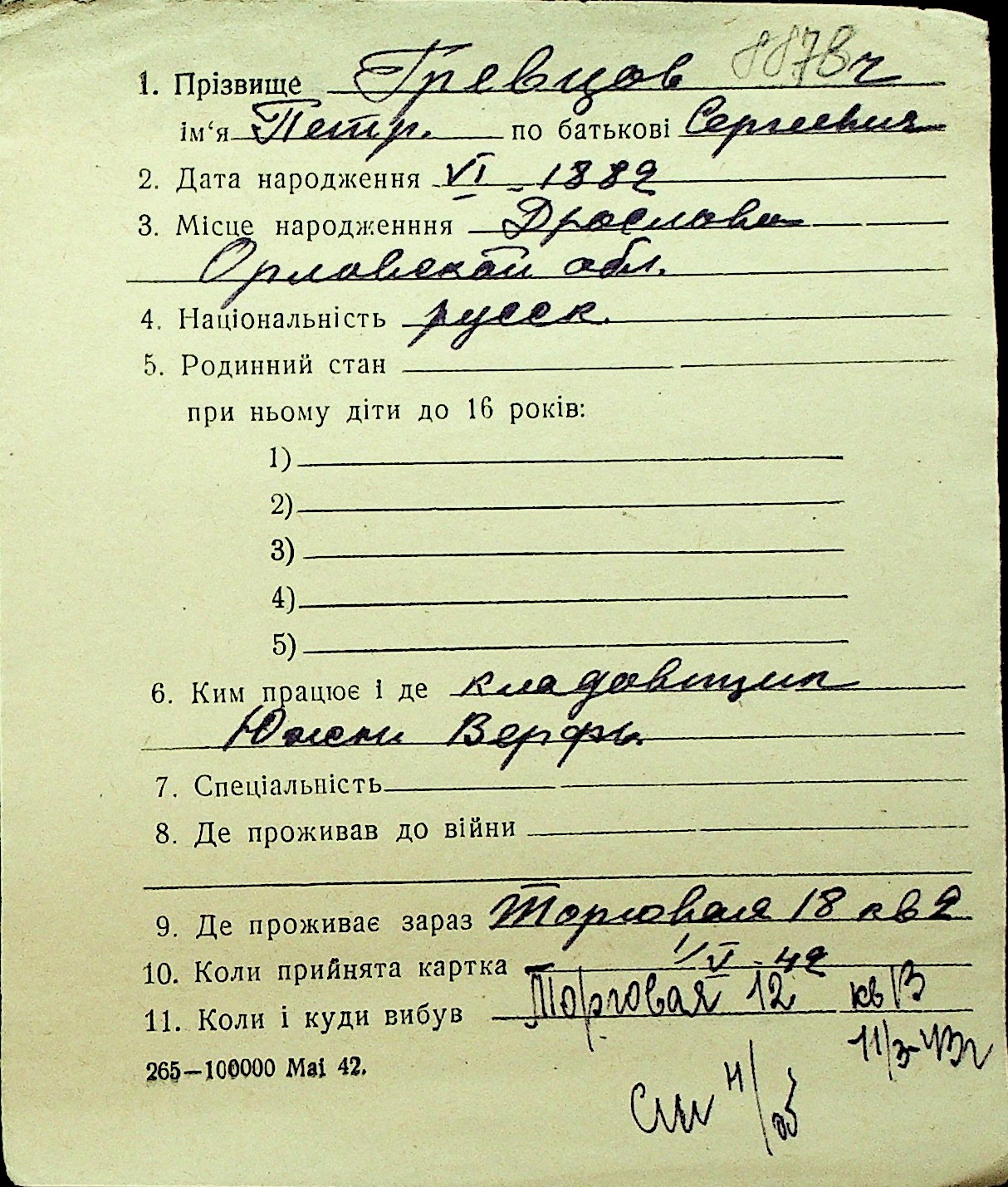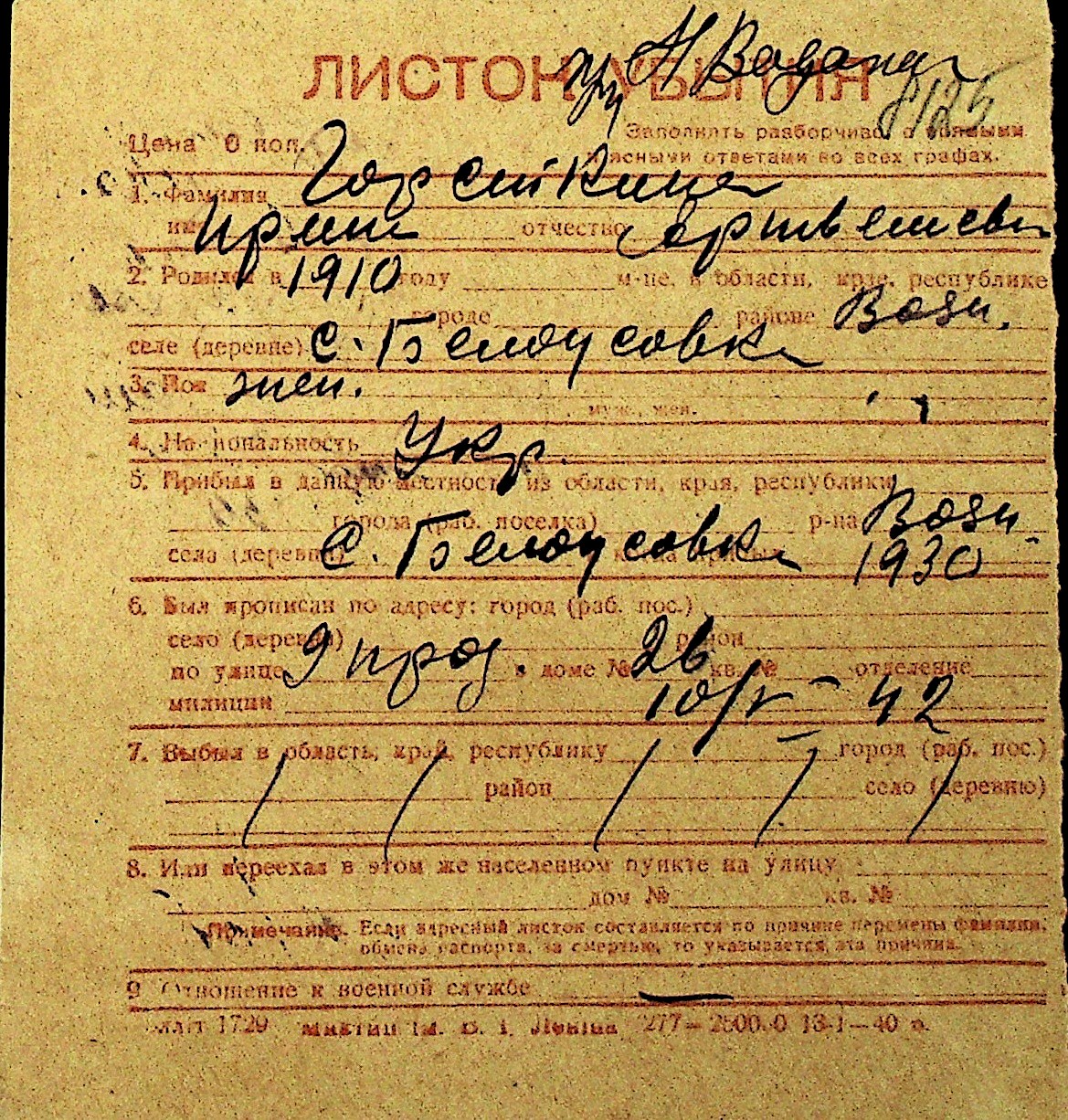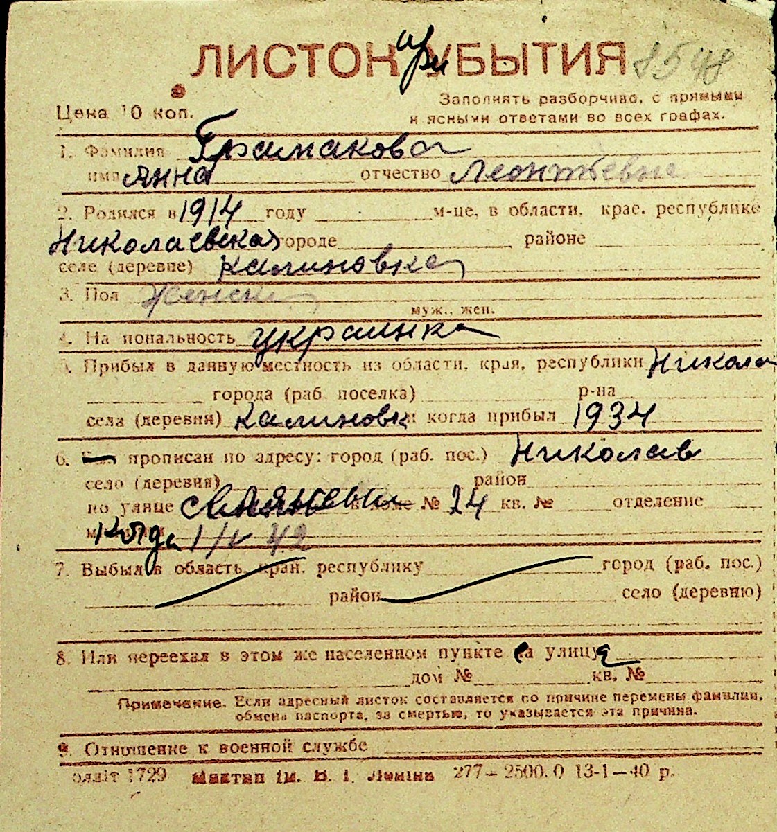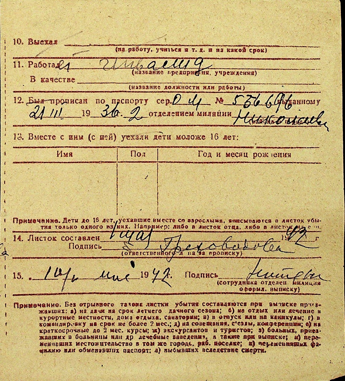 • • Перелік карток до фонду № Н-1016