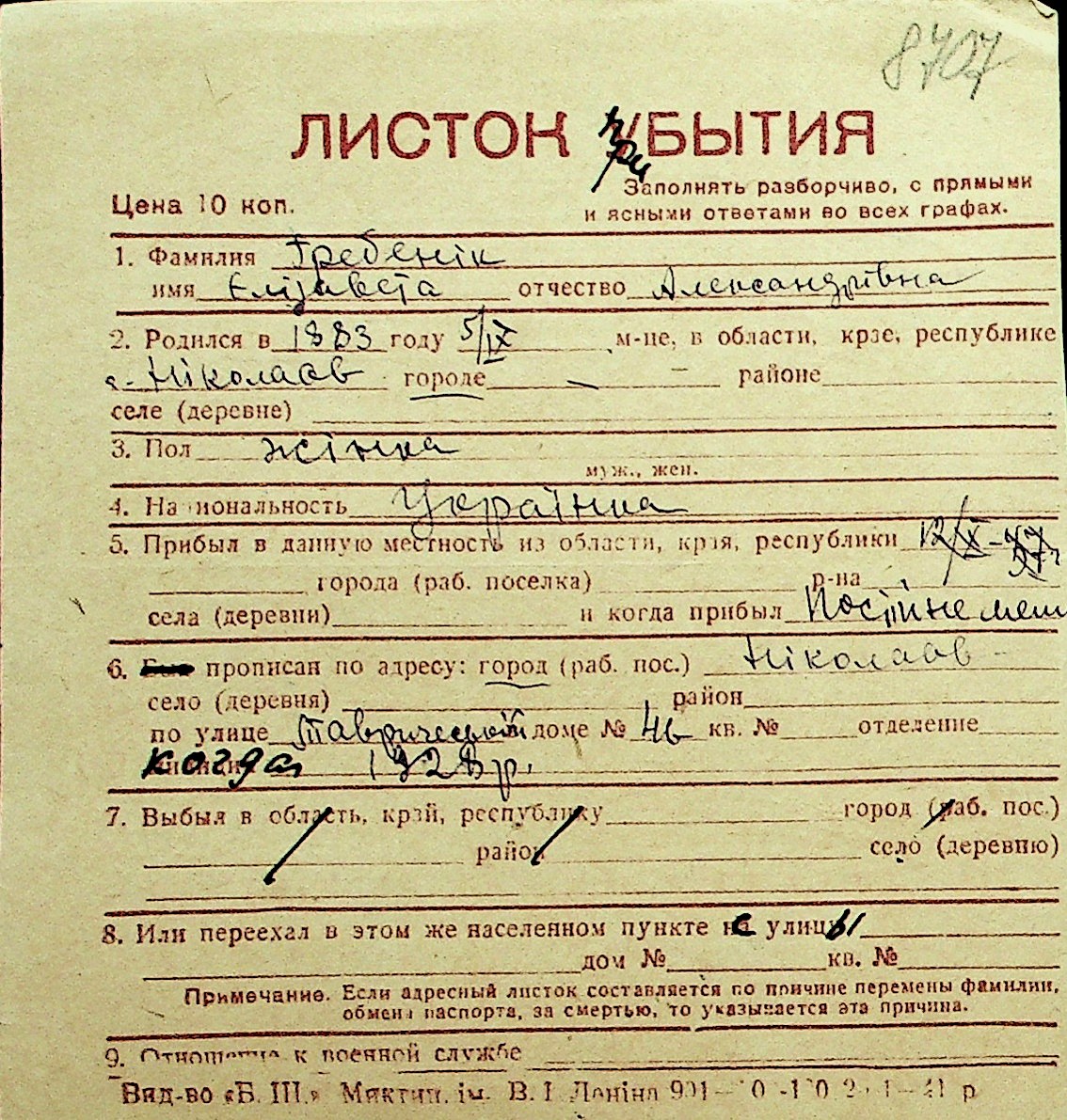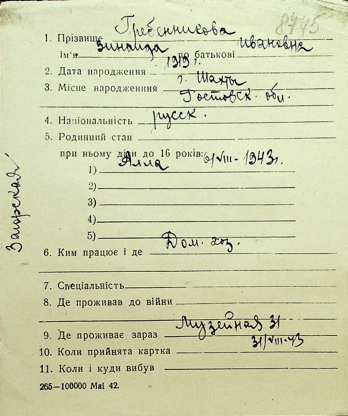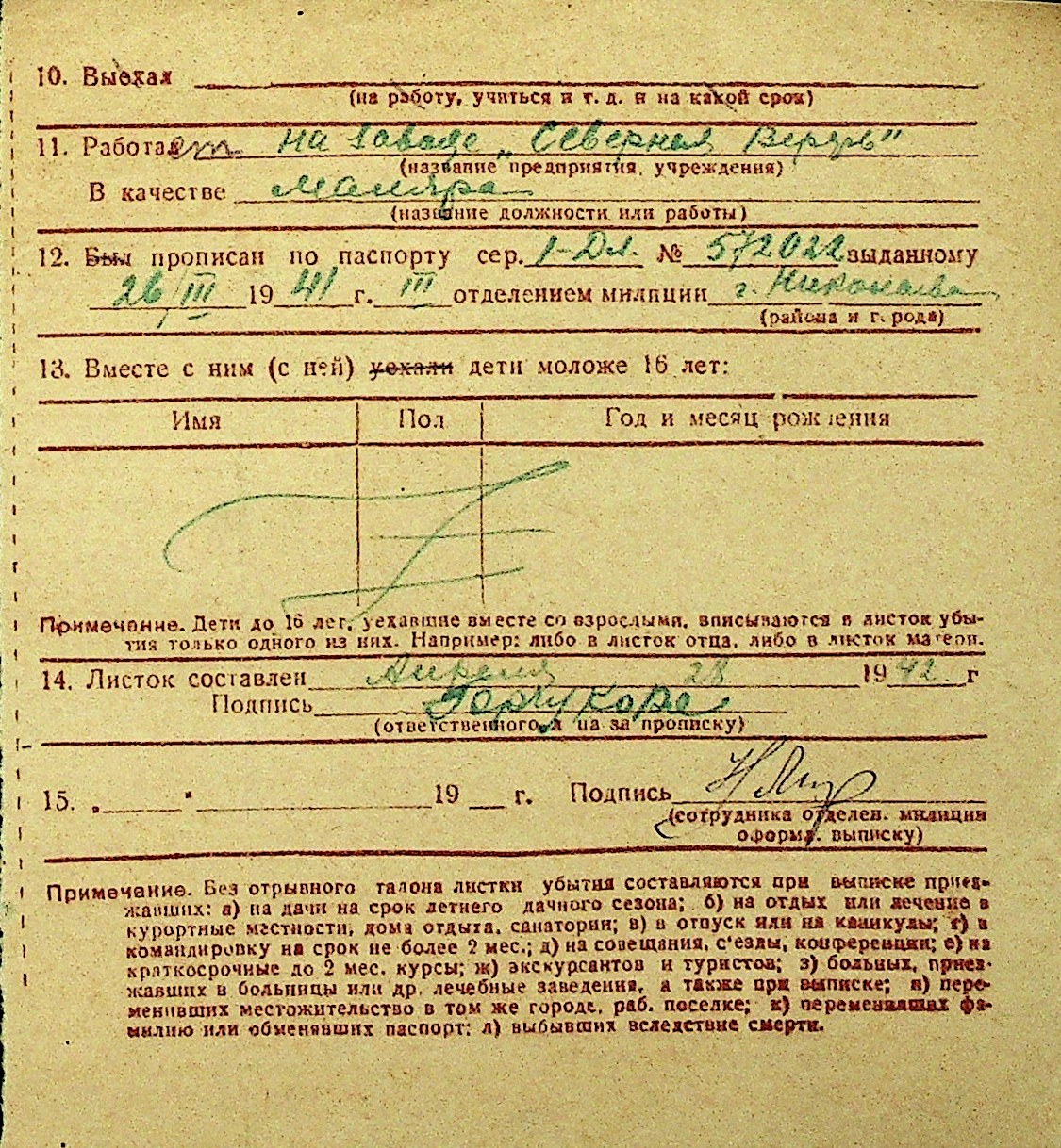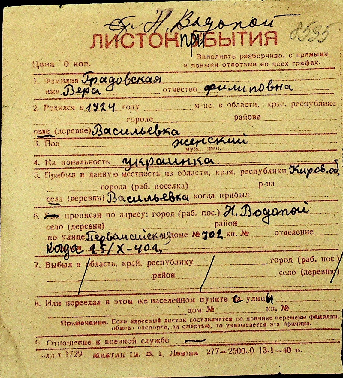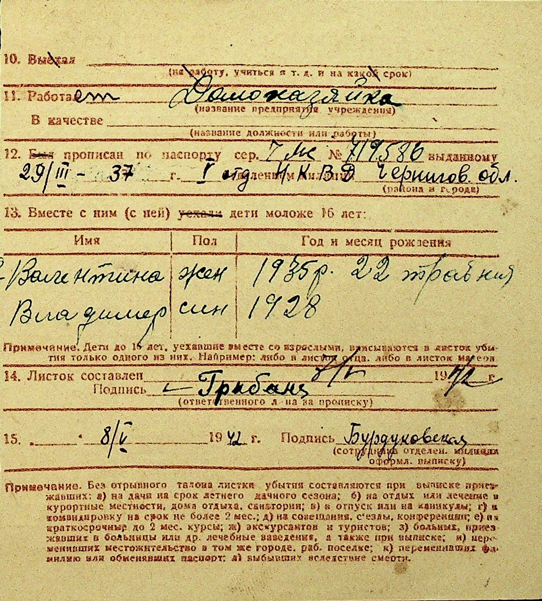 • • Перелік карток до фонду № Н-1016