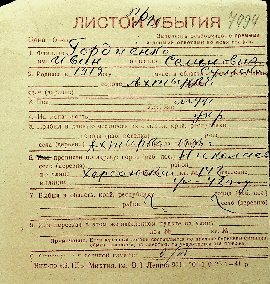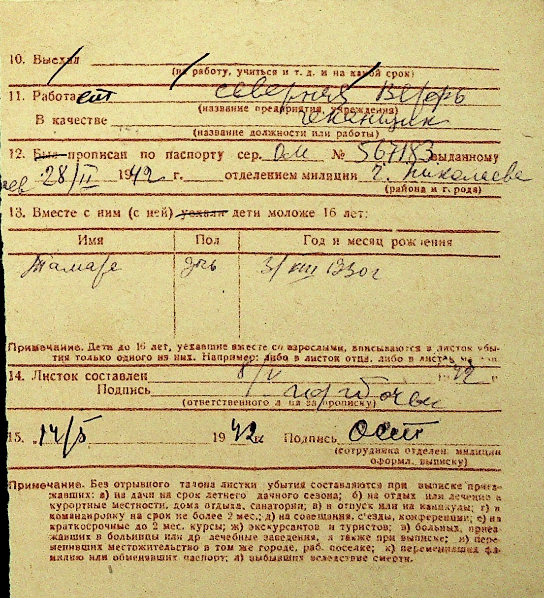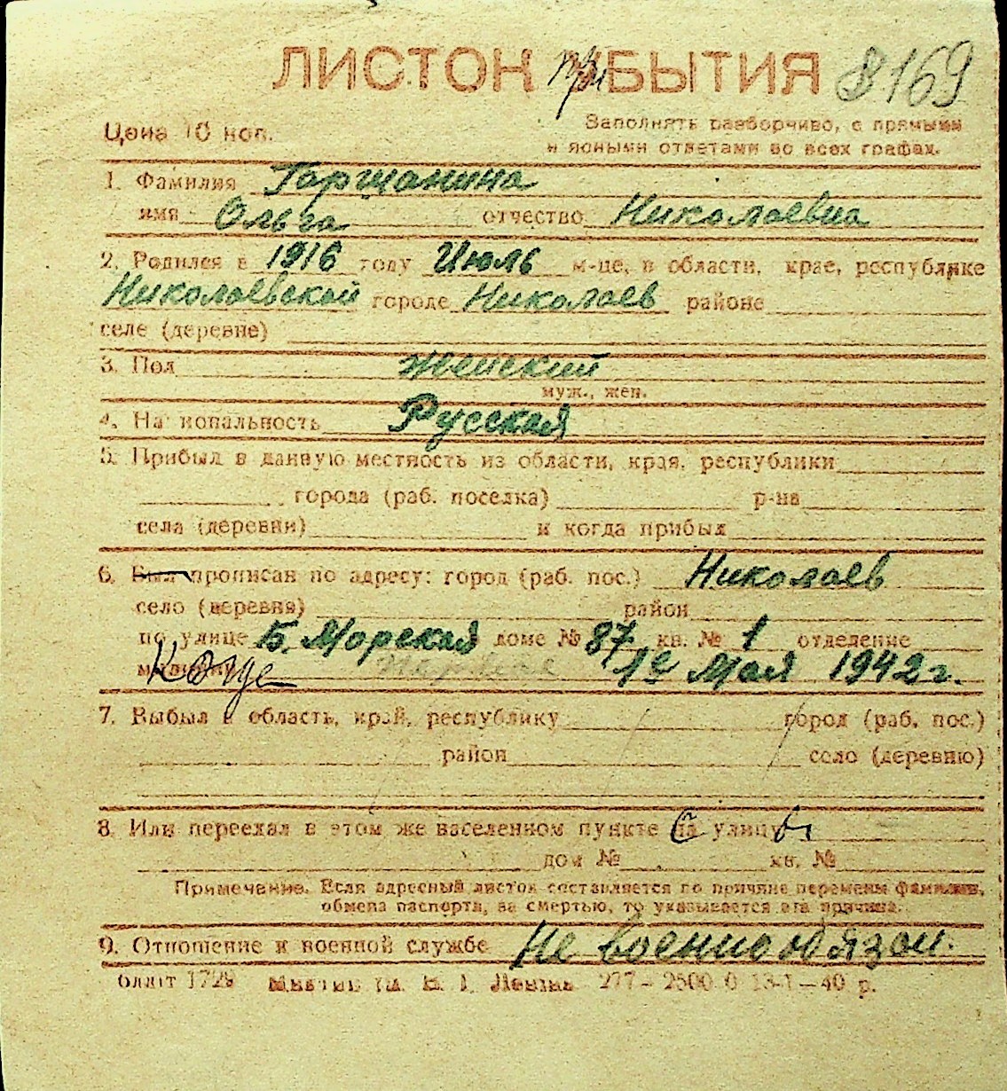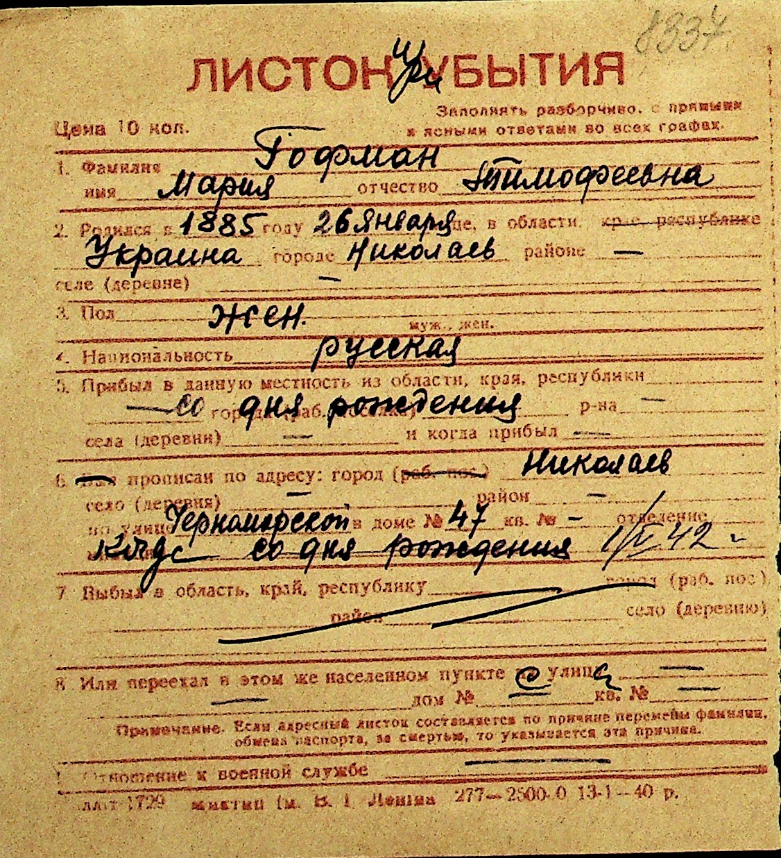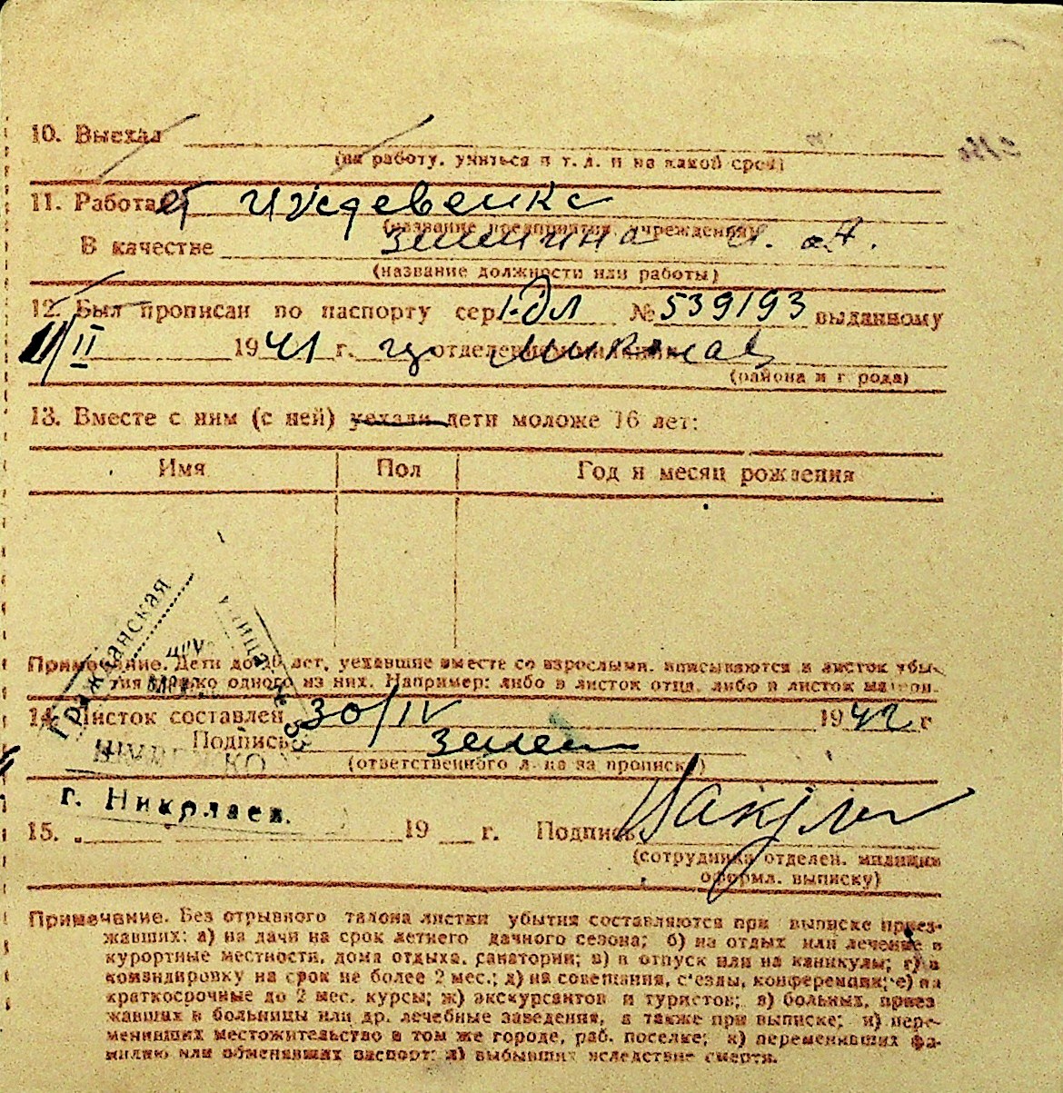 • • Перелік карток до фонду № Н-1016