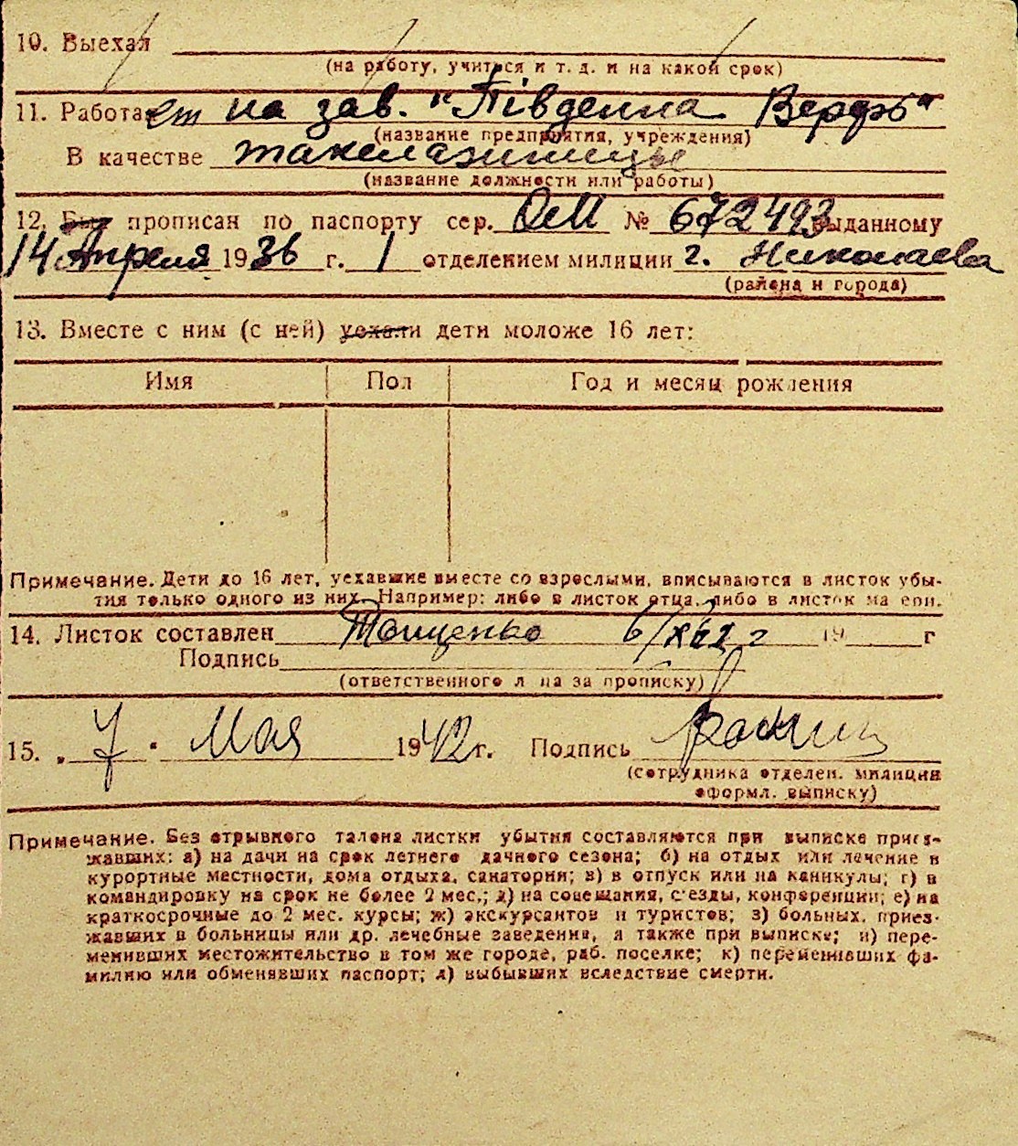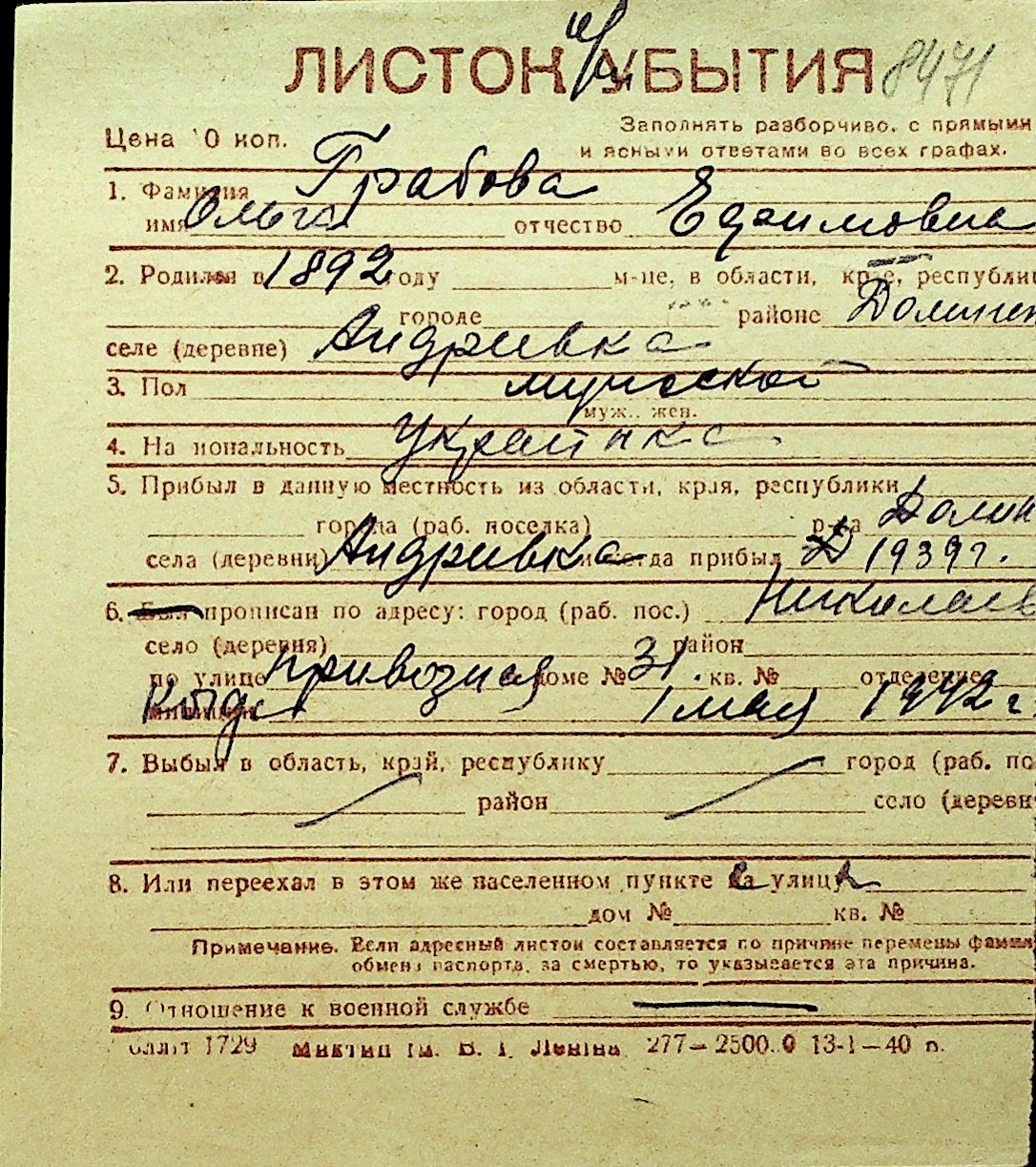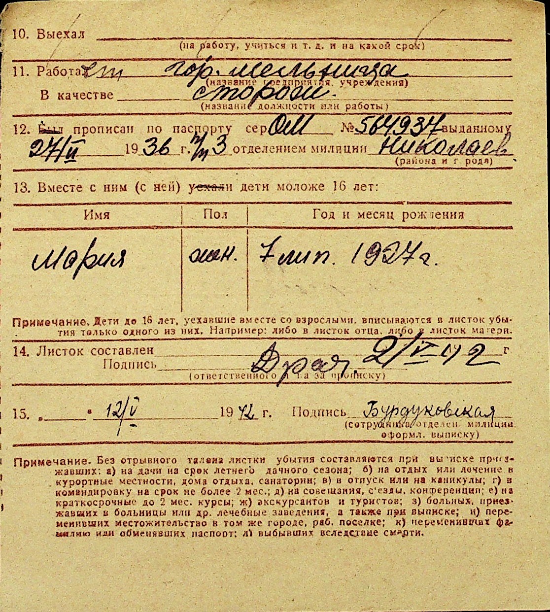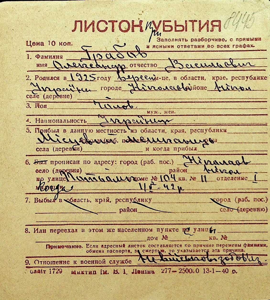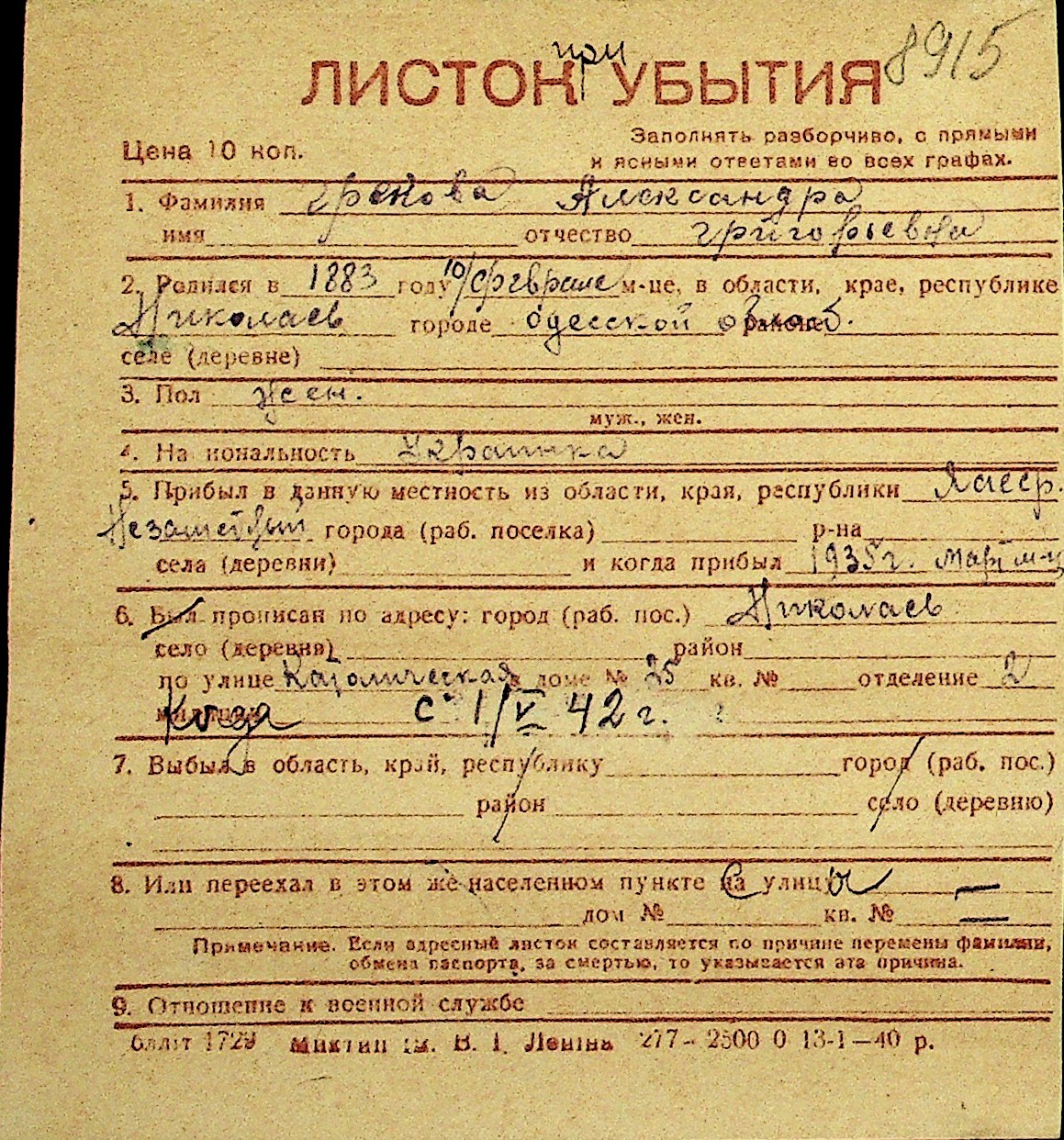 • • Перелік карток до фонду № Н-1016