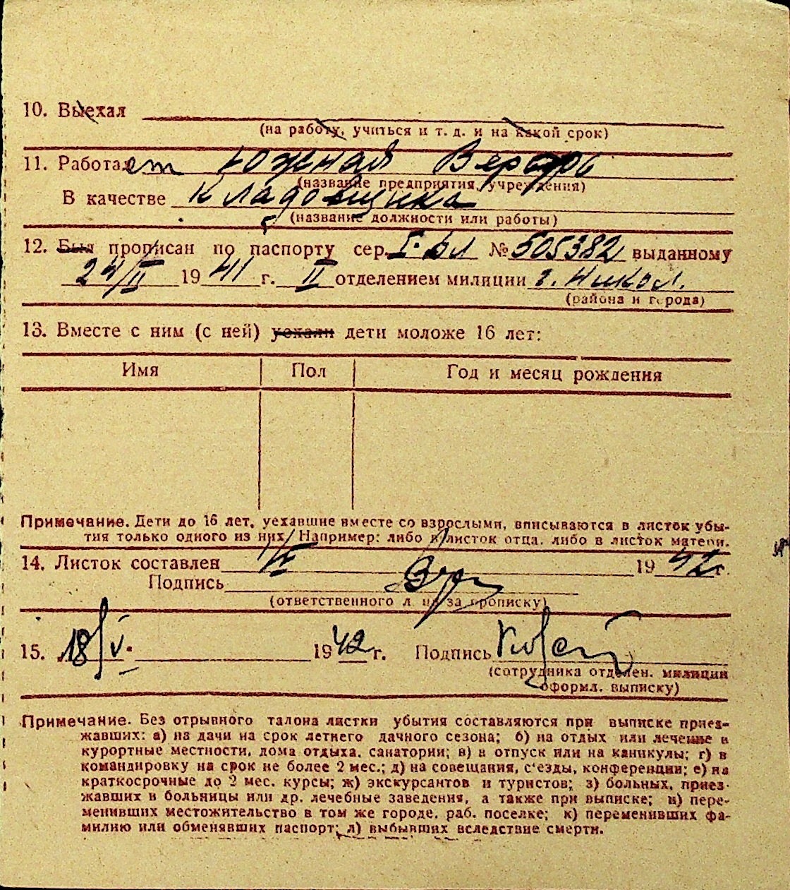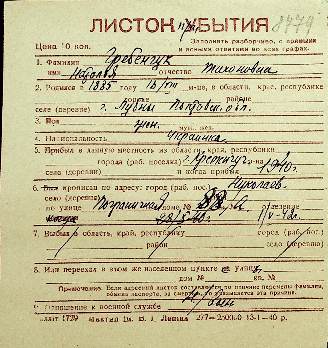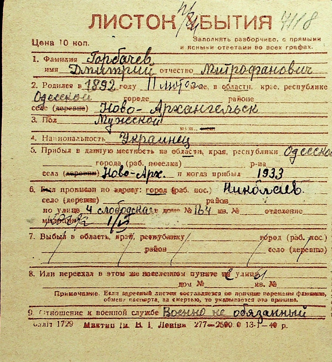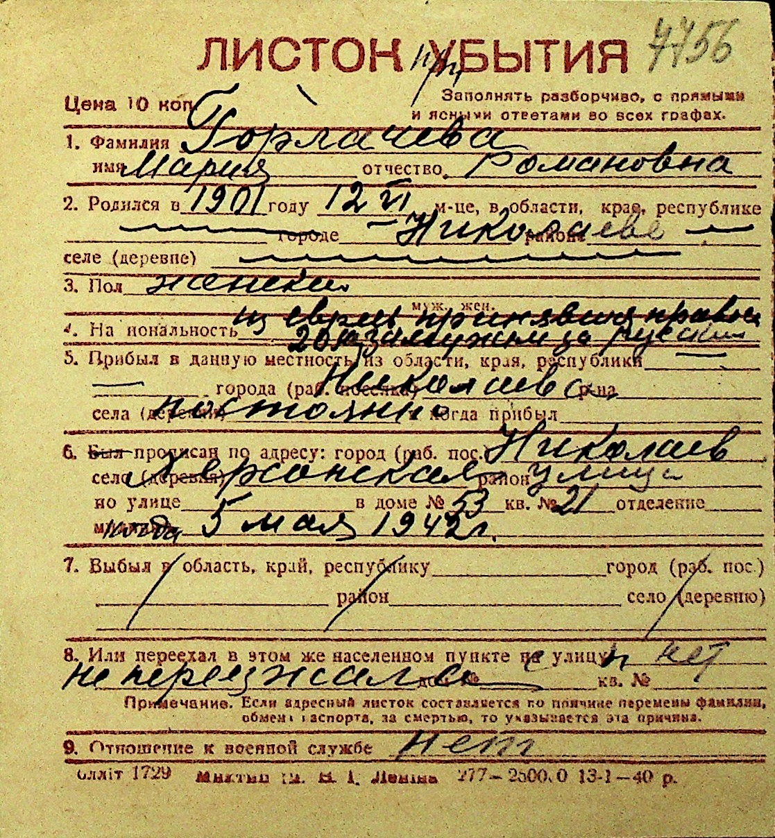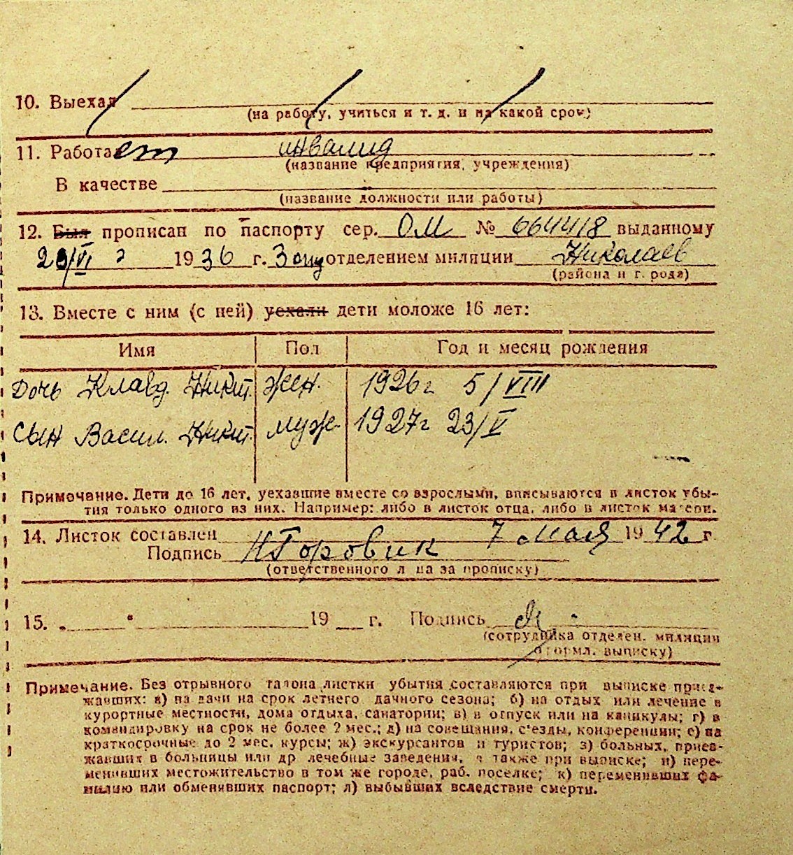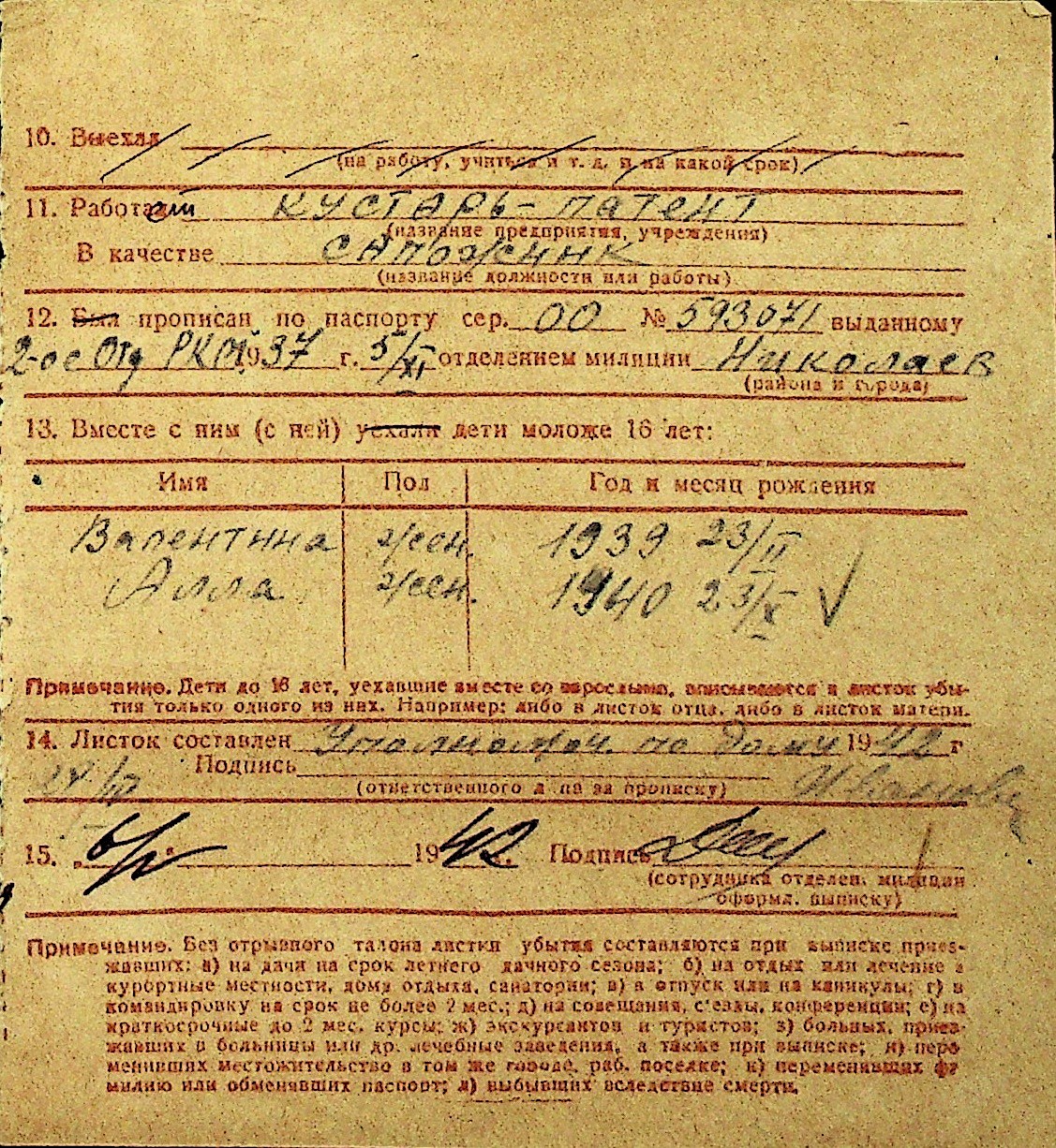 • • Перелік карток до фонду № Н-1016