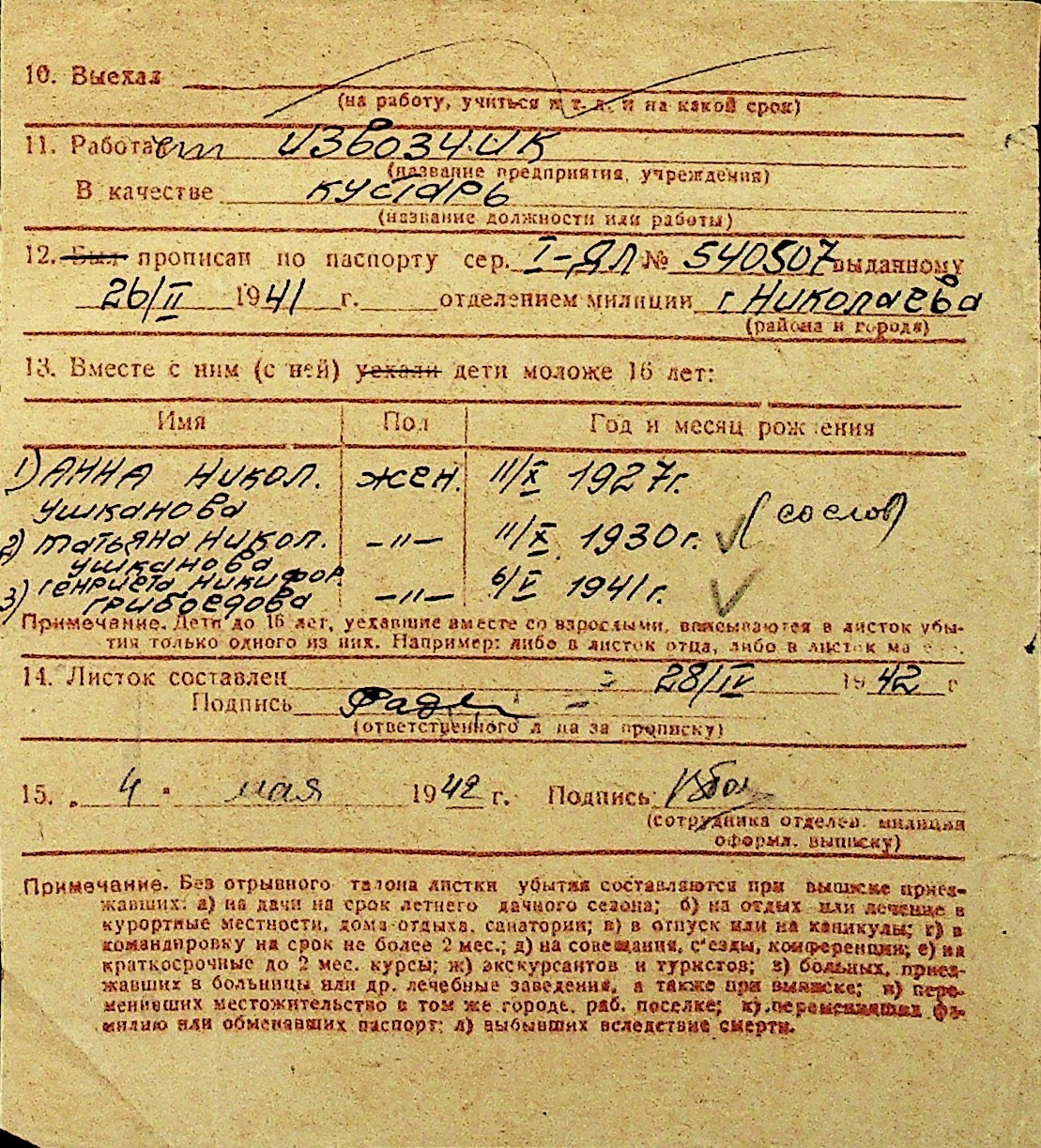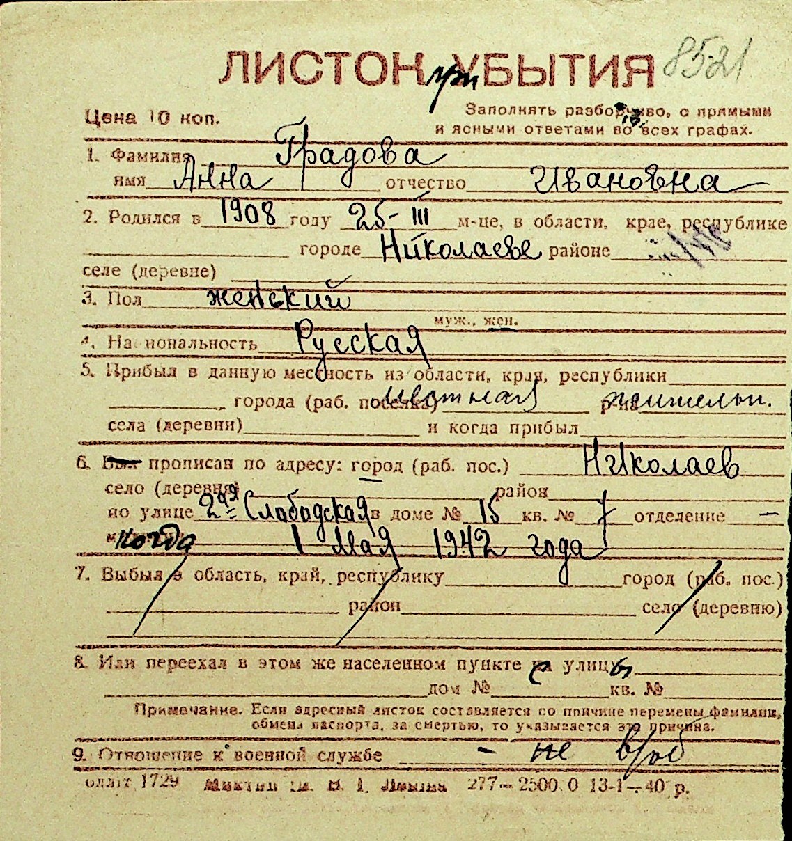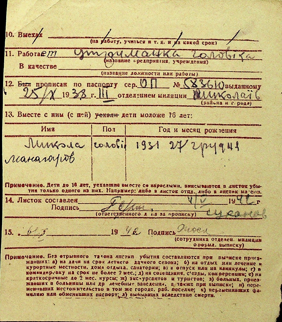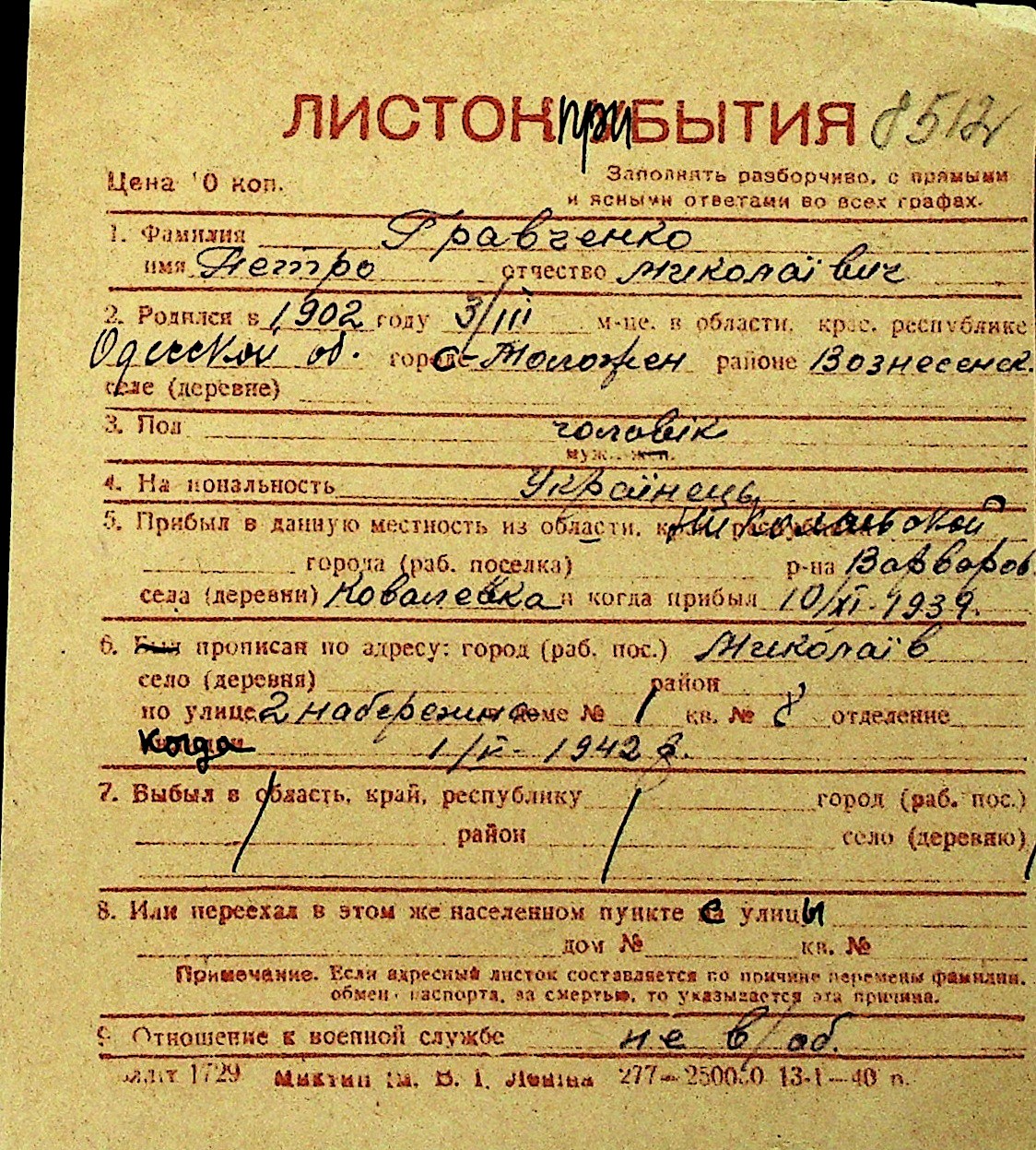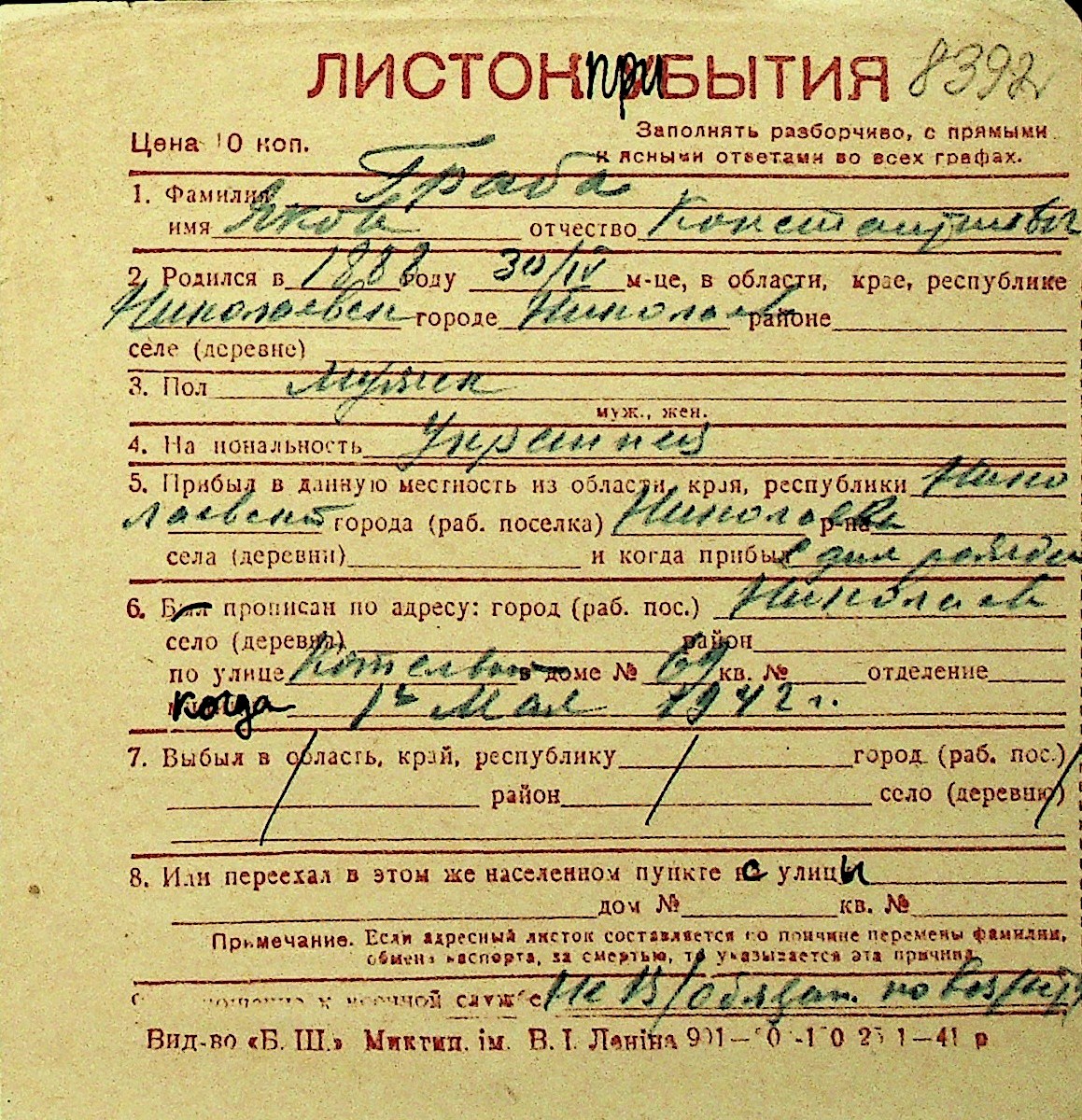 • • Перелік карток до фонду № Н-1016