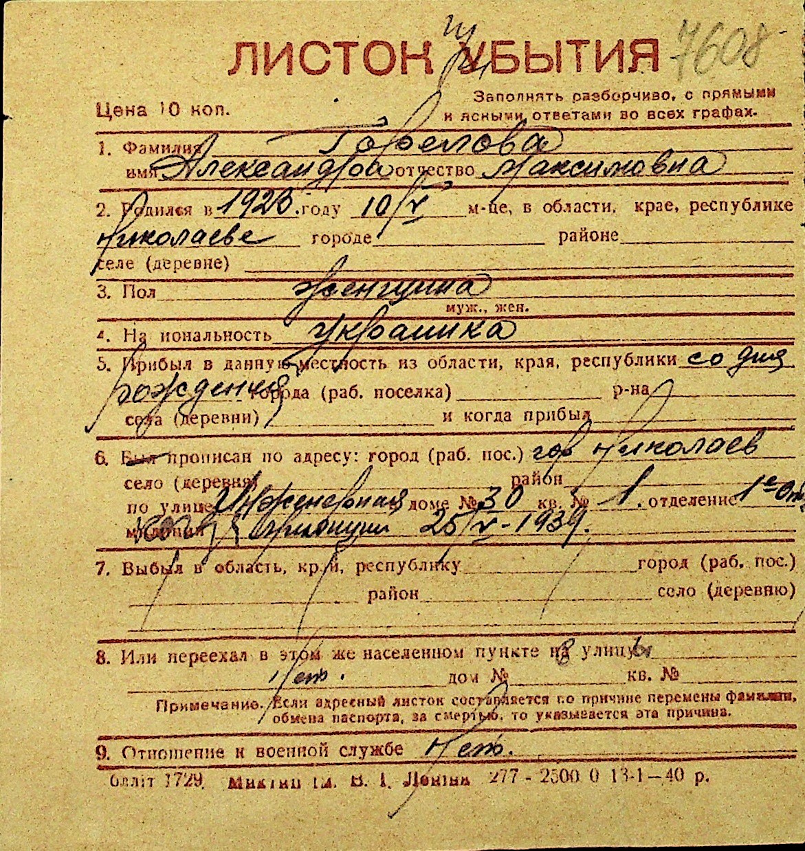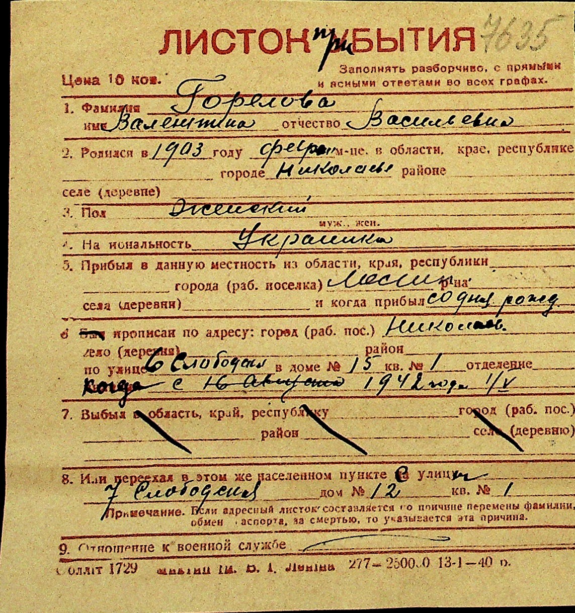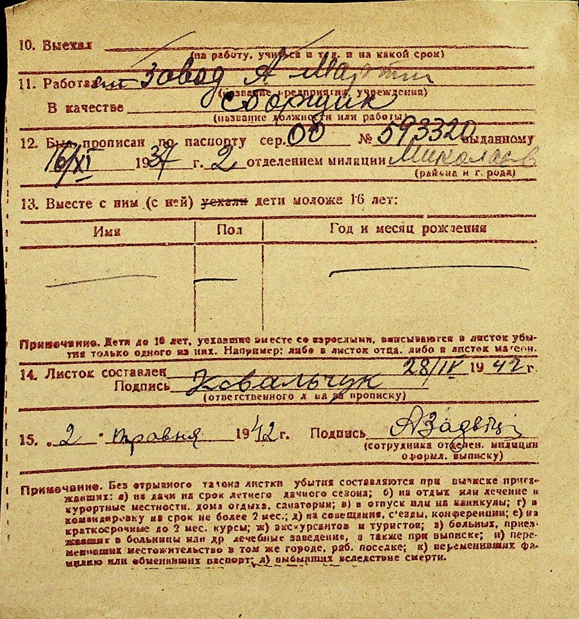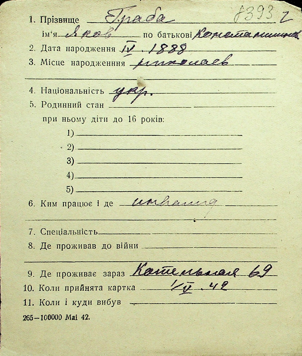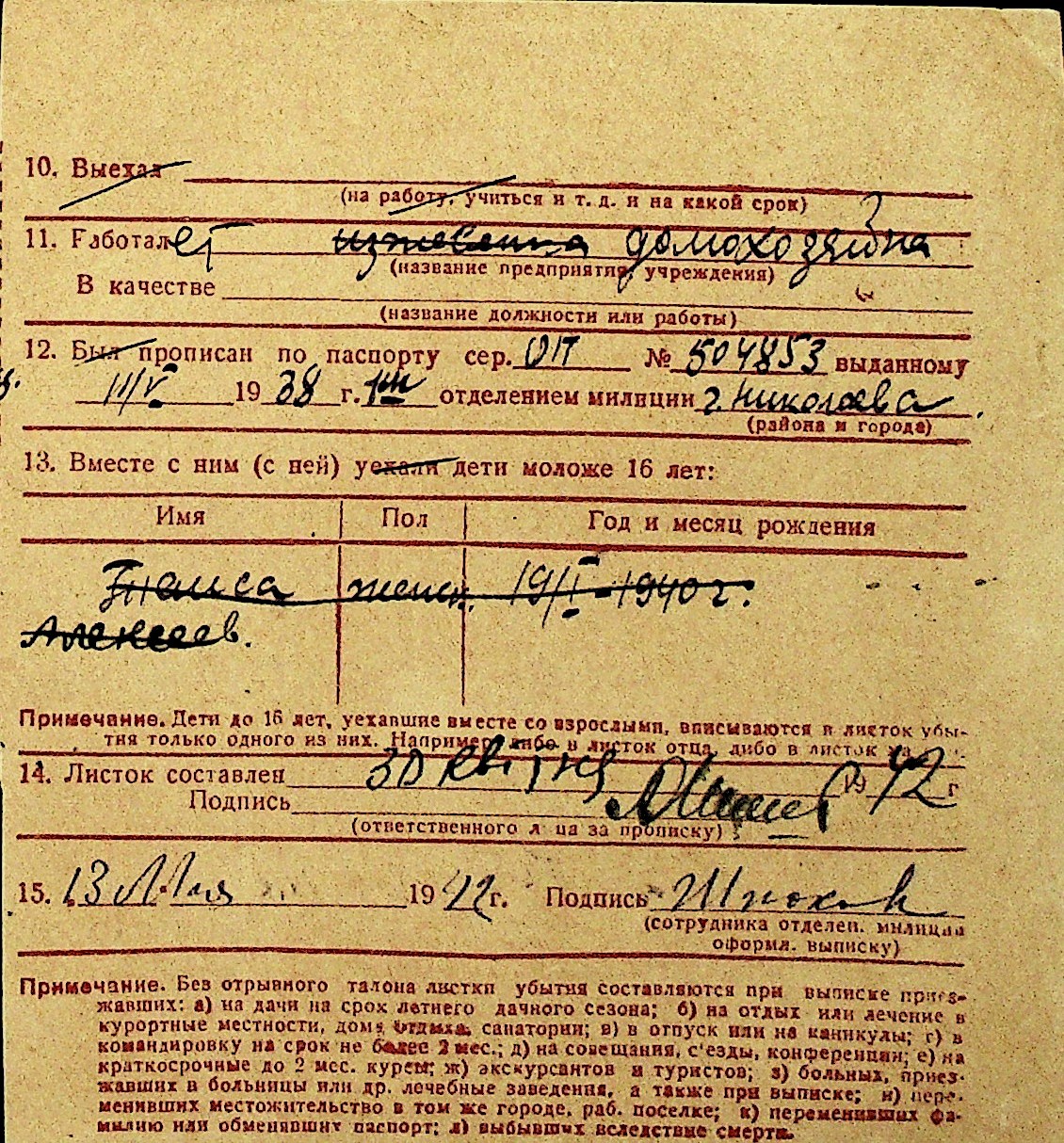 • • Перелік карток до фонду № Н-1016