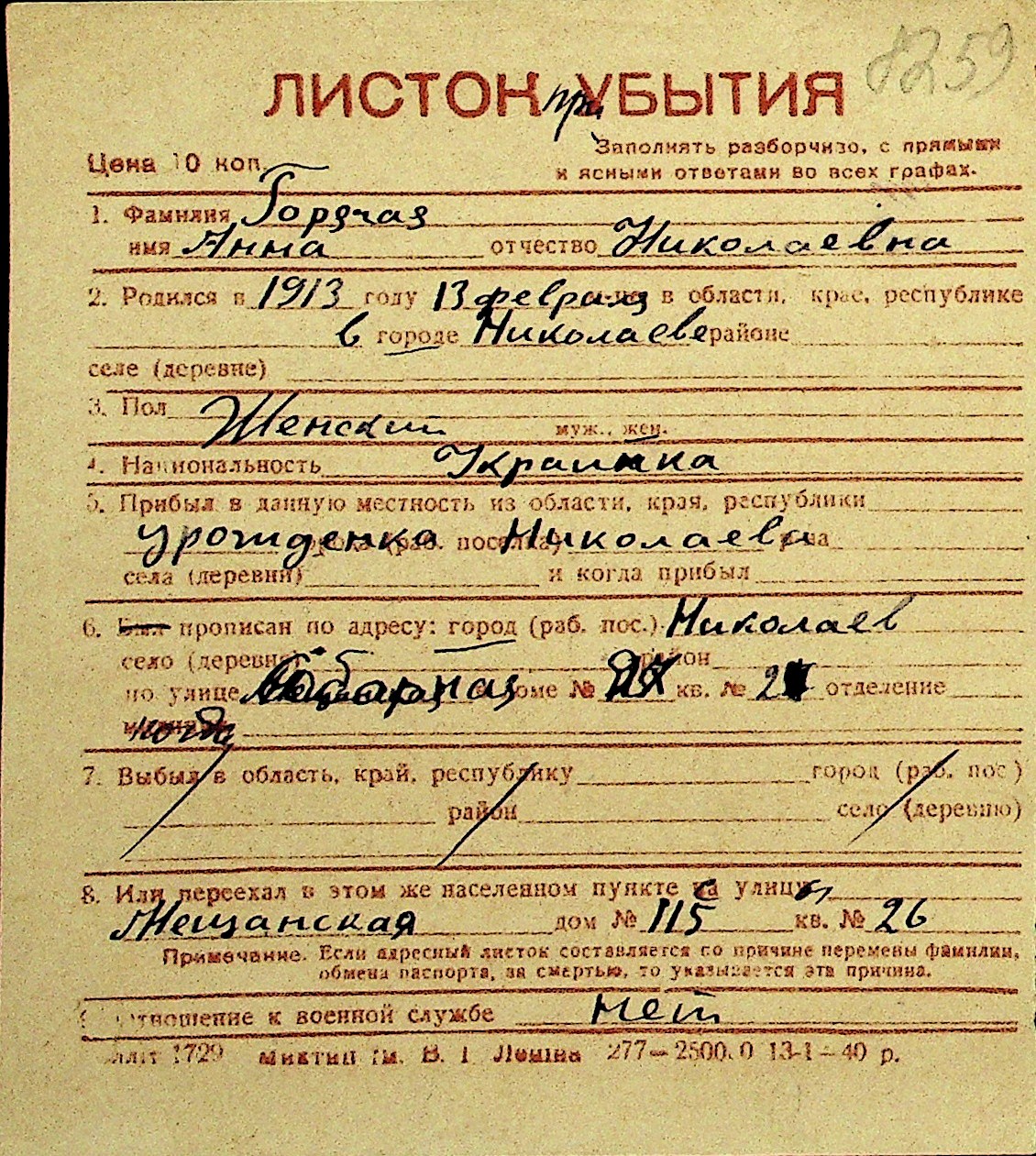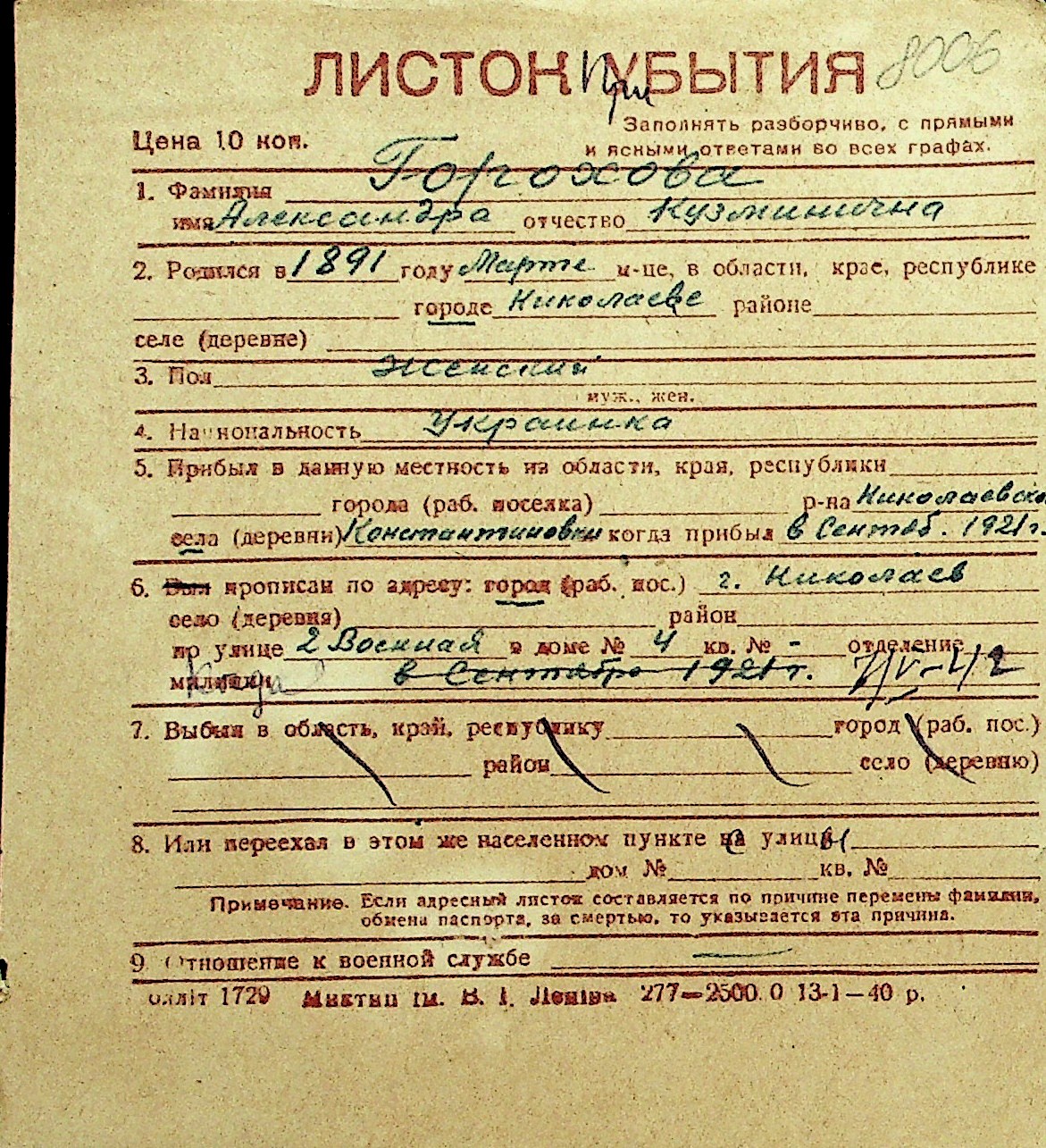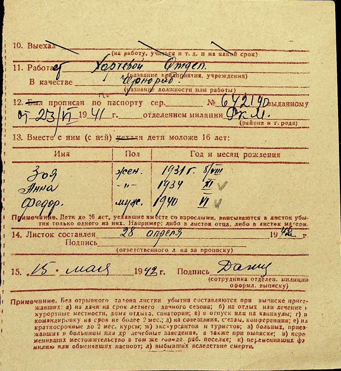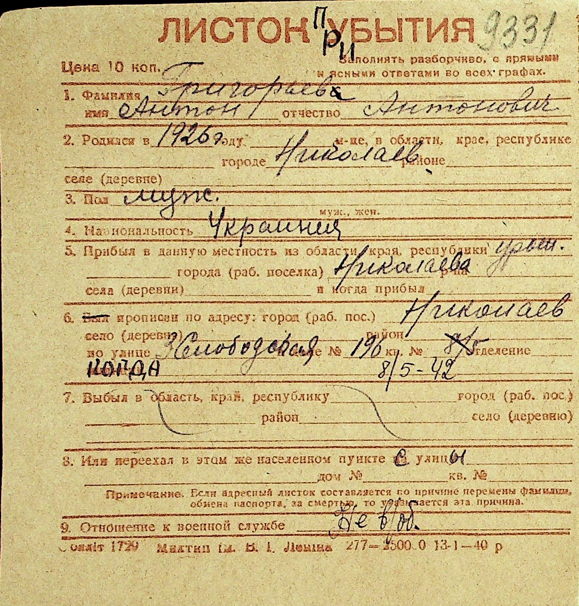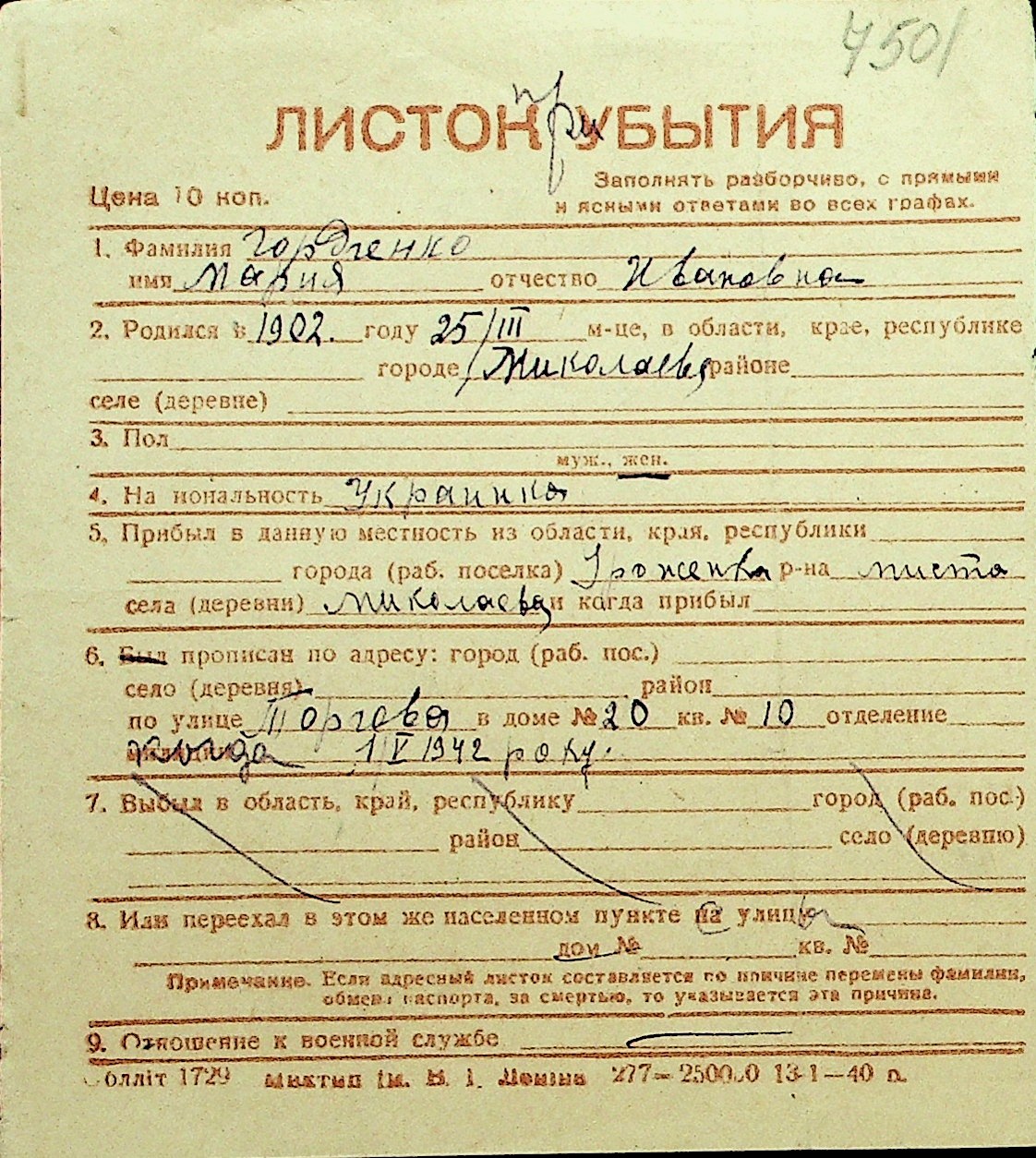 • • Перелік карток до фонду № Н-1016