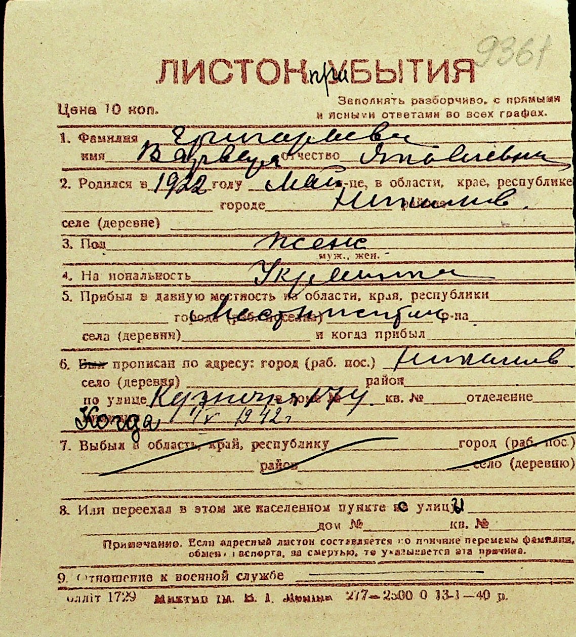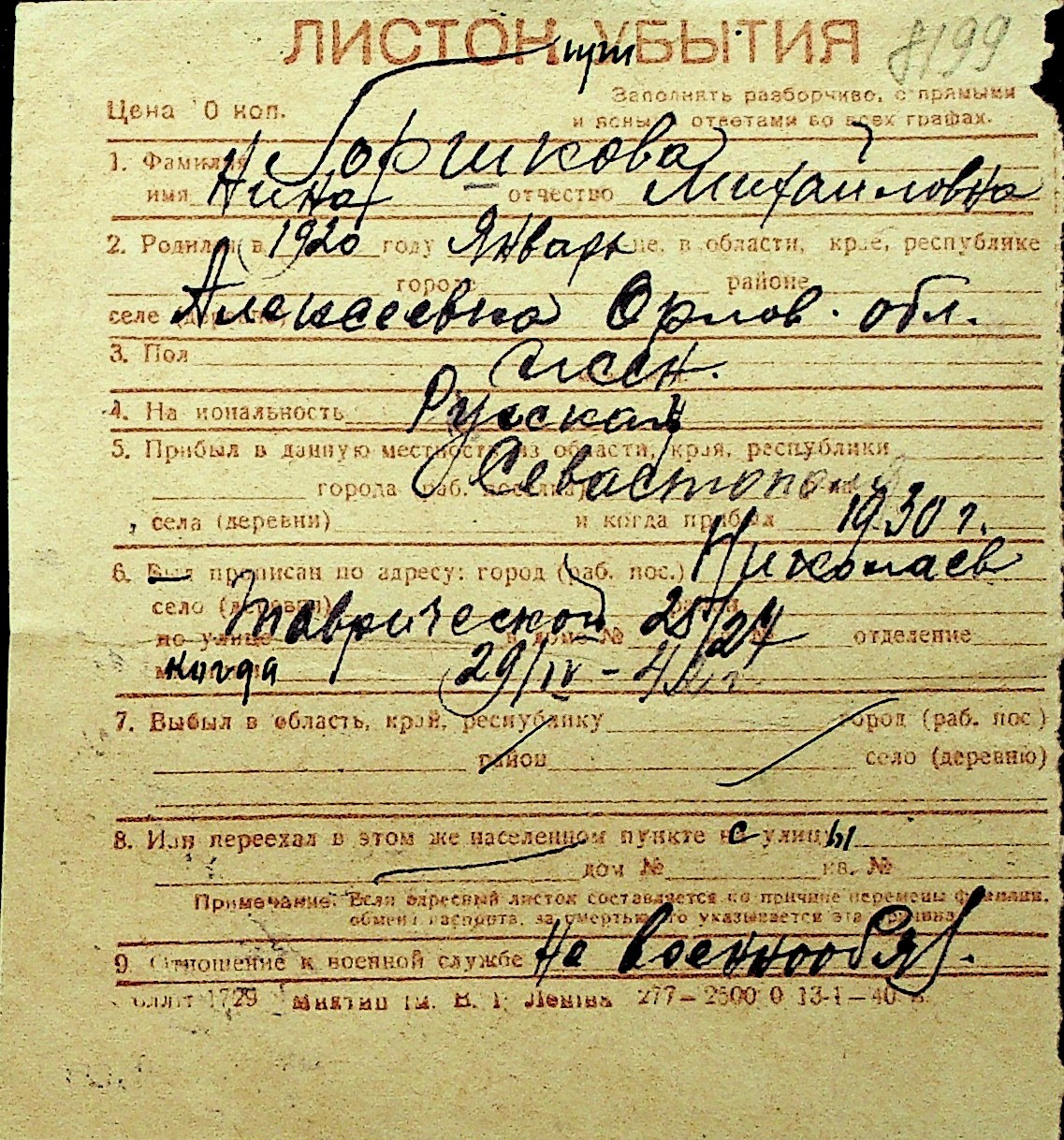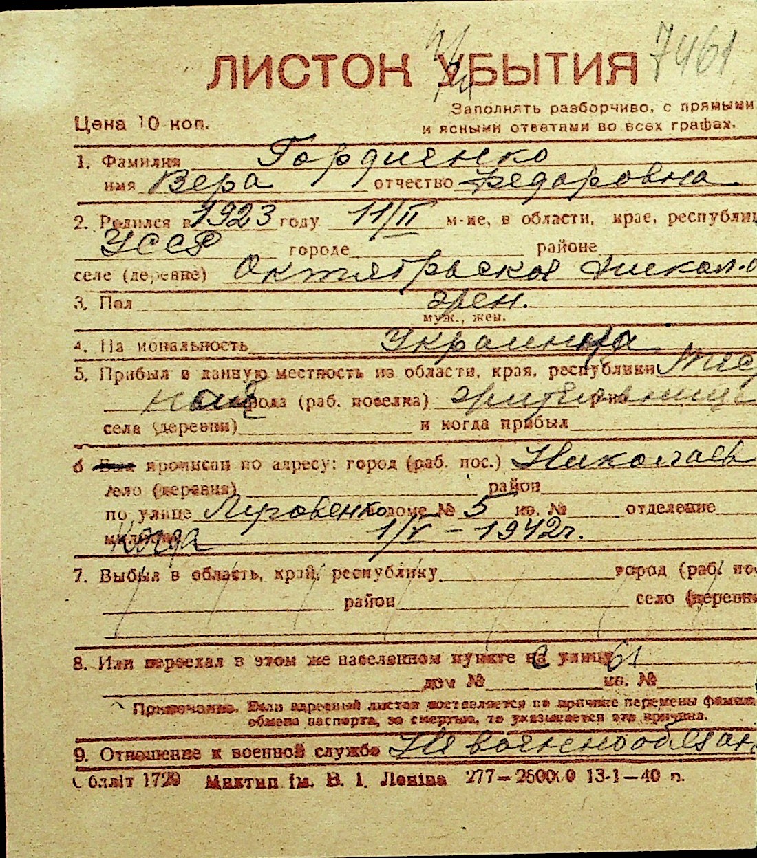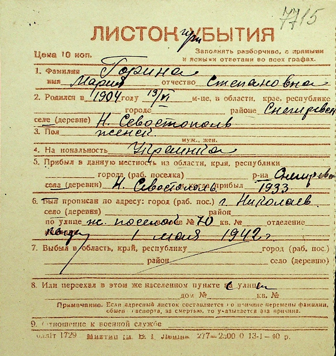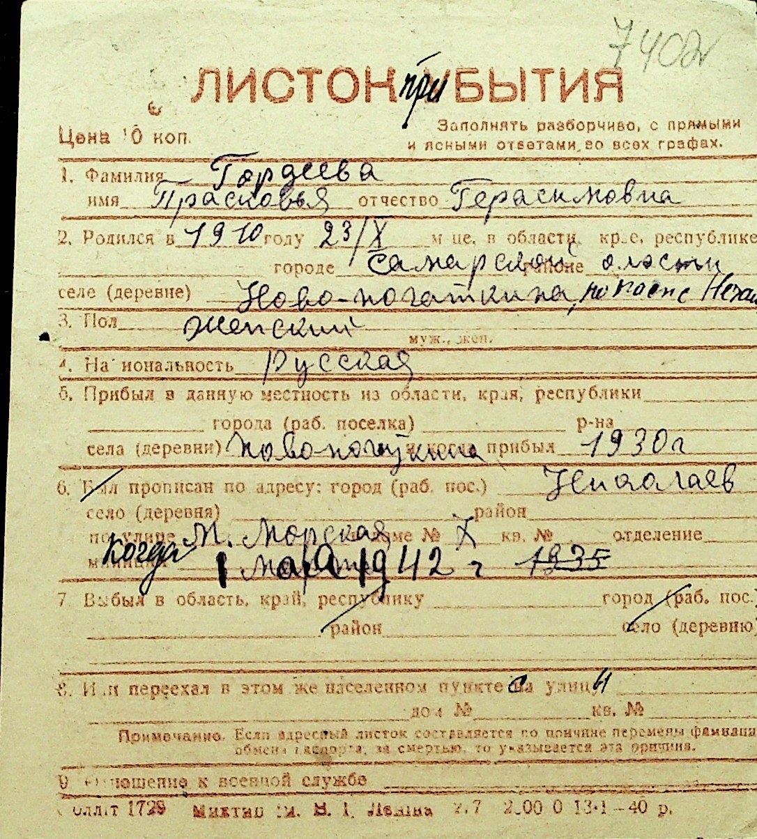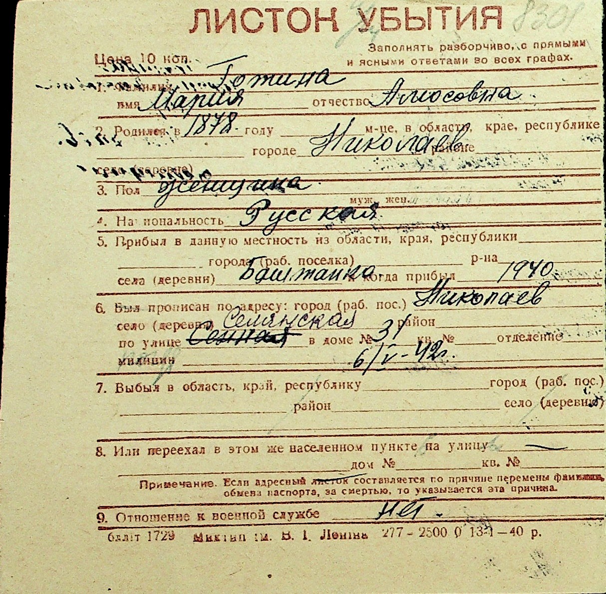 • • Перелік карток до фонду № Н-1016