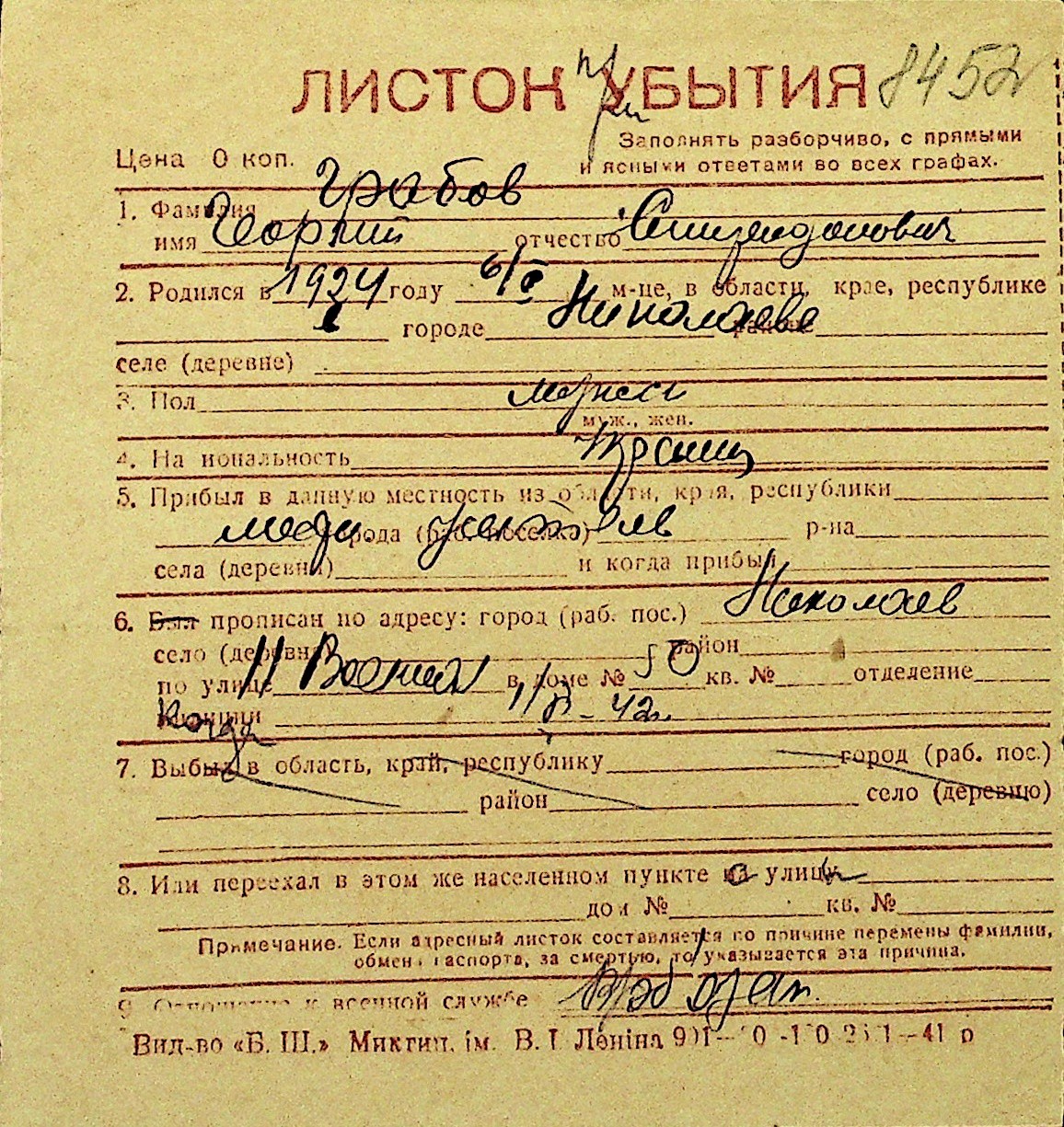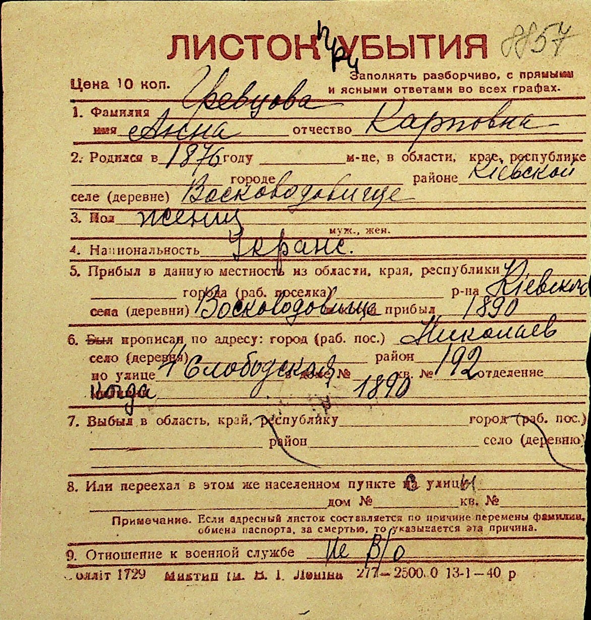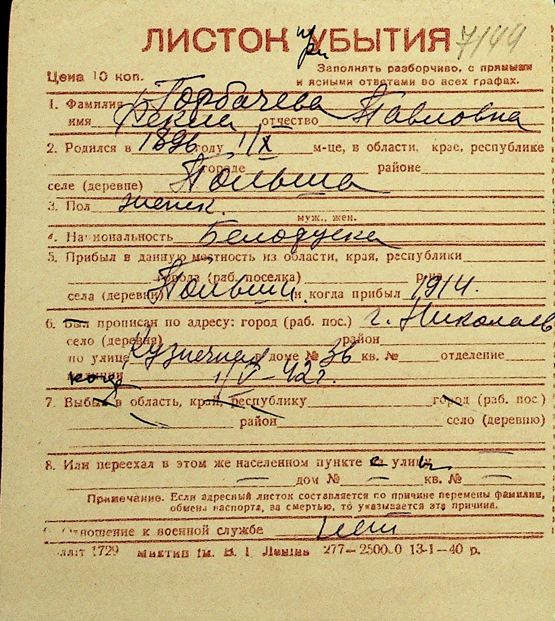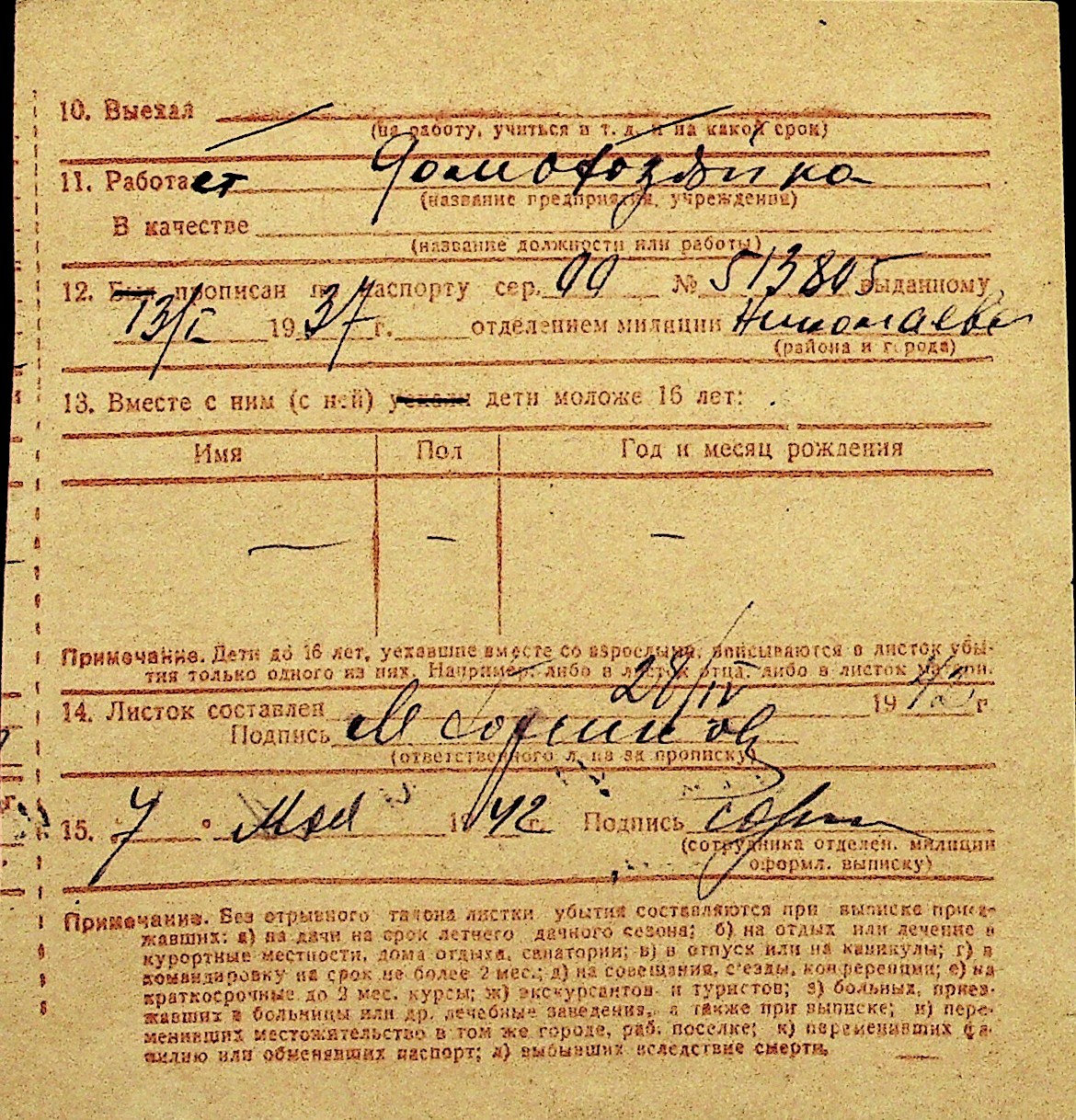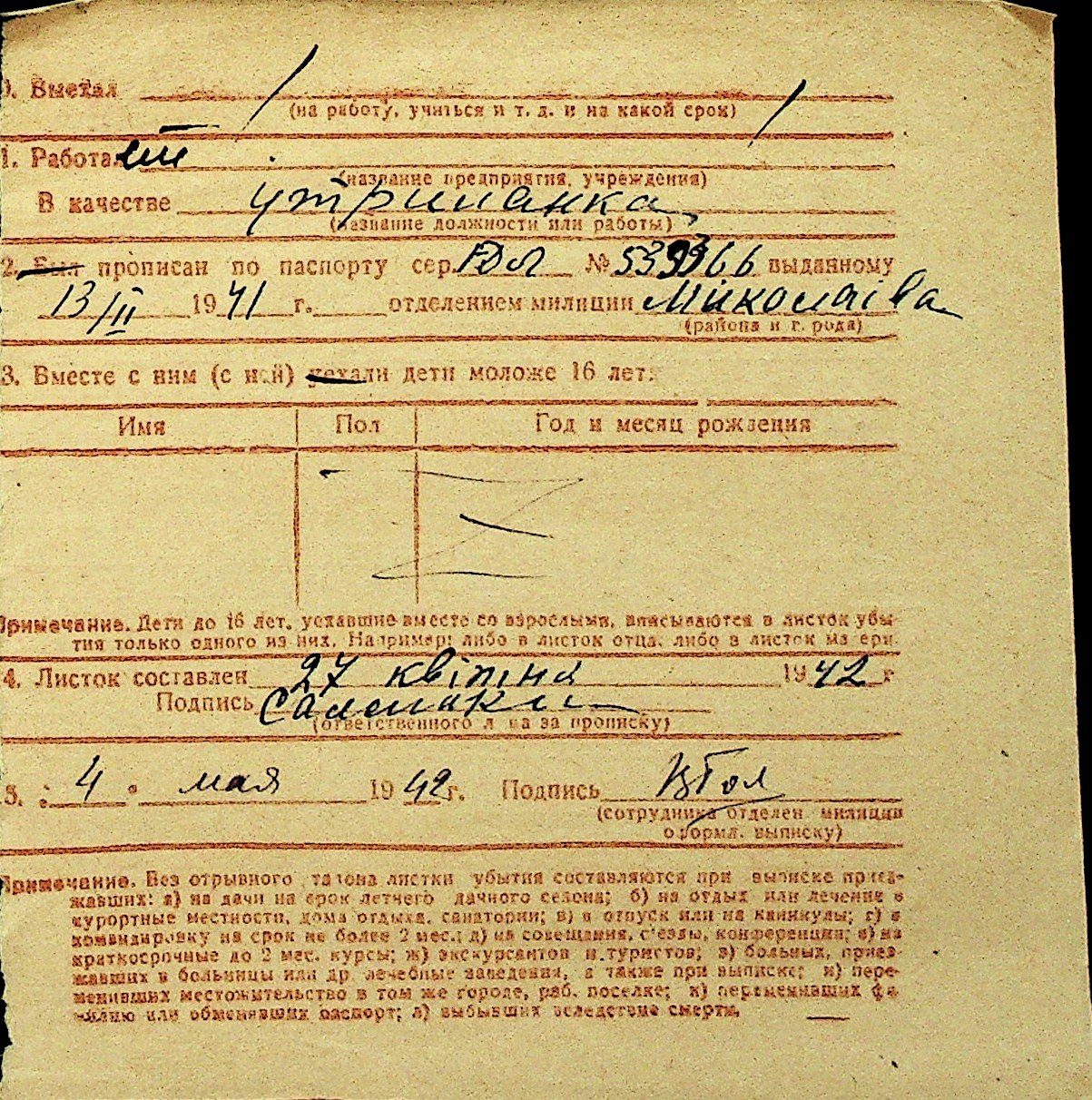 • • Перелік карток до фонду № Н-1016