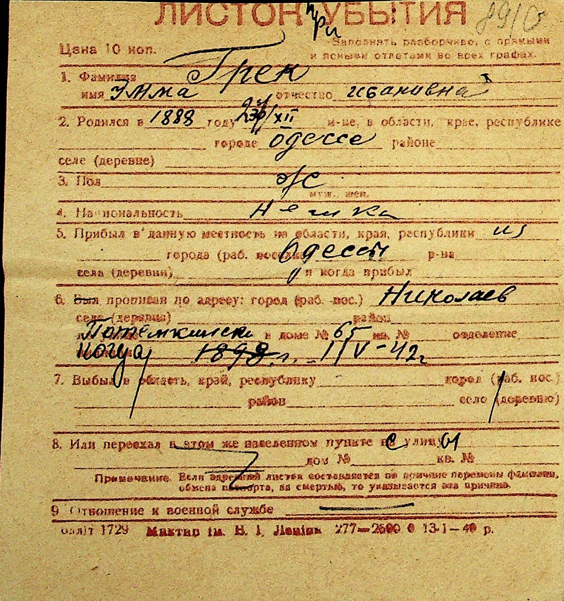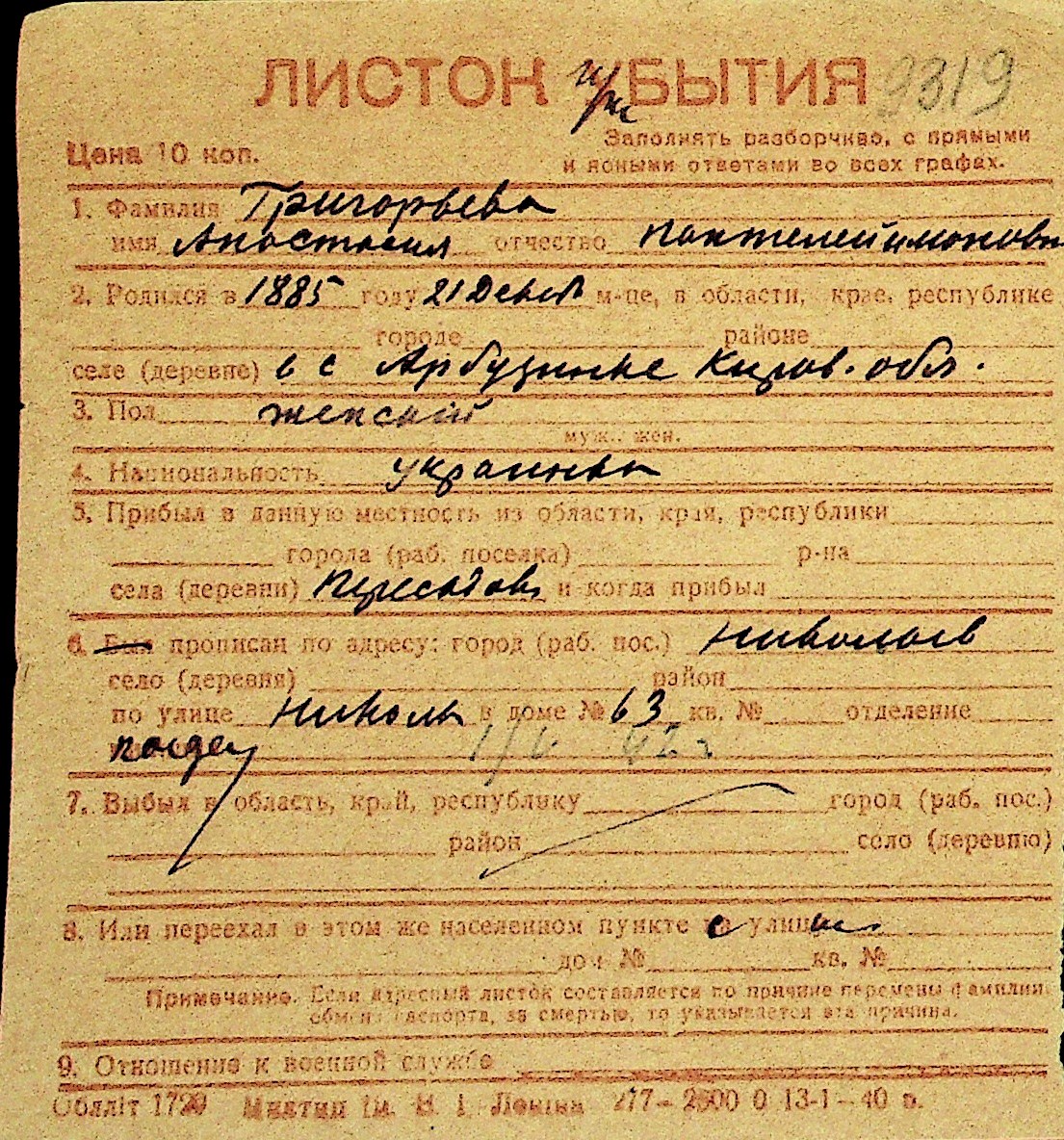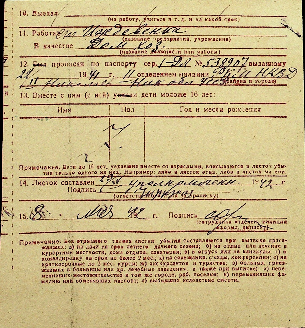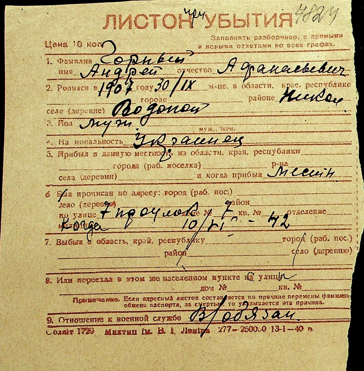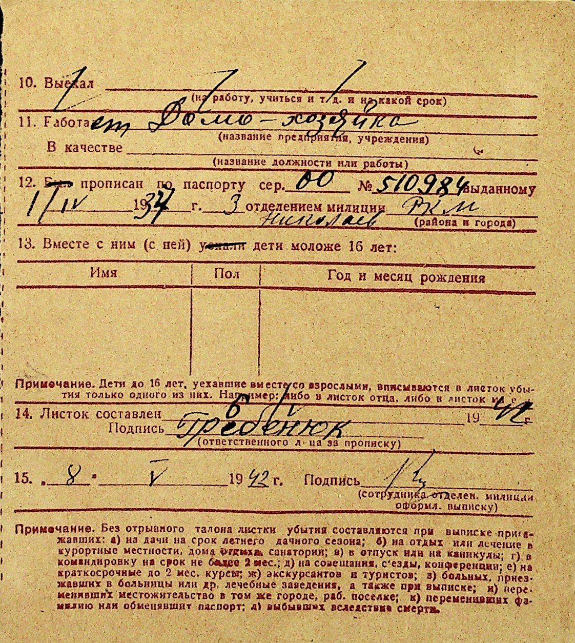 • • Перелік карток до фонду № Н-1016