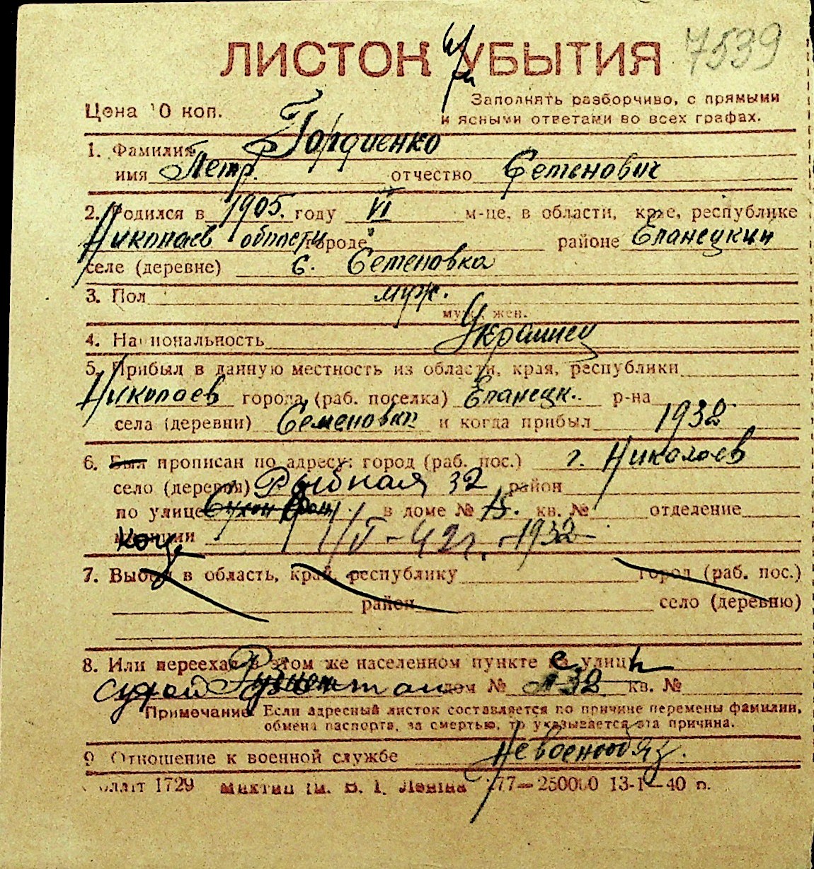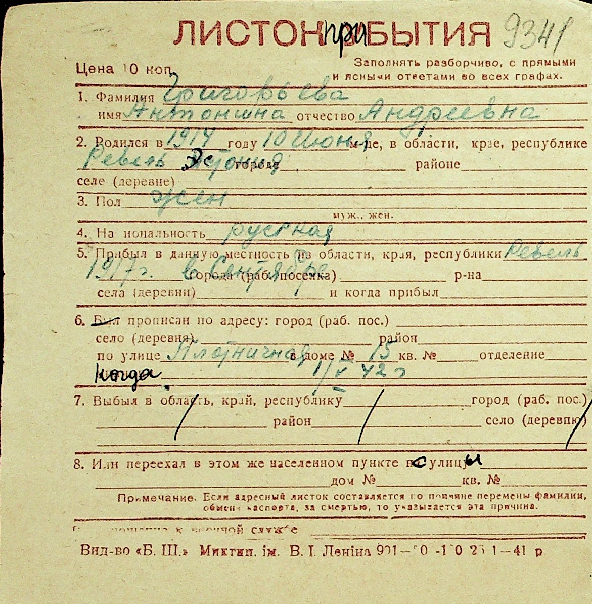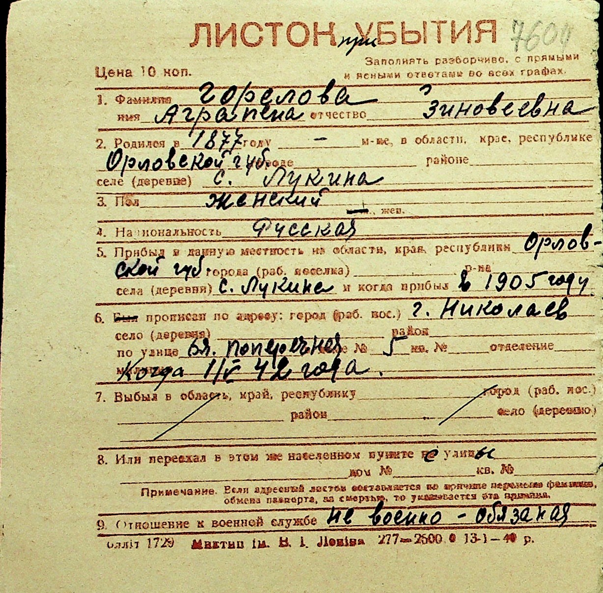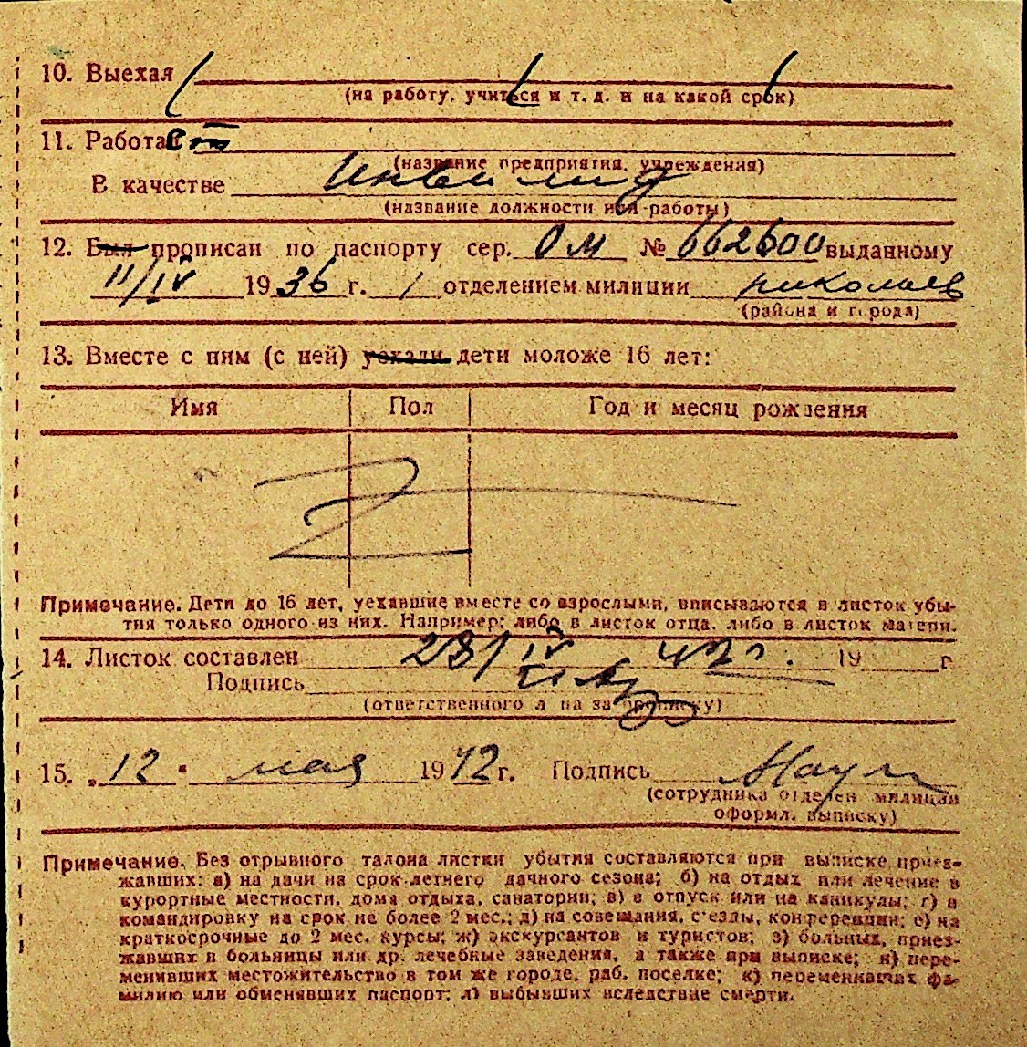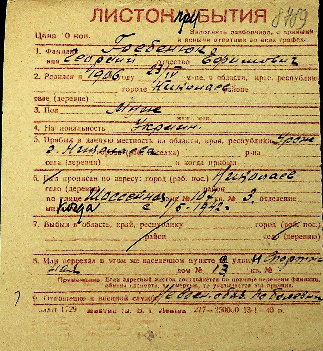 • • Перелік карток до фонду № Н-1016