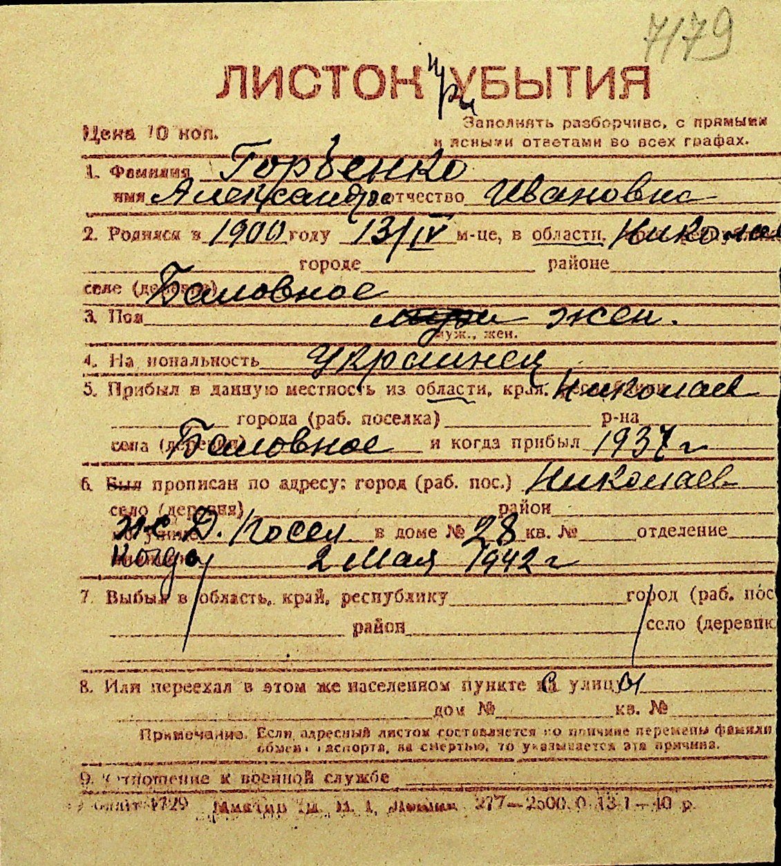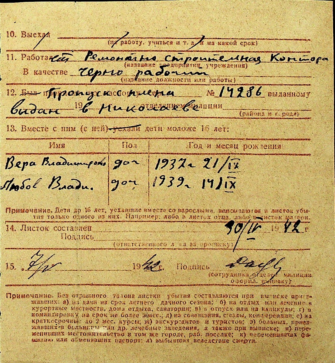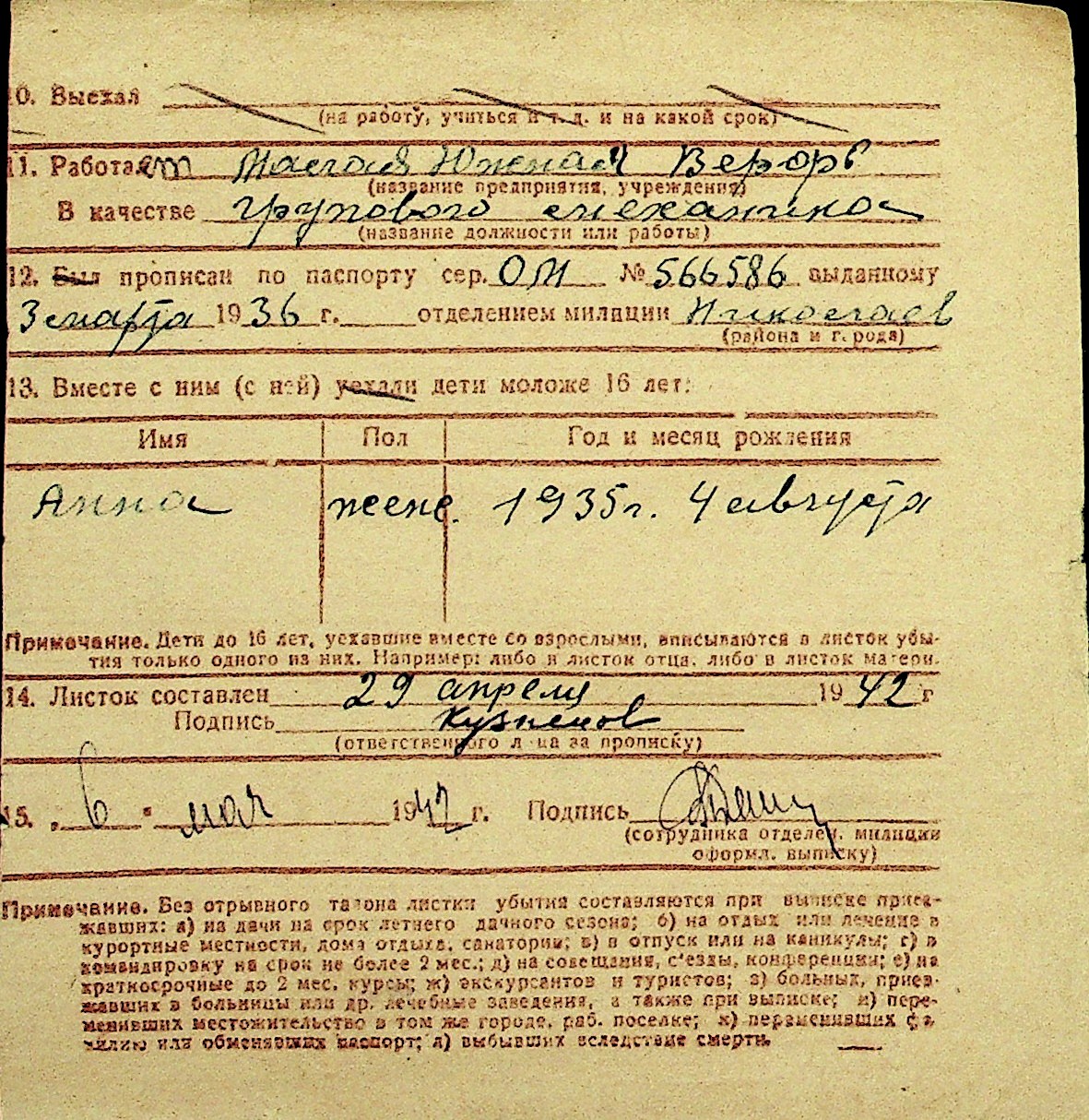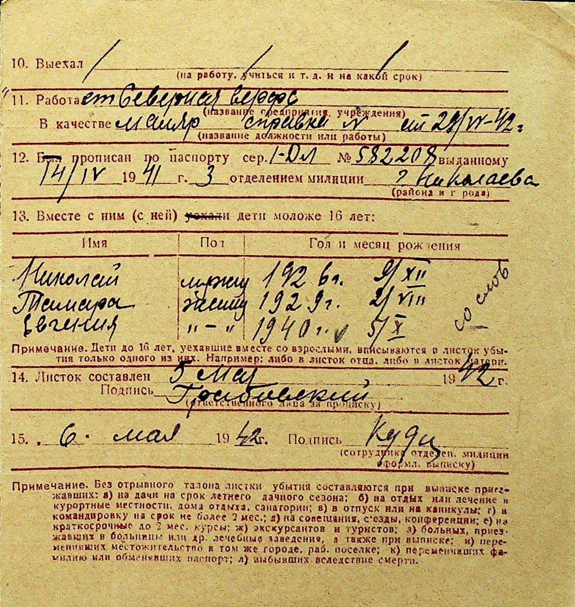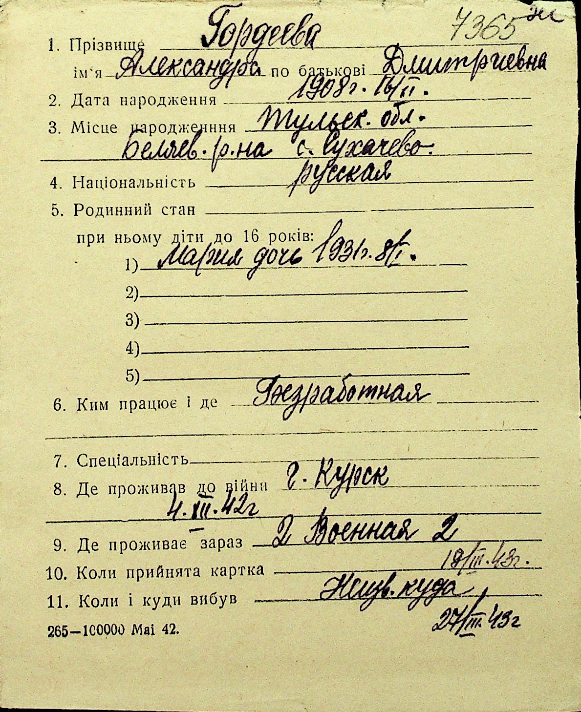 • • Перелік карток до фонду № Н-1016