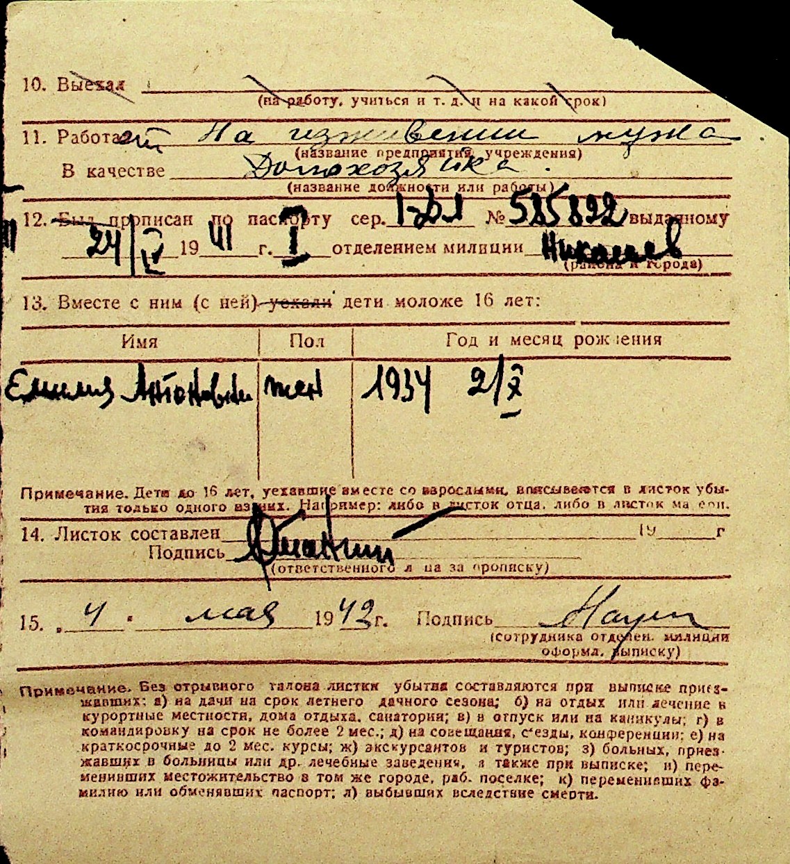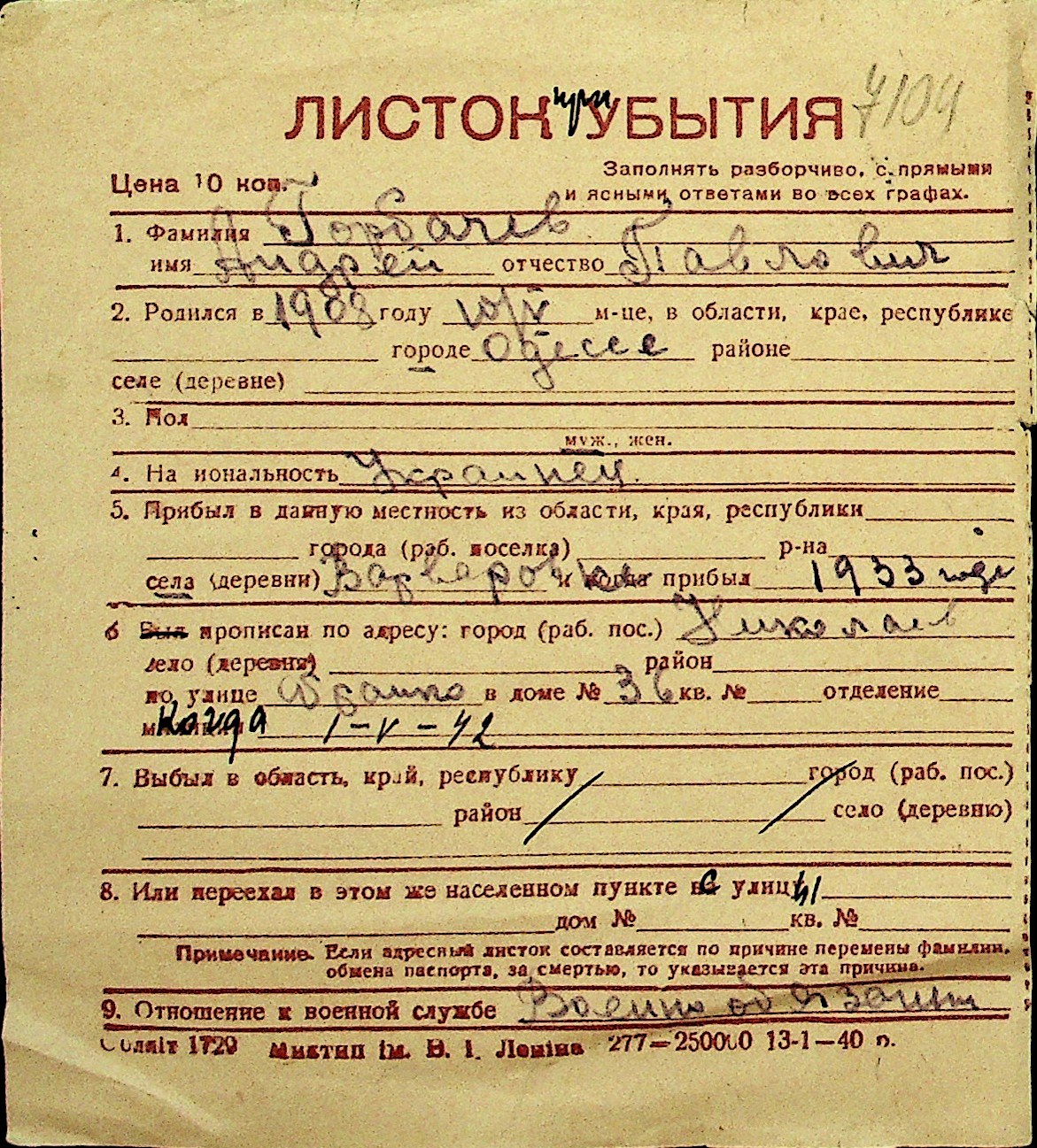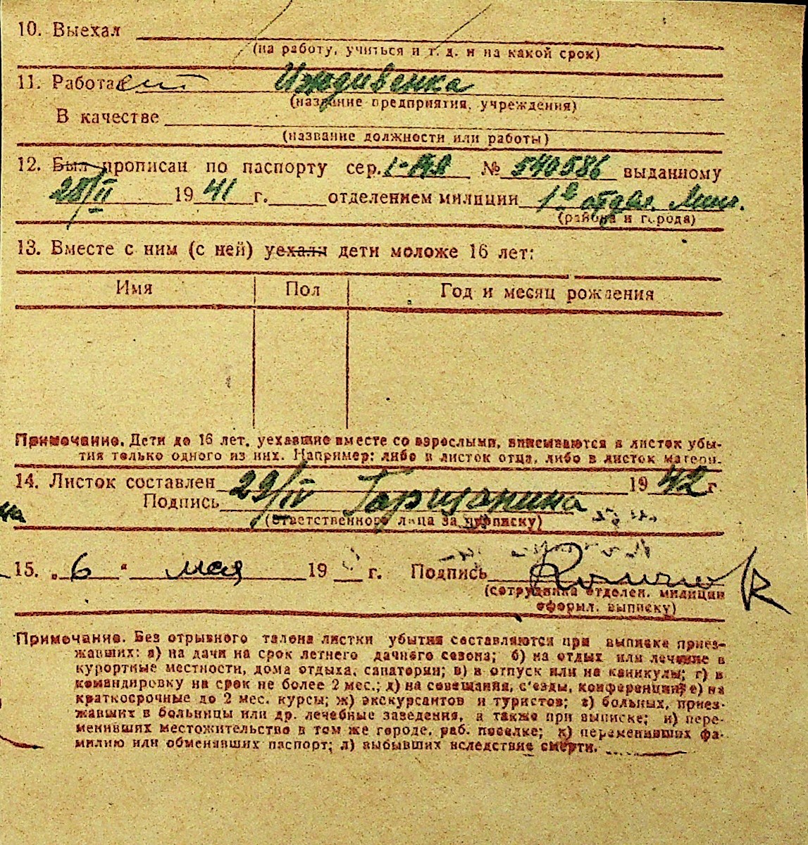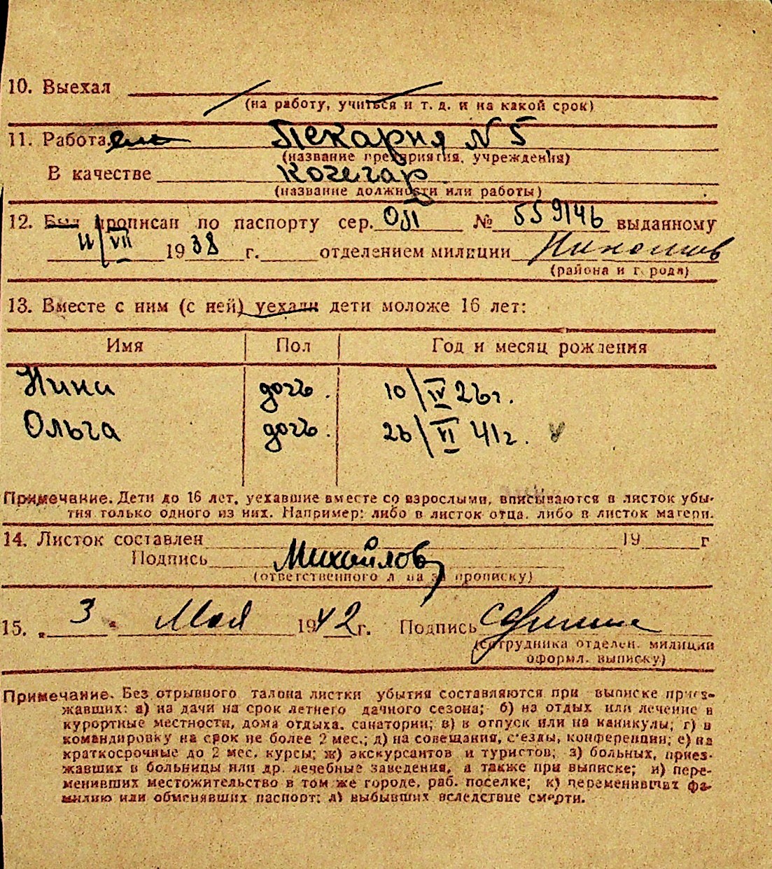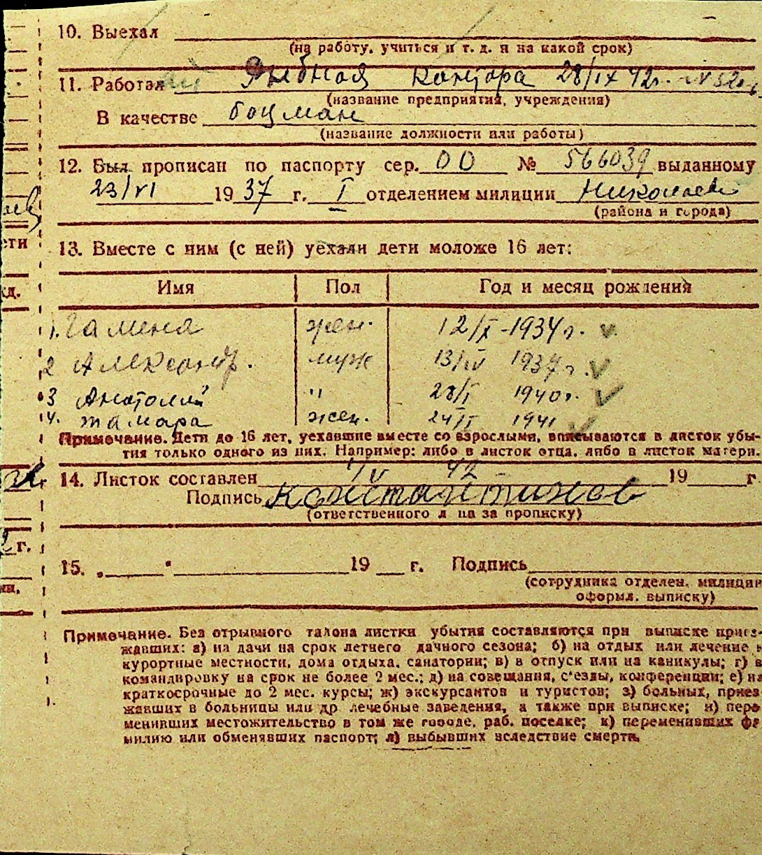 • • Перелік карток до фонду № Н-1016