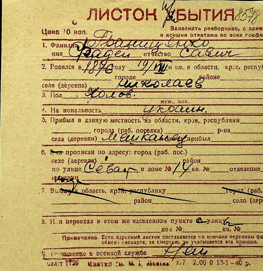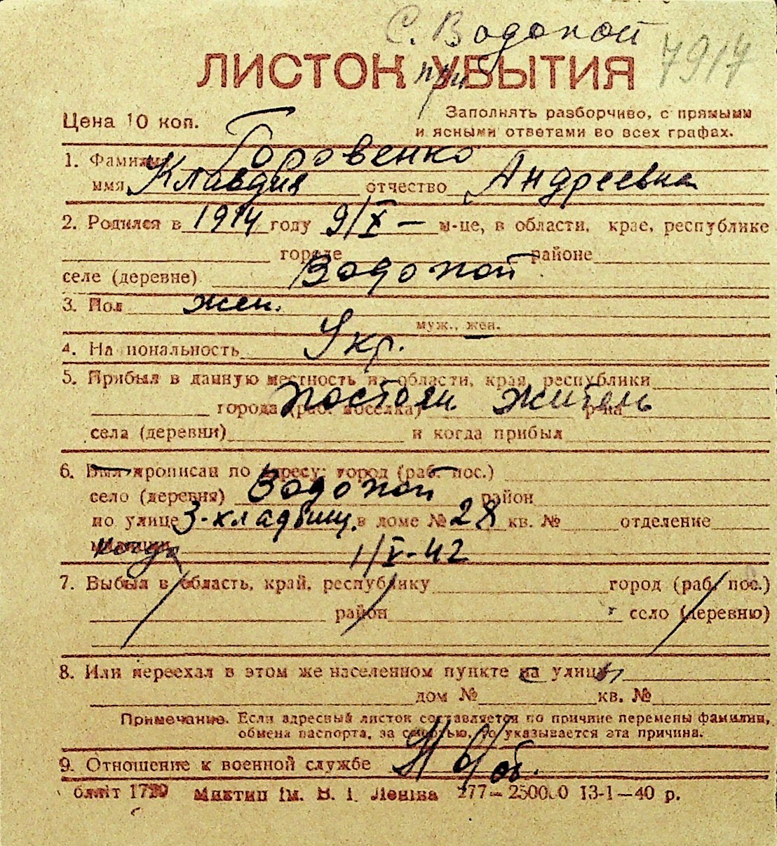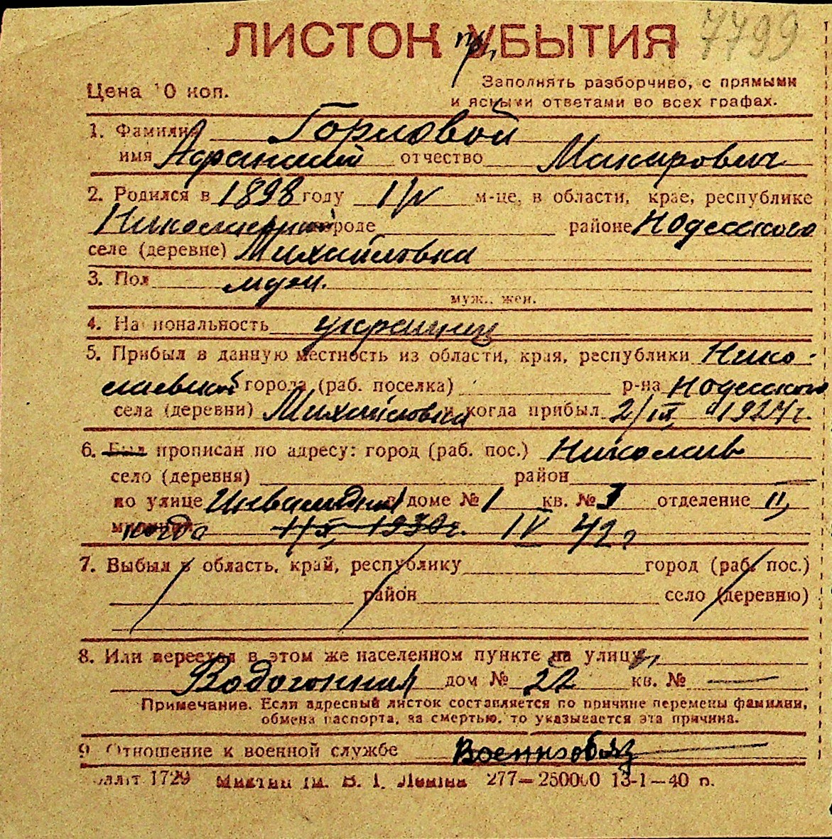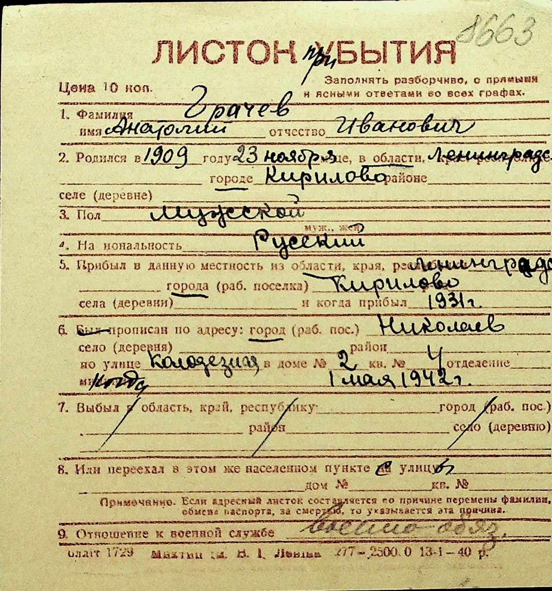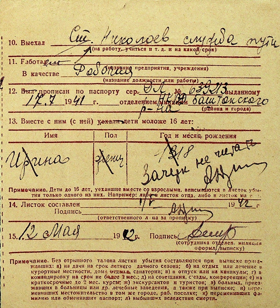 • • Перелік карток до фонду № Н-1016