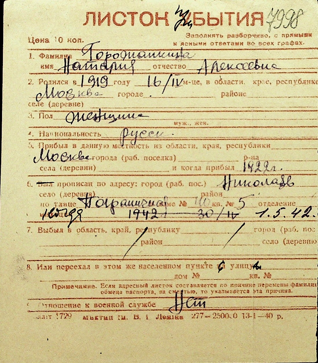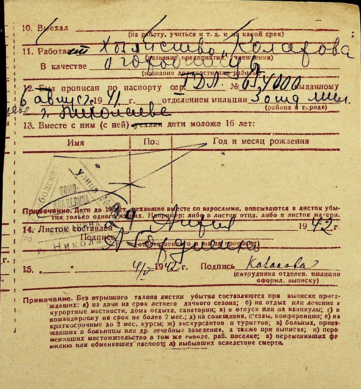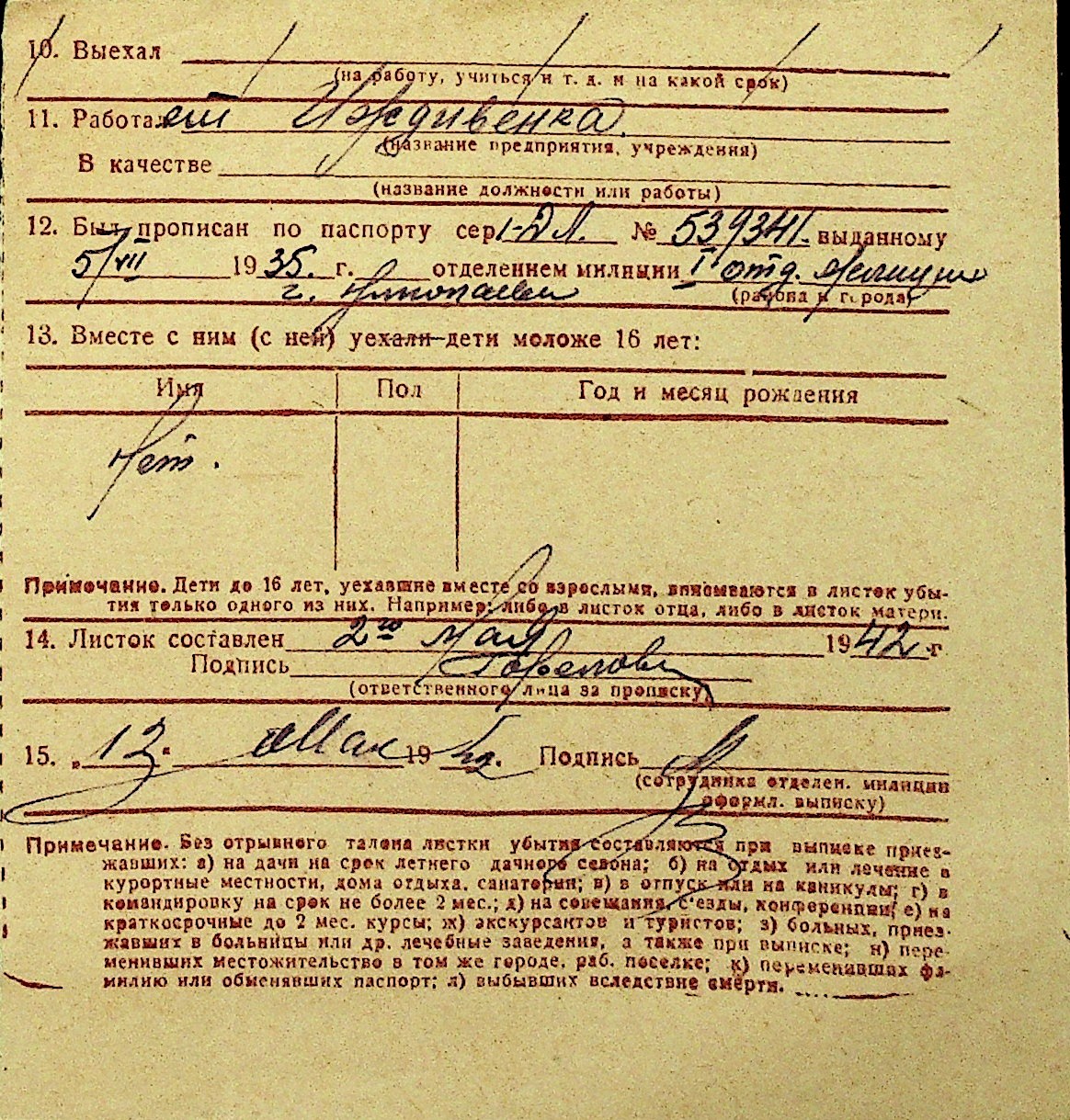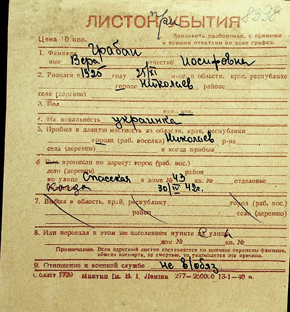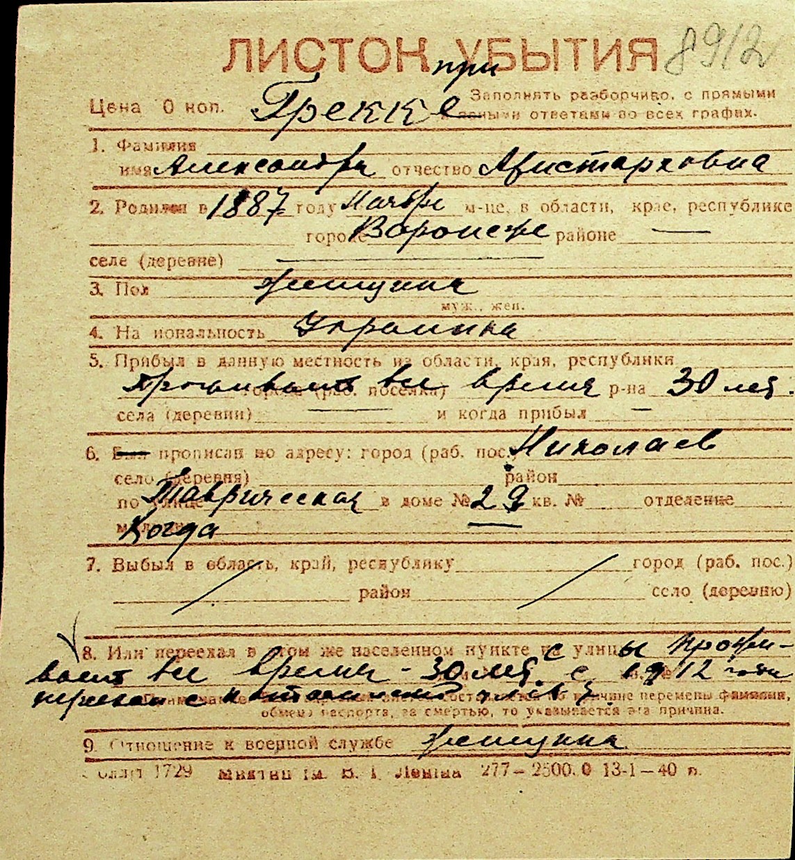 • • Перелік карток до фонду № Н-1016