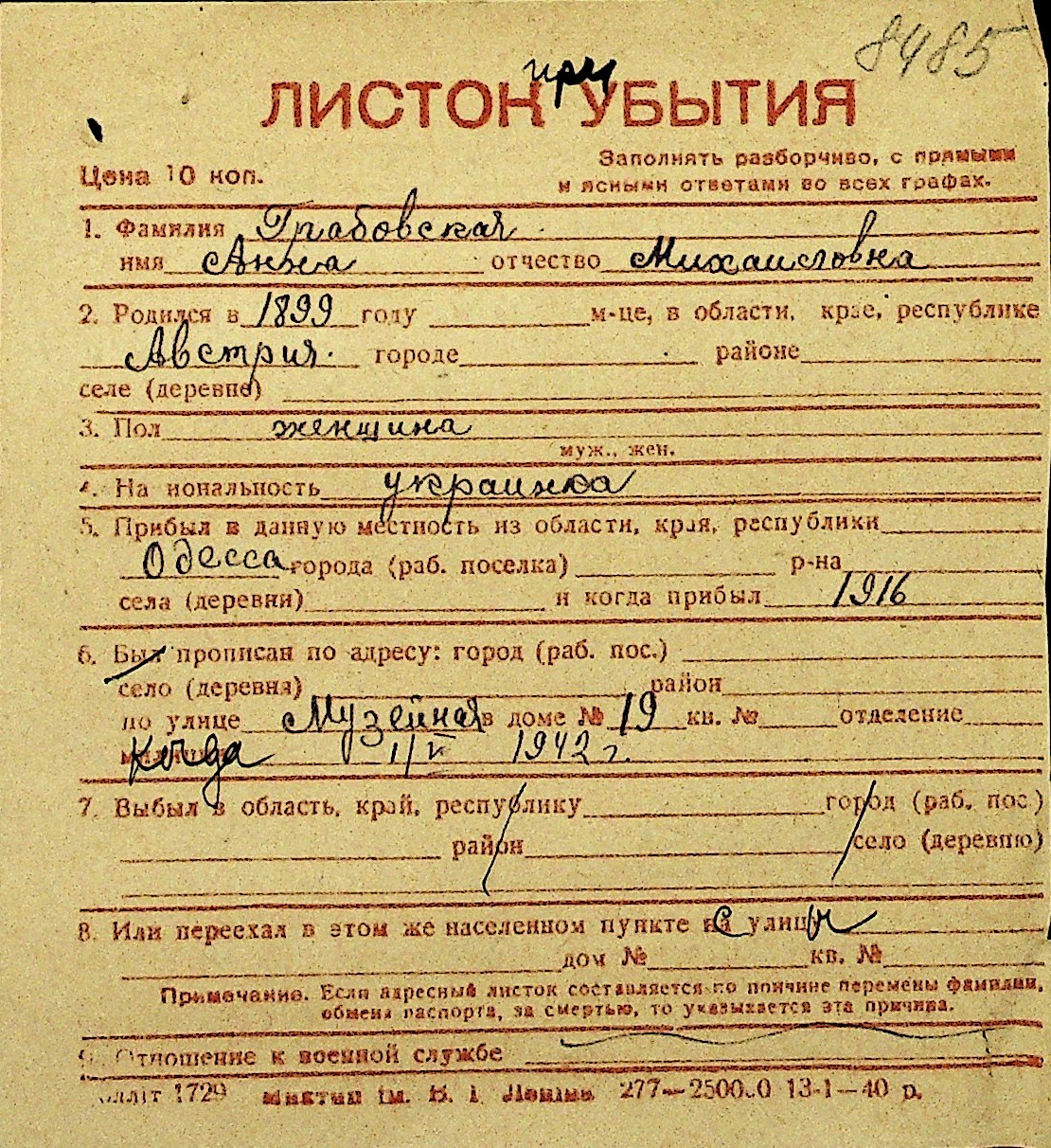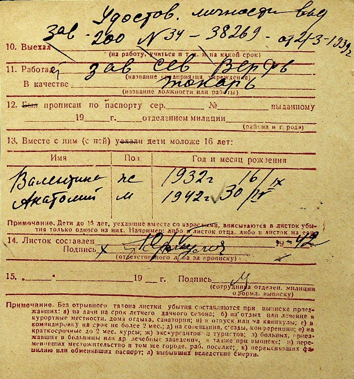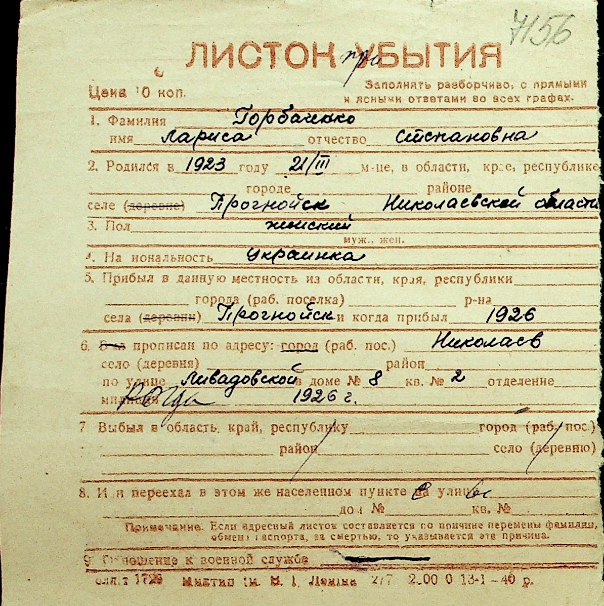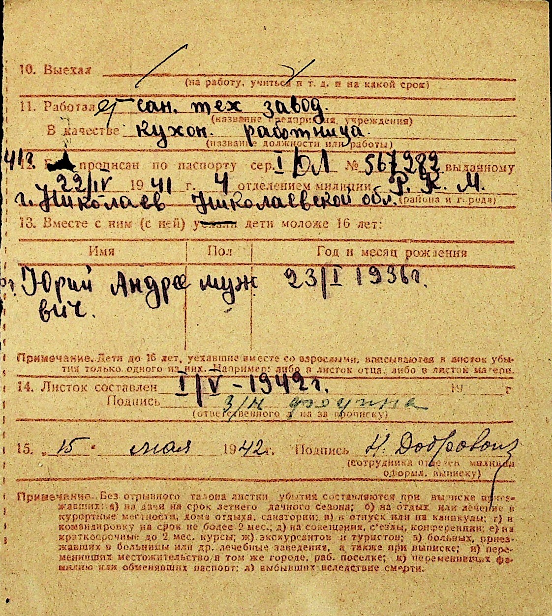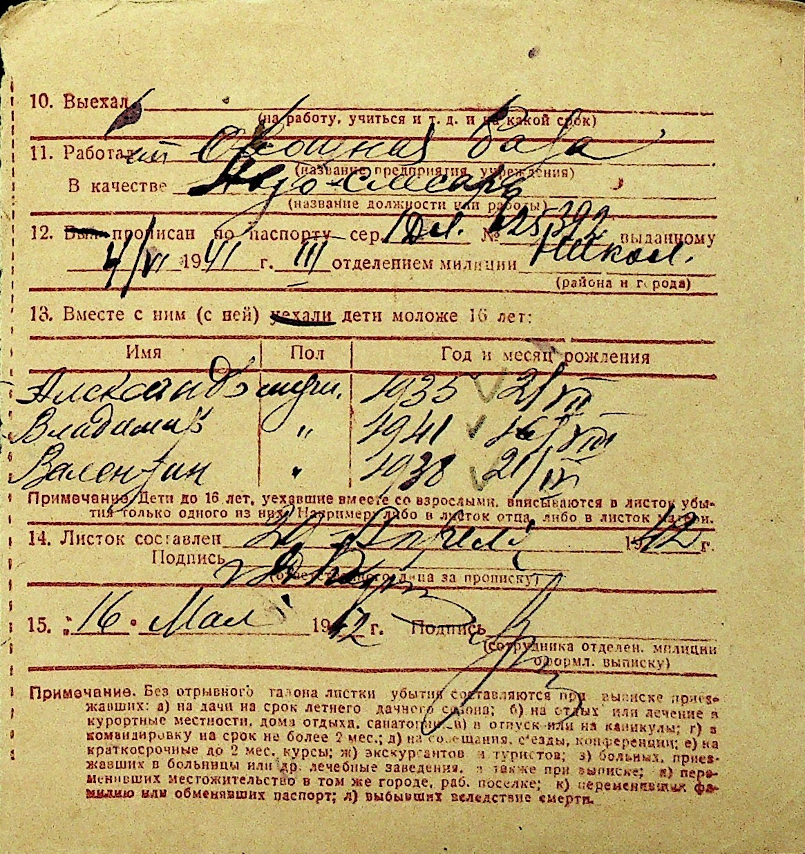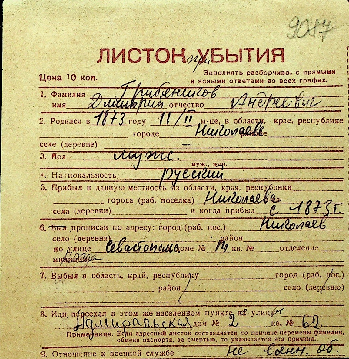 • • Перелік карток до фонду № Н-1016