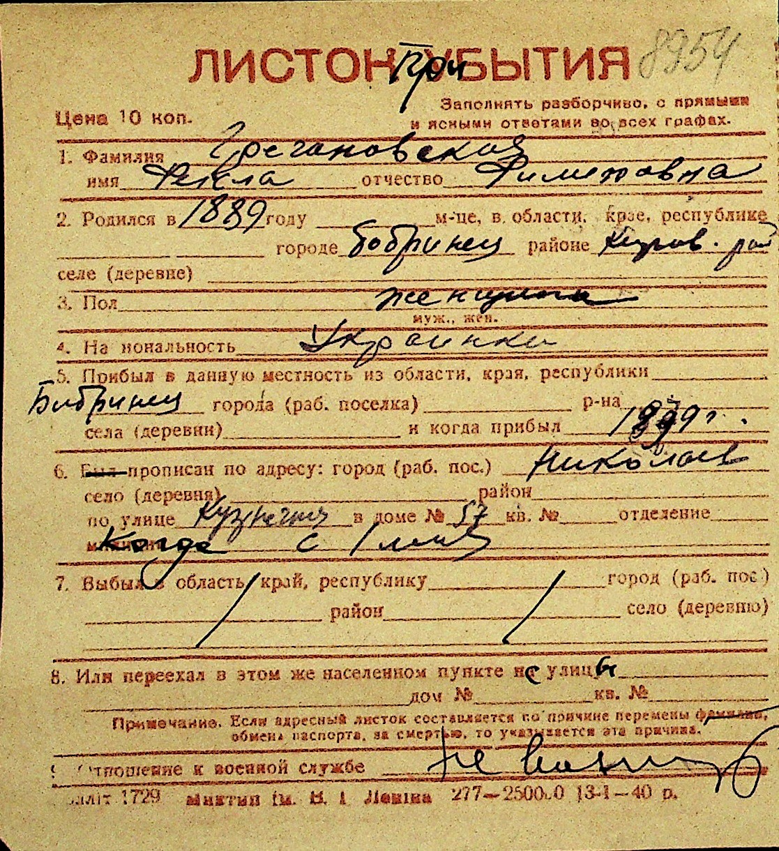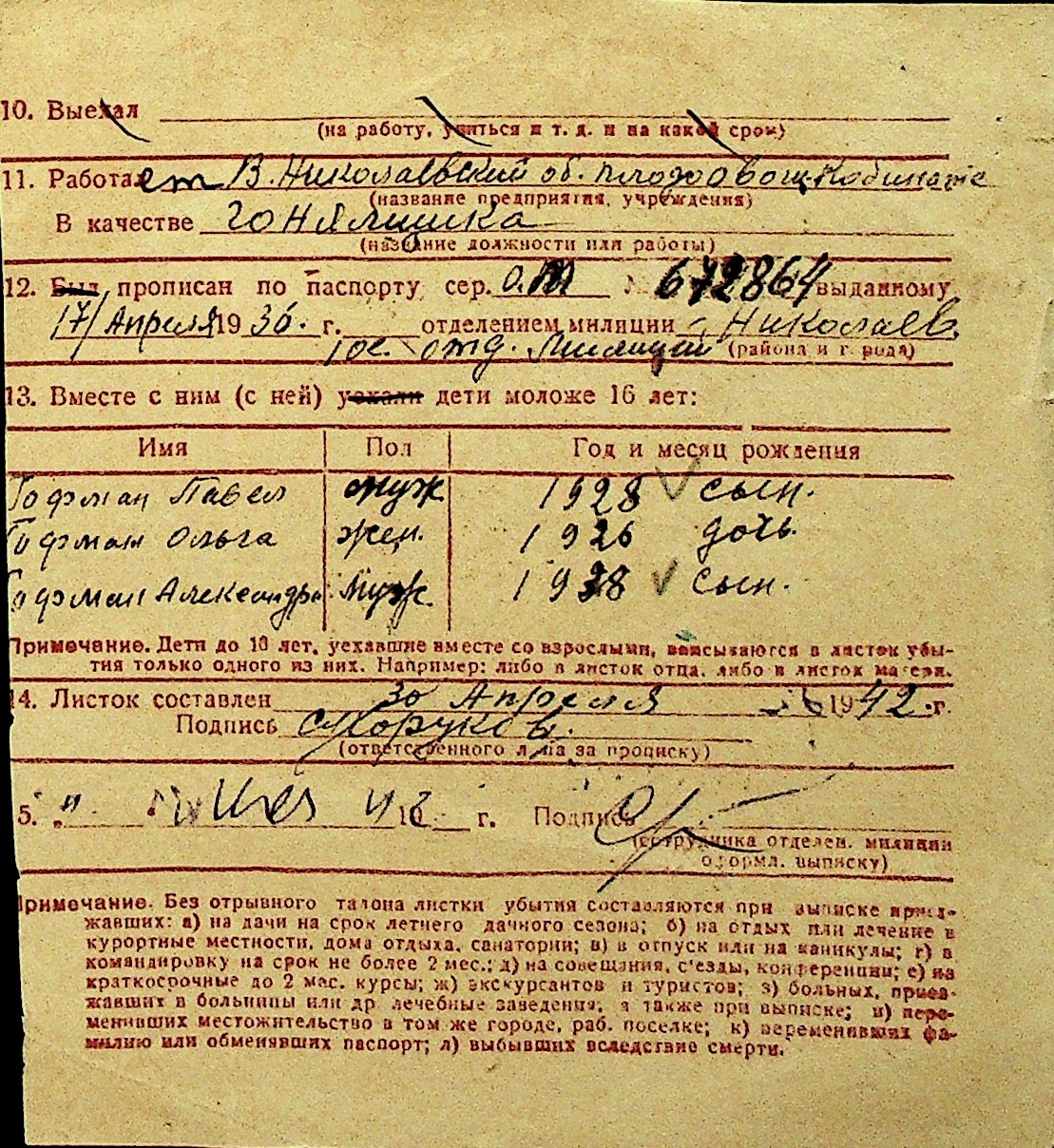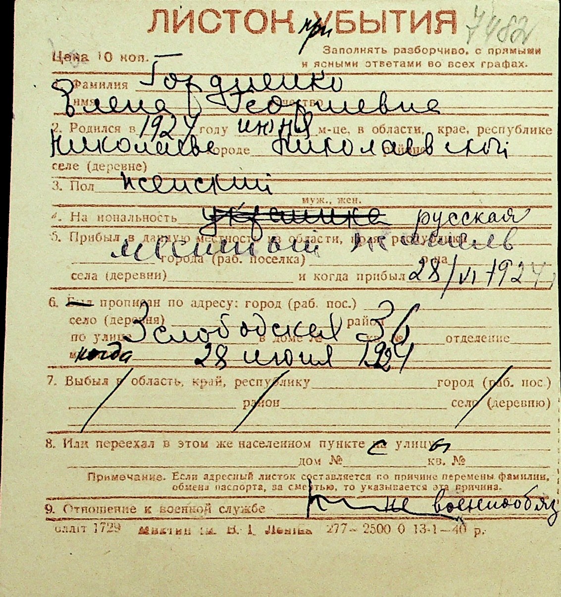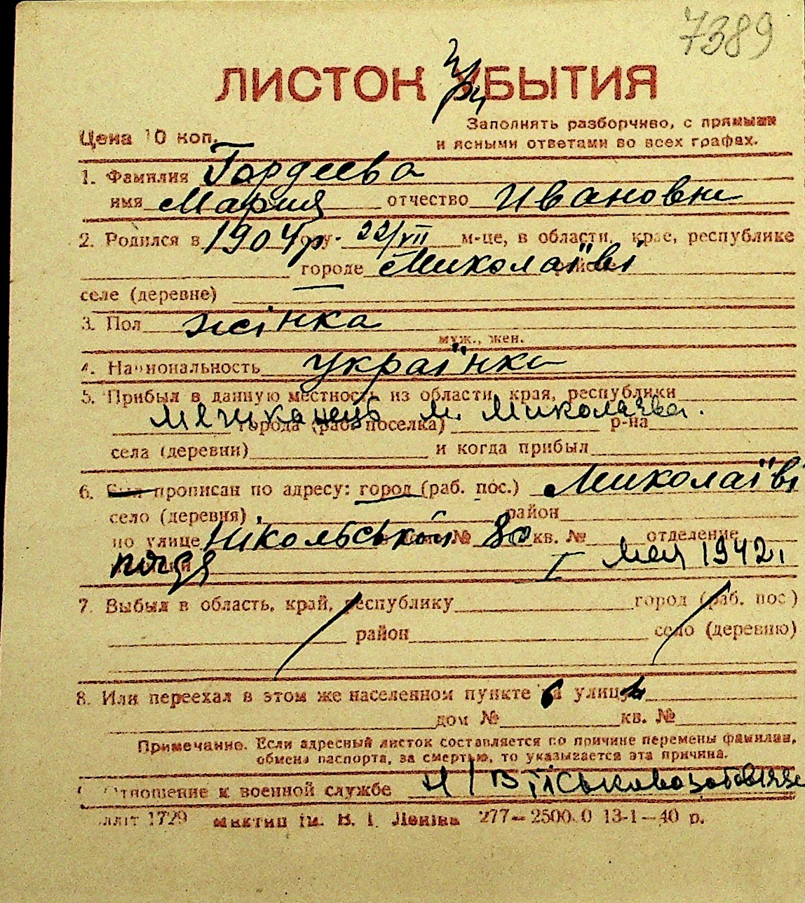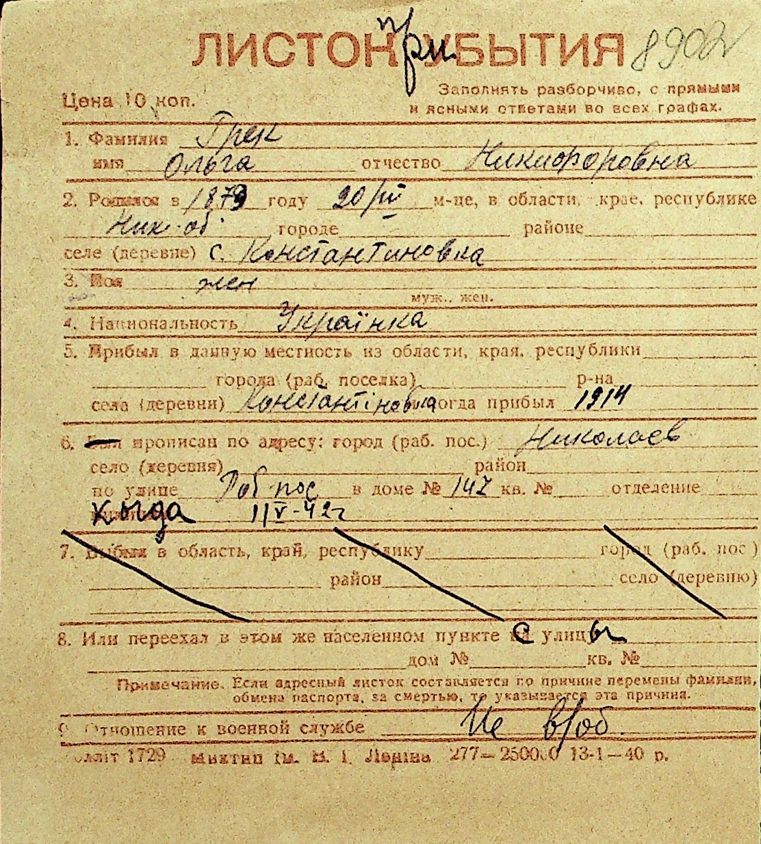 • • Перелік карток до фонду № Н-1016