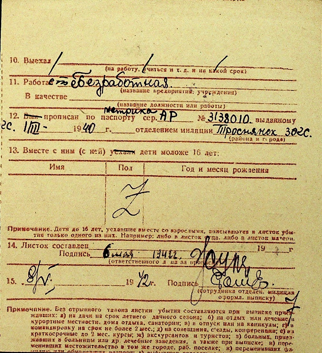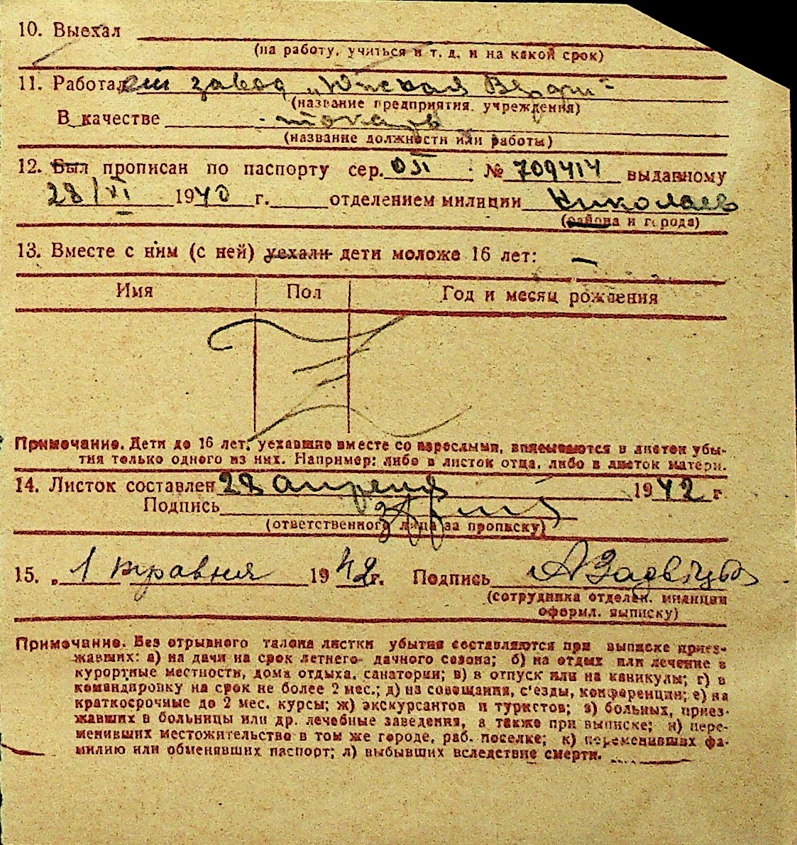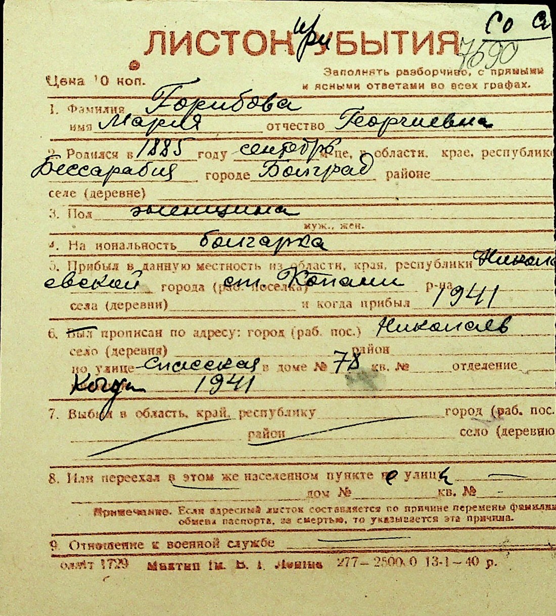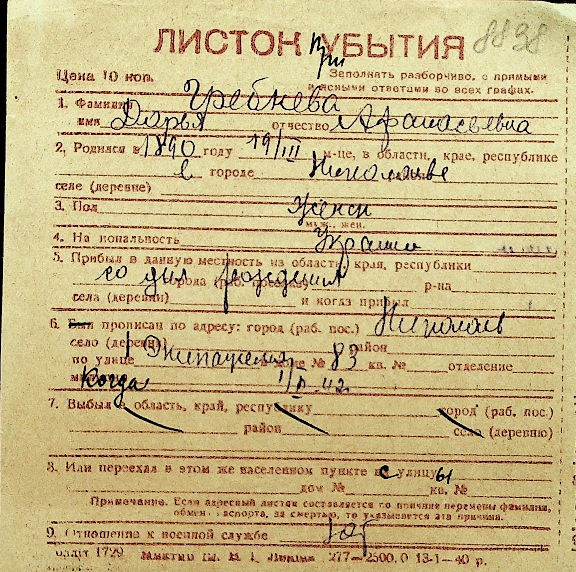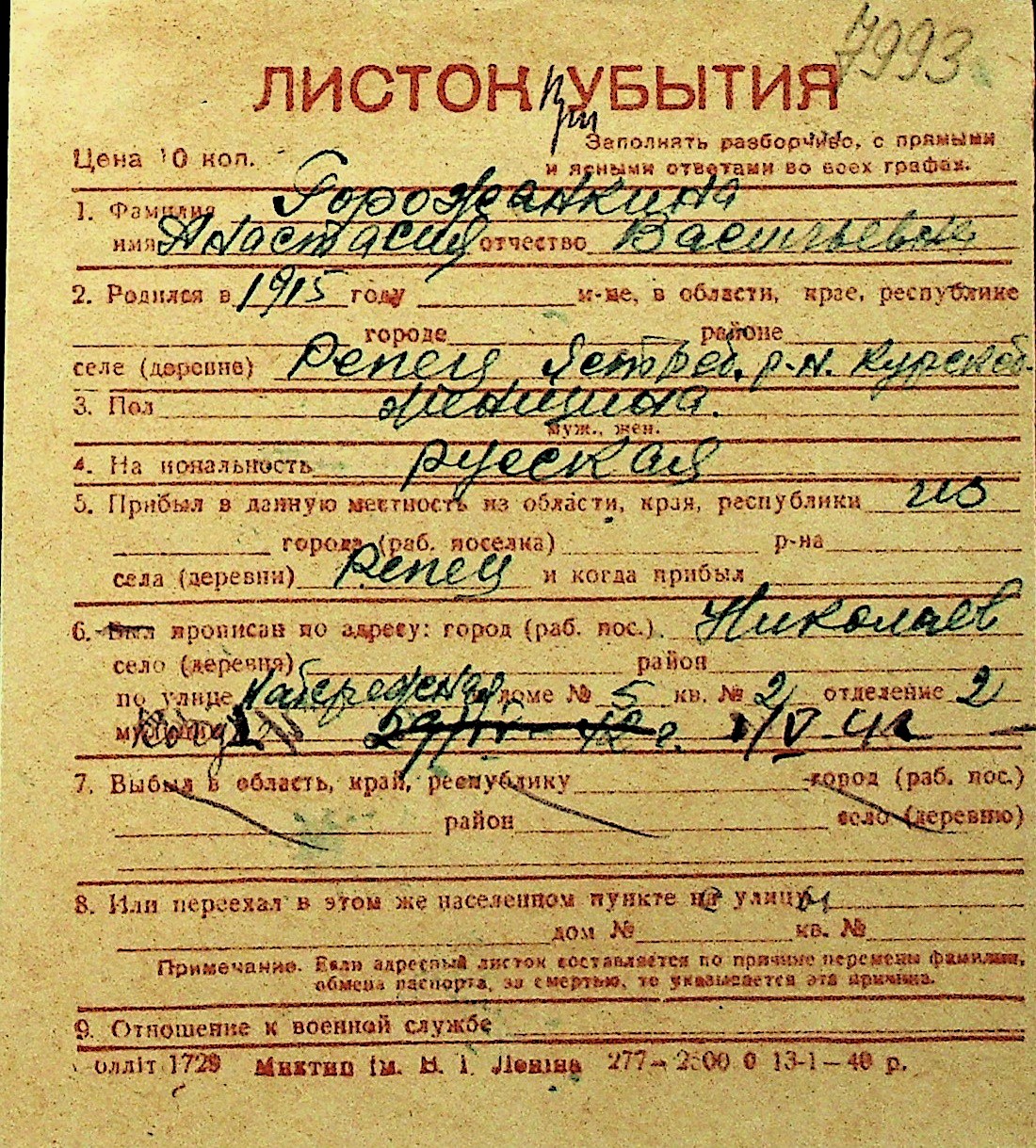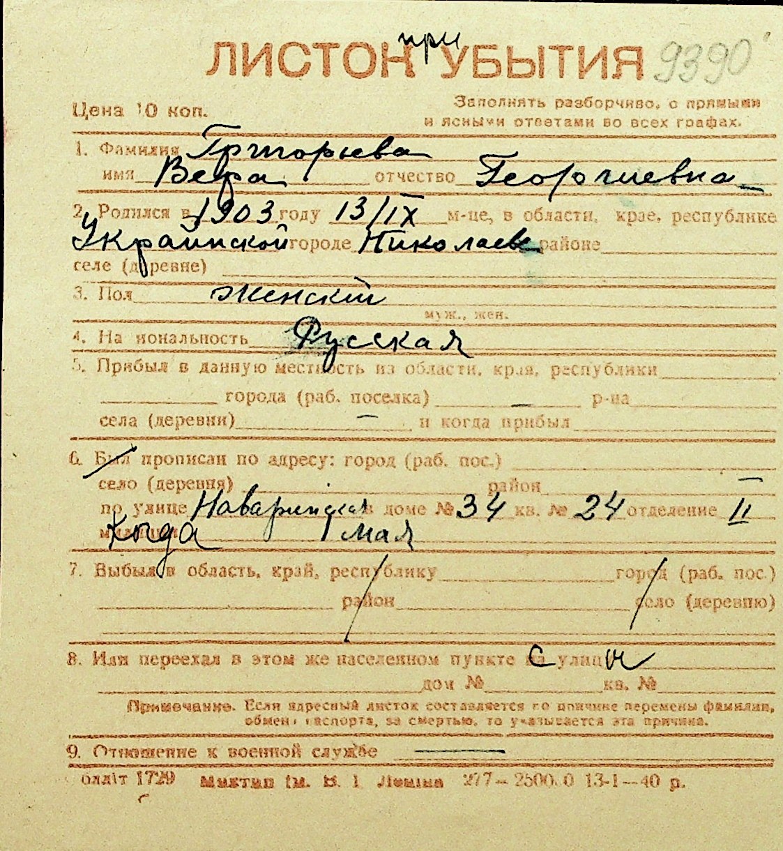 • • Перелік карток до фонду № Н-1016