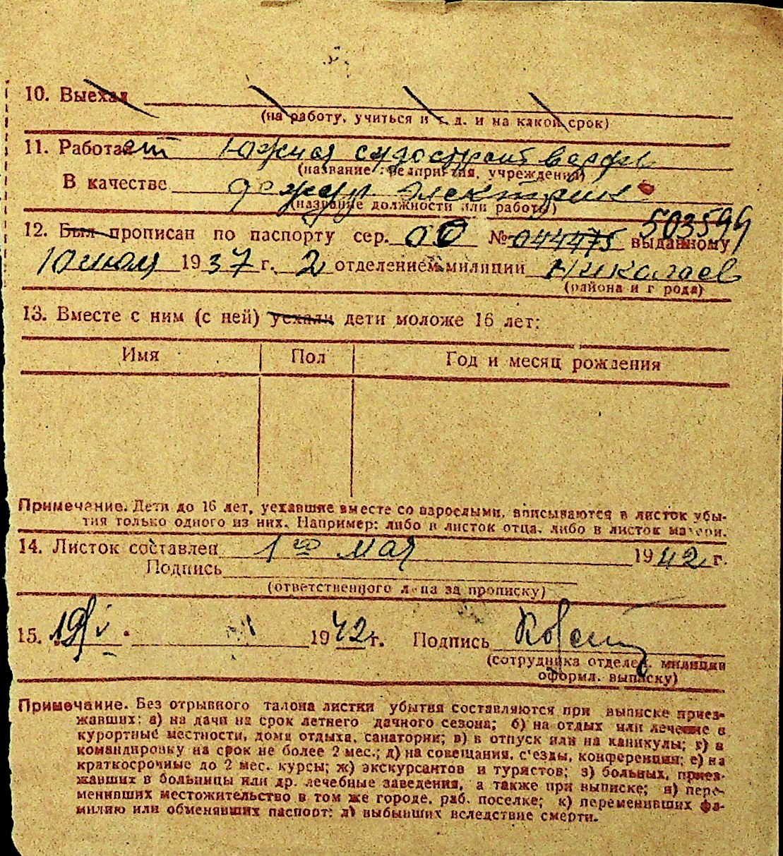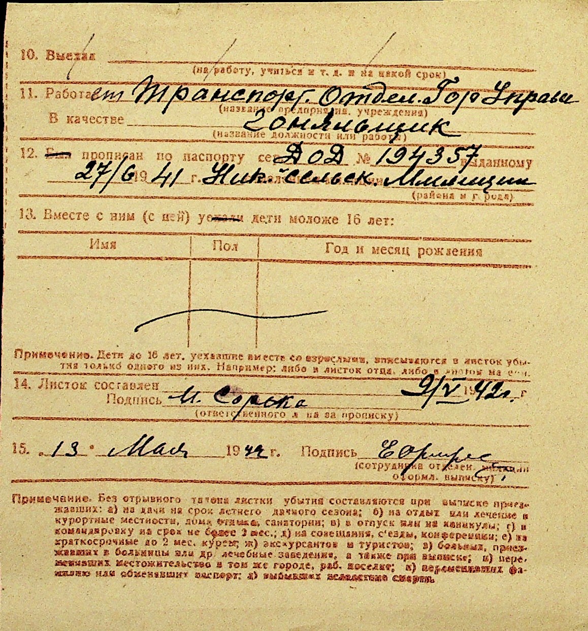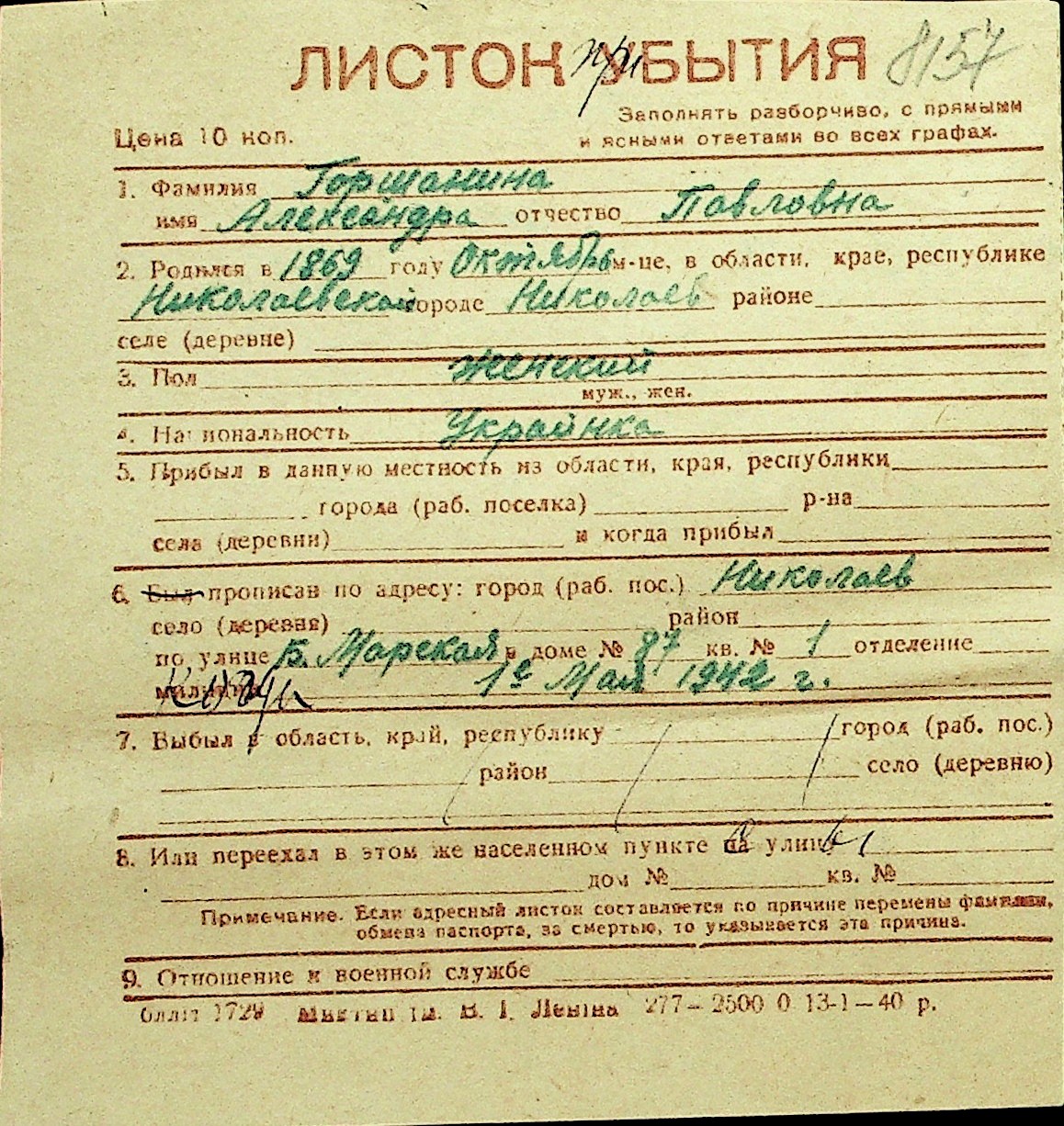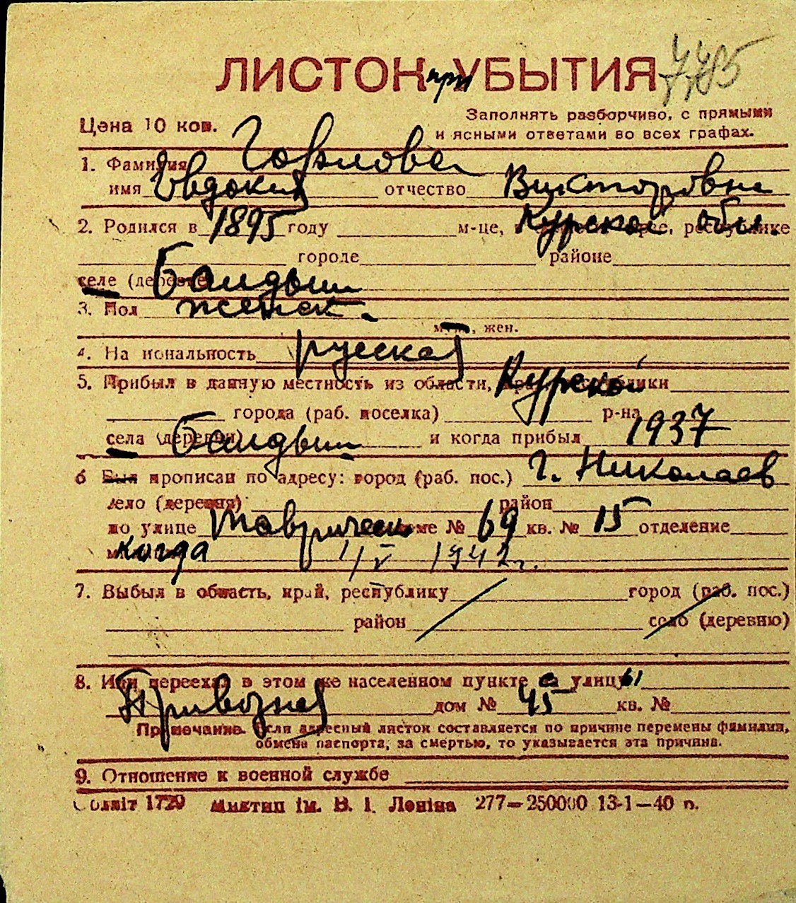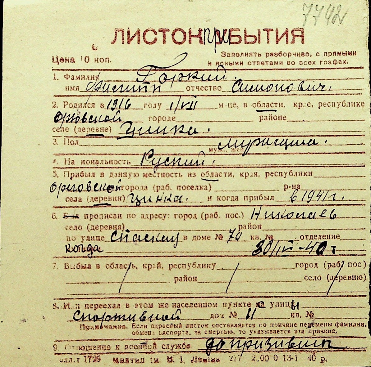 • • Перелік карток до фонду № Н-1016