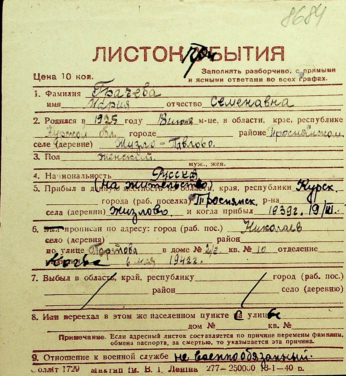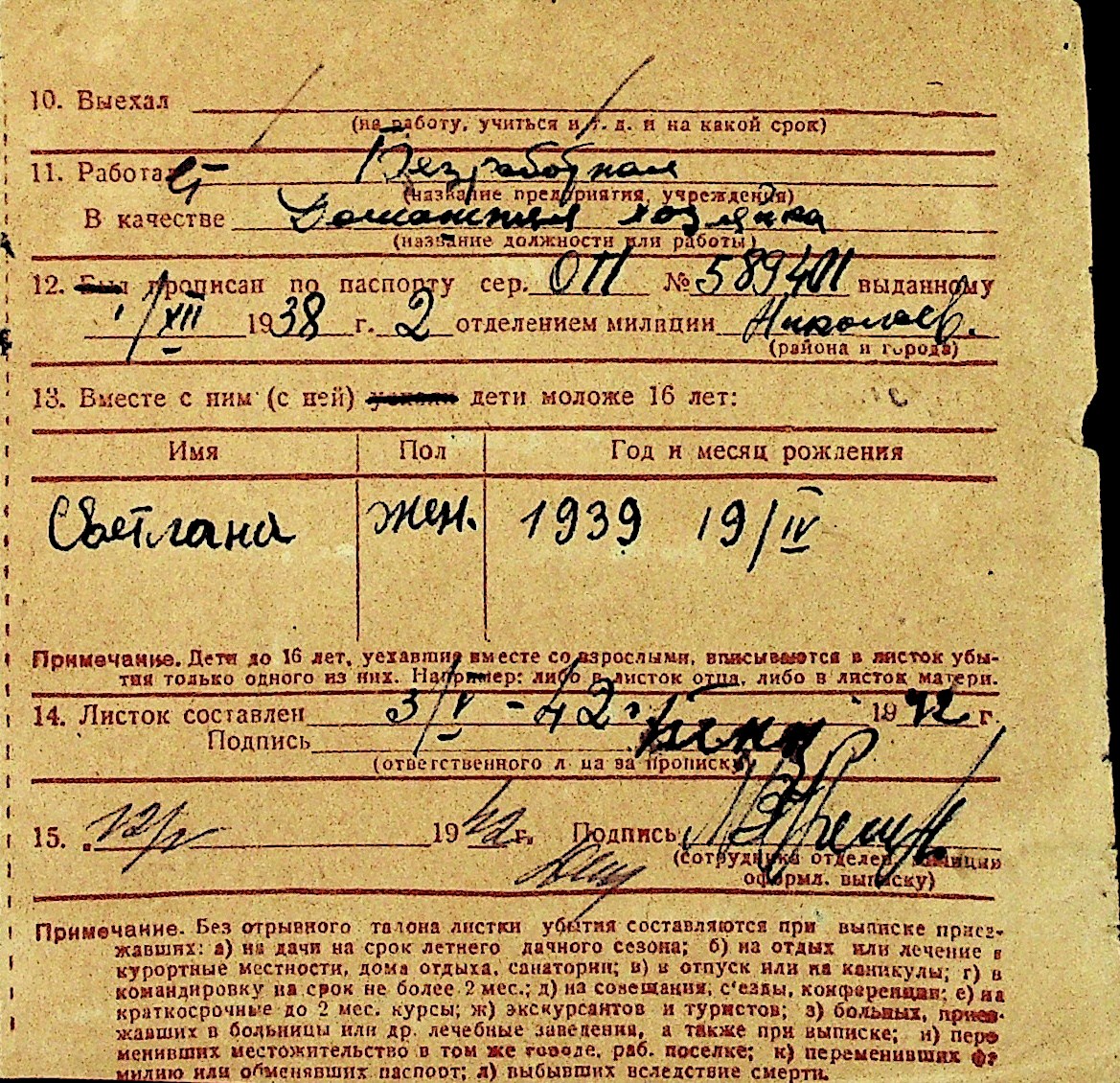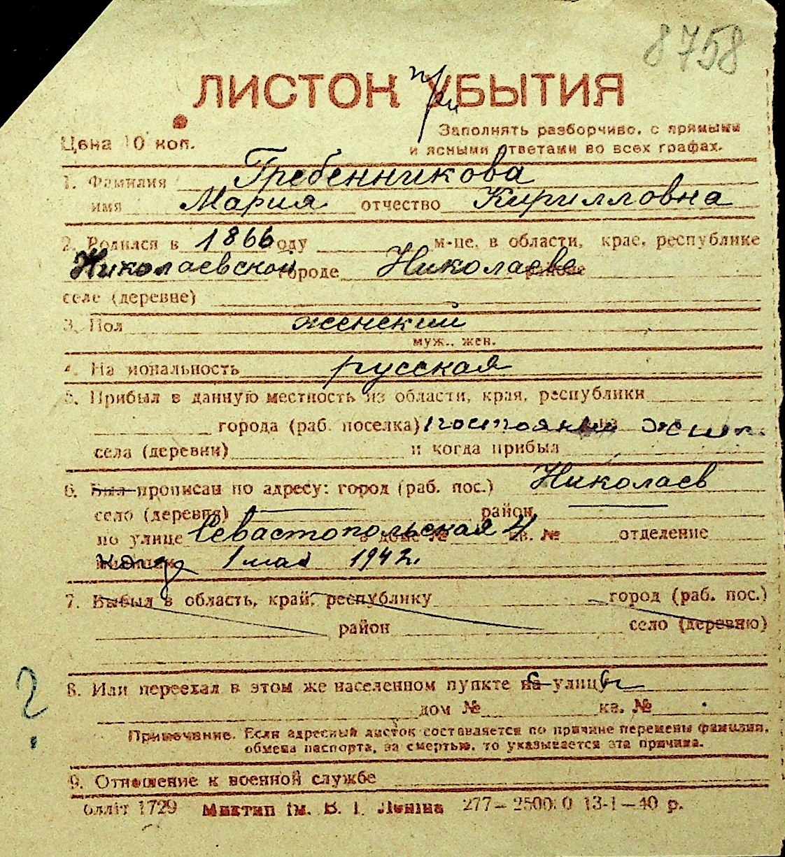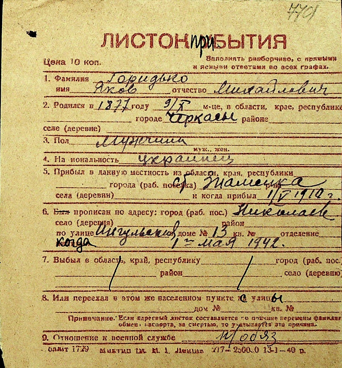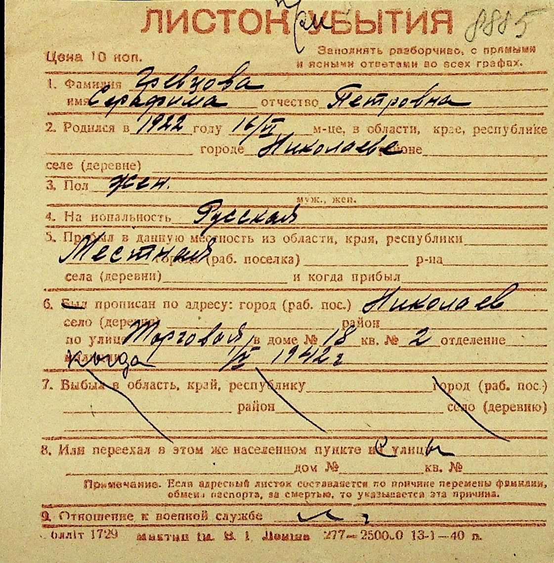 • • Перелік карток до фонду № Н-1016
