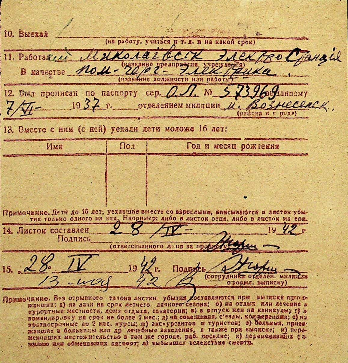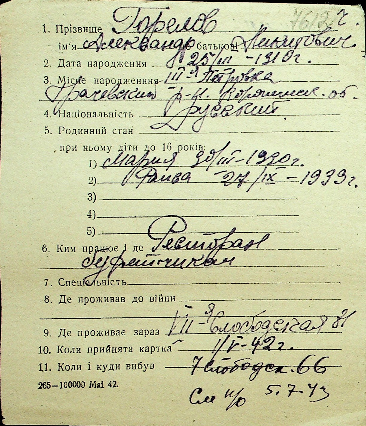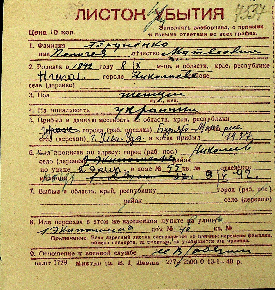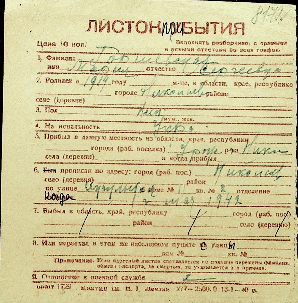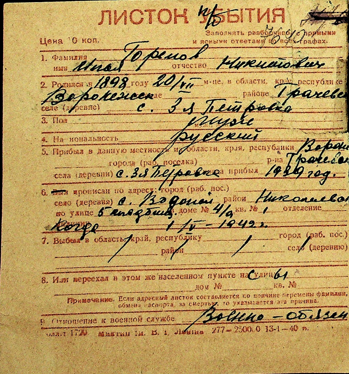 • • Перелік карток до фонду № Н-1016