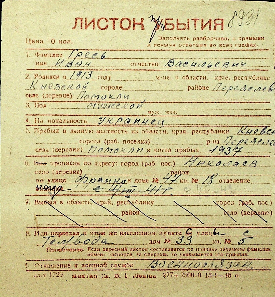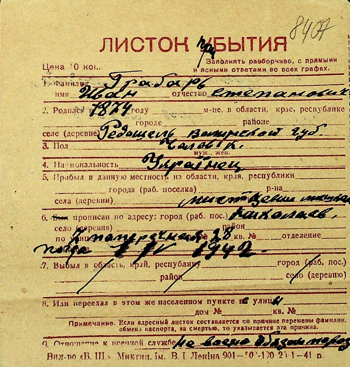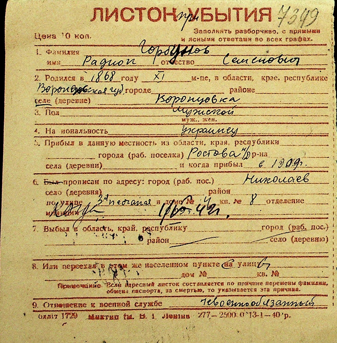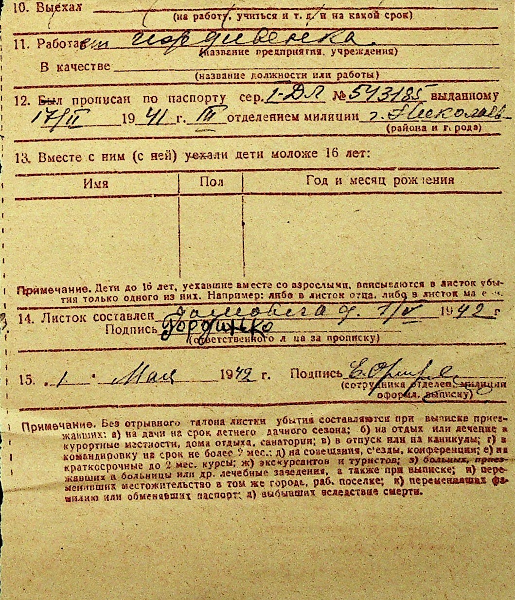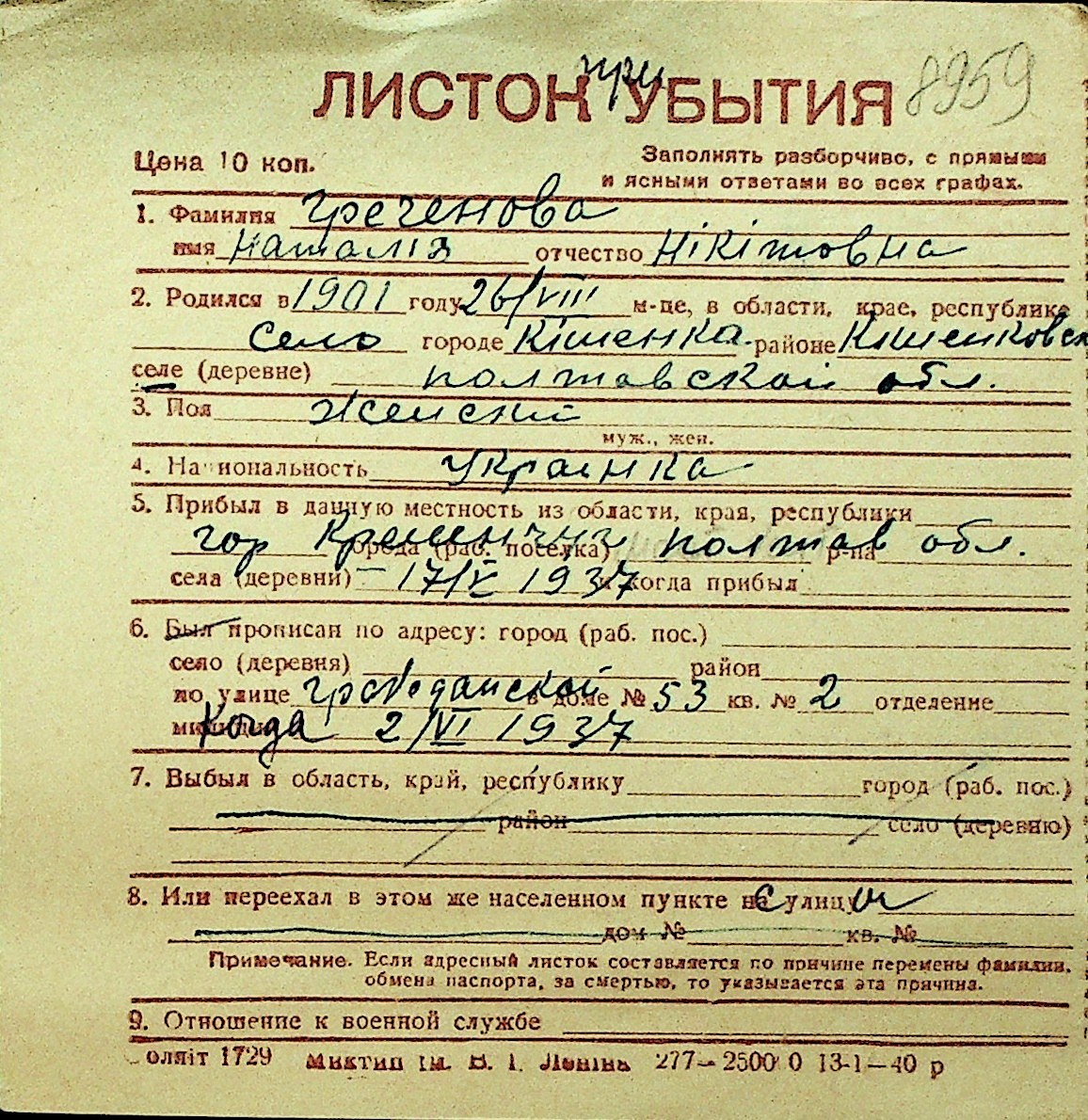 • • Перелік карток до фонду № Н-1016