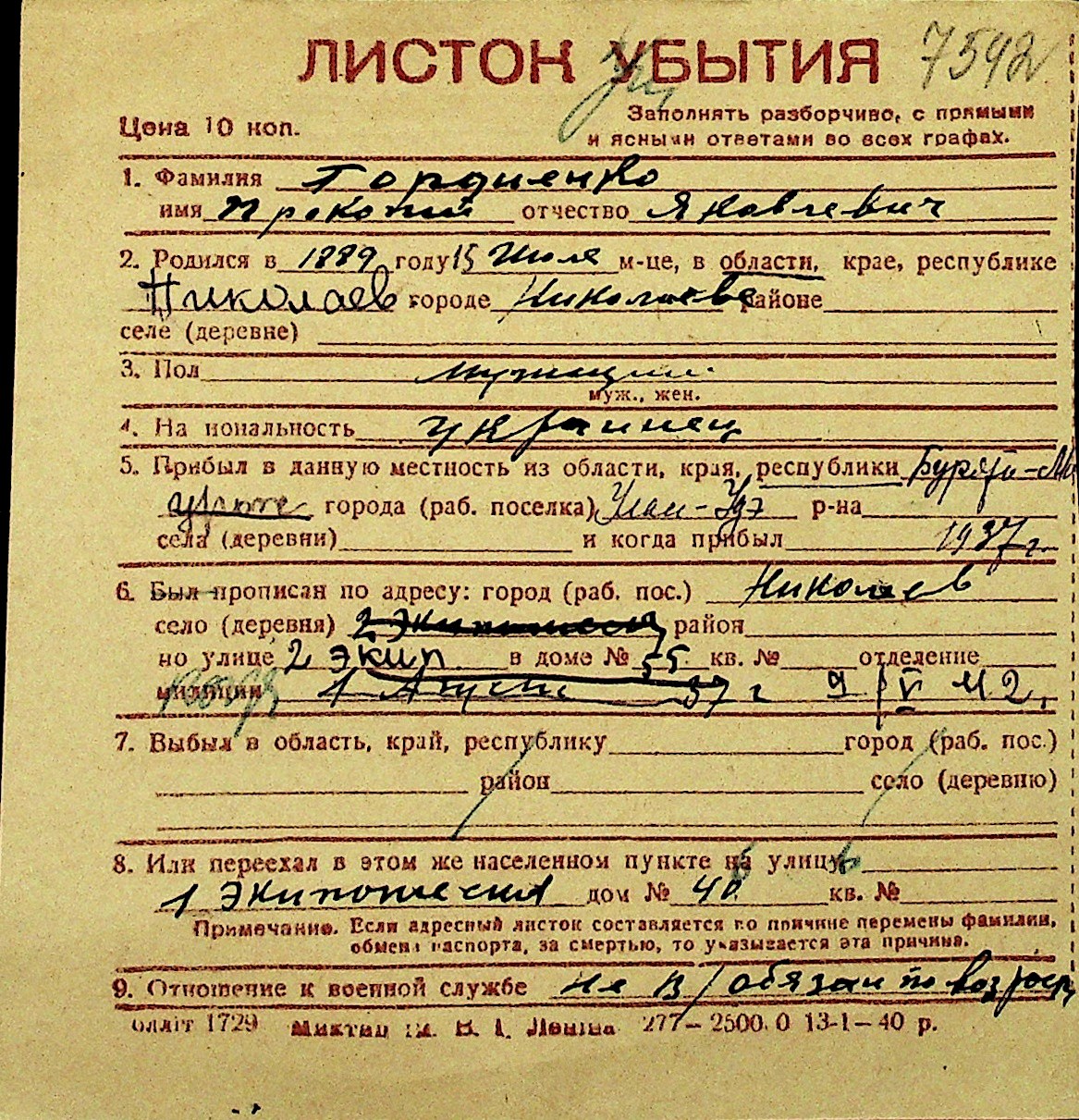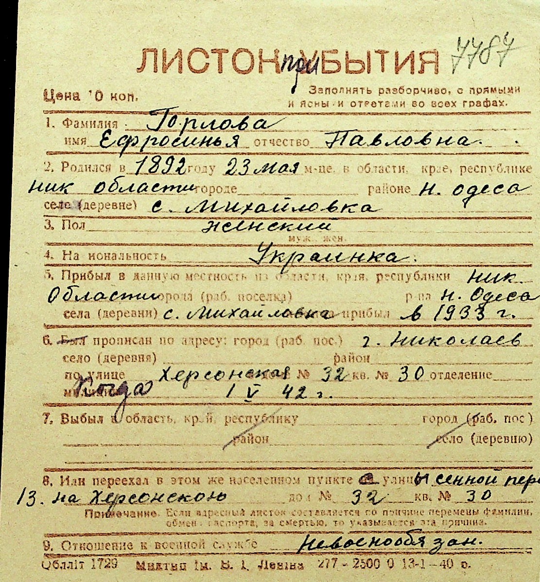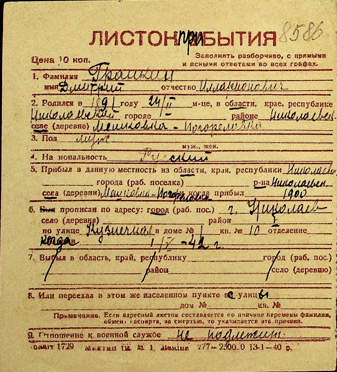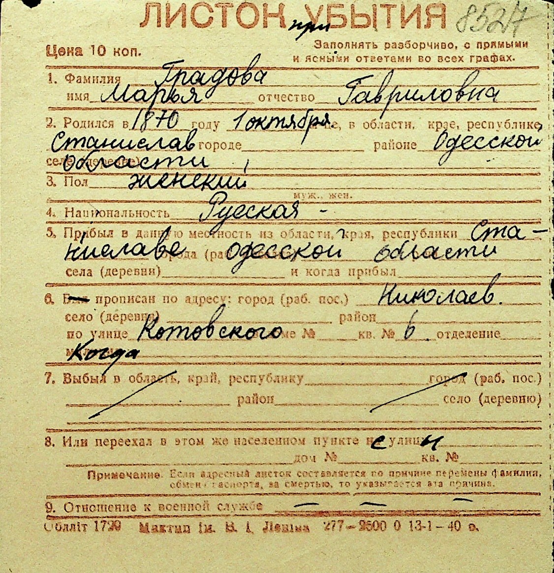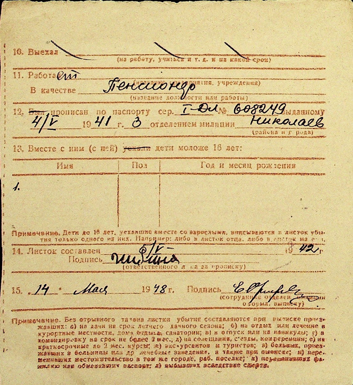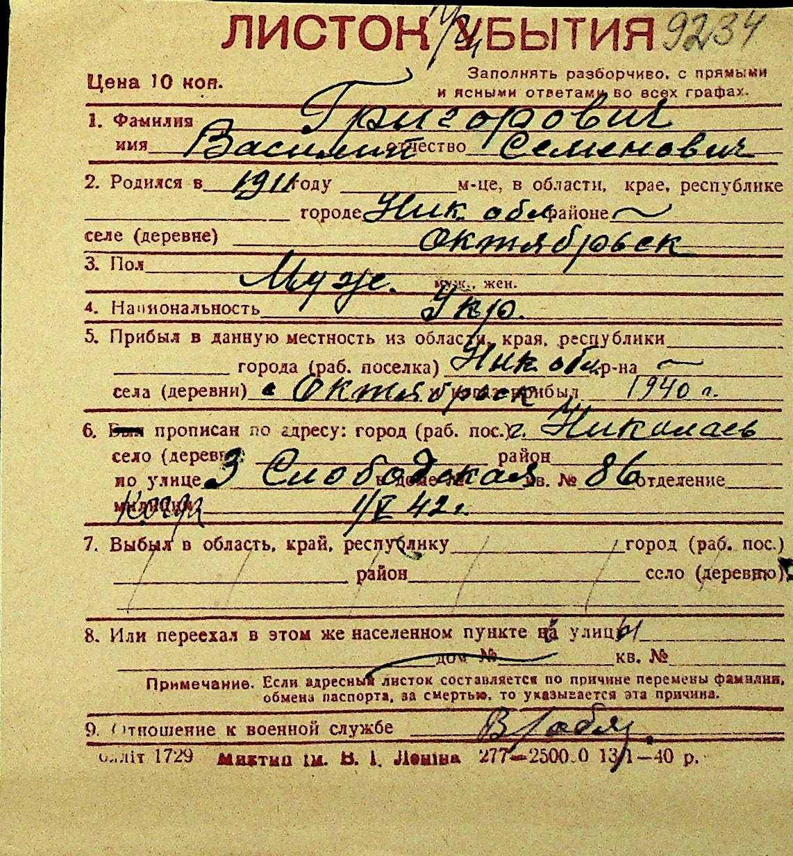 • • Перелік карток до фонду № Н-1016