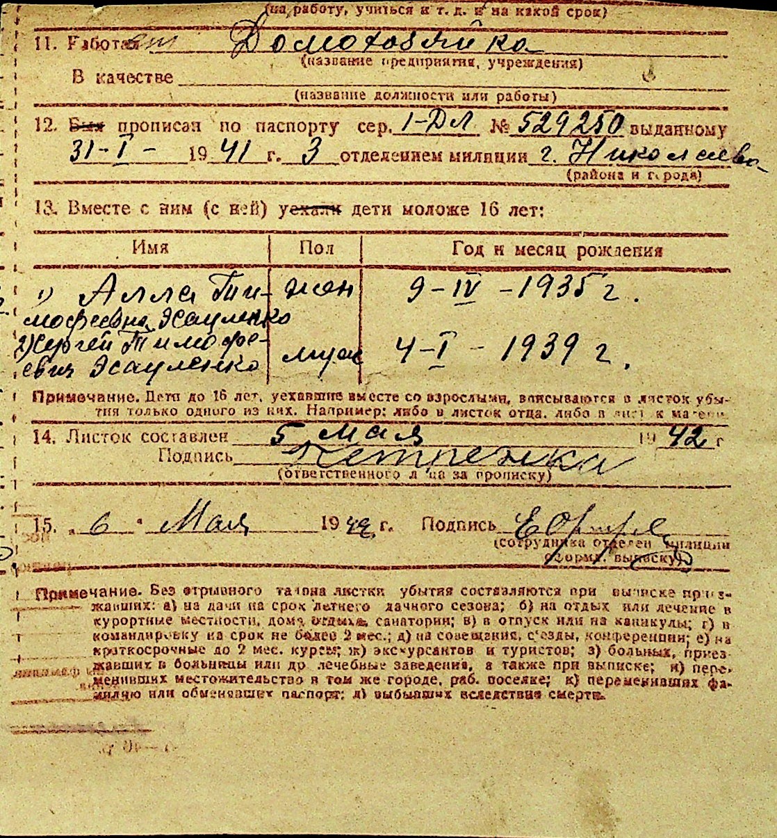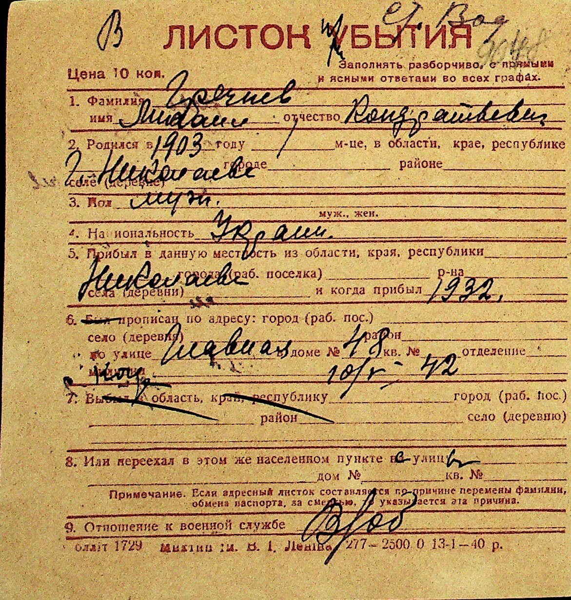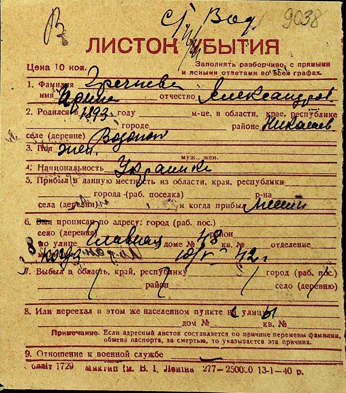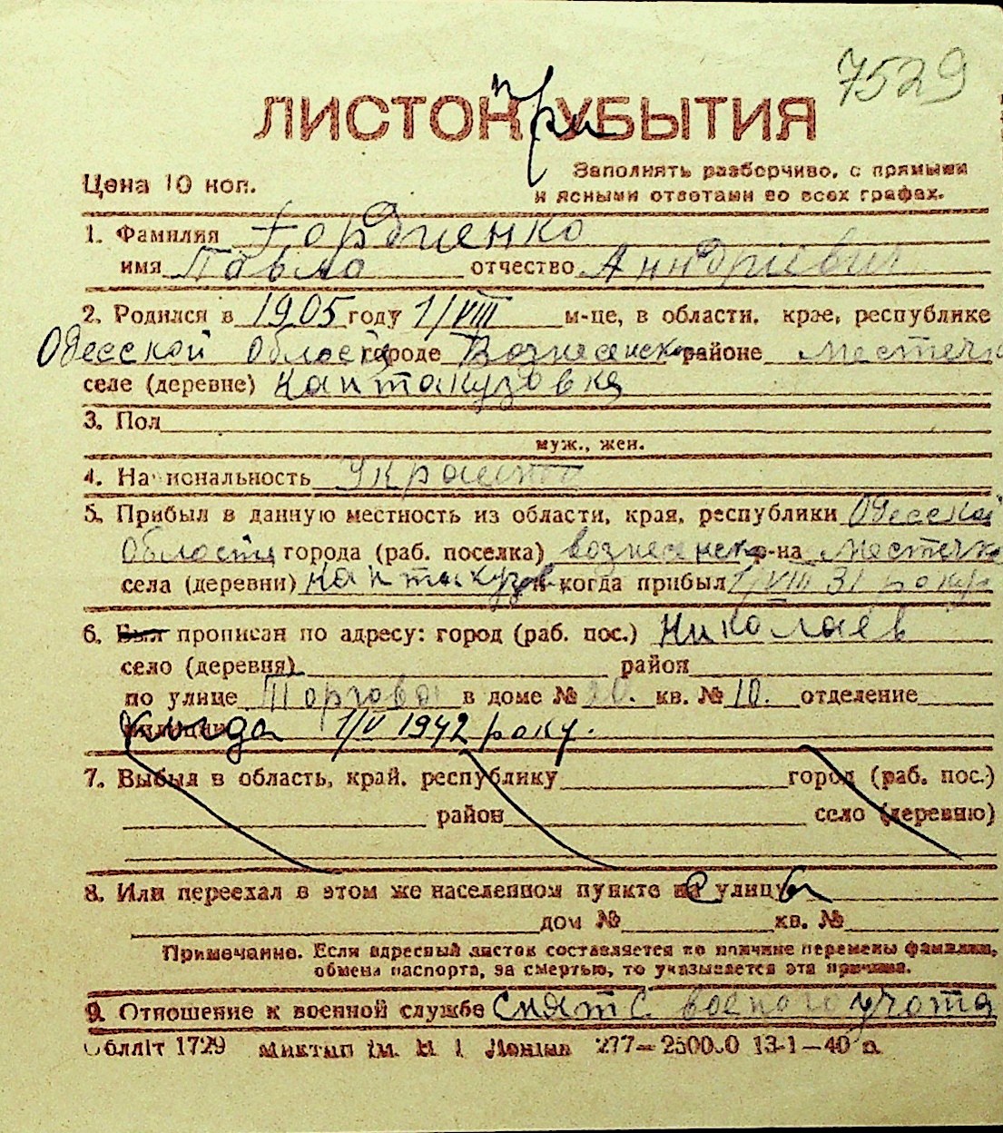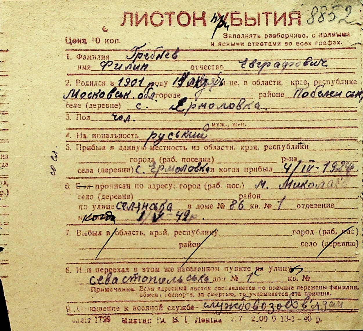 • • Перелік карток до фонду № Н-1016