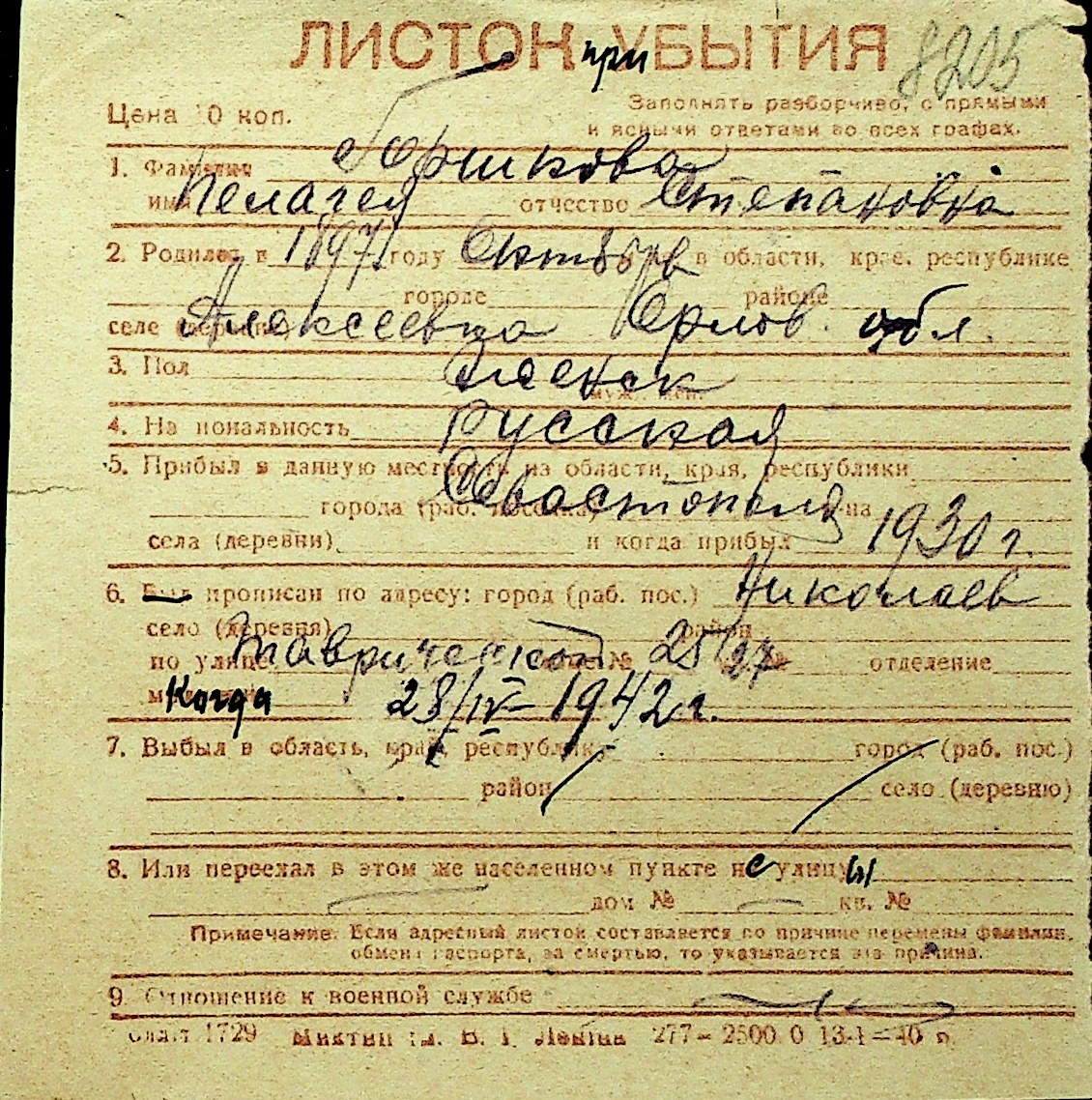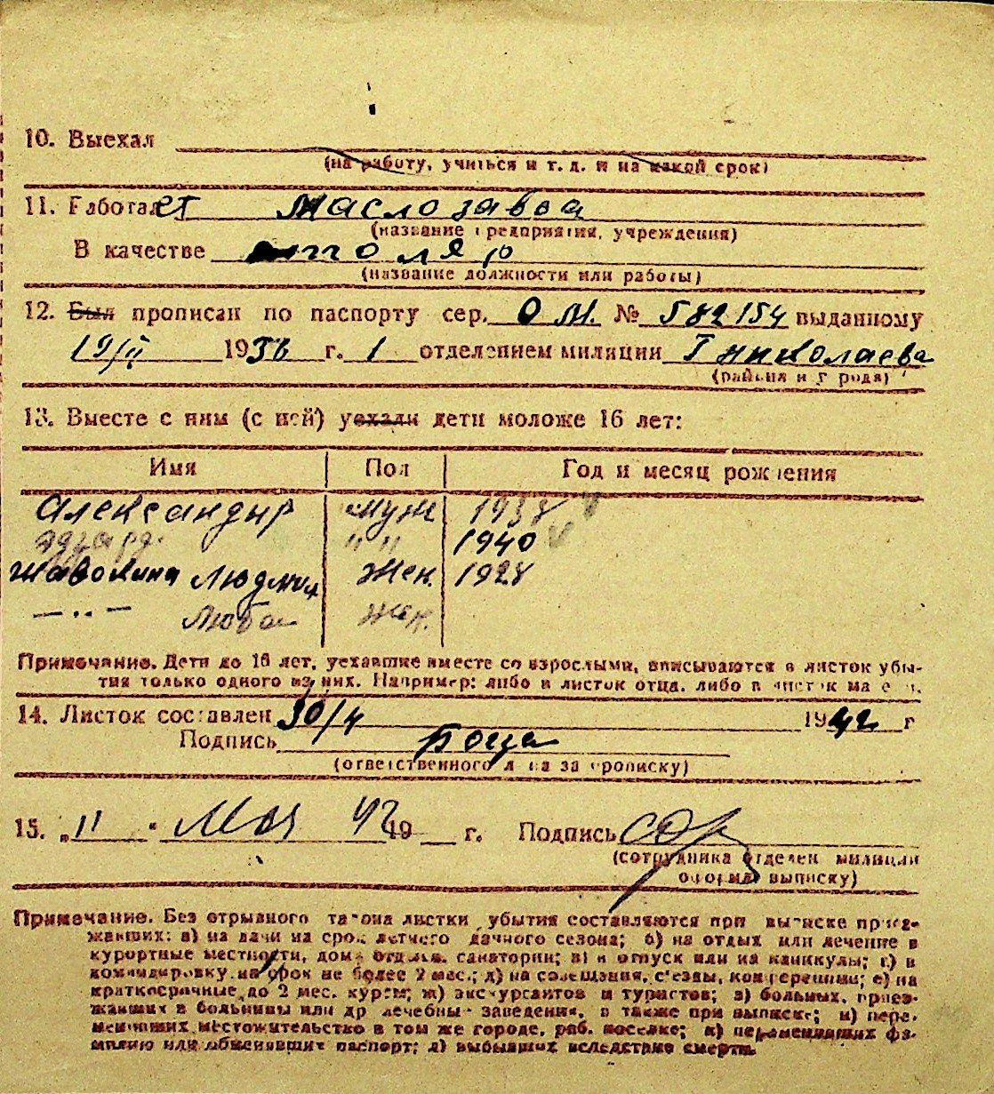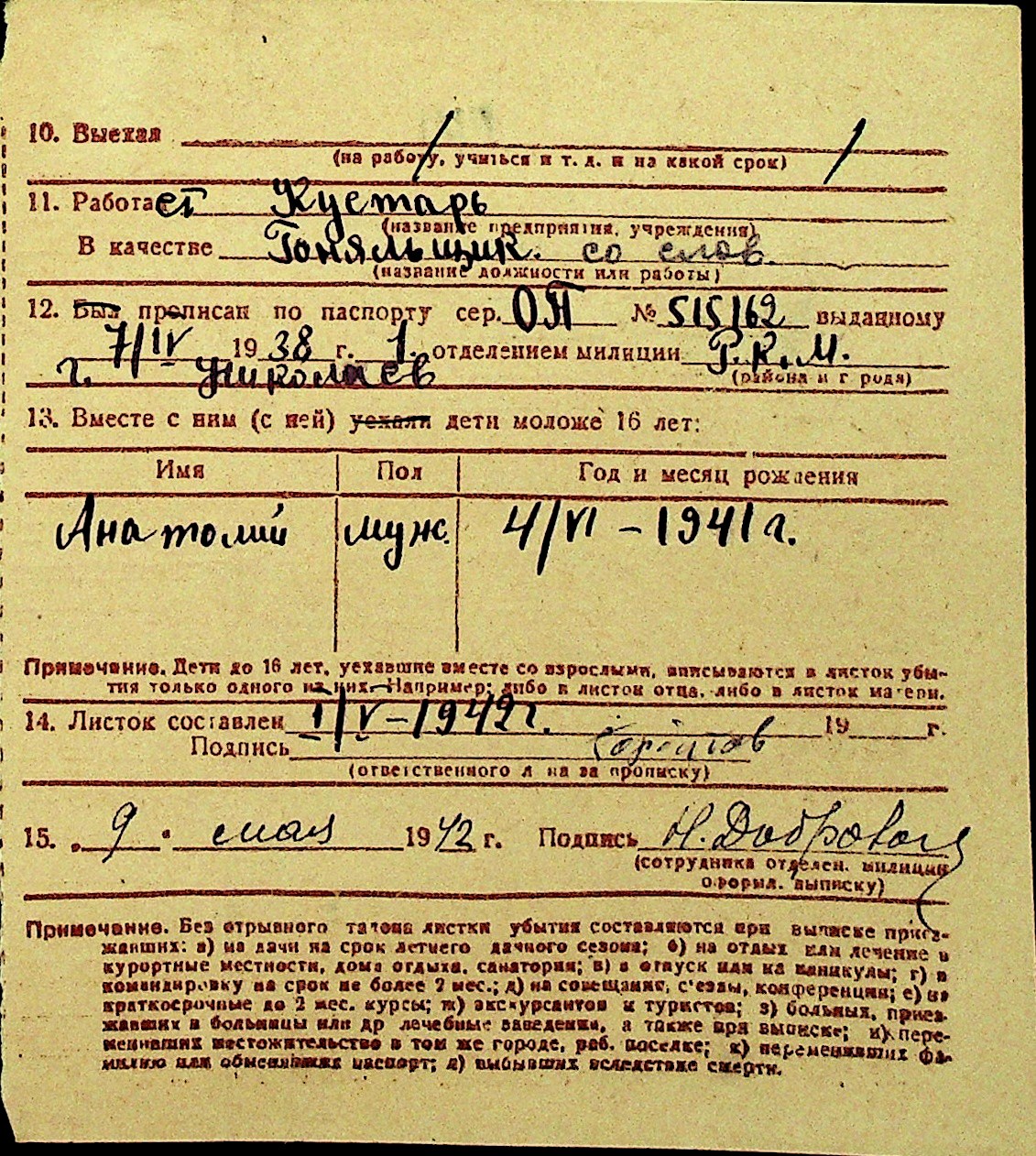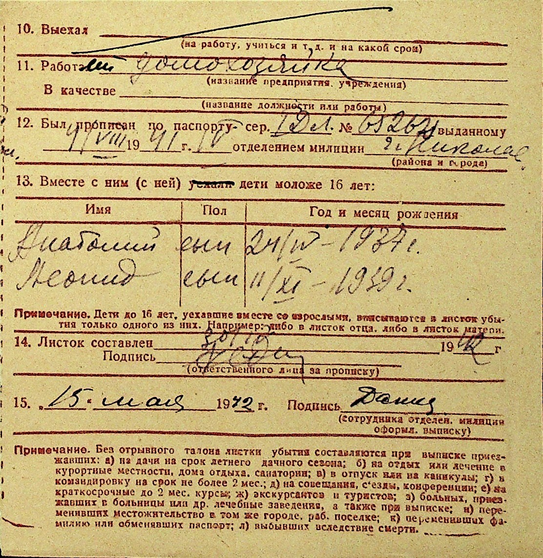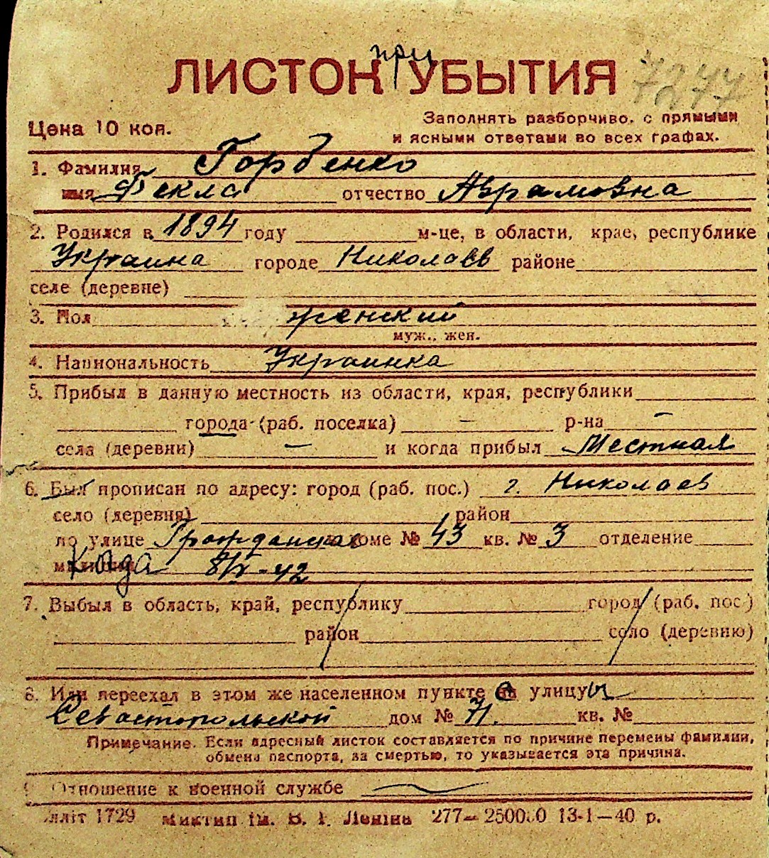 • • Перелік карток до фонду № Н-1016