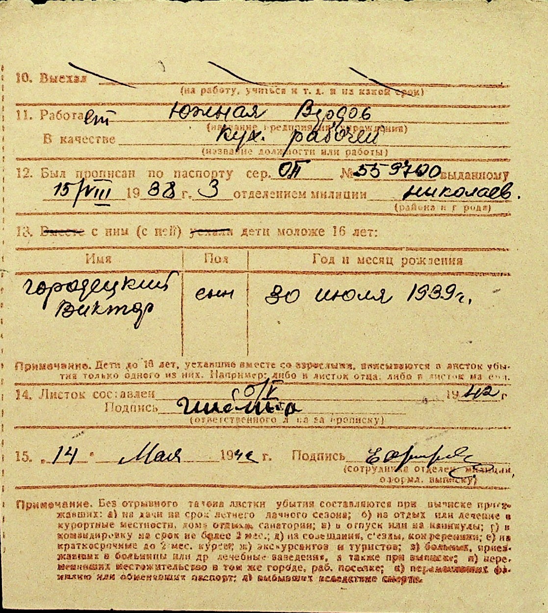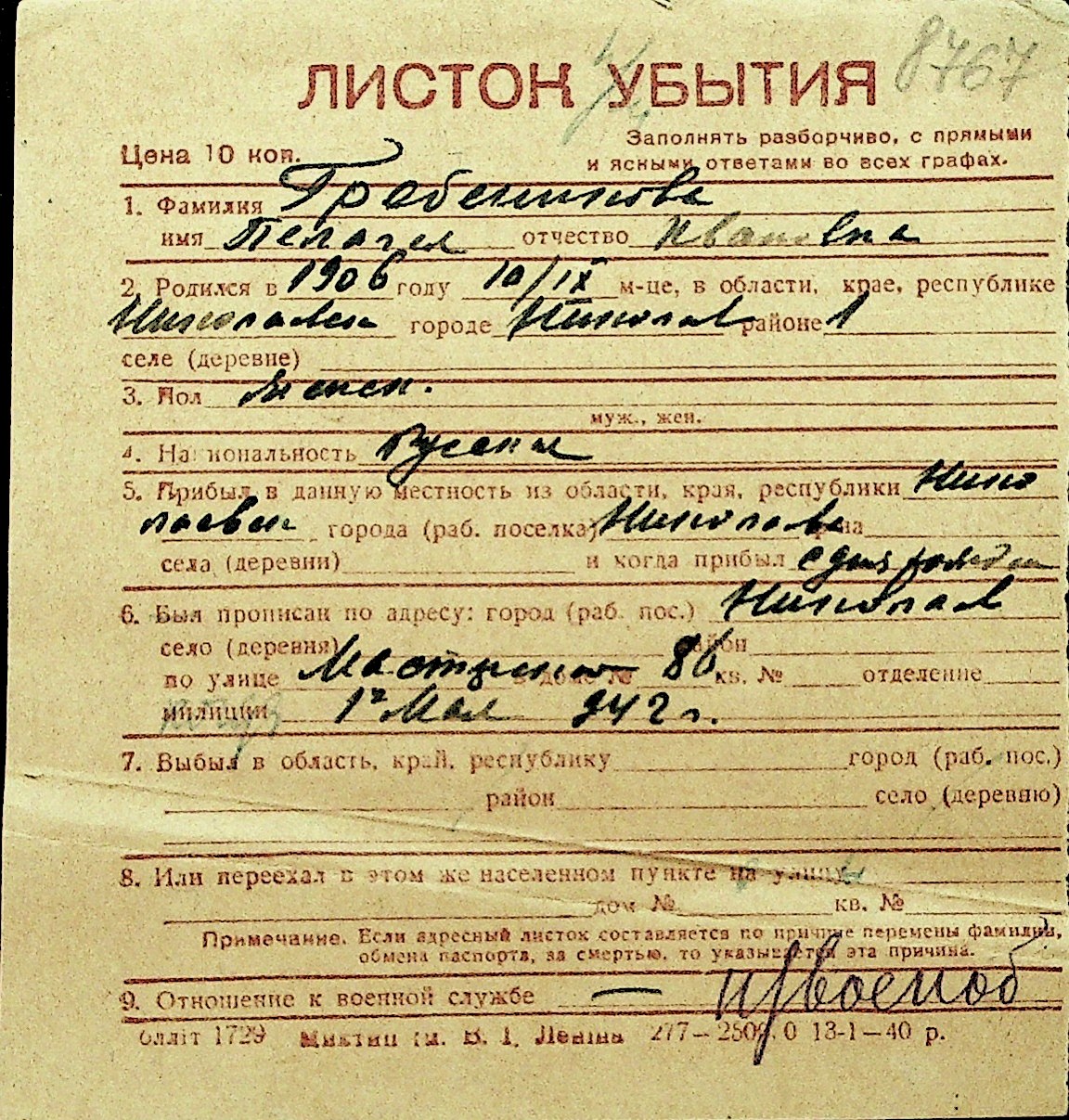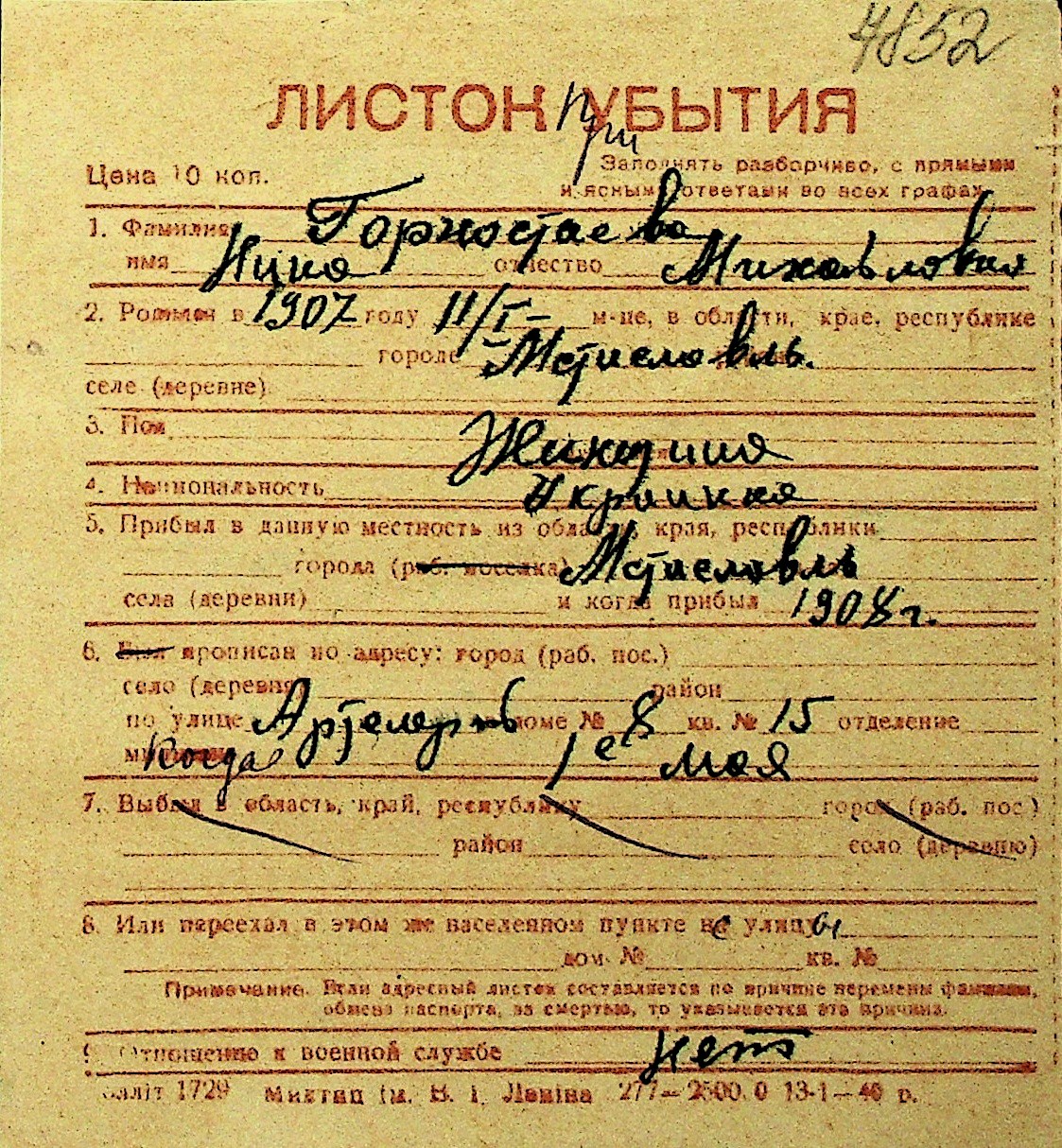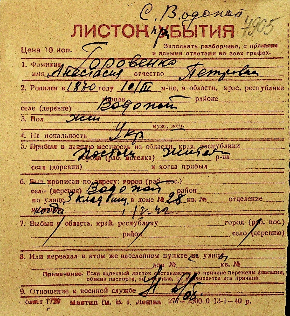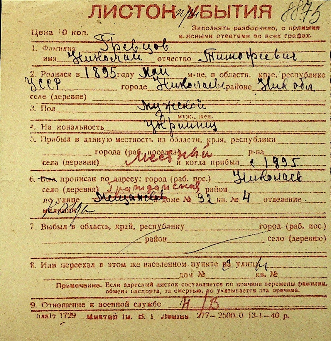 • • Перелік карток до фонду № Н-1016