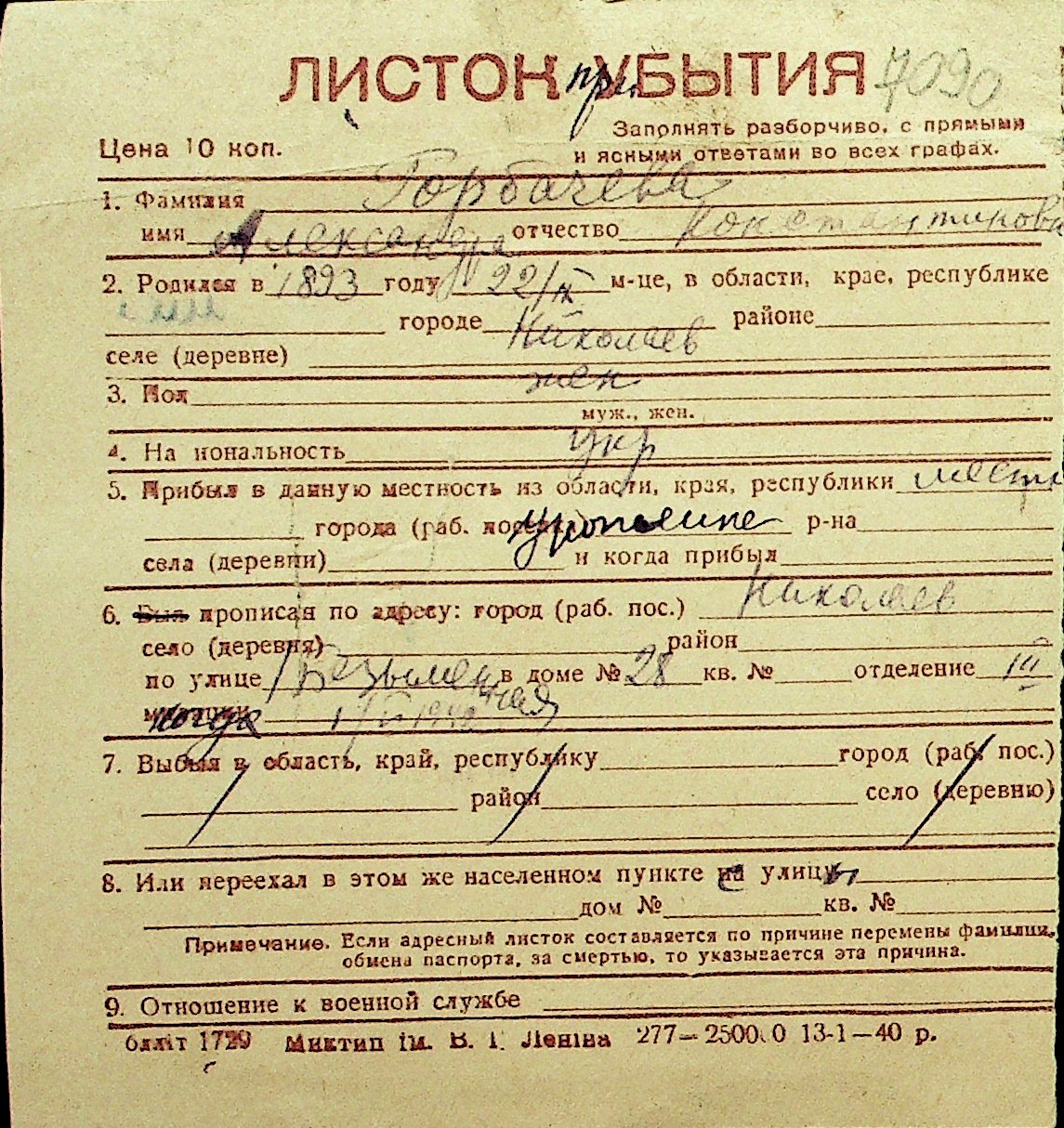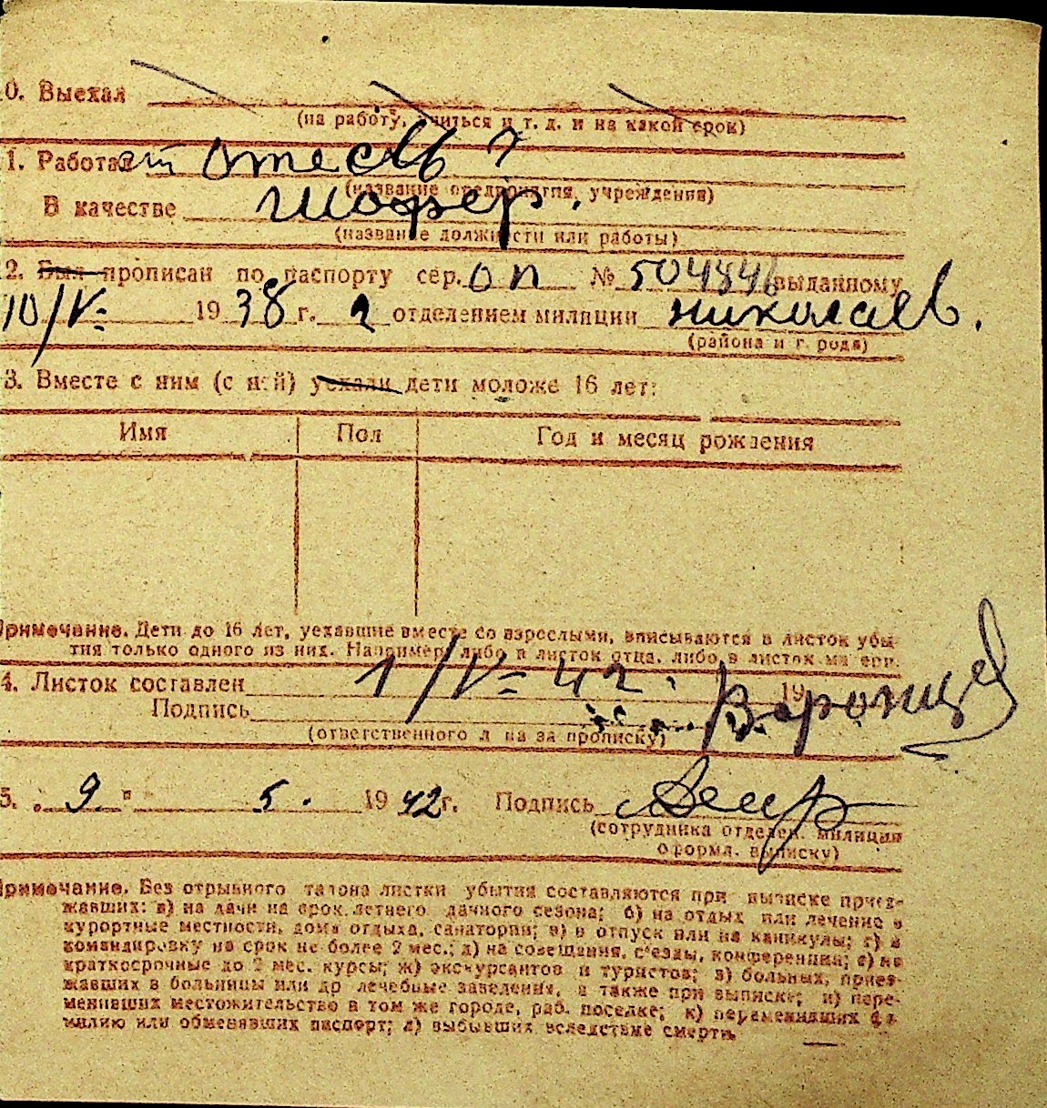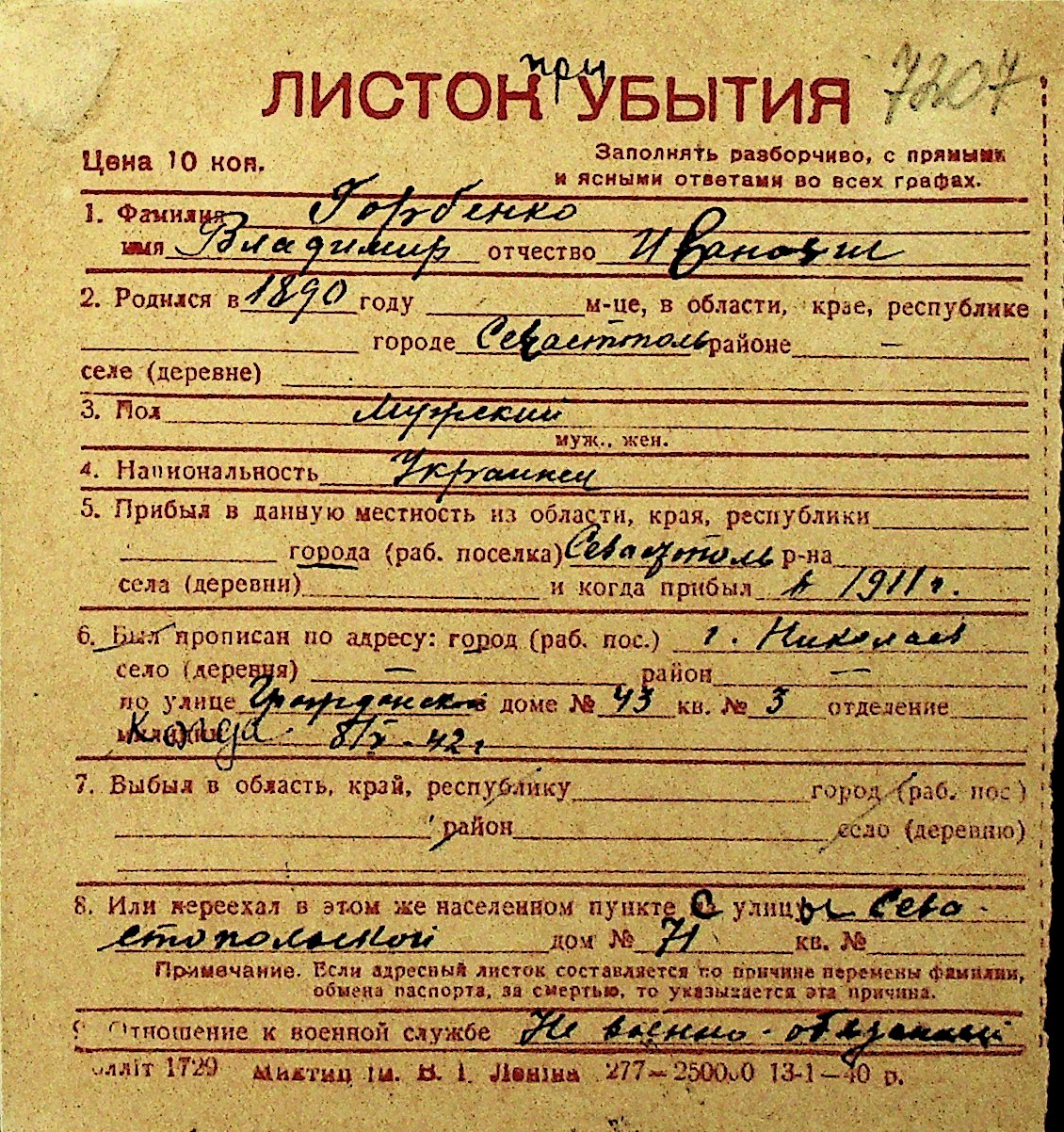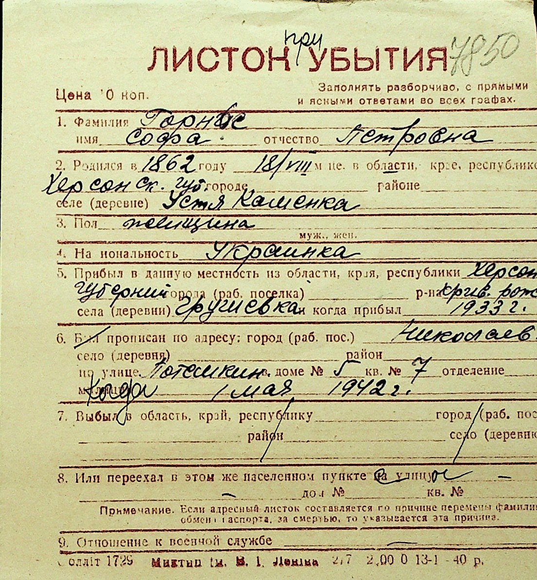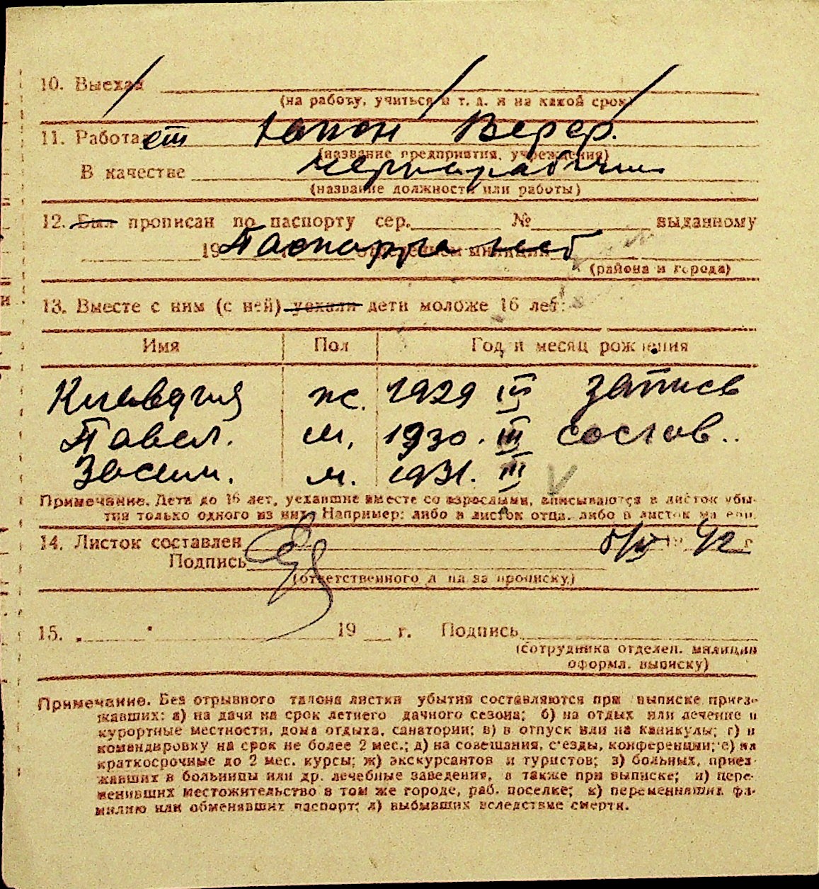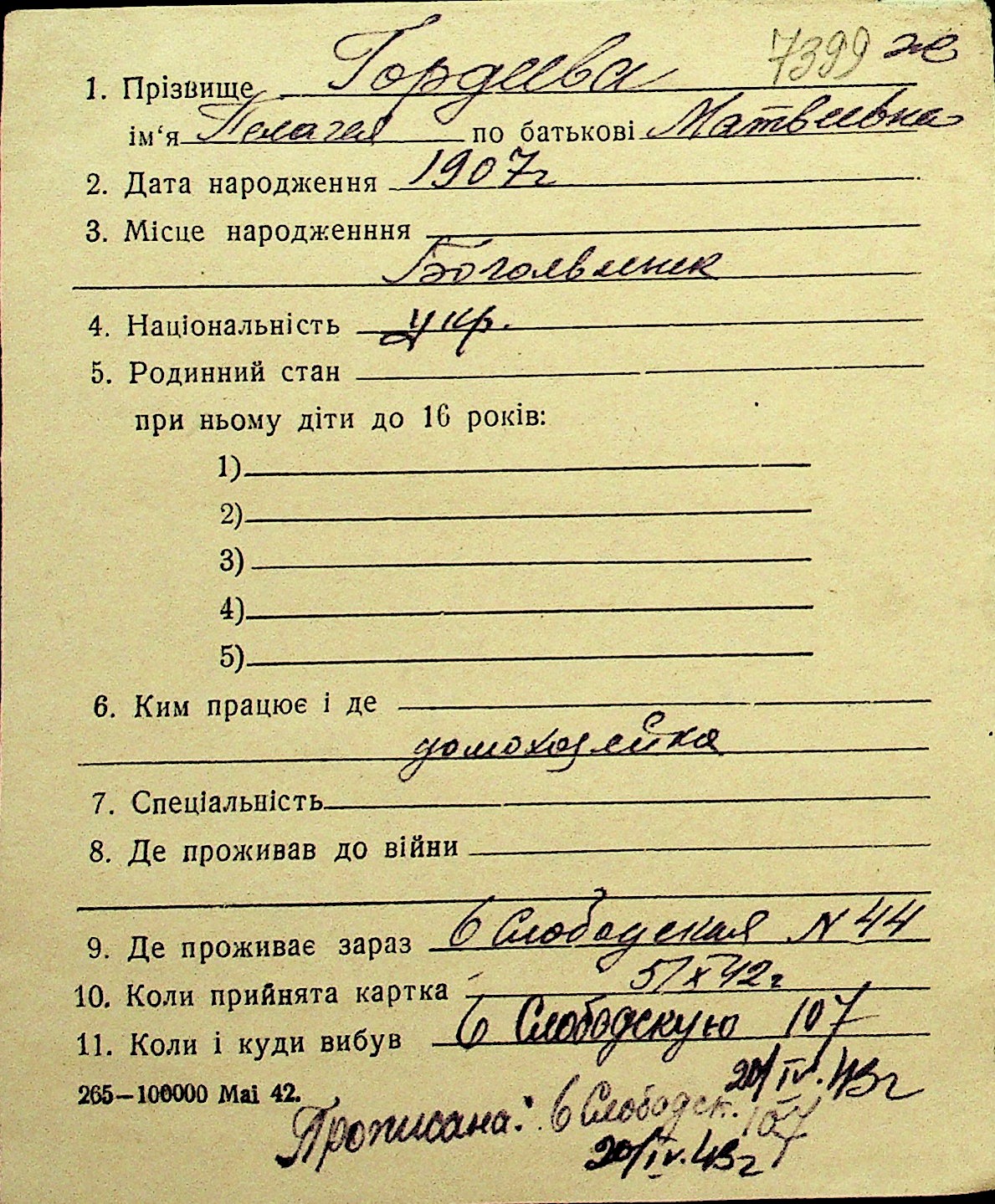 • • Перелік карток до фонду № Н-1016