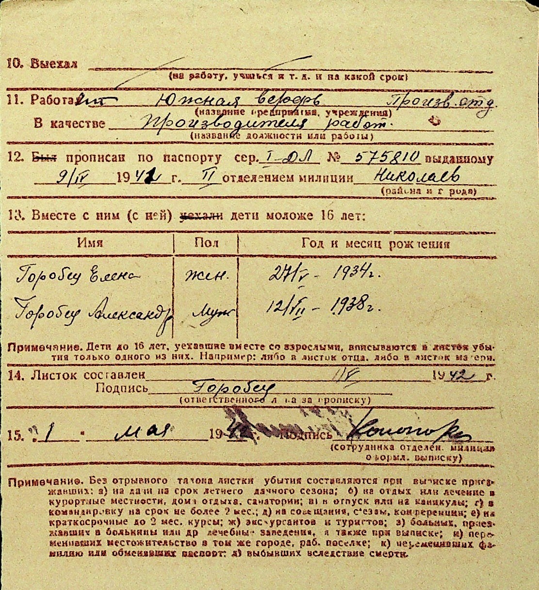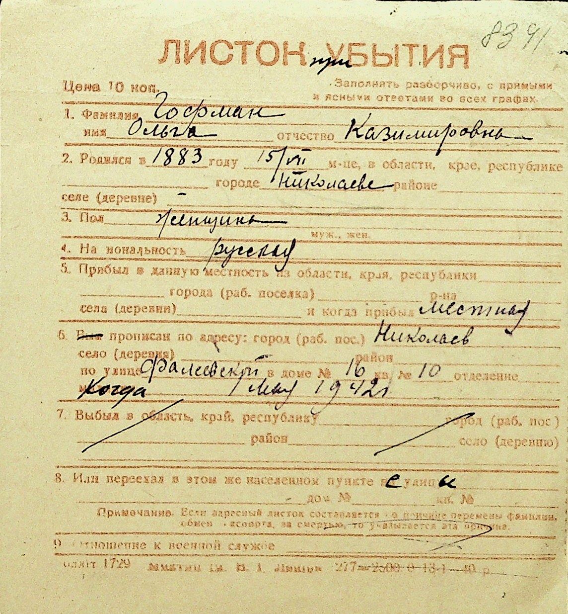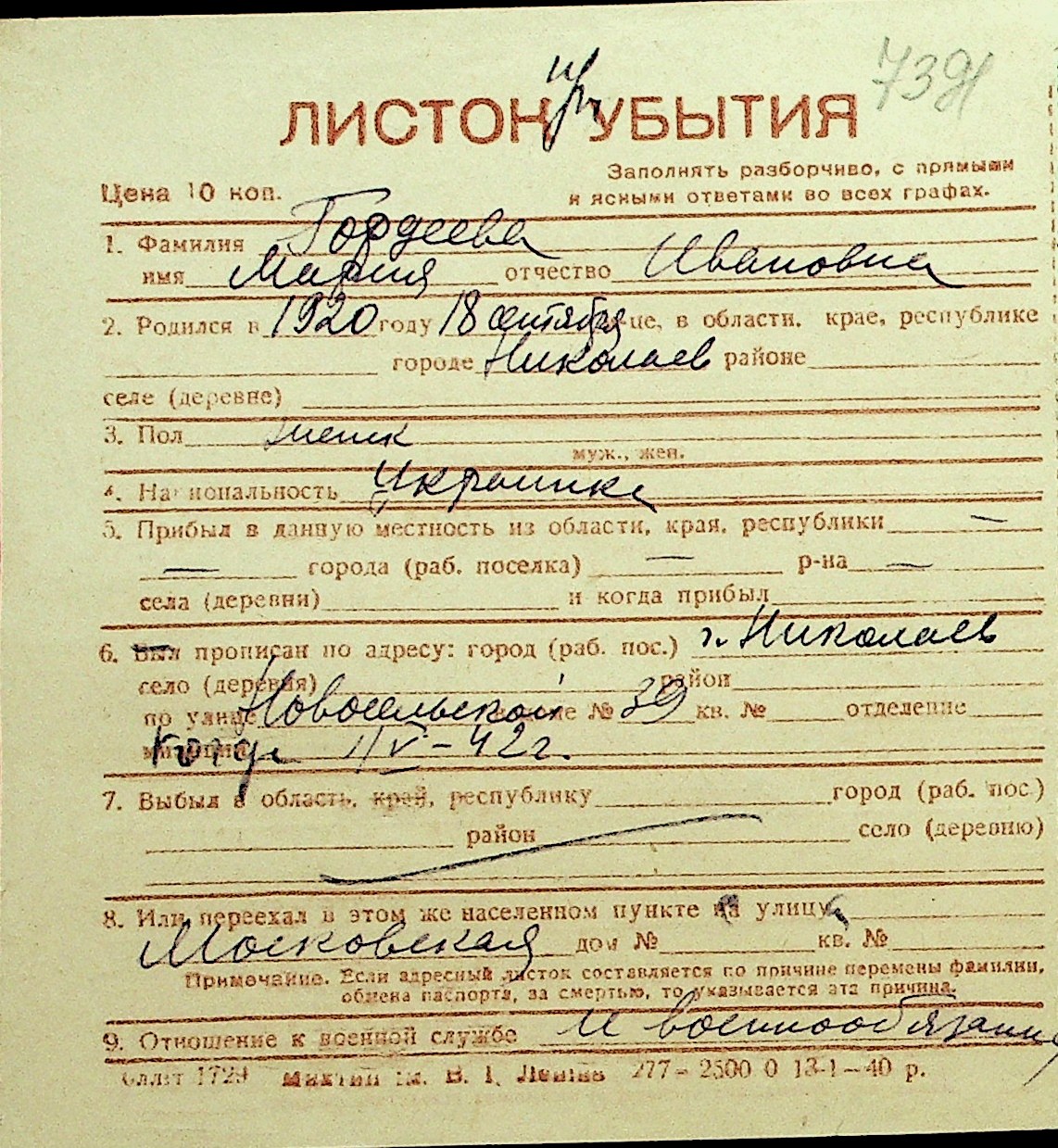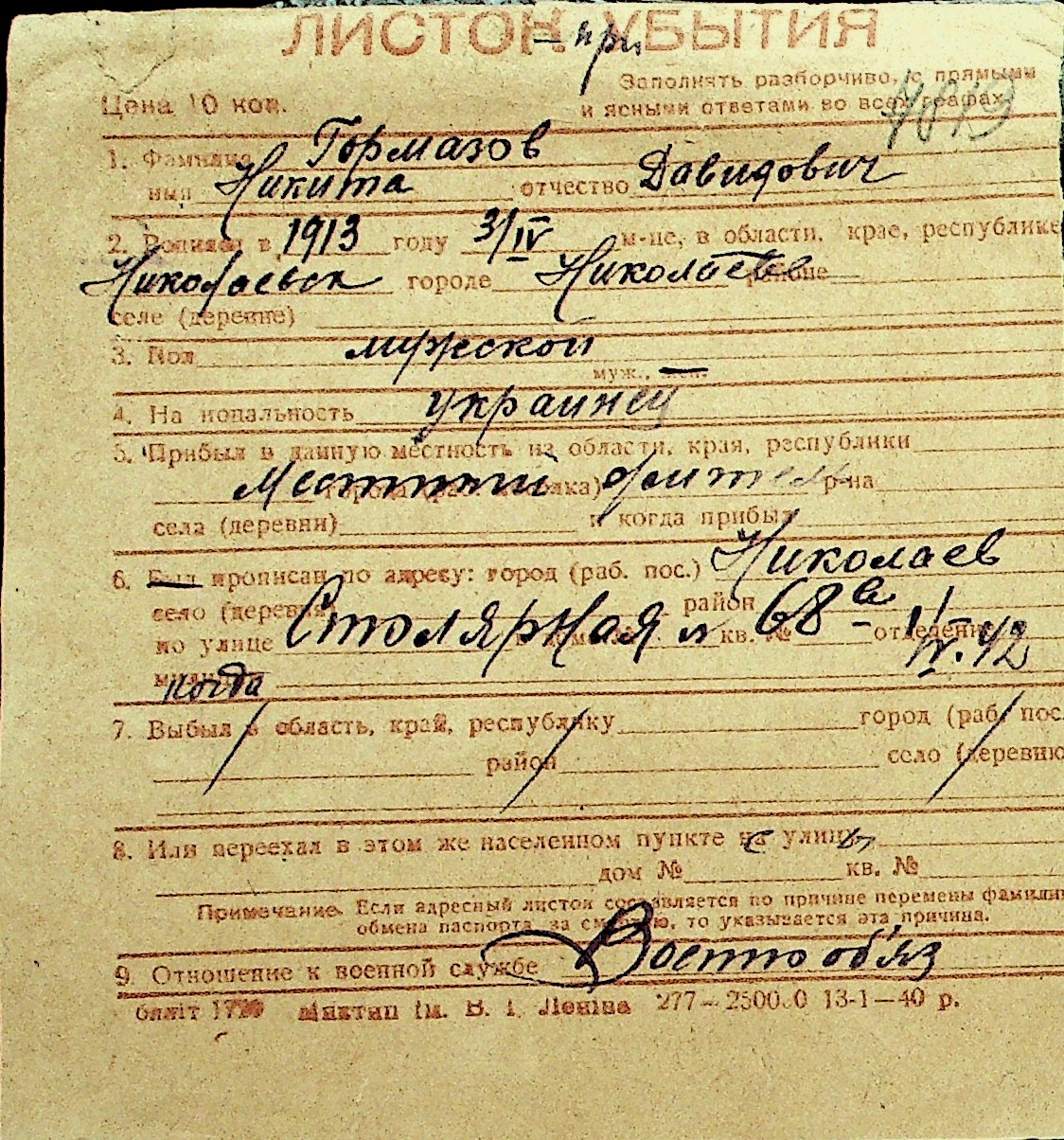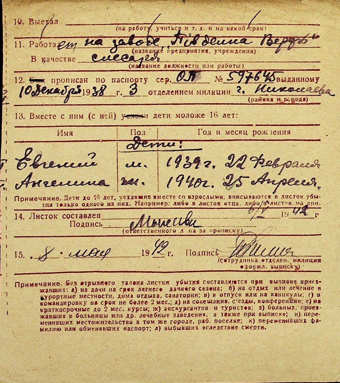 • • Перелік карток до фонду № Н-1016