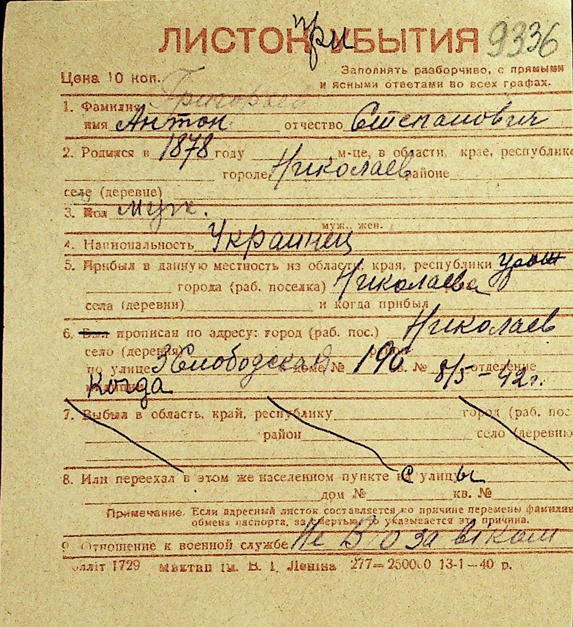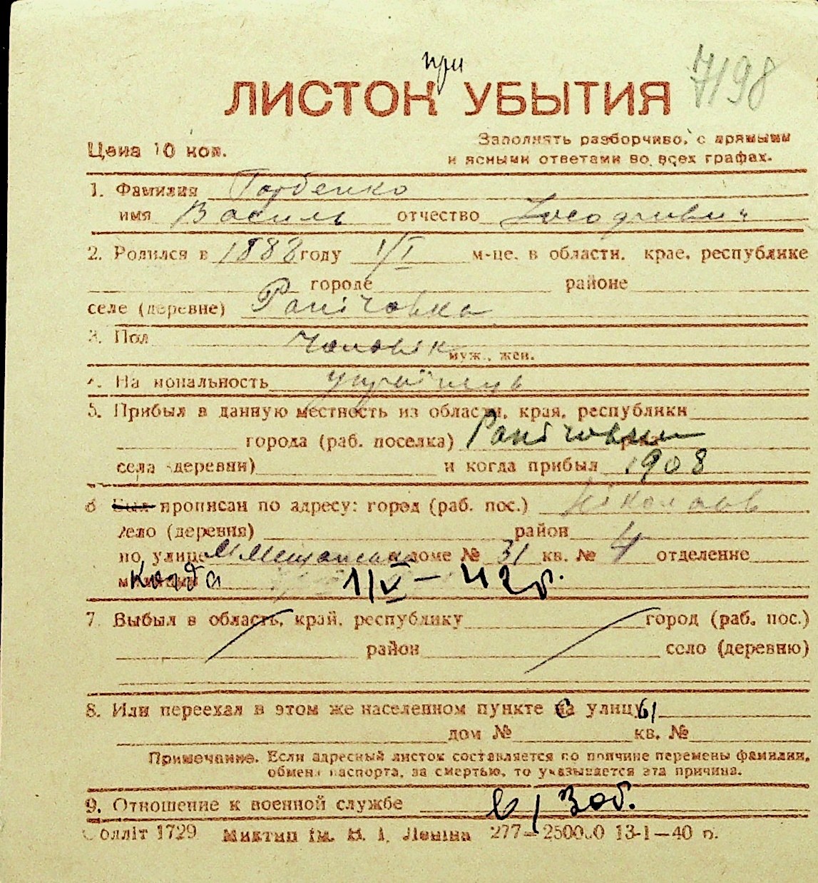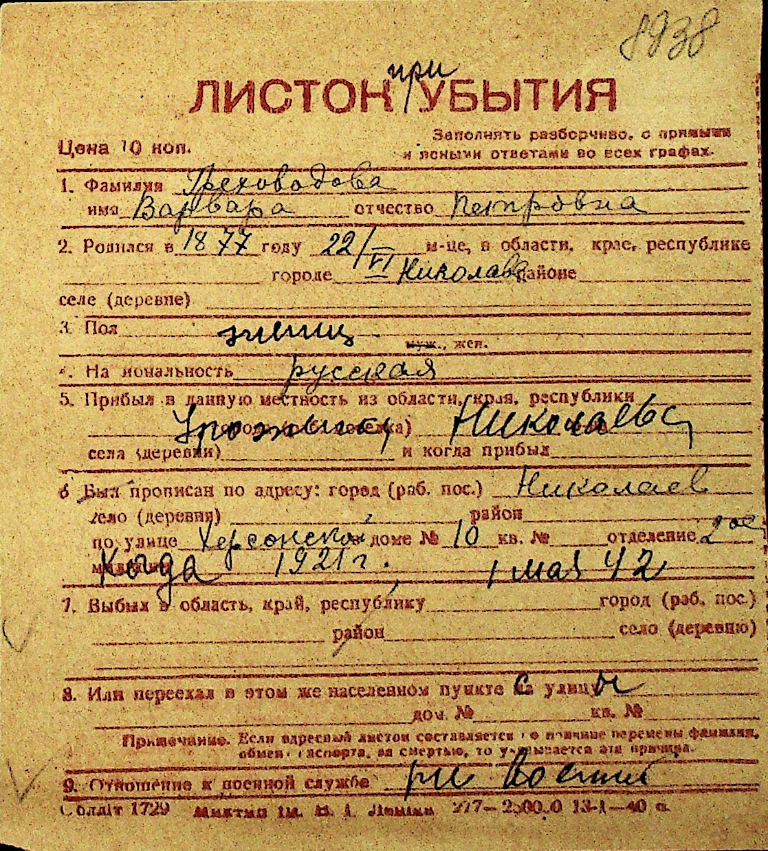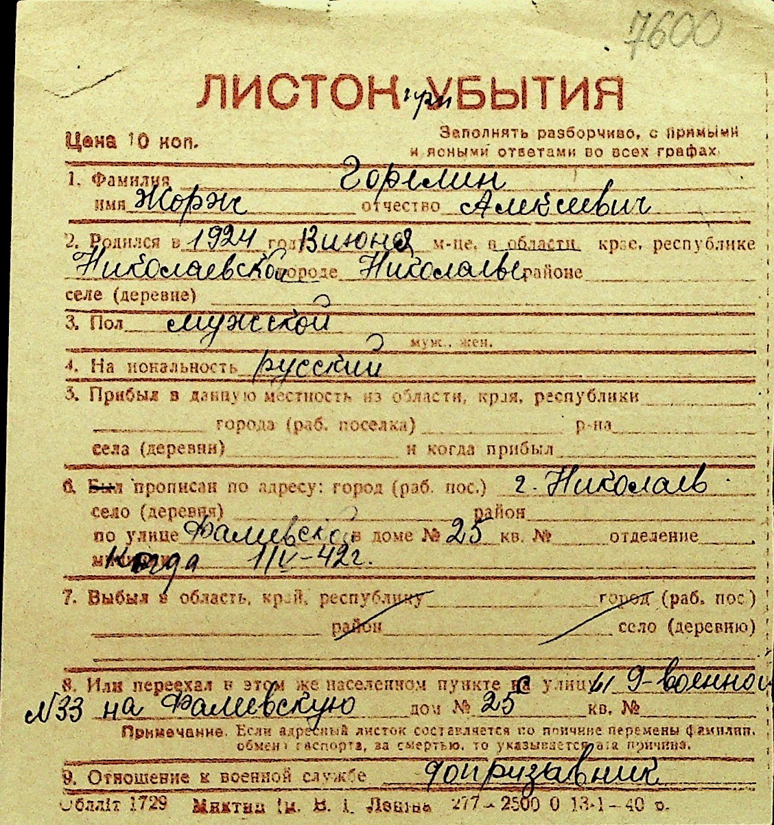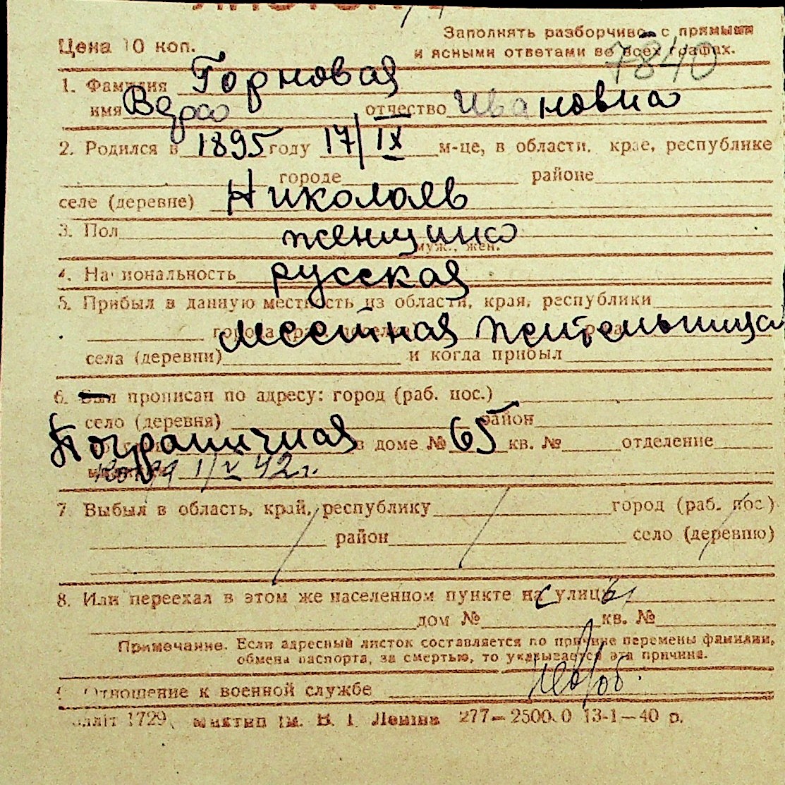• • Перелік карток до фонду № Н-1016