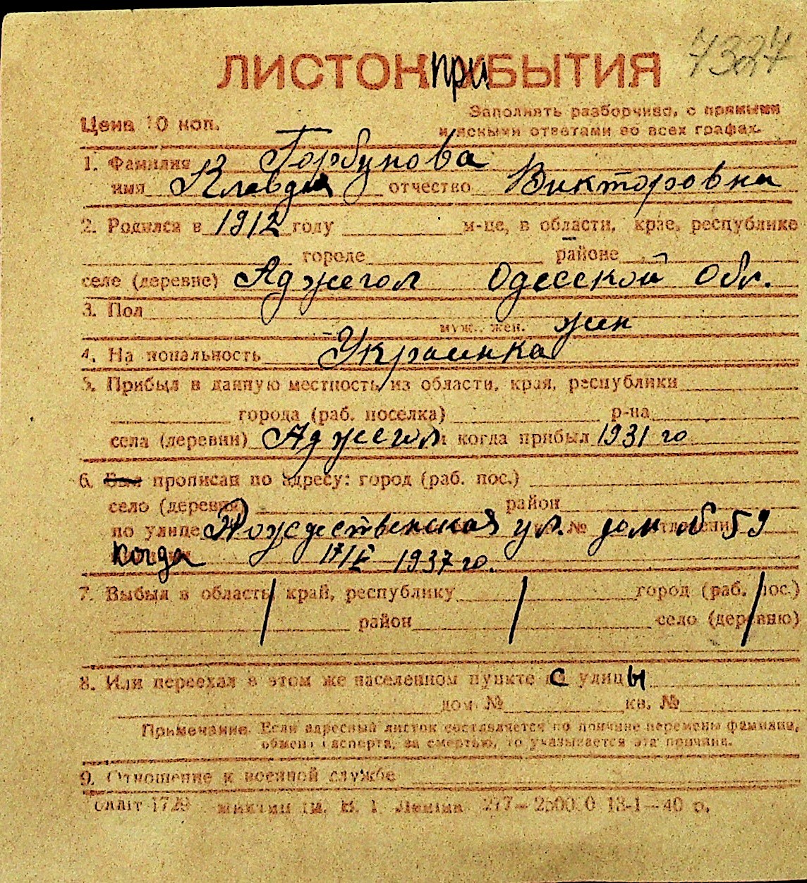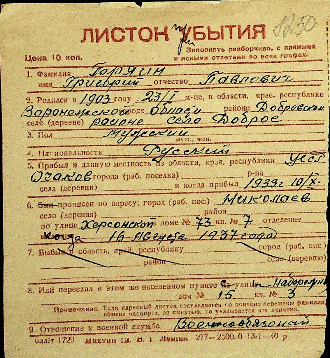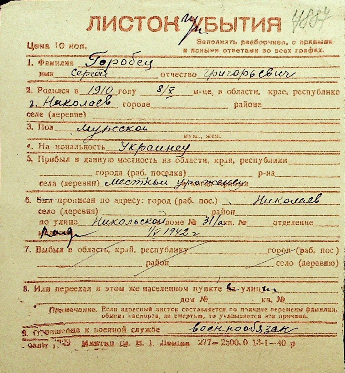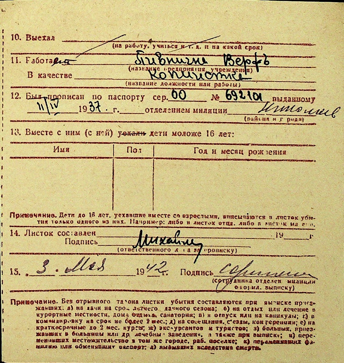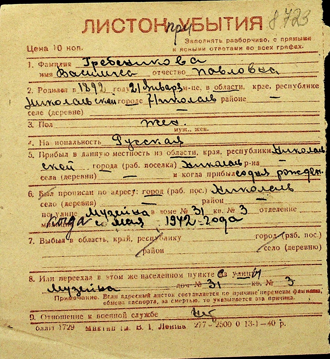 • • Перелік карток до фонду № Н-1016