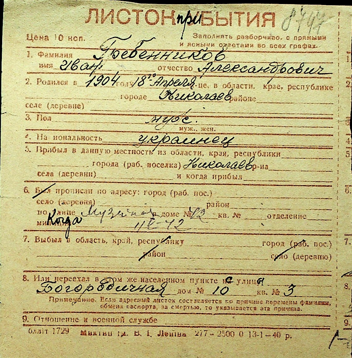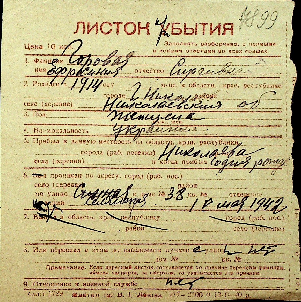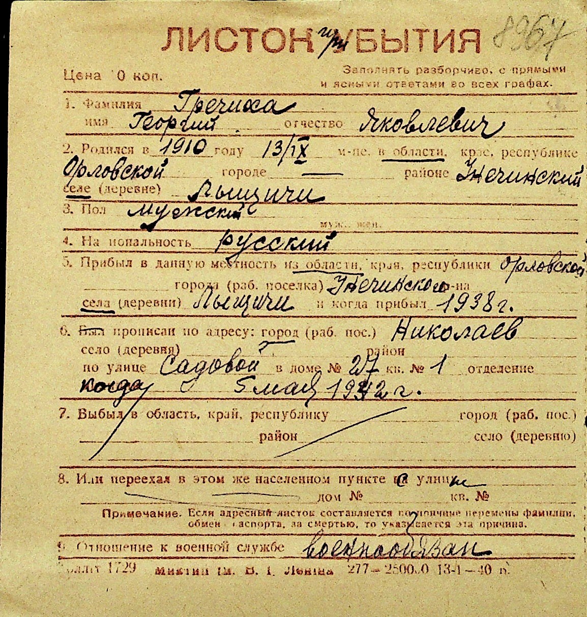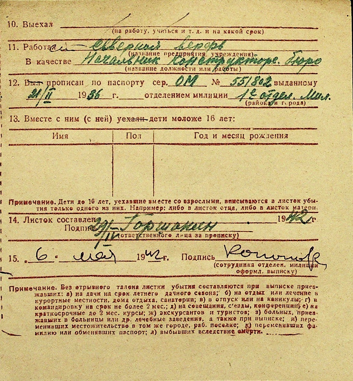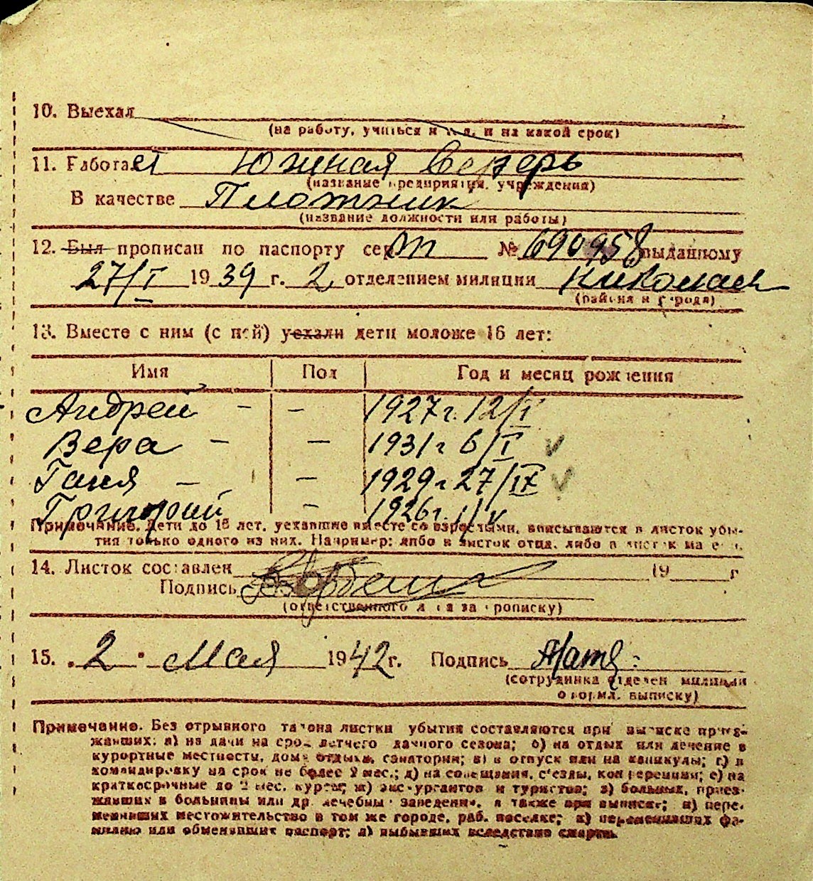 • • Перелік карток до фонду № Н-1016
