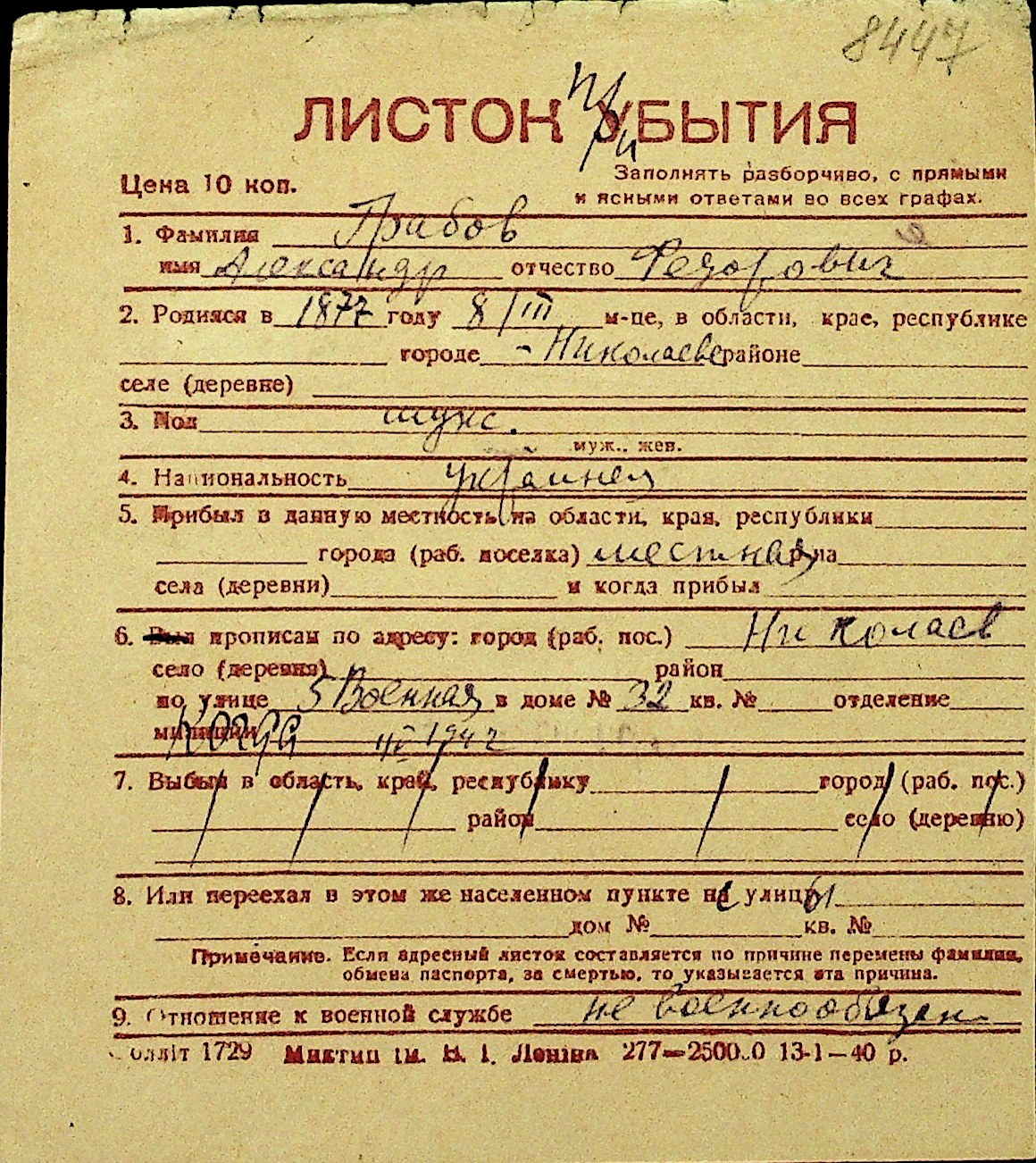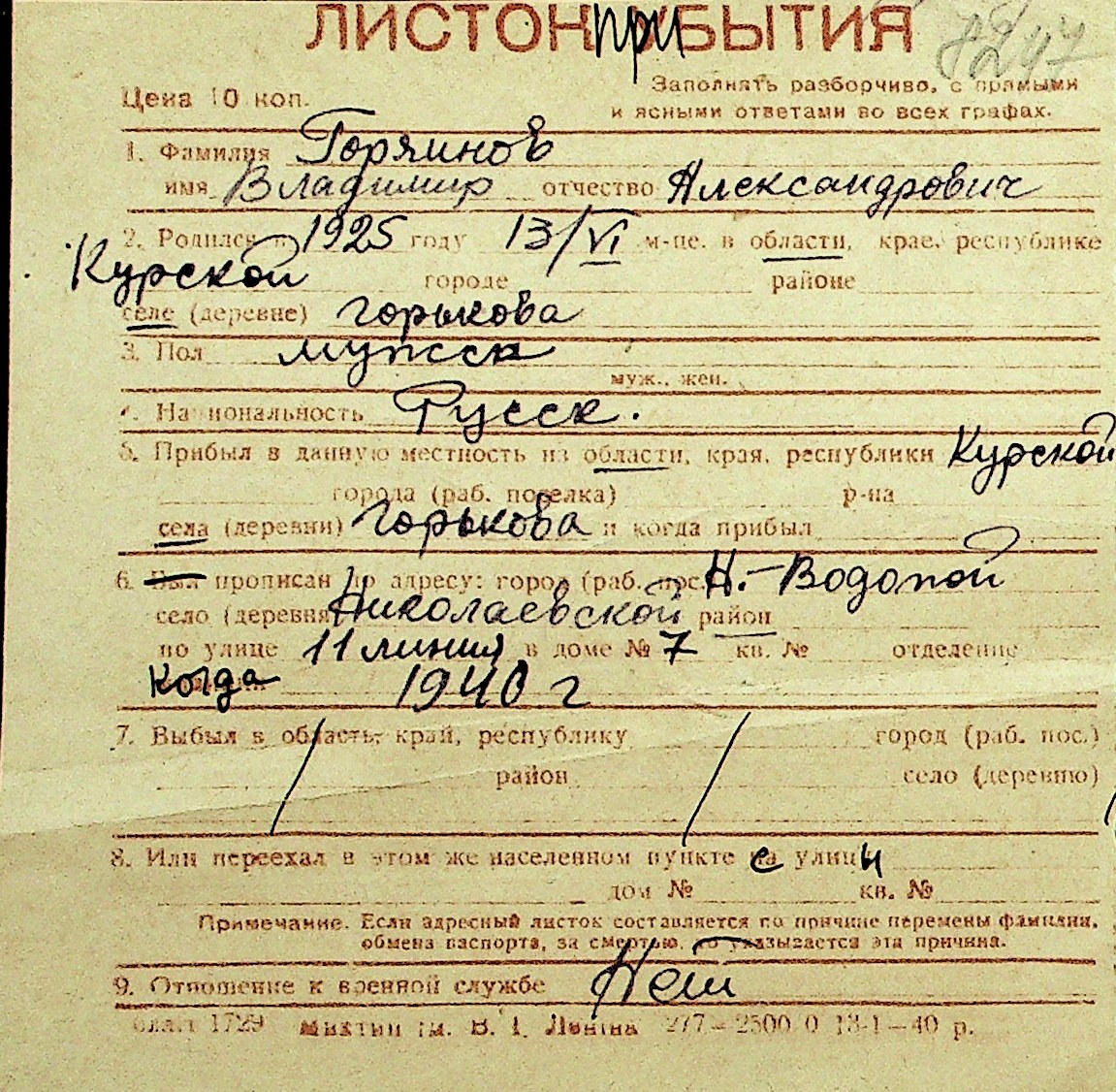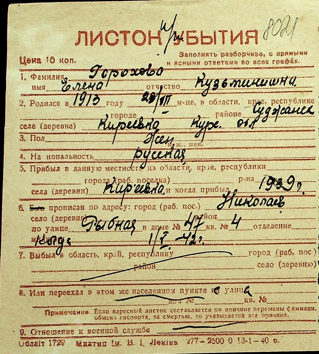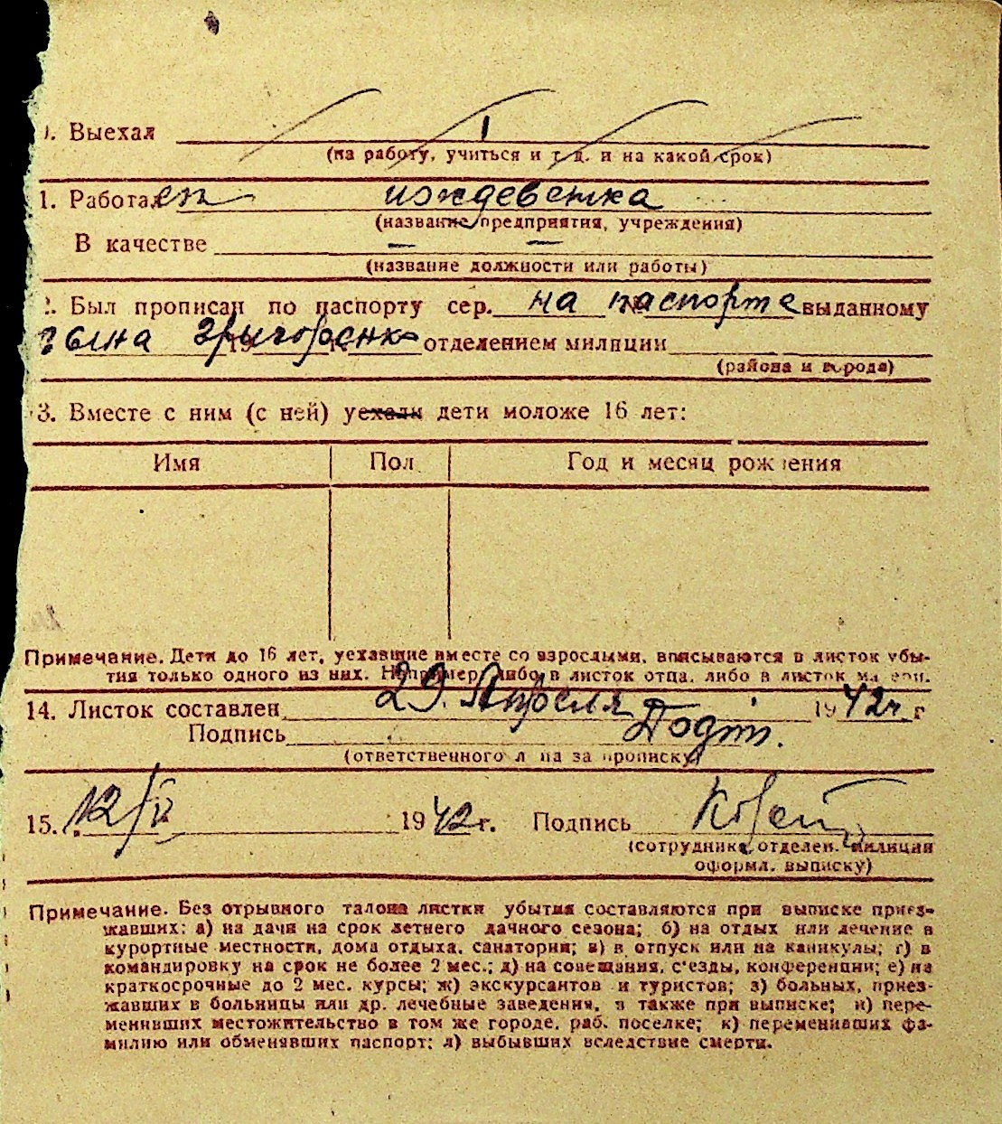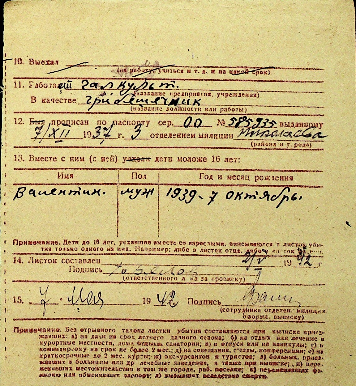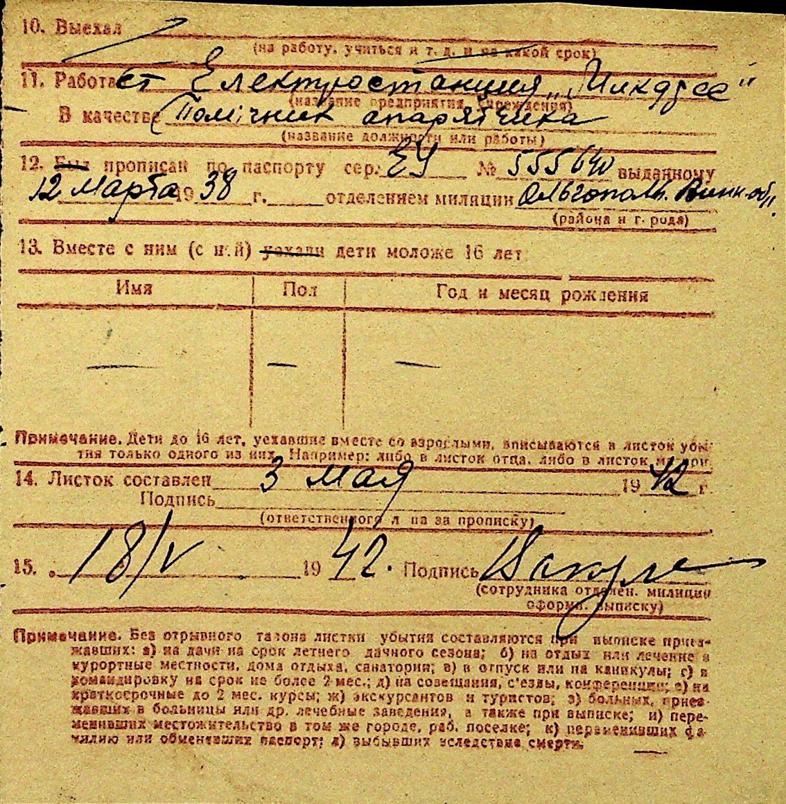 • • Перелік карток до фонду № Н-1016
